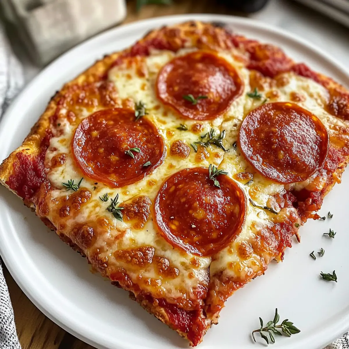 Jeden Bissen eines perfekt zubereiteten Pizzabodens kann die Erinnerungen an gesellige Abende mit Freunden und Familie lebendig werden lassen. Mein Rezept für einen klassischen Heißluftfritteusen-Hüttenkäse-Pizzaboden eröffnet euch die Möglichkeit, eine köstliche, proteinreiche Pizza zu genießen, ohne stundenlang in der Küche zu stehen. Der knusprige Rand und der saftige Kern sind ein Traum für alle Pizza-Liebhaber und ideal für stressige Wochentage. Mit nur wenigen Zutaten und einer einfachen Zubereitung verwandelt ihr euer Wohnzimmer in eine Pizza-Stuben, ohne den Aufwand, der normalerweise mit der Pizza-Bereitung verbunden ist. Lust auf einen Abend voller geheimer Zutaten und kreativer Toppings? Lasst uns gemeinsam in die Welt der schnellen und gesunden Genussmomente eintauchen! Warum wirst du dieses Rezept lieben? Einfachheit: Die Zubereitung ist unkompliziert und erfordert lediglich grundlegende Kochkenntnisse. Mit wenigen Schritten entsteht ein Pizzaboden, der eure Geschmacksknospen erfreut. Protein-Power: Dank des Hüttenkäses liefert dieser Boden nicht nur Geschmack, sondern auch eine ordentliche Portion Protein – perfekt für gesundheitsbewusste Genießer. Vielseitigkeit: Egal, ob du ihn mit klassischem Pizzasauce und Käse oder mit deinen Lieblingsgemüsesorten belegen möchtest – dieser Teig passt sich deinen Wünschen an. Schnelle Zubereitung: In weniger als 30 Minuten genießt ihr eine frisch gebackene, leckere Pizza – ideal für hektische Abende! Crispy Delight: Der knusprige Rand kombiniert mit einem saftigen Herzen bringt den besten Pizza-Geschmack auf den Tisch und lässt sich einfach mit der ganzen Familie teilen. Klassische Heißluftfritteusen-Hüttenkäse-Pizzaboden Zutaten • Bereite dich vor auf das perfekte Pizzaerlebnis mit einer einfach zuzubereitenden Crust, die nicht nur lecker ist, sondern auch voller Protein steckt! Für den Teig Hüttenkäse – sorgt für Feuchtigkeit und Protein, was die Kruste reichhaltig macht; alle Varianten (kleine oder große Körner) sind geeignet, aber das Abtropfen von überschüssiger Molke kann die Textur verbessern. Mehl – gibt der Kruste Struktur; King Arthur Allzweckmehl wird für die besten Ergebnisse empfohlen. Backpulver – lässt die Kruste aufgehen und macht sie fluffig. Knoblauchpulver – verleiht dem Teig zusätzlichen Geschmack und hebt das Gesamterlebnis der Pizza. Für die Beläge Pizzasauce – bildet die Basis für die Beläge; Rao’s Homemade wird für ihren reichen Geschmack empfohlen. Mozzarella-Käse – schmilzt und schafft eine klebrige, herzhaft schmeckende Schicht, die den klassischen Pizza-Geschmack verleiht. Pepperoni – fügt eine würzige, herzhafte Note hinzu; kann nach Belieben durch andere Proteinquellen oder Gemüse ersetzt werden, je nach diätetischen Präferenzen. Schritt-für-Schritt-Anleitung für Klassische Heißluftfritteusen-Hüttenkäse-Pizzaboden Step 1: Teig vorbereiten Vermenge den Hüttenkäse in einem Mixer, bis er schön glatt ist. In einer großen Schüssel mischst du das Mehl, Backpulver und Knoblauchpulver. Füge dann den pürierten Hüttenkäse hinzu und verrühre alles gut, bis eine grobe Teigmasse entsteht, die zusammenhält. Step 2: Teig kneten Streue etwas Mehl auf eine saubere Arbeitsfläche und gib den Teig darauf. Knete ihn für etwa 1–2 Minuten, bis er glatt und elastisch ist. Forme den Teig anschließend zu einem etwa 15 cm großen Kreis mit einer Dicke von etwa 1 cm. Achte darauf, dass der Teig nicht bröckelig ist. Step 3: Heißluftfritteuse vorheizen Heize die Heißluftfritteuse auf 180°C (360°F) vor. Wenn die Fritteuse aufgeheizt ist, lege den geformten Pizzaboden vorsichtig in den Korb. Dies sorgt dafür, dass der Boden gleichmäßig knusprig wird und keine Feuchtigkeit eindringt. Step 4: Pizza belegen Verteile eine großzügige Schicht Pizzasauce gleichmäßig auf dem vorbereiteten Teig. Bestreue die Sauce anschließend mit Mozzarella-Käse und lege die Pepperoni darauf. Achte darauf, nicht zu viel Belag zu verwenden, damit der Pizzaboden nicht durchweicht. Step 5: Pizza backen Stelle die Fritteuse auf 15–20 Minuten ein und backe die Pizza, bis der Rand goldbraun und der Käse schön geschmolzen und blubbernd ist. Ein tolles visuelles Zeichen dafür, dass die Klassische Heißluftfritteusen-Hüttenkäse-Pizzaboden fertig ist, ist das leicht goldene Ankernen des Käses. Step 6: Auskühlen lassen Nachdem die Pizza aus der Heißluftfritteuse kommt, lass sie für etwa 5–10 Minuten ruhen. Dies hilft, dass der Käse sich leicht setzen kann, während der Boden weiterhin knusprig bleibt – so kann sie schöner geschnitten werden. Vorbereitung für deine Klassische Heißluftfritteusen-Hüttenkäse-Pizzaboden Die Klassische Heißluftfritteusen-Hüttenkäse-Pizzaboden ist ideal für die vorausschauende Planung von Mahlzeiten! Du kannst den Pizzaboden bis 24 Stunden im Voraus zubereiten und ihn einfach in Frischhaltefolie einwickeln, um seine Frische zu bewahren. Der vorbereitete Teig kann im Kühlschrank aufbewahrt werden, sodass du an einem hektischen Wochentag nur noch deine Lieblingsbeläge hinzufügen und ihn backen musst. Achte darauf, die Pizzasauce und den Käse erst kurz vor dem Backen hinzuzufügen, um das Durchweichen des Bodens zu vermeiden. Wenn du die Pizza dann in der Heißluftfritteuse aufbackst (ca. 15-20 Minuten), wird sie genau so köstlich wie frisch zubereitet! Variationen des Klassischen Heißluftfritteusen-Hüttenkäse-Pizzabodens Eure Kreativität ist gefragt! Gestaltet diesen köstlichen Pizzaboden nach euren Vorlieben und lasst euch von den Möglichkeiten inspirieren. Vegetarisch: Ersetzt den Pepperoni mit frischem Gemüse wie Paprika oder Champignons für eine gesunde Variante. Diese Auswahl bringt eine bunte Farbpalette und reichlich Geschmack! Glutenfrei: Nutzt eine glutenfreie Mehlmischung, um die Kruste glutenfrei zu genießen. Ein idealer Weg, um nicht auf den Pizzagenuss zu verzichten. Würzige Note: Fügt frisch