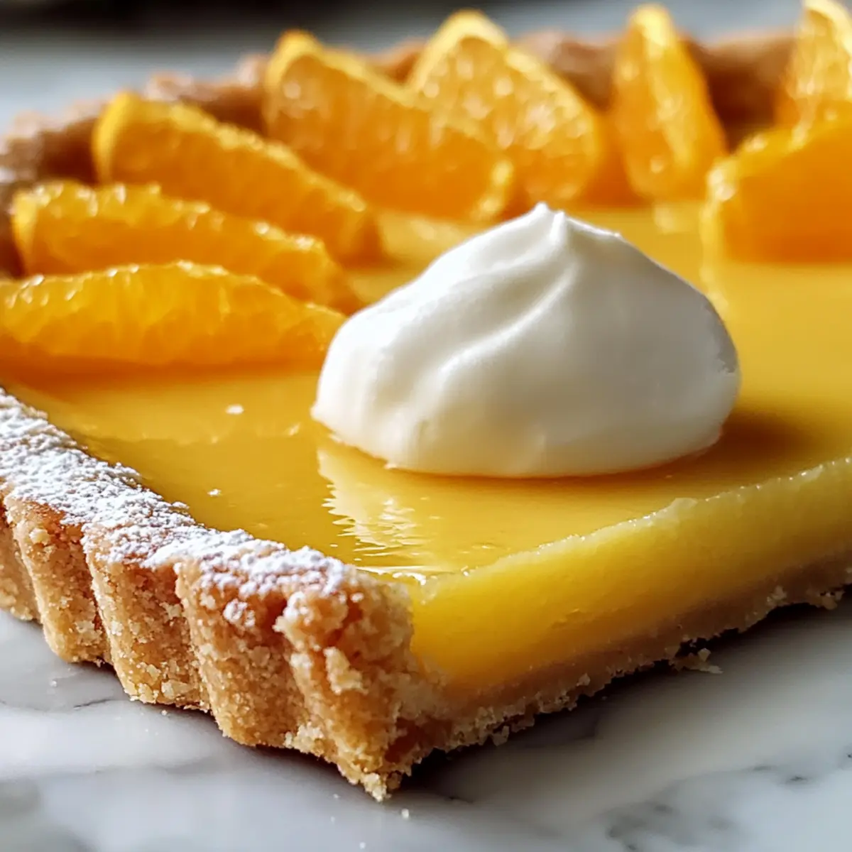 Ein strahlender Sonnenstrahl, der durch das Fenster fällt, und der Duft von frisch gepressten Orangen erfüllt den Raum – genau so fühlt sich der Moment an, wenn ich an meine Klassische Orangentarte denke. Diese Tarte kombiniert den lebendigen Geschmack von Zitrusfrüchten mit einer geschmeidigen, samtigen Textur. Perfekt, um Tische bei Dinnerpartys zu beeindrucken, zeichnet sie sich durch ihre Einfachheit aus, sodass auch Anfänger in der Küche ein Meisterwerk schaffen können. Diese köstliche Kombination aus süßen und saftigen Noten eignet sich nicht nur als elegantes Dessert, sondern überzeugt auch als erfrischender Abschluss eines jeden Essens. Neugierig, wie Sie diese genussvolle Tarte ganz leicht selbst zubereiten können? Warum wird diese Tarte Sie begeistern? Einfachheit, die begeistert: Die Zubereitung dieser klassischen Orangentarte erfordert nur grundlegende Backkenntnisse und frische Zutaten – perfekt für Einsteiger und erfahrene Köche. Erfrischender Geschmack: Die Kombination aus saftigen Orangen und einer cremigen Füllung sorgt für einen aufregenden Geschmack, der Ihre Gäste begeistert. Unter allen Bedingungen: Diese Tarte ist ideal für festliche Anlässe oder entspannte Nachmittage und passt zu zahlreichen Gelegenheiten. Vielseitigkeit in der Küche: Variieren Sie die Füllung oder Garnitur, um Ihre persönliche Note zu setzen, wie in Rezepten für Schwarz Gebratene Garnelen oder genießen Sie den puren Zitrusgeschmack. Im Voraus zubereiten: Sie können die Tarte einen Tag im Voraus zubereiten, was Ihnen Zeit spart und die Aromen verbessert – ein echter Zeitgewinn! Ein Hingucker: Ihre Familie und Freunde werden von der Präsentation und dem Geschmack der Tarte begeistert sein – ein echter Showstopper! Klassische Orangentarte Zutaten • Hier sind die nötigen Zutaten für Ihre köstliche Klassische Orangentarte: Für den Teig Mehl – sorgt für die Struktur; für eine glutenfreie Variante kann auch glutenfreies Mehl verwendet werden. Puderzucker – verleiht süße und Zartheit; kann durch feingemahlenen Haushaltszucker ersetzt werden. Mandelmehl – sorgt für Feuchtigkeit und Geschmack; bei Nussallergien kann normales Mehl verwendet werden. Salz – hebt den Geschmack; optional, aber wichtig, um die Süße auszubalancieren. Orangenabrieb – bringt frische Zitrusaromen ein; verwenden Sie Bio-Orangen für den besten Geschmack. Butter – verleiht einen blättrigen, zarten Teig; für eine milchfreie Option kann Margarine oder Kokosöl verwendet werden. Eigelb – bindet die Zutaten; kein direkter Ersatz, vegane Varianten können jedoch mit Leinsamen-Eiern arbeiten. Kaltes Wasser – verbindet den Teig, ohne die Butter zu erwärmen. Für die Füllung Frische Orangen – liefern den Saft für die Füllung; Navel- oder Valencia-Orangen sind ideal. Superfeiner Zucker – süßt die Füllung; kann durch Kristallzucker ersetzt werden. Maisstärke – dickt die Füllung ein; kein Ersatz nötig, es sei denn, man möchte Stärke vermeiden. Gelatine – stabilisiert die Füllung und sorgt für die richtige Textur; für vegane Optionen verwenden Sie Agar-Agar. Für die Garnitur Schlagsahne – sorgt für einen cremigen Topping; für eine milchfreie Antwort kann auch Kokosrahm verwendet werden. Optionale Garnituren – frische Früchte, Nüsse oder Schokoladenstückchen setzen geschmackliche und visuelle Akzente. Schritt-für-Schritt-Anleitung für die Klassische Orangentarte Step 1: Teig zubereiten Mischen Sie in einer Küchenmaschine Mehl, Puderzucker, Mandelmehl, Salz und Orangenabrieb. Fügen Sie kalte Butter in Stückchen hinzu und pulsen Sie, bis die Mischung krümelig aussieht. Geben Sie dann das Eigelb und kaltes Wasser hinzu und vermischen Sie alles, bis sich ein Teig bildet. Wickeln Sie diesen in Frischhaltefolie und kühlen ihn etwa 30 Minuten im Kühlschrank. Step 2: Tarte-Schale blindbacken Heizen Sie den Ofen auf 200°C (390°F) vor. Rollen Sie den gekühlten Teig auf einer bemehlten Fläche aus und legen Sie ihn in eine Tarteform. Stechen Sie mit einer Gabel Löcher in den Boden und kühlen Sie ihn erneut für 15 Minuten. Backen Sie die Tarte dann 15–20 Minuten lang mit Backgewichten im Ofen, bis die Ränder goldbraun und fest sind. Step 3: Orangen-Curd-Füllung zubereiten Erwärmen Sie frisch gepressten Orangensaft in einem Topf, bis er dampft. In einer Schüssel verquirlen Sie die Eier, den Superfeinen Zucker und die Maisstärke. Gießen Sie die heiße Flüssigkeit langsam unter ständigem Rühren in die Eimischung. Kochen Sie diese Mischung für 5-7 Minuten bei niedriger Hitze, bis sie eindickt. Rühren Sie die Gelatine ein und lassen Sie die Füllung abkühlen. Step 4: Tarte zusammensetzen Gießen Sie die abgekühlte Orangen-Curd-Füllung in die gebackene Tarte-Schale. Glätten Sie die Oberfläche mit einem Spatel, und kühlen Sie die Tarte dann mindestens 2 Stunden im Kühlschrank, damit die Füllung fest wird. Step 5: Sahne schlagen Schlagen Sie die schwere Sahne mit etwas Zucker in einer Rührschüssel, bis sich steife Spitzen bilden. Achten Sie darauf, dass die Schlagsahne nicht übergeschlagen wird, da sie sonst geschmeidig wird. Toppen Sie die gekühlte Klassische Orangentarte mit der Schlagsahne und garnieren Sie sie nach Belieben mit frischen Früchten oder Nüssen, bevor Sie sie servieren. Lagerungstipps für Klassische Orangentarte Raumtemperatur: Lassen Sie die Tarte nicht länger als 1 Stunde bei Raumtemperatur stehen, um die Frische zu bewahren. Kühlschrank: Bewahren Sie die restliche Tarte abgedeckt im Kühlschrank auf, wo sie bis zu 3 Tage frisch bleibt und die Aromen sich noch verbessern. Einfrieren: Für längere Lagerung kann die Tarte in Scheiben geschnitten und in Frischhaltefolie eingewickelt für bis zu 1 Monat im Gefrierfach aufbewahrt werden. Wiederausbacken: Lassen Sie die Tarte vor dem Servieren im Kühlschrank auftauen und genießen Sie sie kalt oder bei Zimmertemperatur für das beste Geschmackserlebnis. Was passt