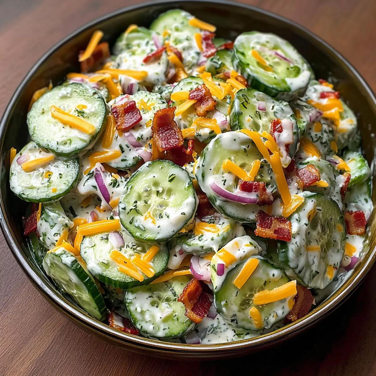Genießen Sie den erfrischenden Klassischen Gurken-Ranch-Knack-Salat, der in nur 10 Minuten zubereitet ist und perfekt für Grillpartys oder als leichtes Mittagessen geeignet ist.