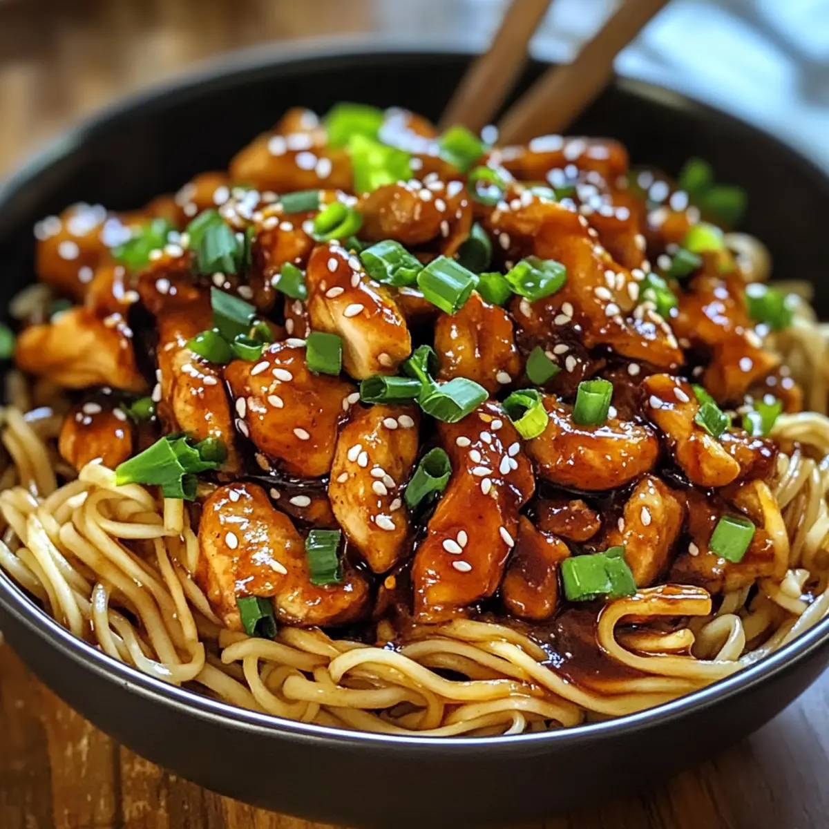 Es war einer dieser hektischen Abende, an denen ich nach einem langen Tag nach Hause kam und ein schnelles, befriedigendes Abendessen zaubern wollte. Genau in diesem Moment erinnerte ich mich an meine Klebrigen Knoblauchhühnchen-Nudeln, die innerhalb von nur 30 Minuten zubereitet sind. Mit ihrer perfekt ausgewogenen Mischung aus einer herzhaften, klebrigen Knoblauchsoße und zartem Hähnchen, serviert auf einem Bett von köstlichen Nudeln, sind diese Nudeln nicht nur super einfach, sondern auch kinderleicht anpassbar mit deinen liebsten Gemüsesorten. Sie sind der perfekte Genuss für stressige Wochentage, wenn man sich nach einer sättigenden und geschmackvollen Mahlzeit sehnt. Also, bist du bereit, deine Küche mit diesem einfachen Rezept zu verzaubern und deine Lieben zu beeindrucken? Lass uns loslegen! Warum wirst du dieses Rezept lieben? Einfachheit pur: Die Zubereitung ist kinderleicht und benötigt nur grundlegende Kochfähigkeiten. Reichhaltiger Geschmack: Die Kombination aus Knoblauch und süßer Soja-Glasur sorgt für ein unvergessliches Geschmackserlebnis. Schneller Genuss: In nur 30 Minuten kannst du ein köstliches Abendessen zaubern, perfekt für hektische Wochentage. Anpassungsfähig: Fühle dich frei, dein Lieblingsgemüse hinzuzufügen oder das Rezept mit verschiedenen Proteinquellen wie Tofu oder Garnelen zu variieren. Crowd-Pleaser: Dieses Gericht wird sicherlich auch bei deinen Gästen gut ankommen – perfekt für ein entspanntes Abendessen! Glutenfrei möglich: Mit der richtigen Wahl der Nudeln und Soße ist dieses Rezept auch für glutenfreie Ernährung geeignet; zum Beispiel kannst du Reisnudeln verwenden. Klebrige Knoblauchhühnchen-Nudel-Zutaten • Um das Rezept zu zaubern, benötigst du diese einfachen Zutaten: Für die Soße: Sojasoße – sorgt für einen salzigen und umami-reichen Geschmack; Tamari ist eine glutenfreie Option. Honig – fügt Süße hinzu und hilft, die klebrige Glasur zu kreieren; du kannst für eine vegane Variante auch Ahornsirup verwenden. Gehackter Knoblauch – ist unverzichtbar für das Aroma; frischer Knoblauch ist am besten, aber Knoblauchpulver kann im Notfall verwendet werden. Geriebener Ingwer – bringt Wärme und Tiefe ins Gericht; ersetzbar durch gemahlenen Ingwer, falls frisch nicht verfügbar ist. Rote Chiliflocken – verleihen dem Gericht Schärfe; weglassen für eine mildere Version oder frisch geschnittene Chilischoten hinzufügen. Für das Hähnchen: Hähnchenbrust – ist die Hauptproteinquelle; kann durch Garnelen, Rindfleisch oder Tofu ersetzt werden. Maisstärke – beschichtet das Hähnchen für eine knusprige Textur; Arrowroot-Pulver ist eine glutenfreie Alternative. Gemüsestärke – zum Braten des Hähnchens; Olivenöl oder Sesamöl sind ebenfalls geeignet und bringen ihren eigenen Geschmack. Für die Nudeln: Nudeln (Reis- oder Eiernudeln) – dienen als Basis für das Gericht; wähle Reisnudeln für glutenfreie Optionen oder Eiernudeln für eine reichhaltigere Textur. Mit diesen köstlichen Zutaten bist du bereit, deine Klebrigen Knoblauchhühnchen-Nudeln zuzubereiten! Schritt-für-Schritt-Anleitung für Klebrige Knoblauchhühnchen-Nudeln Step 1: Sauce zubereiten Mische in einer Schüssel die Sojasoße, den Honig, gehackten Knoblauch, geriebenen Ingwer und rote Chiliflocken. Vergewissere dich, dass alles gut kombiniert ist, und stelle die Mischung beiseite. Diese aromatische Sauce wird später das Hähnchen umhüllen und ihm einen köstlichen Glanz verleihen. Step 2: Hähnchen vorbereiten Schneide die Hähnchenbrust in gleichmäßige, mundgerechte Stücke und gib sie in eine Schüssel. Bestäube das Hähnchen großzügig mit Maisstärke, sodass sie gleichmäßig bedeckt sind. Dies sorgt dafür, dass das Hähnchen beim Braten knusprig wird und die Aromen der klebrigen Knoblauchsoße gut aufnimmt. Step 3: Hähnchen braten Erhitze in einer großen Pfanne über mittlerer bis hoher Hitze etwas Gemüseöl. Sobald das Öl heiß ist, gib das Hähnchen hinein und brate es für etwa 6-8 Minuten. Achte darauf, dass die Stücke goldbraun werden und eine knusprige Textur entwickeln. Rühre regelmäßig um, um ein Ankleben zu verhindern. Step 4: Sauce hinzufügen Reduziere die Hitze auf mittel und gieße die vorbereitete Sauce über das Hähnchen in der Pfanne. Rühre gut um, sodass jedes Stück gleichmäßig mit der köstlichen Soße bedeckt ist. Lasse das Ganze für 2-3 Minuten köcheln, bis die Soße zu einer klebrigen Glasur eindickt, und genieße den verführerischen Duft. Step 5: Nudeln kochen Koche die Nudeln gemäß der Packungsanweisung in einem großen Topf mit kochendem Wasser. Achte darauf, sie al dente zu garen, damit sie ihre Form behalten. Nachdem die Nudeln fertig sind, lasse sie abtropfen und spüle sie kurz unter kaltem Wasser, damit sie nicht zusammenkleben. Step 6: Nudeln kombinieren Füge die abgetropften Nudeln zur Hähnchen-Schwenksauce in der Pfanne hinzu. Verwende eine Zange, um die Nudeln vorsichtig mit dem Hähnchen und der klebrigen Soße zu vermengen. Achte darauf, dass alle leckeren Aromen gleichmäßig verteilt sind, und koche das Gericht noch kurz durch. Step 7: Servieren und Garnieren Verteile die Klebrigen Knoblauchhühnchen-Nudeln auf Tellern und garniere sie mit frisch gehackten Frühlingszwiebeln und Sesamsamen. Dies verleiht dem Gericht nicht nur eine schöne Optik, sondern auch zusätzliche Frische und Knusprigkeit. Bereite dich darauf vor, Komplimente für dieses schnelle und köstliche Gericht zu erhalten! Variationen & Alternativen Lass uns dein Erlebnis mit diesen Klebrigen Knoblauchhühnchen-Nudeln individuell gestalten! Vegetarische Variante: Ersetze das Hähnchen durch Tofu oder Tempeh, gegrillt oder gebraten für einen herzhaften Biss. Weitere Proteinoptionen: Tausch das Hähnchen gegen Garnelen oder Rindfleisch aus, um eine neue Geschmacksrichtung zu entdecken. Gemüse hinzufügen: Füge saisonales Gemüse wie Brokkoli, Paprika oder Zuckerschoten hinzu, um Farbe und Nährsto