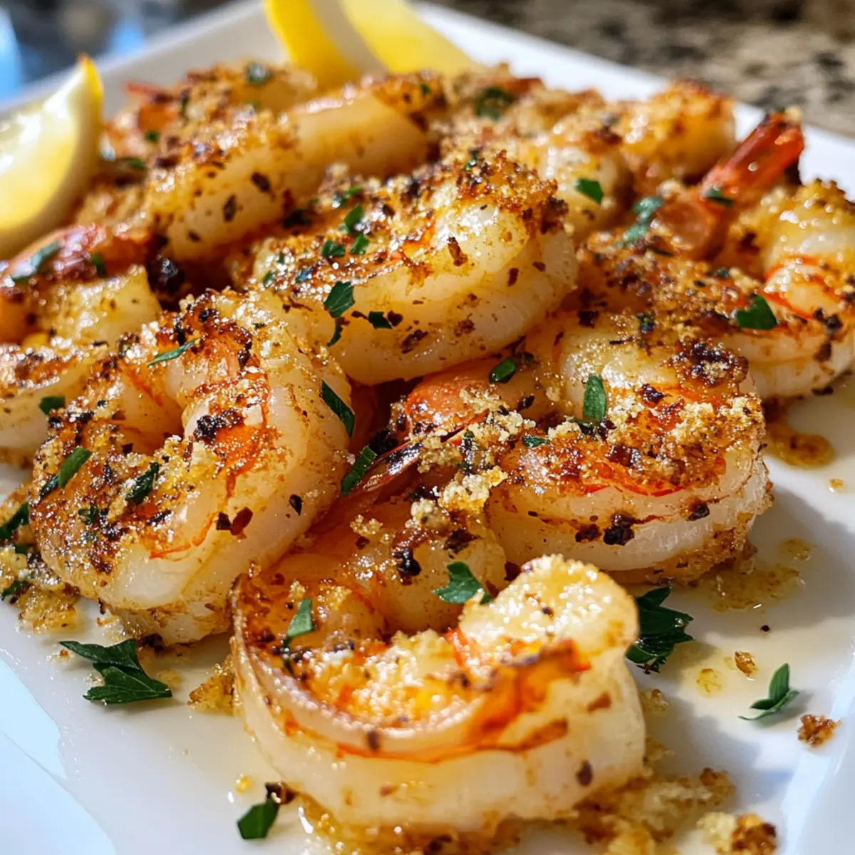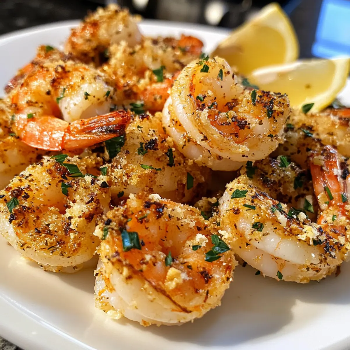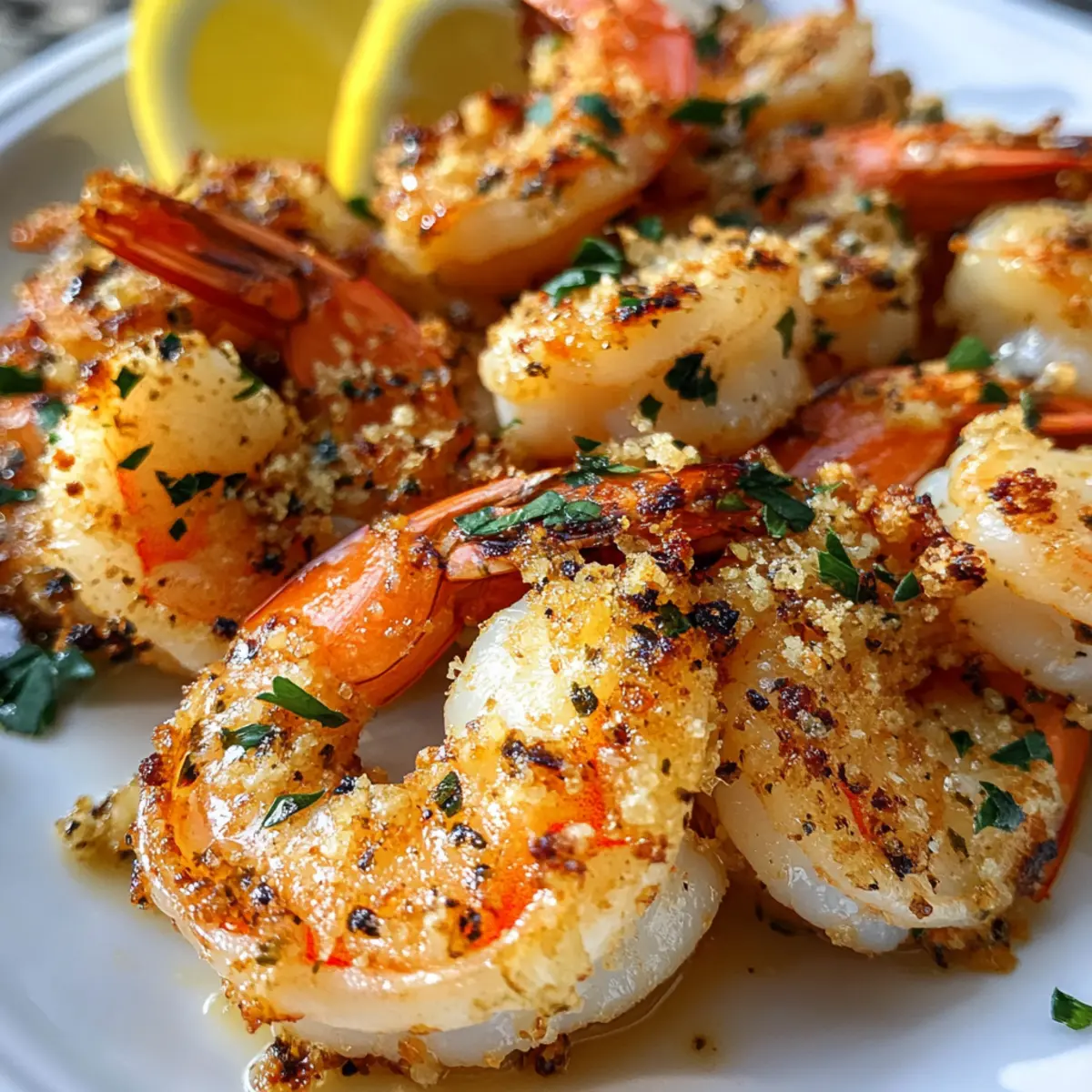 Kürzlich habe ich beim Kochen entdeckt, wie unglaublich einfach und köstlich die Kombination von Knoblauch und Parmesan auf saftigen Garnelen ist. Das Rezept für Knoblauch Parmesan Röstgarnelen zaubert in nur 20 Minuten ein echtes Geschmackserlebnis, das Ihre Familie und Freunde begeistern wird. Diese pragmatische, glutenfreie Option eignet sich perfekt für hektische Wochentage oder gemütliche Zusammenkünfte. Der knusprige Käsebelag und das aromatische Knoblauch-Aroma verwandeln schlichte Garnelen in ein wahrhaftes Festessen. Probieren Sie es aus – wer möchte nicht ein schnelles Abendessen zaubern, das jeden begeistert? Sind Sie bereit, Ihre Küchenerlebnisse auf das nächste Level zu heben? Warum sind diese Röstgarnelen so unwiderstehlich? Einfachheit in der Zubereitung: Sie benötigen nur wenige Zutaten und minimalen Aufwand, um dieses leckere Gericht auf den Tisch zu bringen. Reichhaltiger Geschmack: Die Kombination von Knoblauch und Parmesan sorgt für ein aromatisches Erlebnis, das einfach süchtig macht. Perfekte Textur: Jeder Biss bietet eine köstliche Mischung aus zartem Garnelenfleisch und knusprigem Käse. Vielfältige Serviermöglichkeiten: Genießen Sie es mit frischem Brot, über Pasta oder in einem knackigen Salat – die Optionen sind endlos! Gesund und nahrhaft: Diese glutenfreie Delikatesse ist nicht nur lecker, sondern auch leicht! Machen Sie sich bereit, Ihre Liebsten mit diesem Rezept zu beeindrucken und erfahren Sie mehr über unsere anderen köstlichen Schalotten Rezepte. Knoblauch Parmesan Röstgarnelen Zutaten • Diese einfachen Garnelen werden garantiert zum Hit! Für die Garnelen Garnelen – Verwenden Sie große oder Jumbo-Garnelen für die besten Ergebnisse, da sie mehr Geschmack bieten. Knoblauch – Frischer Knoblauch verstärkt das Aromenspiel und sorgt für ein intensives Geschmackserlebnis. Für die Kruste Parmesan Käse – Frisch geriebener Parmesan sorgt für einen knusprigen Belag; alternativ können Grana Padano oder Pecorino Romano verwendet werden. Butter – Verleiht den Röstgarnelen zusätzliche Reichhaltigkeit; für eine milchfreie Option kann sie durch Olivenöl ersetzt werden. Olivenöl – Hilft, eine perfekte Knusprigkeit beim Rösten zu erzielen; Avocadoöl ist ebenfalls eine gute Substitute. Paprika – Fügt eine milden Schärfe und Farbe hinzu; auch geräucherte Paprika bietet eine interessante Geschmacksvariation. Frische Petersilie – Für Frische und Farbe; Basilikum oder Schnittlauch sind ebenfalls geeignete Alternativen. Zitrone – Essenziell für die Präsentation und um den reichhaltigen Geschmack auszubalancieren. Bereiten Sie sich darauf vor, mit diesen Knoblauch Parmesan Röstgarnelen ein Gericht zuzubereiten, das Ihre Geschmacksknospen zum Tanzen bringt! Schritt-für-Schritt-Anleitungen für Knoblauch Parmesan Röstgarnelen Step 1: Ofen vorheizen Heizen Sie Ihren Ofen auf die Grillfunktion vor, idealerweise auf 220 °C. Dies sorgt für eine perfekte Röstaroma und knusprige Oberflächen für Ihre Knoblauch Parmesan Röstgarnelen. Stellen Sie sicher, dass der Ofen gut vorgeheizt ist, bevor Sie mit dem nächsten Schritt fortfahren, um die besten Ergebnisse zu erzielen. Step 2: Zutaten mixen In einer großen Schüssel kombinieren Sie frisch geriebenen Parmesan, fein gehackten Knoblauch, geschmolzene Butter, Olivenöl, Paprika und die gehackte Petersilie. Rühren Sie die Mischung gut um, bis alles gleichmäßig vermengt ist. Achten Sie darauf, dass die Aromen gleichmäßig verteilt sind, um den köstlichen Geschmack der Röstgarnelen zu maximieren. Step 3: Garnelen beschichten Fügen Sie die geschälten und entdarmten Garnelen in die Schüssel mit der Käsemischung hinzu. Vermengen Sie die Garnelen vorsichtig mit der Mischung, bis sie gleichmäßig beschichtet sind. Achten Sie darauf, dass die Garnelen vollständig eingehüllt sind, um einen köstlichen, aromatischen Belag zu gewährleisten, der schnell knusprig wird. Step 4: Garnelen anordnen Legen Sie die beschichteten Garnelen in einer einzelnen Schicht auf ein mit Backpapier belegtes Backblech. Achten Sie darauf, dass die Garnelen genügend Platz haben, damit die Hitze gleichmäßig zirkulieren kann und sie gleichmäßig rösten. Dies ist entscheidend für eine perfekte Textur und ein hervorragendes, goldbraunes Ergebnis. Step 5: Ausbacken Schieben Sie das Backblech in den vorgeheizten Ofen und rösten Sie die Garnelen für etwa 6-10 Minuten. Die Garnelen sind fertig, wenn sie undurchsichtig und leicht gebräunt sind. Behalten Sie sie im Auge, damit sie nicht übergaren und ihre zarte Konsistenz verlieren. Step 6: Garnieren und Servieren Nehmen Sie die Knoblauch Parmesan Röstgarnelen aus dem Ofen und garnieren Sie sie mit frischen Zitronenspalten und zusätzlicher Petersilie. Servieren Sie das Gericht sofort, um den maximalen Geschmack und die Textur zu genießen. Dieses schmackhafte Gericht wird Ihre Gäste mit Sicherheit begeistern! Variationen & Substitutionen für Knoblauch Parmesan Röstgarnelen Entdecken Sie kreative Wege, um dieses köstliche Rezept nach Ihrem Geschmack anzupassen und Ihre persönlichen Vorlieben zu unterstreichen! Dairy-Free: Ersetzen Sie die Butter durch Olivenöl, um eine milchfreie Variante zu kreieren. Dies sorgt für eine ebenso reichhaltige und schmackhafte Basis. Lebensmittelunverträglichkeiten: Nutzen Sie einen veganen Parmesan, wenn Sie auf tierische Produkte verzichten möchten. So können alle genießen! Proteinwechsel: Tauschen Sie die Garnelen gegen Jakobsmuscheln oder Hähnchenbrust aus. Diese Optionen bieten ein anderes Geschmackserlebnis und sind ebenso einfach zuzubereiten. Kräuter-Vielfalt: Experimentieren Sie mit Oregano oder Thymian für eine frische, aromatische Note. Diese Kräuter bringen neue Dimensionen an Geschmack und Aroma in Ihr Gericht. Zitronenfrische: Fügen Sie etwas Zitronenschale zum Käsebelag hinzu, um zusätzliche Frische und Lebendigkeit zu erreichen. Dies intensiviert die Gesamtaromatik! Würz