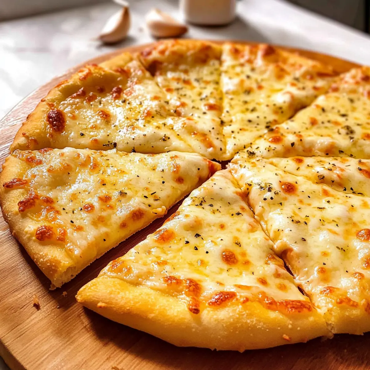 Entdecke die Möglichkeiten und verwandle dein nächstes Abendessen in ein unvergessliches Erlebnis mit dieser Knoblauchkäsepizza!