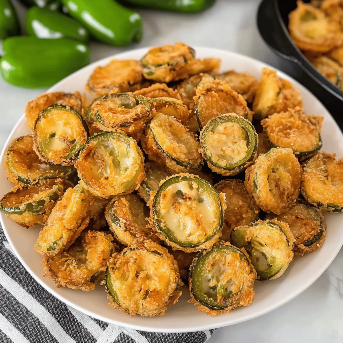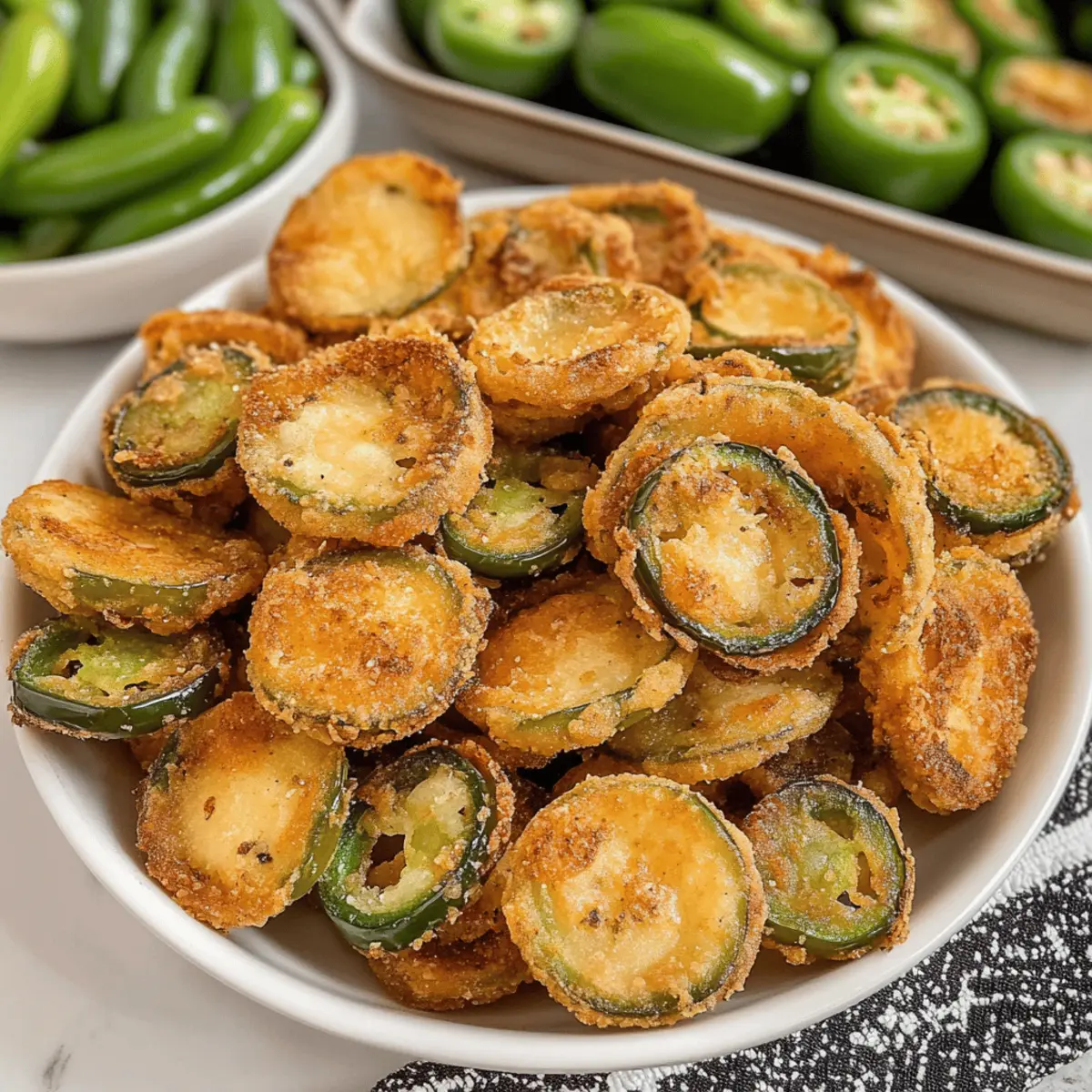 „Hast du schon mal darüber nachgedacht, wie einfach es ist, deine eigenen Snacks herzustellen?“ Genau das dachte ich, als ich mir diese köstlichen, knusprigen, frittieren Jalapeños ansah. Sie sind nicht nur eine fantastische Möglichkeit, um deine Gäste zu beeindrucken, sondern auch ein perfekter Begleiter für jeden Feierabend oder das nächste Spiel. Mit der besonderen, bierbasierten Panade gelingen diese Jalapeño-Bottle-Caps sofort und verwandeln jede Zusammenkunft in ein schmackhaftes Erlebnis. Und das Beste daran? Du benötigst nur wenige Zutaten! Ob als Party-Hit oder als herzhaftes Snack-Upgrade, diese frittieren Jalapeños werden zum Hit bei jedem, der einen Hauch von Schärfe sucht. Neugierig, wie du diese verführerischen Snacks zubereiten kannst? Lass uns gleich loslegen! Warum sind frittierte Jalapeños so beliebt? Einfachheit: Die Zubereitung dieser frittierbaren Jalapeños könnte nicht einfacher sein; mit nur wenigen Zutaten und wenig Aufwand sind sie im Handumdrehen bereit. Knuspriger Biss: Die perfekte, knusprige Panade bietet ein unwiderstehliches Geschmackserlebnis, das jeden Snackliebhaber begeistern wird. Vielseitig: Diese Jalapeños funktionieren großartig als eigenständiger Snack, aber du kannst sie auch in Sandwiches oder Burgern verwenden, um deinem Gericht eine scharfe Note zu verleihen. Party-Highlight: Ob bei einem Spieleabend oder einer Feier, jeder wird von diesem würzigen Appetizer schwärmen – sie sind einfach ein Hit! Gesunde Variante: Wenn du auf der Suche nach glutenfreien Optionen bist, kannst du problemlos einen glutenfreien Mehlmix verwenden. Probiere sie aus und kombiniere sie mit hausgemachtem Ranch-Dressing für einen zusätzlichen Genuss! Zutaten für frittierte Jalapeños • Hinweis: Die Zutatenliste für diese leckeren frittierte Jalapeños ist einfach und umfasst alles, was du benötigst, um diese würzigen Snacks zuzubereiten. Für den Teig • Canola Öl – Ideal zum Frittieren, sorgt für ein perfektes Braten ohne starke Geschmäcker. • Allzweckmehl – Geben Struktur und Knusprigkeit; ersetze es durch einen glutenfreien Mehlmix für ein glutenfreies Ergebnis. • Salz – Verstärkt den Geschmack und ist wichtig für die Würze des Teigs. • Räucherpaprika – Fügt eine subtile Rauchnote und Farbe hinzu. • Knoblauchpulver – Gibt dem Teig eine geschmackliche Tiefe; frischer Knoblauch könnte jedoch die Frittierzeiten beeinflussen. • Schwarzer Pfeffer – Sorgt für Schärfe; passe die Menge nach deinem persönlichen Geschmack an. • Große Eier (leicht geschlagen) – Helfen, den Teig zu binden; ersetze sie durch ein Flachseig oder Aquafaba für vegane Optionen. • Amerikanisches Lite Bier – Verleih dem Teig Geschmack und Textur; sustituire mit Sprudelwasser für eine alkoholfreie Version. Für die Jalapeños • Frische Jalapeño-Scheiben (1/4 Zoll dick) – Die Hauptzutat für diese würzigen Häppchen; benutze verschiedene Paprika für ein variierendes Schärfegrad. Für das Dip (optional) • Ranch-Dressing – Perfekt zum Servieren; kann auch durch Sauerrahm, Salsa oder scharfe Soße ersetzt werden. Schritt-für-Schritt-Anleitung für Knusprige Jalapeños Step 1: Öl vorbereiten Erhitze das Canola-Öl in einem schwereren Topf oder einer elektrischen Fritteuse auf 185 °C (365 °F). Achte darauf, dass das Öl mindestens 7–10 cm tief ist, damit die Jalapeños gleichmäßig frittieren können. Lass das Öl einige Minuten lang heiß werden, bis es zu sieden beginnt. Step 2: Teigmischung anrühren In einer großen Schüssel vermische das Allzweckmehl, Salz, Räucherpaprika, Knoblauchpulver und schwarzen Pfeffer gründlich. Diese trockenen Zutaten bilden die Basis für deinen Teig. Rühre alles gut um, bis es gleichmäßig verteilt ist, bevor du zu den feuchten Zutaten wechselst. Step 3: Teig vollenden Füge die leicht geschlagenen Eier und 180 ml (3/4 Tasse) des Biers zu den trockenen Zutaten hinzu. Mische alles gründlich mit einem Schneebesen, bis eine glatte Konsistenz erreicht ist; schüttle bei Bedarf mehr Bier hinein, um den Teig dünner zu machen. Achte darauf, keine Klumpen zu lassen. Step 4: Jalapeños panieren Gib 120 ml (1/2 Tasse) der frischen Jalapeño-Scheiben in die Teigmischung und wende sie gründlich, bis sie gleichmäßig mit dem Teig bedeckt sind. Dies wird die knusprige Schicht schaffen, die perfekt beim Frittieren knusprig wird. Stelle sicher, dass jede Scheibe gut eingekleidet ist. Step 5: Frittieren beginnen Verwende eine Zange, um die panierten Jalapeños vorsichtig in das heiße Öl zu legen. Frittiere die Jalapeños in kleinen Mengen für etwa 4–5 Minuten oder bis sie goldbraun und knusprig sind. Achte darauf, dass du nicht zu viele auf einmal frittierst; das könnte die Öltemperatur senken. Step 6: Jalapeños abtropfen lassen Nimm die gebratenen Jalapeños mit einem Schaumlöffel aus dem Öl und lasse sie auf einem mit Küchenpapier ausgelegten Teller abtropfen. So wird überschüssiges Öl entfernt und die Jalapeños bleiben schön knusprig. Vollende diesen Schritt, bis alle Jalapeños frittiert sind. Step 7: Servieren und genießen Serviere die heißen, knusprigen Jalapeños sofort, idealerweise mit einem Becher Ranch-Dressing oder einer anderen Dipsauce deiner Wahl. Diese frittierte Jalapeños sind perfekt für jede Zusammenkunft, sei es ein gemütlicher Abend oder eine große Party. Vorbereitung für knusprige Jalapeños Die Crispy Beer-Battered Fried Jalapeños sind perfekt für die Vorbereitung und sparen dir wertvolle Zeit, besonders an stressigen Tagen! Du kannst die jalapeño Scheiben bis zu 24 Stunden im Voraus in einer Mischung aus Mehl und Gewürzen panieren. Stelle sicher, dass sie gut eingekleidet sind, um ein Ankleben zu verhindern. Bewahre sie im Kühlschrank auf, um die Frische zu erhalten. Am Tag des Servierens musst du lediglich das Öl erhitzen und die vorbereiteten Jalapeños in kleinen Mengen für 4-5 Minuten frittieren, bis sie goldbraun sind. Mit diesen 
