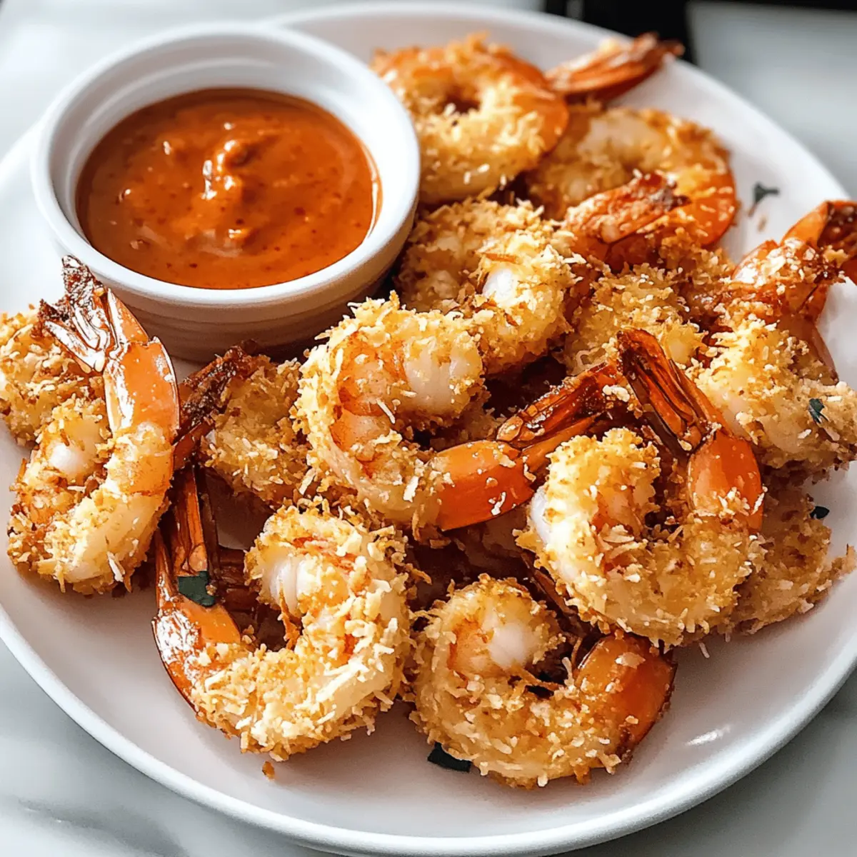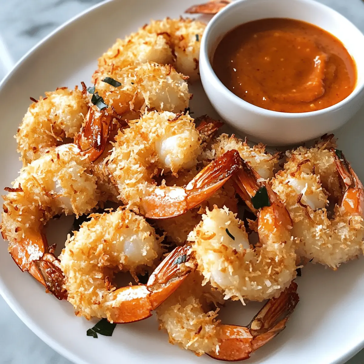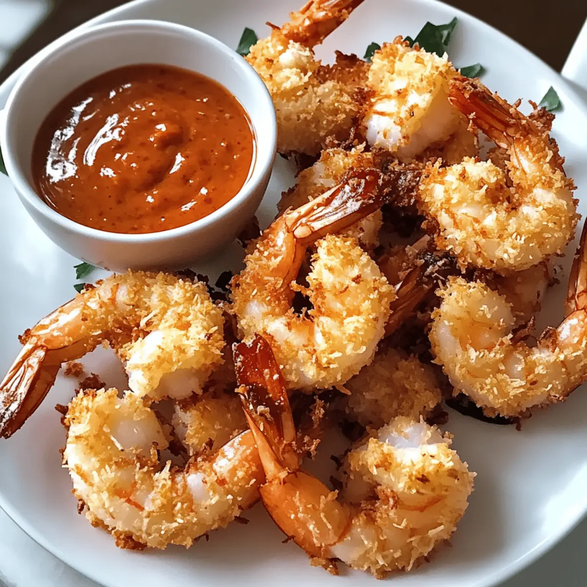 Die salzige Meeresbrise und das raschelnde Geräusch von Füßen im Sand kommen mir in den Sinn, während ich mich auf die Zubereitung der knusprigen Kokosnuss-Garnelen mit unwiderstehlicher süßer Chilisauce vorbereite. Diese Rezeptur vereint das Beste aus zwei Welten: die knusprige Textur von frittierten Garnelen und die fruchtige Frische einer Dipsauce, die jedes Treffen zu etwas Besonderem macht. Einfach zuzubereiten und perfekt für gesellige Abende oder einen entspannten Abend zu Hause – diese köstlichen, glutenfreien Häppchen werden garantiert die Aufmerksamkeit deiner Gäste auf sich ziehen. Bist du bereit, deinen nächsten kulinarischen Erfolg zu erleben? Lass uns in die Welt der leckeren Aromen eintauchen! Warum wirst du dieses Rezept lieben? Einfachheit: Die Zubereitung ist unkompliziert, sodass auch Kochanfänger mühelos glänzen können. Knuspriger Genuss: Die Kombination aus Kokosnuss und Panko sorgt für einen unwiderstehlich crunchy Biss, während die Garnelen innen zart bleiben. Vielseitig: Dieses Rezept lässt sich ganz nach deinem Geschmack anpassen – warum nicht Hähnchen oder Tofu ausprobieren? Zeitersparnis: In nur etwa 30 Minuten hast du ein köstliches Gericht, das perfekte Appetizer für deine Gäste bietet. Suchst du nach weiteren einfachen Rezepten? Schau dir auch die Thunfischfrikadellen mit scharfer Mayo oder Spicy Brazilian Coconut an. Kulturelle Einflüsse: Mit einem Hauch von asiatischem Flair wird dieses Gericht garantiert zu einem neuen Favoriten bei deinen nächsten Zusammenkünften. Zutaten für knusprige Kokosnuss-Garnelen • Für die Garnelen Garnelen – Hauptprotein, das eine zarte und saftige Basis bildet; frisch oder aufgetaut sollte man sie vor dem Beschichten abspülen und trocknen. Allzweckmehl – Sorgt für die Struktur der Panade und lässt den Teig gut haften; glutenfreies Mehl kann als Ersatz verwendet werden. Eier – Dienen als Bindemittel; gut schlagen für eine geschmeidige Mischung. Kokosraspeln – Bringen Geschmack und Textur; verleihen natürliche Süße und Knusprigkeit; ungesüßte Kokosnuss kann verwendet werden, wenn du es weniger süß magst. Panko-Brösel – Sorgt für eine leichte und knusprige Kruste; ersetze sie durch normale Brösel, wenn Panko nicht verfügbar ist. Pflanzenöl – Essentiell zum Frittieren; kann durch andere Öle mit hohem Rauchpunkt wie Raps- oder Erdnussöl ersetzt werden. Mayonnaise – Basis für die Dipsauce; verleiht Cremigkeit; griechischer Joghurt kann für eine leichtere Version verwendet werden. Süße Chilisauce – Geschmacksträger, der Süße mit mildem Schärfegrad bietet; für eine schärfere Variante kann Sriracha hinzugefügt werden. • Für die Dipsauce Mayonnaise – Die cremige Basis, die sich hervorragend mit der Süß-chili-Sauce kombiniert. Süße Chilisauce – Verleiht einen köstlichen, ausgewogenen Geschmack, der die Garnelen ergänzt. Erlebe mit diesen knusprigen Kokosnuss-Garnelen und der süßen Chilisauce einen unwiderstehlichen Appetizer, der dich und deine Gäste zum Schlemmen einlädt! Schritt-für-Schritt-Anleitung für knusprige Kokosnuss-Garnelen mit süßem Chili-Dip Step 1: Garnelen vorbereiten Spüle die Garnelen gründlich unter kaltem Wasser ab und tupfe sie mit einem Küchentuch trocken. Dies ist entscheidend, um die Knusprigkeit der knusprigen Kokosnuss-Garnelen zu gewährleisten. Achte darauf, dass die Garnelen gut abgetrocknet sind, damit die Panade besser haftet. Step 2: Panierstraße einrichten Richte drei separate Schalen ein: Fülle die erste mit Allzweckmehl, schlage die Eier in die zweite und gib die Kokosraspeln und Panko-Brösel in die dritte Schüssel. Stelle sicher, dass du genügend Platz hast, um die Garnelen einfach zu panieren und sie gleichmäßig zu beschichten. Step 3: Garnelen panieren Nimm eine Garnele und wälze sie zuerst im Mehl, sodass sie vollständig bedeckt ist. Tauche sie dann in die verquirlten Eier, bevor du sie in die Mischung aus Kokosraspeln und Panko-Bröseln rollst. Achte darauf, dass jede Garnele gleichmäßig mit der knusprigen Mischung bedeckt ist, um ein perfektes Ergebnis zu erzielen. Step 4: Öl erhitzen Erhitze in einer Pfanne etwa 1,5 cm Pflanzenöl bei mittlerer Hitze. Du kannst testen, ob das Öl heiß genug ist, indem du ein kleines Stück Brot hineingibst: Es sollte sofort zu brutzeln beginnen. Das richtige Öl sorgt dafür, dass die knusprigen Kokosnuss-Garnelen gleichmäßig frittiert werden. Step 5: Garnelen frittieren Frittiere die panierten Garnelen portionsweise für 2–3 Minuten pro Seite, bis sie goldbraun und knusprig sind. Achte darauf, die Pfanne nicht zu überladen, um eine gleichmäßige Hitzeverteilung zu gewährleisten. Wenn sie fertig sind, verwende einen Schaumlöffel, um die Garnelen auf einen mit Küchenpapier ausgelegten Teller zu legen, damit überschüssiges Öl abtropfen kann. Step 6: Dipsauce zubereiten In einer kleinen Schüssel vermenge die Mayonnaise mit der süßen Chilisauce, bis eine glatte und cremige Mischung entsteht. Diese Dipsauce ergänzt die knusprigen Kokosnuss-Garnelen perfekt und verleiht ihnen eine köstliche, fruchtige Note, die deine Geschmacksknospen anregen wird. Meal Prep für knusprige Kokosnuss-Garnelen mit süßem Chili-Dip Die knusprigen Kokosnuss-Garnelen mit süßem Chili-Dip sind perfekt für vielbeschäftigte Köche, die Zeit sparen möchten! Du kannst die Garnelen bis zu 24 Stunden im Voraus panieren und im Kühlschrank lagern. Stelle sicher, dass sie gut abgedeckt sind, damit sie nicht austrocknen. Um die Qualität zu bewahren, solltest du die Dipsauce ebenfalls früher zubereiten und in einem luftdichten Behälter aufbewahren – sie bleibt bis zu 3 Tage frisch. Wenn du bereit bist zu servieren, erhitze das Öl und frittiere die Garnelen für 2-3 Minuten pro Seite, bis sie goldbraun sind, und genieße ein köstliches Gericht mit minimalem Aufwand! Was passt zu knusprigen Kokosnussgarnelen mit süßem Chili-Dip? Genieße eine harmonische Kombina
