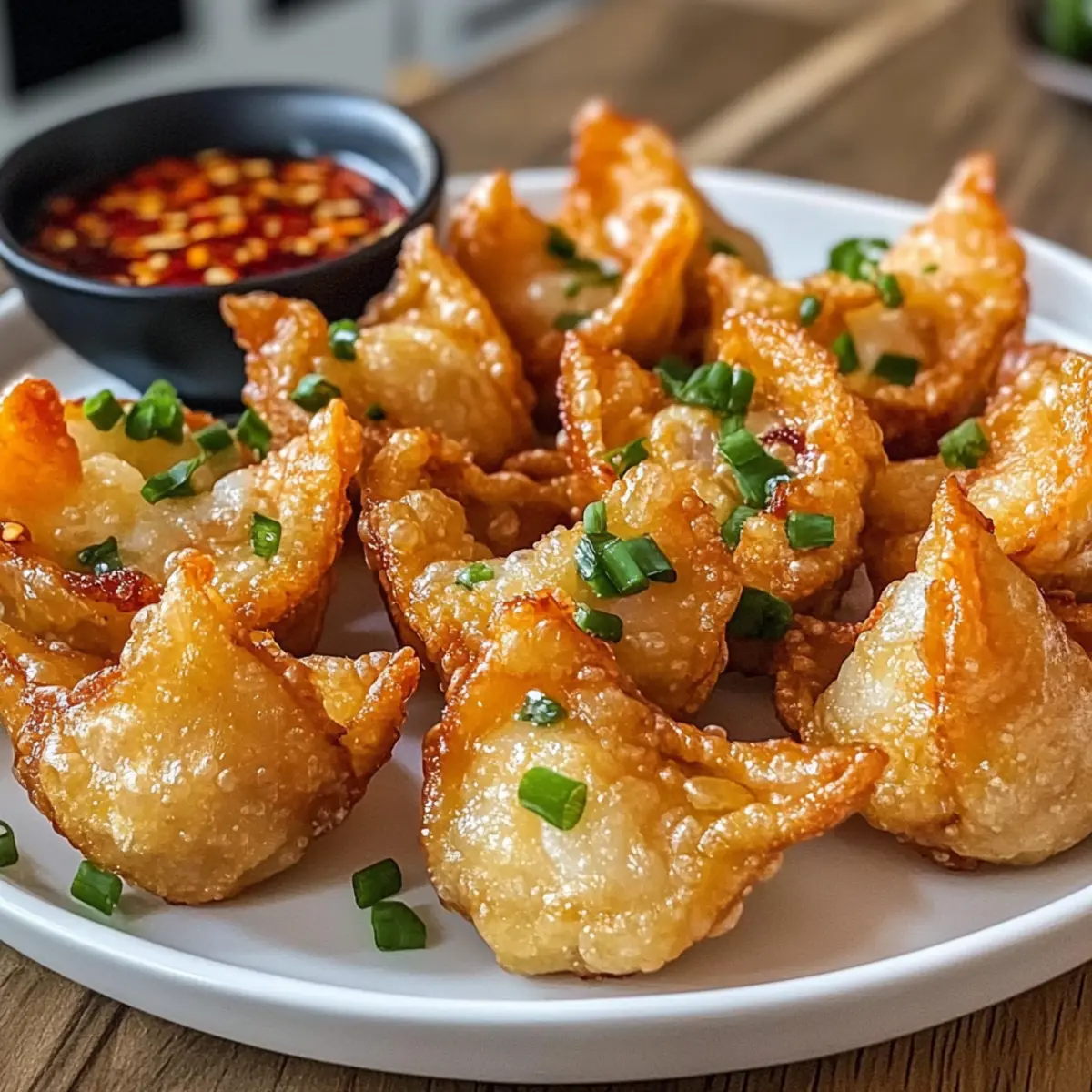 • Öltemperatur prüfen: Stelle sicher, dass das Öl heiß genug ist, bevor du die Wontons hineinlegst. Dies verhindert eine fettige Textur und sorgt für eine perfekte Knusprigkeit.