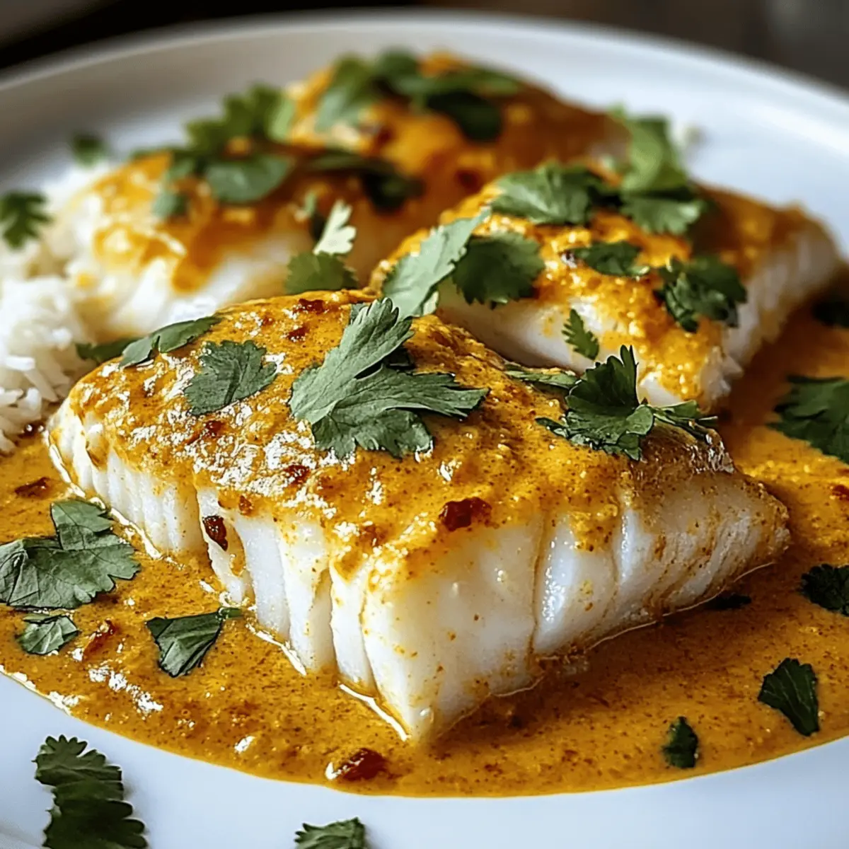 Eines abendlichen Kochen, während der sanfte Duft von Gewürzen durch die Küche zieht, kann wie ein kleines Fest für die Sinne sein. Heute lade ich euch ein, gemeinsam mit mir die Magie eines gesunden und schnellen Abendessens zu entdecken: das Rezept für gebackenen Kabeljau mit Kokosnuss-Curry. Dieses Gericht vereint die zarte Textur des Kabeljaus mit einer cremigen, reichhaltigen Currysauce, die ganz mühelos sowohl Genießer als auch Neulinge in der Fischküche begeistert. Die Kombination aus gesunden Fetten und einer Extraportion Protein macht es zu einer ausgezeichneten Wahl für alle, die sich nach einem schmackhaften und nährstoffreichen Gericht sehnen. Und das Beste? Es lässt sich in weniger als 30 Minuten zubereiten! Seid ihr bereit, euch von der Exotik der Aromen verführen zu lassen und eure Familie oder Freunde zu beeindrucken? Warum ist dieses Rezept ein Muss? Einfache Zubereitung: Der Kochprozess ist unkompliziert und benötigt nur wenig Erfahrung, ideal für alle, die schnell ein leckeres Gericht zubereiten möchten. Köstliche Aromen: Die Kombination aus Kokosmilch und Gewürzen schafft eine unvergleichliche Geschmacksexplosion, die die Sinne verwöhnt. Gesunde Entscheidung: Reich an Protein und gesunden Fetten ist dieser Kabeljau perfekt für eine nährstoffreiche Ernährung. Vielseitig einsetzbar: Variieren Sie die Schärfe des Currys nach Ihrem Geschmack und passen Sie das Rezept nach Belieben an, um es noch aufregender zu gestalten. Schnelle Zubereitungszeit: In weniger als 30 Minuten servierbereit – ideal für hektische Wochentage. Kombinieren Sie den Kabeljau mit Karibisches Kokosnuss Curry oder Spicy Kokosnuss Curry für zusätzliche Inspiration! Kokos-Curry-Zutaten • Für alle, die sich fragen, wie sie diesen schnellen und gesunden Kabeljau zubereiten können, hier sind die Zutaten! Für den Kabeljau Kabeljaufilets – Hauptprotein, das kalorienarm und proteinreich ist; sowohl frisch als auch gefroren eignen sich hervorragend. Olivenöl – Sorgt für Reichhaltigkeit und hilft, die Sauce haften zu lassen; ersetzen Sie es durch Kokosöl für ein tropisches Aroma. Für die Curry-Sauce Curry-Pulver – Verleiht Wärme und Tiefe; passen Sie die Mischung je nach Vorliebe an und stellen Sie die Schärfe ein. Kokosmilch – Basis der Sauce für die Cremigkeit; verwenden Sie leichte Kokosmilch für eine fettärmere Option. Limettensaft – Fügt Säure hinzu, um die Reichhaltigkeit auszugleichen; frische Limette ist ideal, aber Flasche funktioniert auch. Knoblauch – Verbessert das Aroma und das Geschmacksprofil; frisch ist am besten, aber Knoblauchpulver kann ersetzt werden. Ingwer – Bringt Wärme und einen Hauch von Schärfe; frischer Ingwer ist ideal, getrockneter kann verwendet werden, aber die Menge reduzieren. Salz und Pfeffer – Unverzichtbare Gewürze; nach Geschmack anpassen. Für die Garnitur Frischer Koriander – Fügt Frische und Farbe hinzu; kann durch Petersilie ersetzt werden, wenn nicht verfügbar. Mit diesen Zutaten wird Ihr Kokos-Curry-Kabeljau ein Genuss werden und bringt den tropischen Geschmack direkt auf Ihren Tisch! Step-by-Step Instructions für Cremiger Kokos-Curry-Kabeljau Step 1: Ofen vorheizen Heizen Sie den Ofen auf 190 °C (375 °F) vor, während Sie die Zubereitung der Zutaten beginnen. Dies stellt sicher, dass Ihr Kabeljau gleichmäßig gegart wird und die Aromen der Kokos-Curry-Sauce optimal entfalten können. Legen Sie ein Backblech mit Backpapier aus, um das Anhaften des Fischs zu verhindern. Step 2: Sauce zubereiten In einer großen Schüssel mischen Sie das Curry-Pulver, die Kokosmilch, den Limettensaft, den fein gehackten Knoblauch und den geriebenen Ingwer. Fügen Sie Salz und Pfeffer nach Geschmack hinzu. Rühren Sie die Mischung gut um, bis alle Zutaten gleichmäßig verteilt sind und eine cremige Sauce entsteht, die Sie später über den Kabeljau gießen werden. Step 3: Kabeljau vorbereiten Legen Sie die Kabeljaufilets sorgfältig auf das vorbereitete Backblech. Achten Sie darauf, dass die Filets nicht übereinander liegen, um ein gleichmäßiges Garen zu gewährleisten. Gießen Sie die vorbereitete Kokos-Curry-Sauce großzügig über die Kabeljaufilets, sodass sie gut bedeckt sind und die Aromen in den Fisch eindringen können. Step 4: Kabeljau backen Schieben Sie das Backblech in den vorgeheizten Ofen und backen Sie den Kabeljau für etwa 12 bis 15 Minuten. Der Fisch ist fertig, wenn er eine opake Farbe angenommen hat und sich leicht mit einer Gabel zerteilen lässt. Achten Sie darauf, den Kabeljau nicht zu lange zu garen, da er sonst trocken werden kann. Step 5: Anrichten und garnieren Nehmen Sie den gebackenen Kokos-Curry-Kabeljau vorsichtig aus dem Ofen und garnieren Sie ihn unmittelbar vor dem Servieren mit frisch gehacktem Koriander. Dies gibt dem Gericht eine schöne frische Note und sorgt für eine ansprechende Präsentation. Servieren Sie den Kabeljau warm, idealerweise über einem Bett aus gedämpftem Reis oder mit sautiertem Gemüse. Variationen für den Kokos-Curry-Kabeljau Gestalten Sie Ihr Abendessen einzigartig, indem Sie diese kreativen Anpassungen ausprobieren, um den Geschmack und die Textur zu variieren. Scharfer Kick: Fügen Sie frisch gehackte Chili zur Sauce hinzu, um eine würzige Note zu erreichen. Genießen Sie die Mischung aus scharfen und süßen Aromen! Fischwechsel: Experimentieren Sie mit anderen Fischarten wie Tilapia oder Heilbutt, die ähnliche Garzeiten haben. So bringen Sie Abwechslung auf den Tisch. Kohlenhydrataustausch: Tauschen Sie Jasmin- oder Basmatireis gegen Quinoa oder Couscous aus; diese Varianten verleihen dem Gericht zusätzliche Texturen und Nährstoffe. Vegane Option: Nutzen Sie Tofu statt Fisch, marinieren Sie diesen in der Kokos-Curry-Sauce und backen Sie ihn für 20-25 Minuten. Eine köstliche pflanzliche Variante! Kräuter-Akzent: Ersetzen Sie Koriander durch frischen Basilikum oder Petersilie, um dem Gericht eine andere Geschmacksnote zu verleihen. Diese Kräute