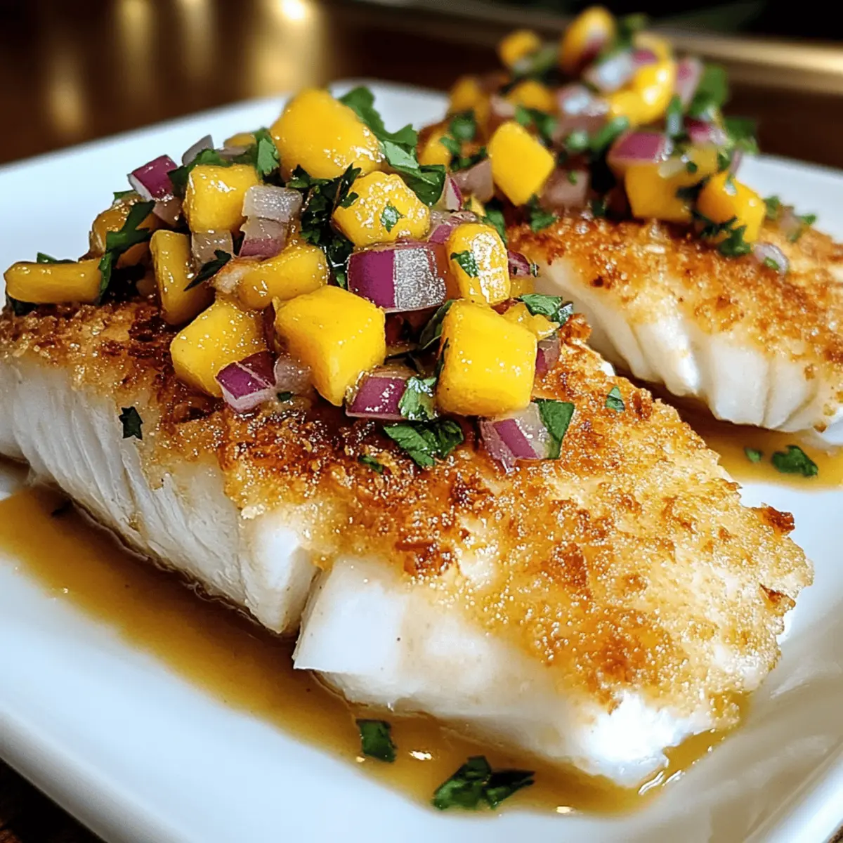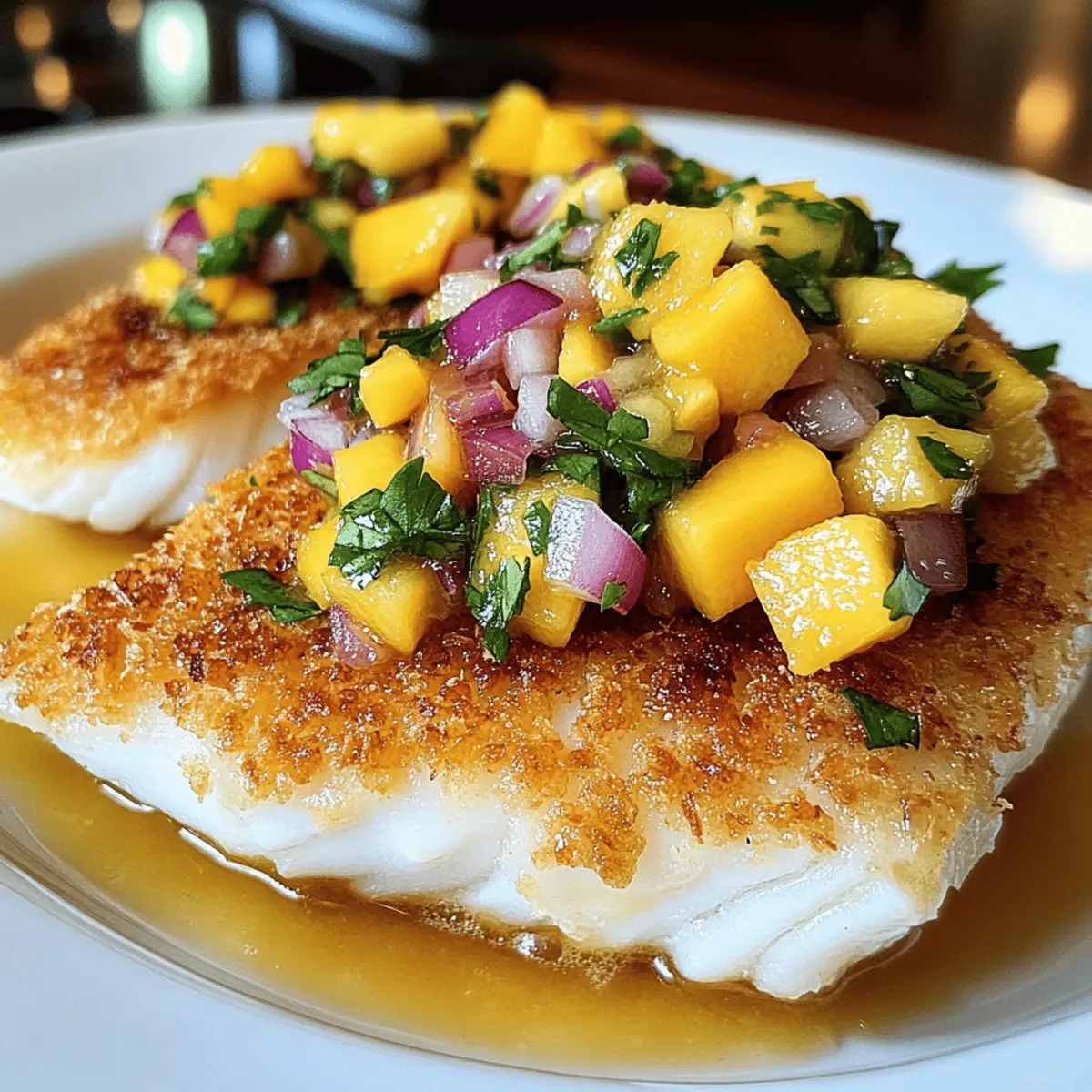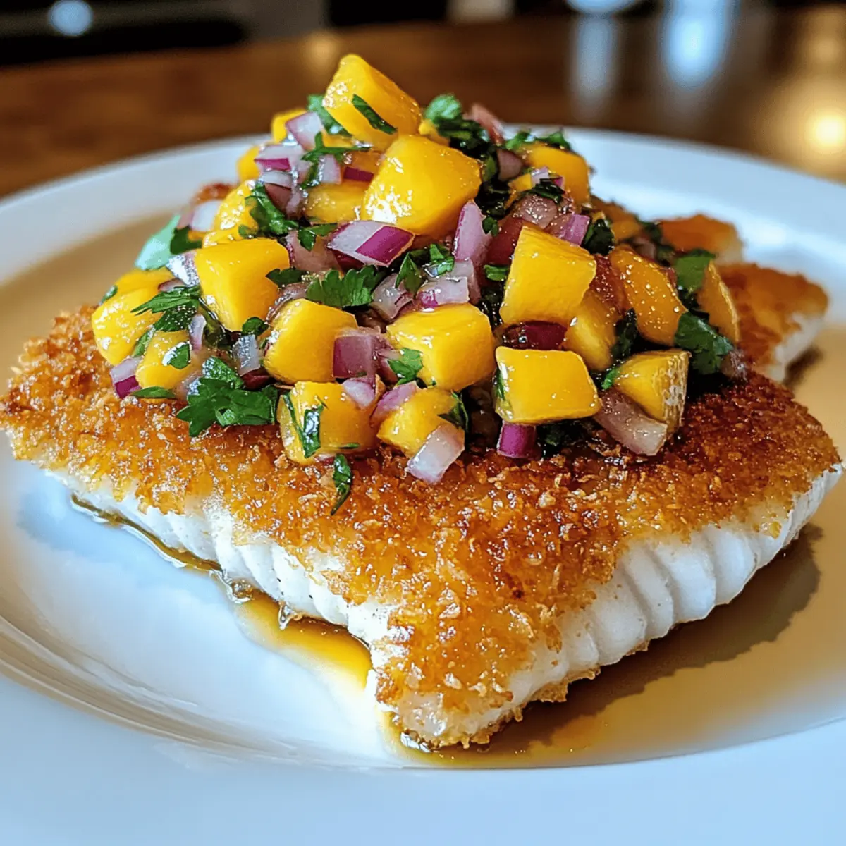 Als ich kürzlich am Strand war, erlebte ich einen wahren Gaumenschmaus, der mich sofort zurück ins Getümmel der Küche schickte. Mein Ziel: ein Rezept für Crispy Coconut Crusted Fish mit Fresh Mango Salsa. Dieses Gericht kombiniert die knusprige Konsistenz der Kokosnuss mit der frischen, spritzigen Süße der Mangosalsa – ein perfektes Zusammenspiel tropischer Aromen. Außerdem ist es in nur 30 Minuten zubereitet, was es zu einer hervorragenden Option für ein unkompliziertes Abendessen nach einem langen Tag macht. Egal, ob du einen Grillabend planst oder einfach nur eine geschmackvolle Abwechslung zu alltäglichen Mahlzeiten suchst, dieses Rezept wird dich und deine Gäste begeistern. Wie oft hast du schon das Bedürfnis verspürt, etwas Exotisches zu kreieren? Lass uns gemeinsam in die Welt der tropischen Genüsse eintauchen! Warum wirst du dieses Rezept lieben? Einfachheit, die begeistert: Die Zubereitung ist unkompliziert und benötigt nur grundlegende Kochfähigkeiten, was es ideal für alle macht. Tropische Aromen: Die Kombination aus knuspriger Kokosnuss und frischer Mangosalsa verleiht deinem Gericht einen raffinierten Hauch von Exotik. Vielseitigkeit: Egal ob für ein schnelles Abendessen oder ein Grillfest, dieses Rezept lässt sich leicht anpassen, zum Beispiel mit verschiedenen Fischarten oder sogar einer veganen Option mit Tofu. Schnell zubereitet: In nur 30 Minuten kannst du ein köstliches Gericht auf den Tisch bringen – perfekt für geschäftige Wochentage! Gemütlichkeit, die begeistert: Du wirst erstaunt sein, wie viele Gäste von diesem intensiven Geschmack begeistert sein werden. Probiere dazu auch dazu Knusprige Kokosnuss Huehnchen für eine zusätzliche, köstliche Option! Kokosnuss Fisch Zutaten • Für die Zubereitung des köstlichen Crispy Coconut Crusted Fish mit Fresh Mango Salsa, hier sind die notwendigen Zutaten: Für den Fisch Weißfischfilets – Hauptquelle für Protein, die eine tolle Textur bietet. Alternativen: Tilapia, Kabeljau oder Garnelen; für eine vegane Option, nutze Tofu oder Tempeh. Panko-Brösel – Sorgt für Knusprigkeit in der Panade. Alternativen: Glutenfreie Brösel oder zermahlene Cornflakes für eine glutenfreie Option. Geraspelte Kokosnuss – Schafft tropischen Geschmack und knusprige Textur. Hinweis: Verwende gesüßte oder ungesüßte Kokosnuss nach Vorliebe. Allzweckmehl – Dient dazu, dass das Ei an dem Fisch haftet. Große Eier (geschlagen) – Binden die Panade am Fisch. Knoblauchpulver – Fügt dem Fisch eine tolle Geschmacksnote hinzu. Salz und Pfeffer – Unverzichtbare Gewürze für den Geschmack. Öl zum Frittieren (Kokosöl empfohlen) – Unentbehrlich für eine knusprige Textur beim Frittieren. Für die Mangosalsa Reife Mango (gewürfelt) – Hauptzutat der Mangosalsa, die Süße und Frische liefert. Rote Zwiebel (fein gehackt) – Bringt Schärfe und Knackigkeit in die Salsa. Jalapeño (optional, entkernt und gehackt) – Fügt der Salsa Schärfe hinzu. Alternativen: Cayennepfeffer für zusätzliche Würze. Limettensaft – Verleiht der Salsa eine spritzige Note durch Säure. Frischer Koriander (gehackt) – Sorgt für einen herblichen Geschmack in der Salsa. Hinweis: Menge je nach Vorliebe anpassen. Salz (für die Salsa) – Verstärkt die Aromen. Schritt-für-Schritt-Anleitung für Kokosnuss Fisch mit Mango Salsa Step 1: Mangosalsa zubereiten In einer Schüssel die gewürfelte Mango, die fein gehackte rote Zwiebel, die entkernte und gehackte Jalapeño, den Limettensaft, den gehackten Koriander und eine Prise Salz miteinander vermengen. Gut umrühren, damit sich die Aromen entfalten können. Die Mangosalsa dann beiseite stellen, während du den Fisch vorbereitest. Step 2: Fischpanade vorbereiten Bereite drei flache Schalen vor: eine für das Mehl, eine für die geschlagenen Eier und eine für die Mischung aus Panko-Bröseln, geraspelter Kokosnuss, Knoblauchpulver, Salz und Pfeffer. Achte darauf, dass die Zutaten gut vermischt sind, um eine gleichmäßige Panade für den Crispy Coconut Crusted Fish zu gewährleisten. Step 3: Fisch panieren Nimm jedes Fischfilet und wende es zuerst in der Mehl-schale, sodass es vollständig bedeckt ist. Tauche das bemehlte Filet dann in die Schüssel mit den geschlagenen Eiern, bevor du es in die Mischung aus Panko und Kokosnuss drückst, bis es gleichmäßig beschichtet ist. Wiederhole dies für alle Filets. Step 4: Fisch frittieren Erhitze etwa 1/4 Zoll Kokosöl in einer Pfanne bei mittlerer Hitze. Wenn das Öl heiß ist (du kannst einen kleinen Brocken Brot hineinwerfen, um zu testen, ob es zischt), lege die panierten Fischfilets vorsichtig hinein. Brate sie für 3-4 Minuten auf jeder Seite, bis sie goldbraun und knusprig sind. Lasse die fertigen Filets auf Küchenpapier abtropfen, um überschüssiges Öl zu entfernen. Step 5: Servieren Die knusprigen Kokosnuss Fischfilets warm servieren und die frische Mangosalsa großzügig darüber geben. Dieses Gericht bietet nicht nur einen köstlichen Geschmack, sondern sieht auch fantastisch aus und sorgt für einen perfekten Abschluss deines Sommeressens. Expertentipps für Kokosnuss Fisch Öltemperatur prüfen: Stelle sicher, dass das Öl heiß genug ist, bevor du den Fisch hinzufügst. Ein kleiner Brotstück sollte beim Eintauchen zischen. Panade gleichmäßig verteilen: Achte darauf, dass der Fisch gleichmäßig mit der Mischung aus Panko und Kokosnuss bedeckt ist, um die perfekte Knusprigkeit zu erreichen. Küchenpapier nutzen: Lasse die frittierten Fischfilets auf Küchenpapier abtropfen, um überschüssiges Öl zu entfernen und die Knusprigkeit zu erhalten. Salsa frisch zubereiten: Bereite die Mangosalsa frisch zu und füge den Limettensaft erst kurz vor dem Servieren hinzu, um die Aromen optimal zur Geltung zu bringen. Variationen ausprobieren: Experimentiere mit verschiedenen Fischsorten oder verwende Tofu für die vegane Option, um deinem Gericht neue Aromen zu verleihen. Vorbereitungen für den Kokosnuss Fisch mit Mango Sal
