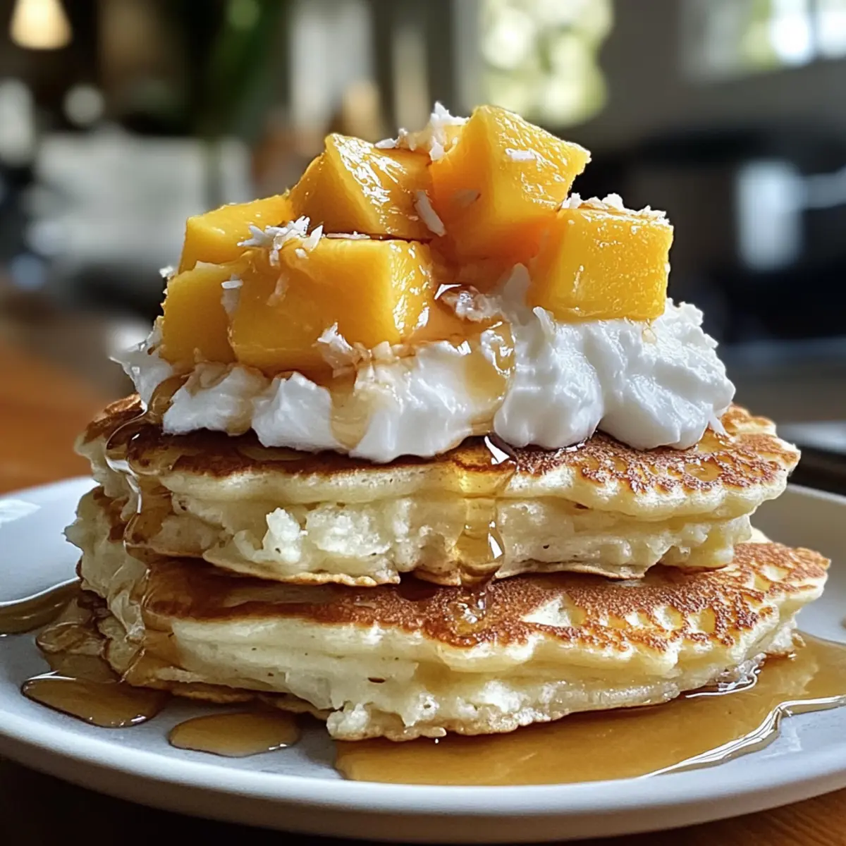 Die Sonne strahlt, während ich die ersten warmen Pfannkuchen auf den Tisch bringe. Diese Kokosnusscreme-Pfannkuchen sind nicht nur ein festlicher Genuss, sondern auch ein schnelles Frühstück, das in nur 25 Minuten zubereitet werden kann. Mit ihrer leichten, fluffigen Textur und dem verführerischen Kokosaroma bringen sie einen Hauch von tropischem Flair in jede Küche. Egal, ob für ein schnelles Frühstück oder ein entspanntes Brunch mit Freunden, diese Pfannkuchen sind ein echter Publikumsliebling und lassen sich ganz einfach anpassen – sogar für glutenfreie oder vegane Varianten. Wer könnte da widerstehen? Lass uns gemeinsam entdecken, wie du dieses leckere Rezept in deiner eigenen Küche zaubern kannst! Warum sind diese Pfannkuchen so besonders? Einfache Zubereitung: Die Kokosnusscreme-Pfannkuchen sind in nur 25 Minuten fertig, perfekt für hektische Morgen. Fluffige Textur: Jede Pfannkuchenhälfte bietet eine leichte, luftige Konsistenz, die einfach dahin schmilzt. Tropisches Aroma: Mit ihrem verführerischen Kokosduft bringen sie Urlaubsfeeling auf den Tisch. Vielseitig anpassbar: Egal ob du eine glutenfreie oder vegane Option brauchst, dieses Rezept ist leicht abwandelbar. Familienfreundlich: Diese Pfannkuchen sind ein Hit bei Groß und Klein, ideal für den Sonntagsbrunch oder die schnelle Auszeit. Entdecke auch weitere tolle Ideen für Frühstücksvariationen in unserem Beitrag über leckere Frühstücksinspirationen. Kokosnusscreme-Pfannkuchen Zutaten Für den Teig Allzweckmehl – sorgt für die Struktur; du kannst auch Vollkornmehl verwenden, um gesündere Pfannkuchen zu machen. Zucker – fügt Süße hinzu; brauner Zucker kann für ein reichhaltigeres Aroma verwendet werden. Backpulver – wirkt als Treibmittel; stelle sicher, dass es frisch ist für optimale Fluffigkeit. Backsoda – unterstützt das Backpulver für eine leichtere Textur. Salz – hebt den Geschmack; eine Prise reicht aus. Kokosmilch – sorgt für den cremigen und fruchtigen Geschmack; ersetze sie durch Mandelmilch oder normale Milch für andere Varianten. Großes Ei – fungiert als Bindemittel; ein Leinsamen-Ei ist eine gute vegane Alternative. Geschmolzene Butter – verleiht eine gewisse Fülle; du kannst auch Kokosöl für eine milchfreie Version verwenden. Vanilleextrakt – betont den Geschmack; benutze immer reinen für die besten Ergebnisse. Gesüßte Kokosraspeln – fügen Textur und zusätzlichen Kokosgeschmack hinzu; ungesüßte Raspeln können für weniger Süße verwendet werden. Entdecke die Vielfalt und den tropischen Zauber dieser Kokosnusscreme-Pfannkuchen, die nicht nur müde Gesichter aufhellen, sondern auch zu deinem Lieblingsrezept werden könnten! Schritt-für-Schritt-Anleitung für Kokosnusscreme-Pfannkuchen Step 1: Teig vorbereiten In einer großen Schüssel das Allzweckmehl, den Zucker, das Backpulver, das Backsoda und das Salz gründlich vermengen, bis eine glatte Mischung entsteht. Dies sollte etwa 2 Minuten dauern. Mische die trockenen Zutaten gut, damit die Backtriebmittel gleichmäßig verteilt sind, bevor du die feuchten Zutaten hinzufügst. Step 2: Feuchte Zutaten vermengen In einer separaten Schüssel die Kokosmilch, das Ei, die geschmolzene Butter und den Vanilleextrakt zusammenrühren, bis alles gut vermischt ist. Dies sollte etwa 1-2 Minuten in Anspruch nehmen. Achte darauf, dass die Butter nicht zu heiß ist, damit das Ei nicht gerinnt und sich gut mit den anderen Zutaten verbindet. Step 3: Teige kombinieren Gieße die feuchte Mischung zu den trockenen Zutaten und schwenke vorsichtig mit einem Spatel, bis alles gerade vermischt ist. Dies sollte nicht länger als 30 Sekunden dauern. Füge anschließend die gesüßten Kokosraspeln hinzu und hebe sie sacht unter, um eine gleichmäßige Textur zu gewährleisten. Step 4: Pfanne erhitzen Erhitze eine leicht gefettete, beschichtete Pfanne auf mittlerer Hitze, bis ein Wassertropfen sofort zischt, wenn du ihn hinzufügst. Dies dauert etwa 2 Minuten. Achte darauf, dass die Pfanne nicht zu heiß wird, um ein gleichmäßiges Bräunen der Pfannkuchen zu gewährleisten. Step 5: Pfannkuchen braten Gieße für jeden Pfannkuchen etwa 60 ml des Teigs in die Pfanne. Warte, bis sich Blasen an der Oberseite bilden und die Ränder fest aussehen, was ungefähr 2-3 Minuten dauert. Drehe die Pfannkuchen dann um und brate sie auf der anderen Seite für weitere 1-2 Minuten, bis sie goldbraun sind. Step 6: Servieren Serviere die warmen Kokosnusscreme-Pfannkuchen sofort mit Kokoscreme, Ahornsirup oder frischen Früchten nach Wahl. Diese Pfannkuchen schmecken am besten direkt nach dem Braten und bringen einen Hauch von tropischem Genuss auf deinen Tisch. Was passt zu Kokosnusscreme-Pfannkuchen? Die perfekte Kombination aus Aromen und Texturen macht ein Frühstück erst richtig unvergesslich. Lass dich von diesen köstlichen Begleitern inspirieren! Frische Früchte: Tropische Früchte wie Mango oder Ananas bringen einen fruchtigen Kontrast und erfrischen das Gericht. Ihre Süße ergänzt die Pfannkuchen perfekt. Griechischer Joghurt: Ein Klecks cremiger Joghurt fügt eine herzhafte Note hinzu. Er sorgt nicht nur für eine schöne Textur, sondern auch für einen proteinreichen Kick. Ahornsirup: Der süße, goldene Sirup ist ein klassischer Pfannkuchenbegleiter. Sein warmer Geschmack harmoniert wunderbar mit dem Kokosaroma und verwandelt jede Portion in ein wahres Erlebnis. Kokoscreme: Für echte Kokosliebhaber ist eine großzügige Portion Kokoscreme der absolute Höhepunkt. Sie fügt eine extra Cremigkeit hinzu, die das tropische Gefühl unterstreicht. Nüsse: Knackige Nüsse wie Mandeln oder Walnüsse verleihen den Pfannkuchen Textur und einen nussigen Geschmack. Sie sind eine gesunde Option, die zusätzlich einen Crunch as Platz auf dem Teller bringt. Kräutertee: Ein milder Kräutertee rundet das Frühstück angenehm ab. Seine sanften Aromen passen hervorragend zu den süßen Pfannkuchen und sorgen für einen entspannenden Start in den 