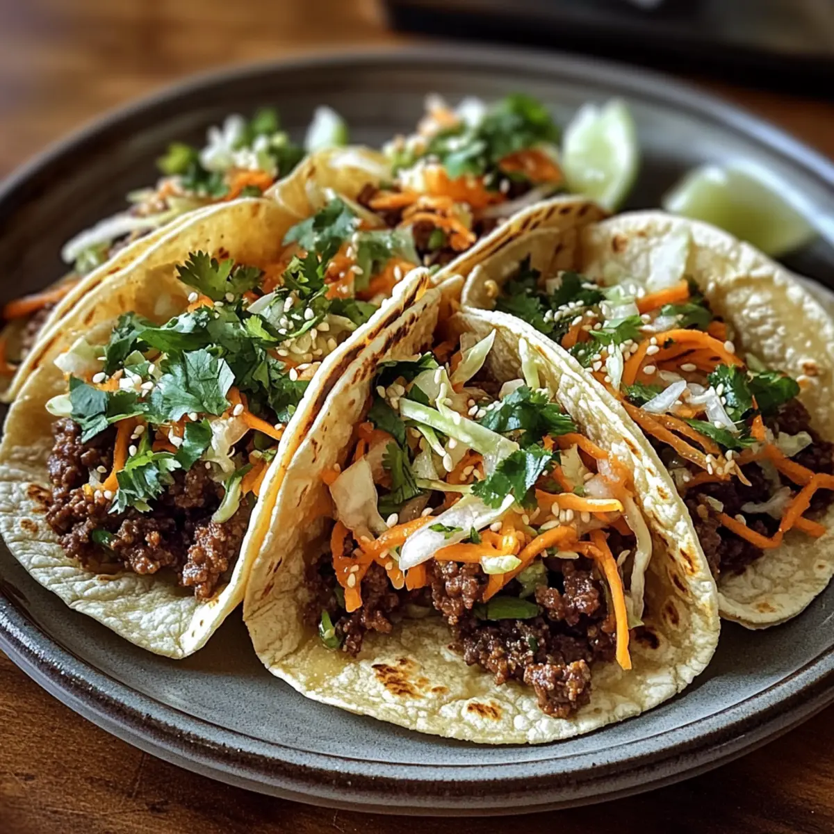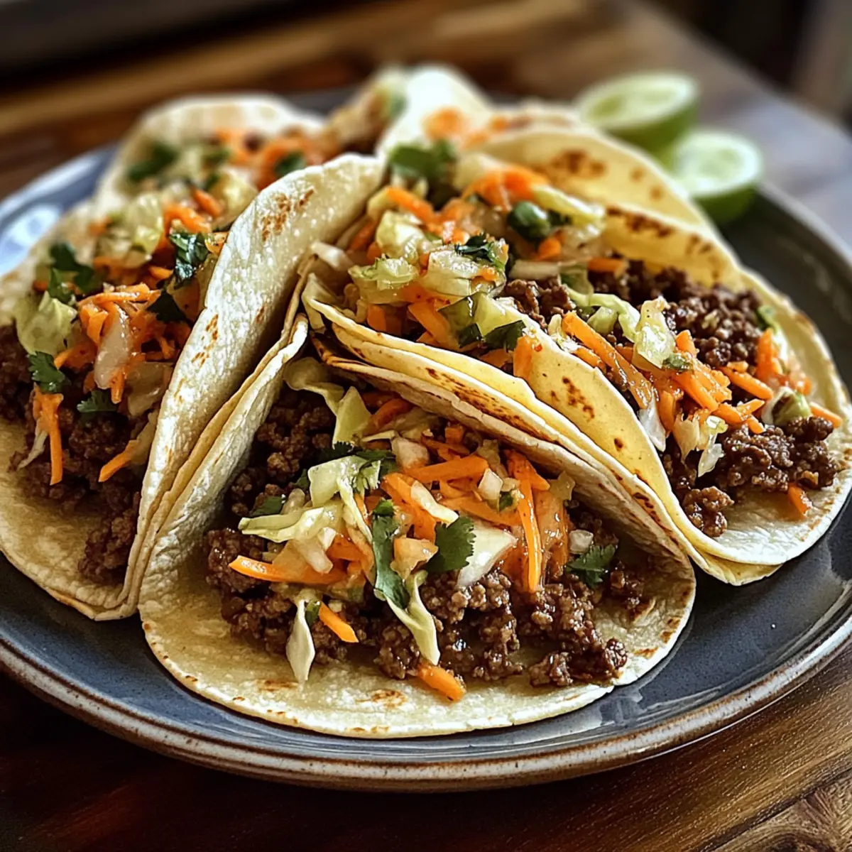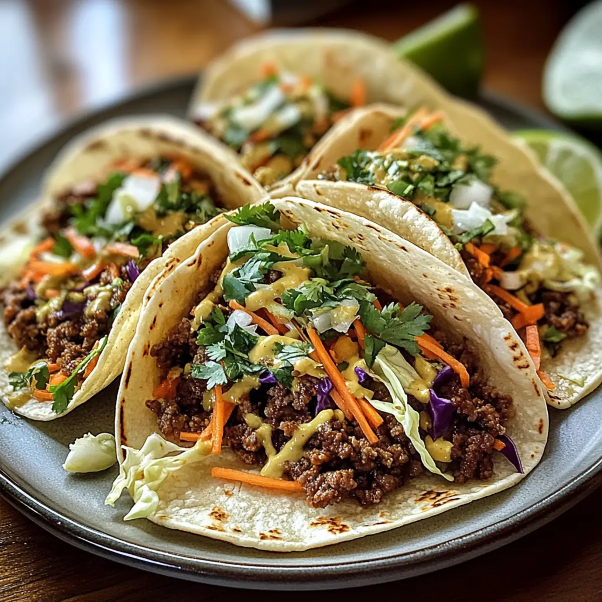 Der erste Biss in die Koreanischen Rindfleisch-Tacos mit würzigem Gochujang-Slaw ist wie eine kulinarische Reise nach Seoul, direkt auf Ihrem Teller. Diese Fusion bringt zart mariniertes Rindfleisch und frische, knusprige Slaw-Zutaten zusammen, um Ihre Taco-Nights auf ein neues Level zu heben. Mit nur 25 Minuten Vorbereitungszeit sind diese Tacos nicht nur schnell und einfach zuzubereiten, sondern auch ein echter Publikumsmagnet. Das Zusammenspiel aus der süß-würzigen Gochujang-Sauce und der frischen Limette macht jeden Bissen zu einem unwiderstehlichen Geschmackserlebnis. Glauben Sie mir, diese einfachen, aber geschmackvollen Tacos werden Ihre Familie und Freunde in den Genuss der koreanischen Küche einführen. Welche kreative Note würden Sie hinzufügen, um Ihre Version zu verfeinern? Warum lieben Sie diese Taco-Rezeptur? Einfachheit: Die Zubereitung ist unkompliziert und erfordert nur grundlegende Kochfähigkeiten, perfekt für Anfänger. Vielfältige Aromen: Die Kombination aus süßem Gochujang und frischem Limettensaft sorgt für ein geschmackliches Erlebnis, das Sie so schnell nicht vergessen werden. Schnelle Zubereitung: In nur 25 Minuten sind diese köstlichen Tacos servierfertig. Ideal für hektische Wochentage! Perfekte Texturen: Der kontrastreiche, knackige Slaw und das zarte Rindfleisch in warmen Tortillas machen jeden Bissen zu einem Genuss. Kreative Anpassungen: Sie können die Füllung nach Belieben variieren, z.B. mit anderen Proteinen oder Gemüsesorten, um Ihren eigenen Twist zu verleihen. Vielleicht zu diesen leckeren Air Fryer Karottenchips als Beilage? Diese Tacos sind ein Hit bei jedem Essen und werden sicher auch Ihre Gäste begeistern! Zutaten für Koreanisches Rindfleisch-Tacos • Eine einfache und schmackhafte Liste, die Ihre Geschmacksknospen verzaubern wird! Für die Füllung Gemischtes Rindfleisch – für einen reichen und herzhaften Geschmack; kann auch durch Schweine- oder Geflügelhack ersetzt werden. Knoblauch (3 Zehen, gehackt) – bringt ein aromatisches Flair; keinerlei Ersatz empfohlen. Ingwer (1 Teelöffel, gehackt) – fügt eine würzige Note hinzu; frisch ist am besten, aber Pulver geht auch. Gochujang (2 Esslöffel) – der Star der Füllung mit süßem und scharfem Geschmack; für mildere Tacos auf 1 Esslöffel reduzieren. Sojasauce (2 Esslöffel) – sorgt für umami und Salzigkeit; verwenden Sie Tamari für eine glutenfreie Option. Brauner Zucker (1 Esslöffel) – balanciert die Aromen; Honig kann auch verwendet werden. Sesamöl (1 Teelöffel) – gibt eine nussige Note; Olivenöl kann als Ersatz dienen, jedoch mit verändertem Geschmacksprofil. Für die Tortillas und den Slaw Mais-Tortillas (8 kleine) – die perfekte Basis für Ihre Tacos; lässt sich auch durch Salatblätter für eine kohlenhydratarme Option ersetzen. Kohl (2 Tassen, gerieben) – sorgt für den nötigen Crunch; Napa-Kohl kann für eine süßere Variante verwendet werden. Karotte (1 mittelgroße, julienne) – bringt Süße und Farbe ins Spiel; andere knackige Gemüsesorten wie Gurken können auch gut funktionieren. Reisessig (2 Esslöffel) – gibt dem Slaw einen säuerlichen Kick; Apfelessig ist ein geeigneter Ersatz. Limettensaft (1 Esslöffel) – belebt die Aromen; frischer Limettensaft ist am besten. Mayonnaise (1 Esslöffel) – sorgt für eine cremige Textur; Greek Yogurt oder vegane Mayonnaise können als Alternativen genutzt werden. Für das Garnieren Frischer Koriander (2 Esslöffel, gehackt) – bringt Frische; kann bei Bedarf weggelassen oder durch Petersilie ersetzt werden. Sesamkörner (1 Esslöffel) – für zusätzlichen Crunch; optional und kann weggelassen werden. Limettenviertel – für den erfrischenden Spritzer beim Servieren; keine Ersatzstoffe nötig. Diese Zutaten machen Ihr Erlebnis mit Koreanischen Rindfleisch-Tacos mit würzigem Gochujang-Slaw zu etwas ganz Besonderem! 🍽️ Schritt-für-Schritt-Anleitung für Koreanische Rindfleisch-Tacos mit würzigem Gochujang-Slaw Step 1: Rinderfleisch-Mischung vorbereiten In einer Schüssel das gemischte Rindfleisch, gehackten Knoblauch, Ingwer, gochujang, Sojasauce, braunen Zucker, Sesamöl, sowie Salz und Pfeffer gründlich vermengen. Achten Sie darauf, dass alles gleichmäßig gut vermischt ist, damit jedes Bisschen der Koreanischen Rindfleisch-Tacos mit würzigem Gochujang-Slaw den richtigen Geschmack erhält. Step 2: Rindfleisch anbraten Eine Pfanne bei mittlerer bis hoher Hitze erhitzen und die vorbereitete Rinderfleisch-Mischung hinzufügen. Mit einem Holzlöffel das Fleisch zerkleinern und für etwa 6 bis 8 Minuten braten, bis es schön gebräunt und vollständig durchgegart ist. Das Fleisch sollte eine appetitliche Farbe haben und nicht mehr rosa sein. Step 3: Slaw zubereiten In einer separaten Schüssel den geriebenen Kohl, die julienned Karotte, Reisessig, Limettensaft, Mayonnaise, Sesamöl sowie Salz und Pfeffer gut vermengen. Rühren Sie die Mischung so lange um, bis das Gemüse gleichmäßig mit der cremigen Soße überzogen ist. Diese Slaw ist eine großartige Ergänzung und bringt Frische in die Koreanischen Rindfleisch-Tacos. Step 4: Tortillas erwärmen Die Mais-Tortillas in einer trockenen Pfanne bei mittlerer Hitze für etwa 30 Sekunden auf jeder Seite erwärmen, bis sie weich und biegsam sind. Alternativ können Sie die Tortillas in Folie wickeln und im Ofen für mehrere Minuten erwärmen. So bleiben sie warm und bereit für die Füllung. Step 5: Tacos zusammenstellen Füllen Sie jede warme Tortilla mit einer großzügigen Portion des gebratenen Rindfleischs und toppen Sie die Füllung mit dem knusprigen, würzigen Gochujang-Slaw. Achten Sie darauf, dass die Tacos gut gefüllt sind, damit jeder Bissen eine Geschmacksexplosion bietet. Step 6: Servieren Geben Sie die fertigen Tacos auf einen Servierteller und garnieren Sie sie mit gehacktem Koriander und optionalen Sesamkörnern. Servieren Sie die Tacos mit Limettenvierteln, die man über die Tacos auspressen kann, um zusätzli