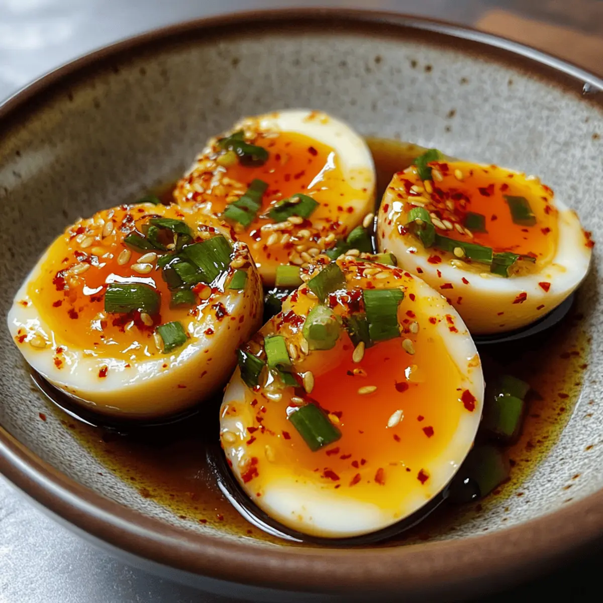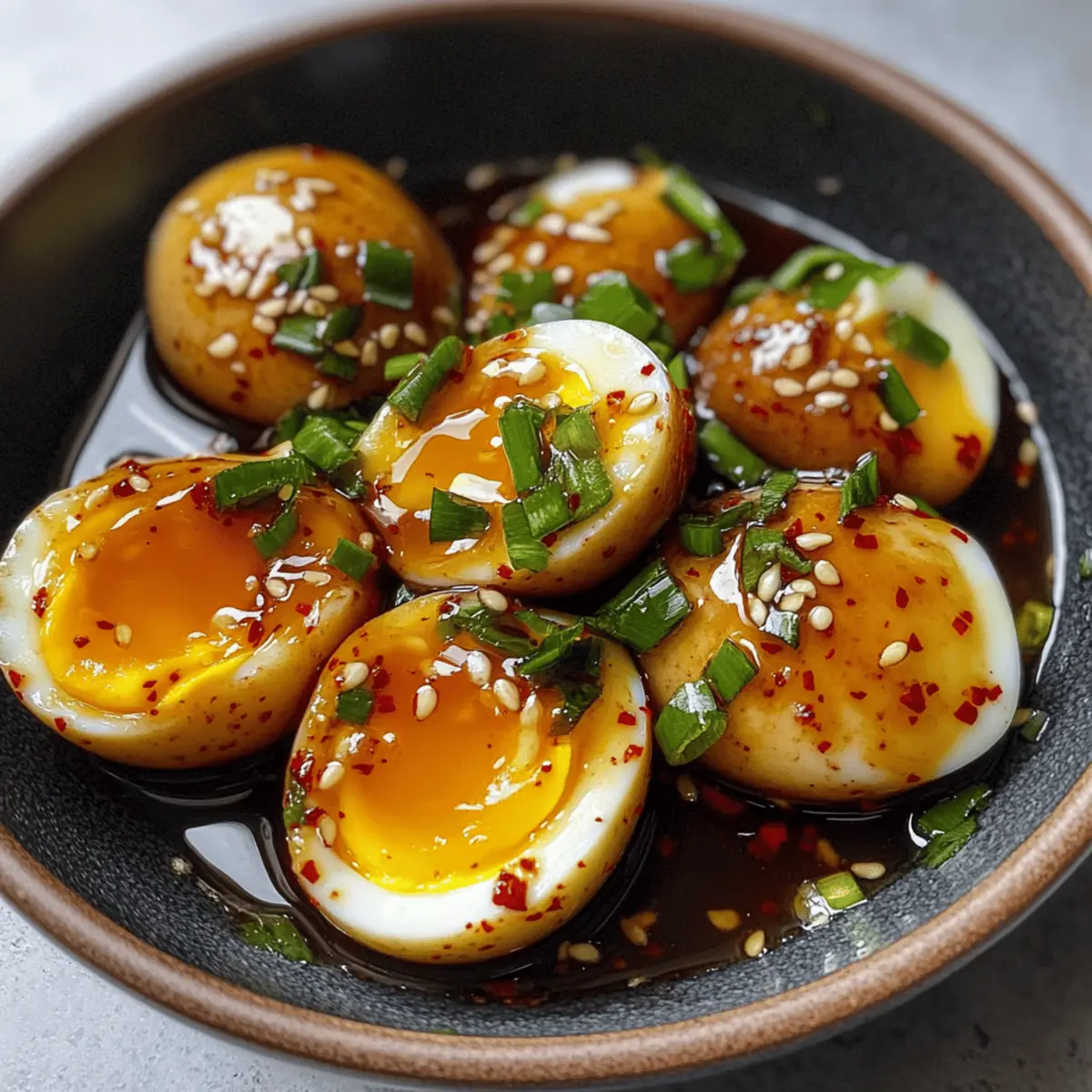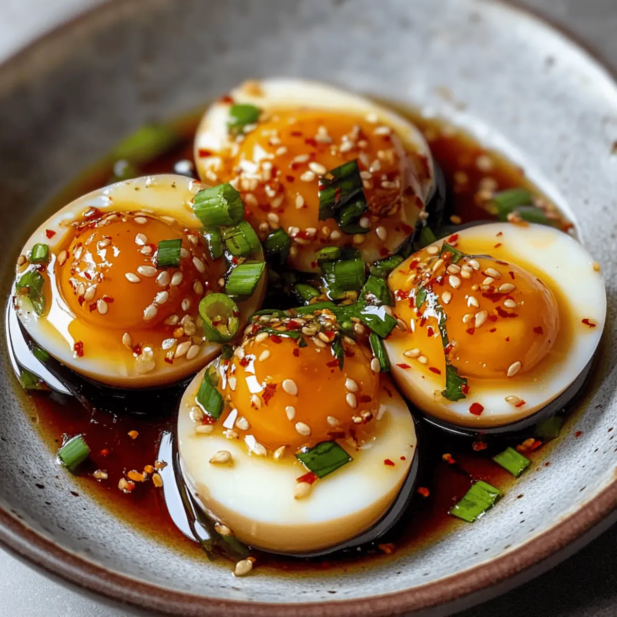 Es gibt Momente im Leben, die einen mit einem kleinen Geschmacksexplosion erfreuen können. Die Zubereitung von Korean Soy Marinated Eggs, auch bekannt als Mayak Eggs, ist genau so ein Moment. Diese zarten, in Sojasauce marinierten Eier überraschen mit ihrer umami-reichen Tiefe und dem subtilen Süßgeschmack, der durch Knoblauch, Chili und Frühlingszwiebeln ergänzt wird. Mit nur wenigen Zutaten und einer schnellen Vorbereitung sind sie der perfekte gesunde Snack und eine raffinierte Beilage, die im Handumdrehen auf den Tisch kommt. Oh, und das Beste? Sie lassen sich leicht an euren eigenen Schärfegrad anpassen! Vielleicht fragt ihr euch, wie ein so einfaches Gericht einen solchen Wow-Faktor erreichen kann? Lasst es uns gemeinsam herausfinden! Warum sind Mayak Eggs so beliebt? Einfachheit: Die Zubereitung erfordert nur wenige Zutaten und ist schnell erledigt, perfekt für alle, die Wert auf leckeres Essen legen. Vielseitigkeit: Ob als Snack, Beilage oder raffinierte Frühstückszutat – diese Eier passen zu jedem Anlass und lassen sich leicht in verschiedenen Gerichten integrieren. Probiert sie doch einmal auf Avocado-Toast! Einzigartiger Geschmack: Der harmonische Mix aus Sojasauce, Knoblauch und optionalem Chili sorgt für ein unverwechselbares Geschmackserlebnis, das jeden begeistert. Gesund und nährstoffreich: Diese Eier sind nicht nur lecker, sondern auch proteinreich und kalorienarm – ideal für eine ausgewogene Ernährung. Crowd-Pleaser: Ob beim Familienessen oder mit Freunden, Mayak Eggs ziehen die Blicke auf sich und sind ein echter Gesprächsthema. Koreanische Sojasoße Marinierte Eier Zutaten Für die Eier 6 große Eier – Die Basis des Gerichts, die eine cremige Textur bietet. Auf Frische achten für beste Ergebnisse. Kaltes Wasser – Wird zum Kochen der Eier verwendet, um die richtige Textur zu erzielen. Eis – Für ein Eisbad, um den Garprozess zu stoppen. Für die Marinade 1/2 Tasse Sojasauce – Sorgt für den würzigen Umami-Geschmack; kann auch niedrigen Natriumgehalt haben. 1/2 Tasse Wasser – Verdünnt die Marinade, um die Aromen auszubalancieren. 2 Esslöffel Reisessig – Fügt der Marinade eine angenehme Säure hinzu. 1 Esslöffel brauner Zucker – Bringt Süße, die die Salzigkeit der Sojasauce ausgleicht. 1 Esslöffel Honig (optional) – Verstärkt die Süße und Tiefe; kann weggelassen werden, um den Zuckergehalt zu reduzieren. 2 Knoblauchzehen (gehackt) – Verleiht der Marinade aromatischen Geschmack. 1 kleine rote oder grüne Chili (dünn geschnitten) – Optional für Schärfe; je nach Vorliebe anpassen. 2 Frühlingszwiebeln (gehackt) – Fügt Frische und Crunch zur Marinade hinzu. 1 Teelöffel geröstete Sesamsamen – Als Garnitur, die einen nussigen Geschmack verleiht. 1 Teelöffel Sesamöl – Fügt Reichhaltigkeit hinzu und verstärkt die Tiefe der Marinade. Schritt-für-Schritt-Anleitung für Koreanische Sojasoße Marinierte Eier Step 1: Eier kochen Fülle einen mittelgroßen Topf mit Wasser und bringe es zum Kochen. Wenn das Wasser sprudelnd kocht, senke vorsichtig die 6 großen Eier hinein und lasse sie 7 Minuten lang kochen, um einen weicheren, cremigen Eigelb zu erreichen. Die Eier sollten am Ende glatt und glänzend sein. Step 2: Eisbad bereiten Bereite während des Kochens eine große Schüssel mit Eiswasser vor. Mit einem Schaumlöffel nimm die Eier nach 7 Minuten aus dem Kochtopf und gib sie sofort in das Eisbad. Lass die Eier mindestens 5 Minuten im Eiswasser liegen, um den Kochprozess zu stoppen und die perfekte Textur zu erhalten. Step 3: Eier schälen Nach dem Abkühlen klopfe die Eier sanft auf einer harten Oberfläche, um die Schale zu lösen. Schäle die Eier vorsichtig unter fließendem kaltem Wasser, dadurch minimierst du das Risiko von Rissen und erhältst eine schöne, glatte Oberfläche. Diese perfekt geschälten Eier sind bereit für die Marinade. Step 4: Marinade zubereiten In einer großen Rührschüssel gib die 1/2 Tasse Sojasauce, 1/2 Tasse Wasser, 2 Esslöffel Reisessig, 1 Esslöffel braunen Zucker, den optionalen Honig, 2 gehackte Knoblauchzehen, die dünn geschnittene Chili, die gehackten Frühlingszwiebeln, 1 Teelöffel geröstete Sesamsamen und 1 Teelöffel Sesamöl zusammen. Vermische alles gründlich, bis der Zucker sich vollständig aufgelöst hat und die Marinade ein einheitliches Aussehen hat. Step 5: Eier marinieren Nimm die geschälten Eier und lege sie in ein geeignetes Glasgefäß oder eine verschließbare Box. Gieße die vorbereitete Marinade über die Eier, sodass sie vollständig untergetaucht sind. Wenn nötig, lege ein Stück Pergamentpapier darüber, um die Eier unter der Marinade zu halten. Diese Schritte sorgen dafür, dass die Koreanischen Sojasoße Marinierte Eier den vollen Geschmack aufnehmen. Step 6: Kühlen Decke das Glas oder die Box ab und stelle sie für mindestens 6 Stunden in den Kühlschrank. Für das beste Ergebnis lasse die Eier über Nacht marinieren, damit sie den vollen Geschmack der Marinade aufnehmen können. Dadurch entwickeln die Mayak Eggs eine tiefere Geschmacksintensität. Step 7: Servieren und genießen Wenn die Marinierzeit vorbei ist, nehme die Eier aus dem Kühlschrank. Schneide sie vorsichtig in der Mitte durch, um das wunderschöne, cremige Eigelb zu zeigen. Serviere die Koreanischen Sojasoße Marinierte Eier kalt oder bei Zimmertemperatur, garniert mit etwas zusätzlicher Marinade und gerösteten Sesamsamen für einen extra Crunch. Was passt zu Koreanischen Sojasoße Marinierten Eiern? Es gibt unzählige Möglichkeiten, dein Essensangebot zu erweitern und auf die köstlichen, würzigen Aromen dieser marinierten Eier abzustimmen. Avocado-Toast: Frisch und cremig, die Avocado ergänzt die umami-reichen Eier perfekt für ein ausgewogenes Frühstück. Kimchi: Die Schärfe und der saure Geschmack harmonieren wunderbar mit den weichen Eiern und bringen ein traditionelles koreanisches Element ins Spiel. Gedämpfte Grünkohl: Die zarten Blätter bieten eine frische Tex