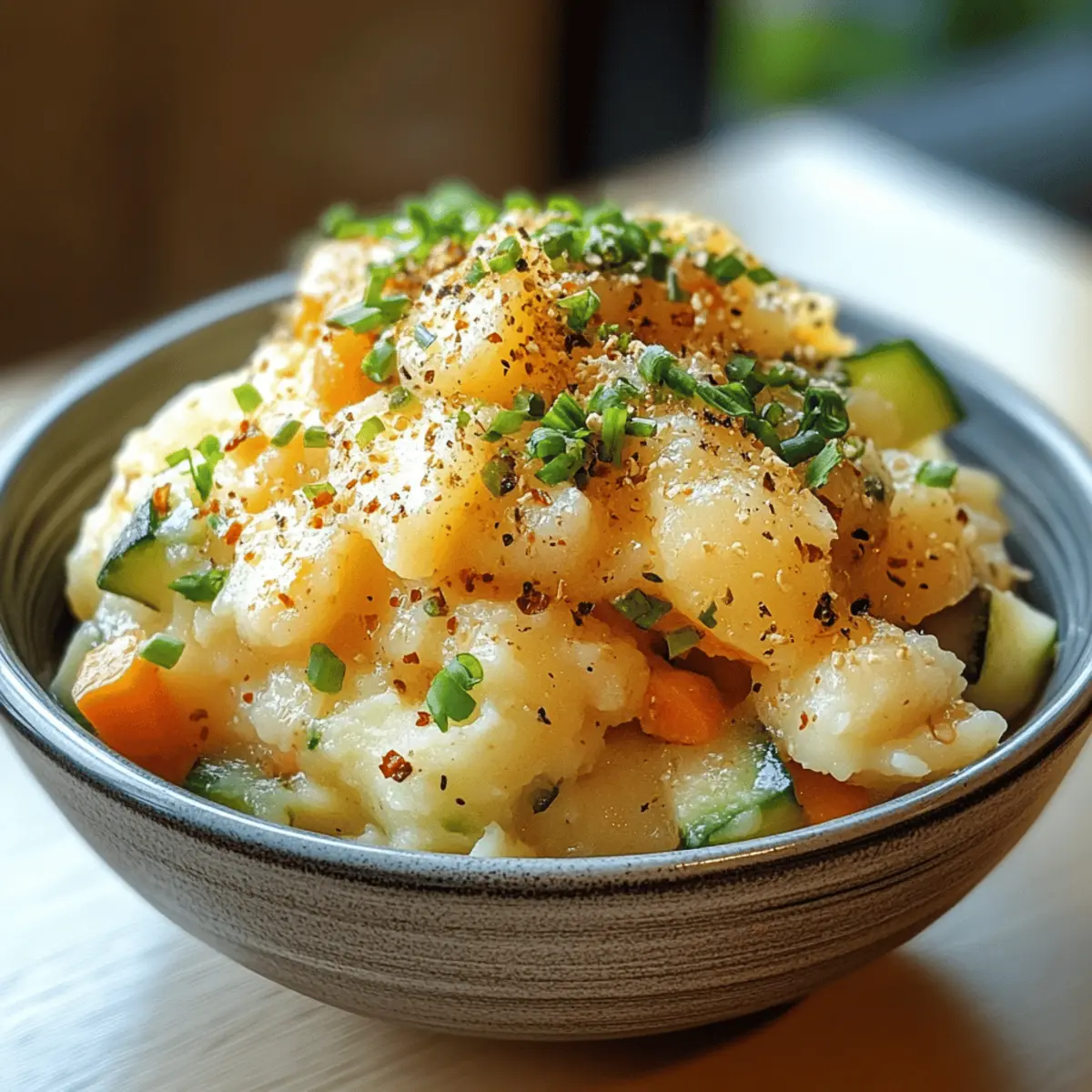 Stell dir vor, du bist an einem warmen Sommerabend, umgeben von Freunden und allerlei köstlichen Speisen. In der Mitte des Tisches steht eine große Schüssel voller cremiger, koreanischer Kartoffelsalat – Gamja Salad. Diese wunderbar vielseitige Beilage ist nicht nur ein echter Blickfang, sondern auch der Ausgang für herzliche Gespräche und gemeinsame Erinnerungen. Das Besondere an diesem Salat sind die knackigen frischen Gemüse, die ihn von herkömmlichen Kartoffelsalaten abheben, sowie die harmonisch süße und cremige Note. Zudem ist er ruckzuck zubereitet und somit ideal für spontane Zusammenkünfte oder den Lunchbox deiner Familie. Hast du Lust, das Rezept für diesen beliebten Klassiker auszuprobieren? Warum ist dieser Kartoffelsalat so besonders? Vielseitig: Gamja Salad ist unglaublich anpassungsfähig – füge einfach deine Lieblingsgemüse oder Proteine wie Hähnchen oder Schinken hinzu, um deinem persönlichen Geschmack gerecht zu werden. Cremiger Genuss: Die Kombination aus Kartoffeln, Mayonnaise und frischen Zutaten sorgt für ein unvergessliches Geschmackserlebnis. Einfache Zubereitung: Mit nur wenigen Schritten hast du einen leckeren Salat fertig, der perfekt für jedes Familienessen oder eine Grillparty ist. Freundlicher Genuss: Diese Beilage bringt Menschen zusammen und sorgt für gesellige Momente – ideal für Grillabende oder als Teil einer schnellen Lunchbox. Entdecke auch unsere Oats Rezept Das für weitere köstliche Ideen! Zutaten für den koreanischen Kartoffelsalat • Gamja Salad ist einfach und schnell zuzubereiten, während du die Zugabe deiner Lieblingszutaten anpassen kannst. Für den Salat Kartoffeln – liefern die Grundlage; wähle stärkehaltige Sorten wie Russet für eine cremigere Textur. Mayonnaise – sorgt für Cremigkeit und Reichtum; ersetze sie durch griechischen Joghurt für eine leichtere Variante. Zucker – balanciert die Aromen und verstärkt die Süße; passe die Menge nach deinem persönlichen Geschmack an. Essig – fügt Säure hinzu, um das Gericht aufzuhellen; Reisessig ist traditionell, aber Apfelessig funktioniert ebenso gut. Gemüse (z.B. Karotten, Erbsen) – sorgt für Kniff und Farbe; fühle dich frei, deine Lieblingssorten hinzuzufügen. Gekochte Eier – tragen Protein und eine cremige Textur bei; optional, kann für eine vegetarische Version weggelassen werden. Äpfel oder Mais – süße Ergänzungen für eine einzigartige Note; können je nach Verfügbarkeit ausgetauscht werden. Für die Garnierung Frische Kräuter (z.B. Petersilie, Schnittlauch) – bringen frischen Geschmack und eine schöne Präsentation. Paprikastücke – fügen Farbe und etwas Knackigkeit hinzu; ideal als hübsches Topping. Das ist alles, was du brauchst, um deinen eigenen herrlichen Gamja Salad zuzubereiten. Lass deiner Kreativität freien Lauf und genieße diesen köstlichen Salat, der der Ausgang für viele schöne Momente mit Freunden und Familie sein kann! Schritt-für-Schritt-Anleitung für den koreanischen Kartoffelsalat Step 1: Kartoffeln kochen Bring einen großen Topf mit Wasser zum Kochen und füge die geschälten Kartoffeln hinzu. Lasse sie bei mittlerer Hitze etwa 15–20 Minuten kochen, bis sie mit einer Gabel leicht durchstechbar sind. Gieße das Wasser ab und lasse die Kartoffeln auf einem Küchentuch vollständig abkühlen, damit sie die perfekte cremige Basis für deinen Gamja Salad bieten. Step 2: Kartoffeln pürieren Sobald die Kartoffeln abgekühlt sind, gib sie in eine große Schüssel. Verwende einen Kartoffelstampfer, um die Kartoffeln nach gewünschter Konsistenz zu zerdrücken – entweder glatt oder stückig. Dieser Schritt ist entscheidend, um die perfekte Basis für den Salat zu schaffen und die Aromen später besser zu verbinden. Step 3: Sauce zubereiten Füge nun die Mayonnaise, den Zucker und den Essig zu den pürierten Kartoffeln hinzu. Rühre alles gut um, bis die Mischung cremig und gleichmäßig ist. Diese Kombination sorgt dafür, dass dein Gamja Salad eine harmonische Süße und die nötige Frische erhält, die ihn so besonders macht. Step 4: Gemüse und Eier hinzufügen Jetzt ist es an der Zeit, die gewürfelten Gemüse wie Karotten und Erbsen hinzugeben. Mische auch die gekochten Eier, falls du sie verwendest. Rühre sanft um, um sicherzustellen, dass alles gleichmäßig verteilt ist, ohne die Kartoffeln zu zerdrücken. Die bunten Gemüse sorgen für einen schönen Kontrast und zusätzliche Textur. Step 5: Kühlen und durchziehen lassen Decke die Schüssel mit Frischhaltefolie ab und stelle sie für mindestens 30 Minuten in den Kühlschrank. Dies hilft, die Aromen des Gamja Salad intensiver werden zu lassen und ergibt eine erfrischende, köstliche Beilage. Du wirst überrascht sein, wie sehr die Kühlung den Geschmack verbessert! Step 6: Anrichten und garnieren Vor dem Servieren kannst du den Salat nach Belieben mit frischen Kräutern oder Paprikastücken garnieren. Diese letzten Details bringen nicht nur Farbe auf den Tisch, sondern verleihen deinem koreanischen Kartoffelsalat auch eine extra Geschmacksnote. Serviere den Salat kalt und genieße die begeisterten Reaktionen deiner Gäste! Meal Prep für den koreanischen Kartoffelsalat (Gamja Salad) Gamja Salad ist perfekt für die Vorbereitung, was dir wertvolle Zeit an hektischen Tagen spart! Du kannst die gekochten und pürierten Kartoffeln bis zu 24 Stunden im Voraus zubereiten und im Kühlschrank aufbewahren, um die Aromen zu intensivieren. Auch das Schneiden der Gemüse und das Kochen der Eier sind bis zu 3 Tage vor dem Servieren möglich – einfach in einem luftdichten Behälter lagern. Achte darauf, die Mayonnaise erst kurz vor dem Servieren hinzuzufügen, um die Cremigkeit zu bewahren. Wenn du bereit bist, den Salat zu genießen, mische die Zutaten, lasse ihn kurz haben und serviere ihn kühl, damit jeder Bissen einfach köstlich bleibt! Lagerungstipps für koreanischen Kartoffelsalat Kühlschrank: Bewahre den Gamja Salad in einem luftdichten Be