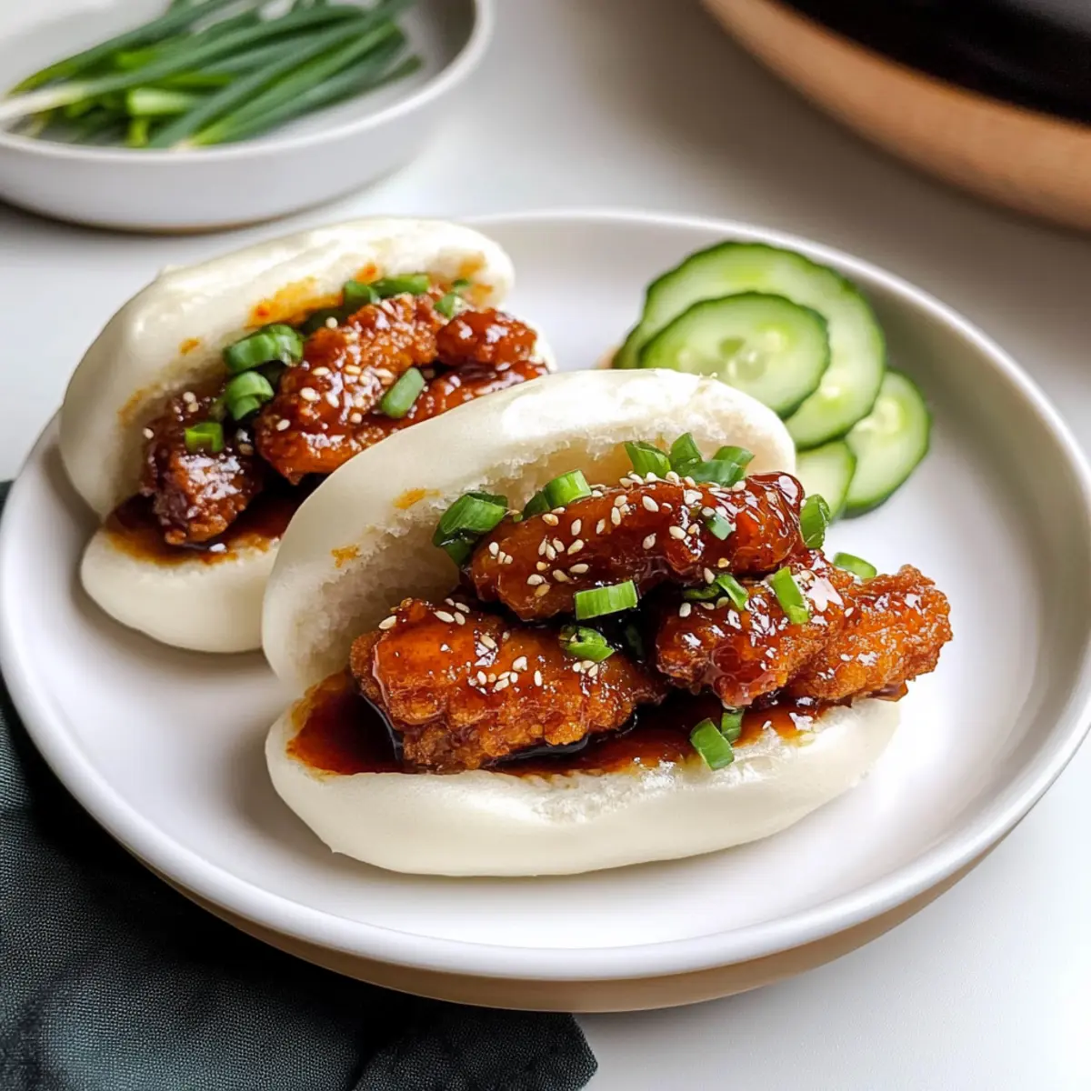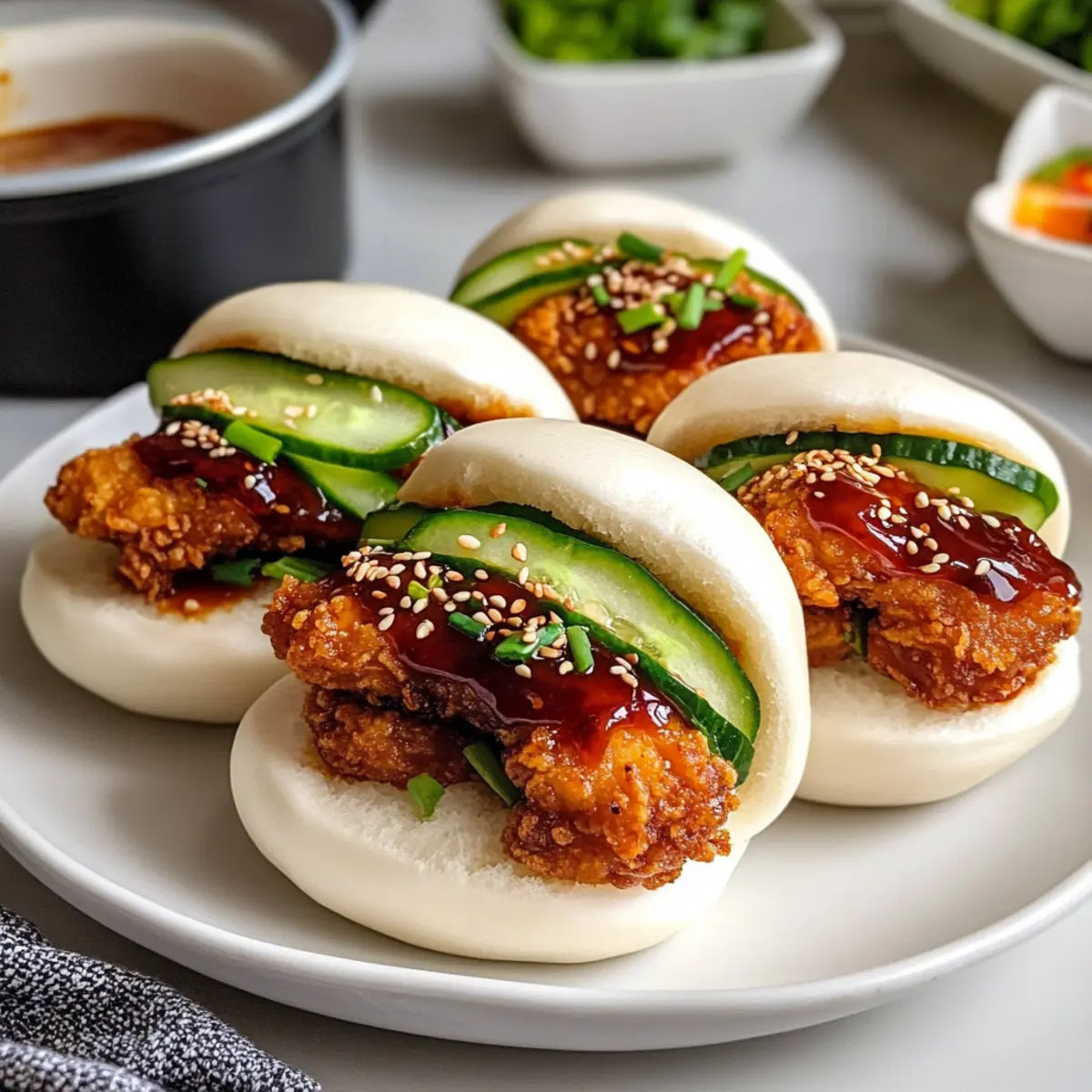 „Hast du schon einmal festgestellt, wie ein vielseitiges Gericht dein Abendessen in ein kulinarisches Abenteuer verwandeln kann?“ Diese Koreanischen Fried Chicken Bao Brötchen sind genau das! Die Kombination aus saftigem, knusprigem Hähnchen, eingehüllt in zarte, dampfgegarte Brötchen, sorgt für eine Geschmacksexplosion, die perfekt für jeden Snack oder ein herzhaftes Essen ist. Diese Brötchen bieten nicht nur eine schnelle Zubereitung, sondern sind auch ein absoluter Hingucker bei jedem Dinner. Egal, ob du sie im Familienkreis servierst oder Freunde zu einer geselligen Runde einlädst – diese Köstlichkeit wird alle begeistern! Bist du bereit, die Aromen Koreas in deiner eigenen Küche zu erleben? Warum sind diese Bao Brötchen ein Muss? Einfachheit: Die Zubereitung dieser Koreanischen Fried Chicken Bao Brötchen ist unkompliziert und erfordert nur grundlegende Kochfähigkeiten. Genussexplosion: Die Kombination aus knusprigem Hähnchen und dem zarten Teig sorgt für ein unvergleichliches Geschmackserlebnis. Vielseitigkeit: Du kannst mit verschiedenen Füllungen experimentieren, wie zum Beispiel mit tofu für eine vegetarische Variante. Perfekt für Gesellschaft: Diese Brötchen eignen sich hervorragend für gesellige Abende, bei denen jeder seine eigenen Bao nach Geschmack füllen kann. Ein Blickfang: Ihre ansprechende Präsentation macht sie zu einem Highlight auf jedem Tisch – ideal, um deine Gäste zu beeindrucken. Wenn du noch mehr Variationen ausprobieren möchtest, schau dir auch die Rezepte für zarte Koreanische BBQ Fleischbällchen mit Dip und BBQ Hühnchen Geschnittene an! Zutaten für Koreanisches Fried Chicken Bao Brötchen • Die richtigen Zutaten sorgen für den perfekten Geschmack und die Textur dieser köstlichen Brötchen! Für den Teig Weizenmehl – bildet die Struktur der Bao Brötchen; für ein helleres Aussehen kann gebleichtes Mehl verwendet werden. Maisstärke – sorgt für Leichtigkeit im Teig; es gibt keinen direkten Ersatz, aber eine Mischung aus Weizenmehl und Tapiokastärke könnte funktionieren. Zucker (fein) – süßt den Teig und balanciert die Aromen aus; kann auch durch normalen Zucker ersetzt werden. Schnellhefe – lässt den Teig aufgehen; aktiven Trockenhefe verwenden, erfordert jedoch eine Aktivierung. Backpulver – wichtig für fluffige Brötchen; nicht ersetzen, da es für das Aufgehen notwendig ist. Warmes Wasser – aktiviert die Hefe und hydratisiert den Teig; das Wasser sollte lauwarm sein. Pflanzenöl – sorgt für Feuchtigkeit und Weichheit; Olivenöl kann für zusätzlichen Geschmack verwendet werden. Für das Hähnchen Hähnchenbrust oder -schenkel – die Hauptproteinquelle für das Frittieren; Schenkel sind saftiger, während Brustfilets magerer sind. Meersalz & weißer Pfeffer – für die Würze; es können zusätzliche Gewürze für mehr Geschmack hinzugefügt werden. Sojasauce & Shaoxing-Reiswein – verleiht dem Hähnchen eine herzhafte Umami-Note in der Marinade. Eiweiß – bindet die Marinade und sorgt für eine knusprige Panade beim Frittieren. Pflanzenöl (zum Frittieren) – sorgt für eine knusprige Textur; ausreichend Öl für das flache Frittieren verwenden. Für die süß-scharfe Glasur Gochujang – sorgt für die pikante Glasur; essenziell für den authentischen Geschmack, kann für eine mildere Variante weggelassen werden. Leichter Muscovadozucker – sorgt für Süße in der Glasur; dunkler brauner Zucker ist ein guter Ersatz. Honig – fügt der Sauce eine natürliche Süße hinzu; die Menge anpassen je nach persönlichem Geschmack. Knoblauch – verstärkt den Geschmack in der Glasur; frische Knoblauchzehen sind empfehlenswert. Für die Frische Gurken & Frühlingszwiebeln – frische Toppings für Knusprigkeit und Kontrast zum Fett des Hähnchens; für einen säuerlichen Geschmack können auch eingelegte Gemüse verwendet werden. Schritt-für-Schritt-Anleitung für Koreanisches Fried Chicken Bao Brötchen Step 1: Teig vorbereiten In einer großen Schüssel vermengst du das Weizenmehl, die Maisstärke, den Zucker, die Hefe und das Backpulver. Gib das warme Wasser und das Pflanzenöl hinzu und vermische alles gut zu einem klebrigen Teig. Knete den Teig für etwa 10 Minuten mit einer Küchenmaschine oder 5 Minuten von Hand, bis er glatt und geschmeidig ist. Step 2: Erster Gärprozess Decke die Schüssel mit einem feuchten Tuch ab und stelle sie an einen warmen Ort. Lass den Teig für 1 bis 1,5 Stunden aufgehen, bis er doppelt so groß ist. Achte darauf, dass der Teig an der Oberfläche leicht blubbert – ein gutes Zeichen für die aktive Hefe. Step 3: Brötchen formen Nachdem der Teig aufgegangen ist, drücke ihn sanft herunter, um die Luft herauszulassen. Rolle den Teig auf einer bemehlten Fläche aus und schneide ihn in gleichmäßige Kreise. Forme die Teile zu Bao-Brötchen und lasse sie weitere 30 Minuten zugedeckt ruhen, damit sie gut aufgehen. Step 4: Brötchen dämpfen Bringe einen Dampfgarer zum Kochen und lege die geformten Brötchen hinein. Dämpfe die Brötchen für 10 bis 12 Minuten, bis sie weich und luftig sind. Achte darauf, dass sie nicht zusammenkleben, und serviere sie warm für das beste Ergebnis. Step 5: Hähnchen marinieren Schneide das Hähnchen in mundgerechte Stücke und mariniere es in einer Mischung aus Sojasauce, Shaoxing-Reiswein, Meersalz und weißem Pfeffer. Lass das Hähnchen für mindestens 30 Minuten ziehen, damit die Aromen gut einziehen können. Step 6: Hähnchen vorbereiten Nimm das marinierte Hähnchen und wälze es in einer Schicht aus Mehl, sodass es gleichmäßig bedeckt ist. Erhitze ausreichend Pflanzenöl in einer Pfanne auf etwa 165°C (325°F). Frittierte das Hähnchen in Chargen für 5 bis 7 Minuten, bis es goldbraun und knusprig ist. Step 7: Süß-scharfe Sauce zubereiten In einer Pfanne bringe die Zutaten für die süß-scharfe Glasur – Gochujang, leichten Muscovadozucker, Honig und fein gehackten Knoblauch – zum Köcheln. Koche die Mischung, bis s