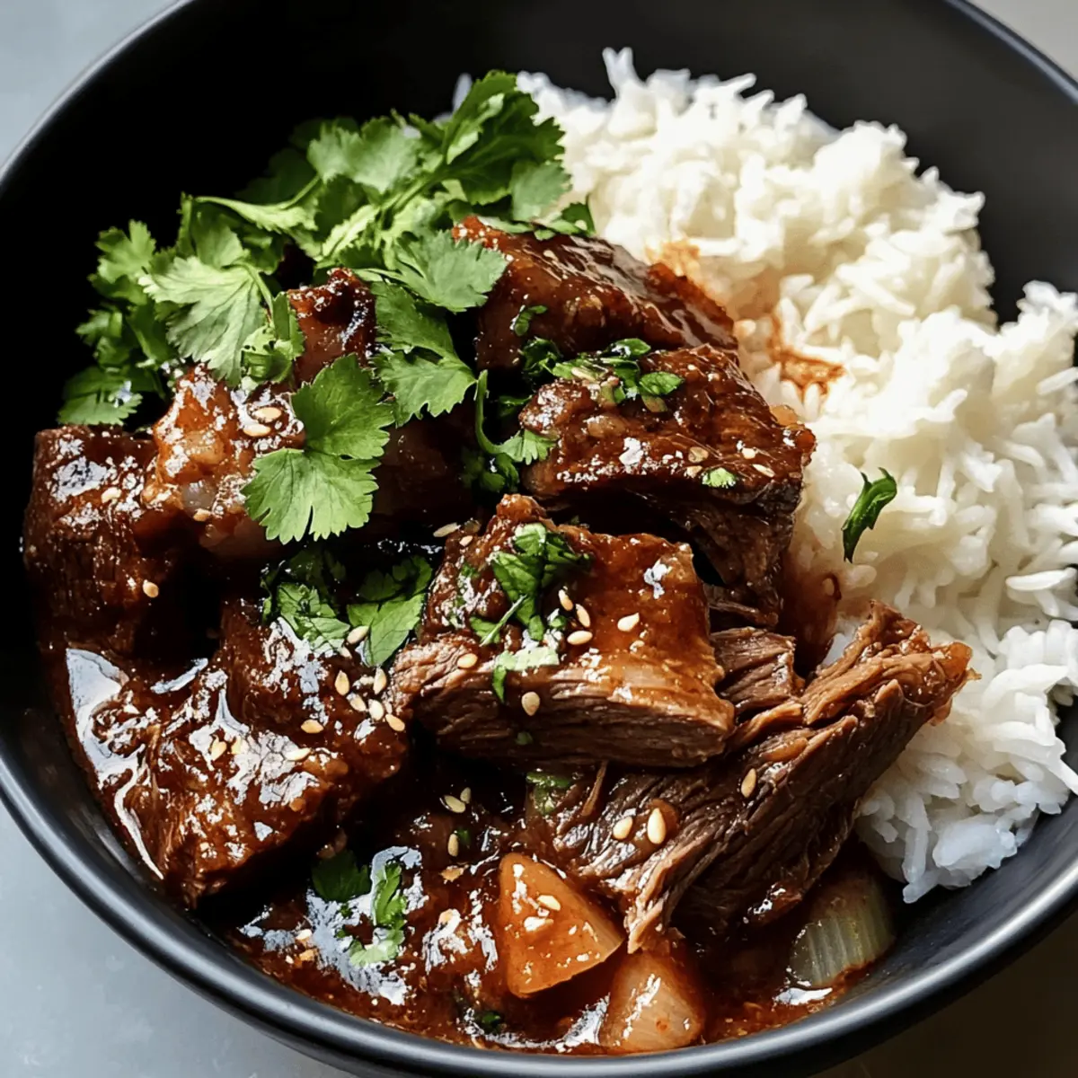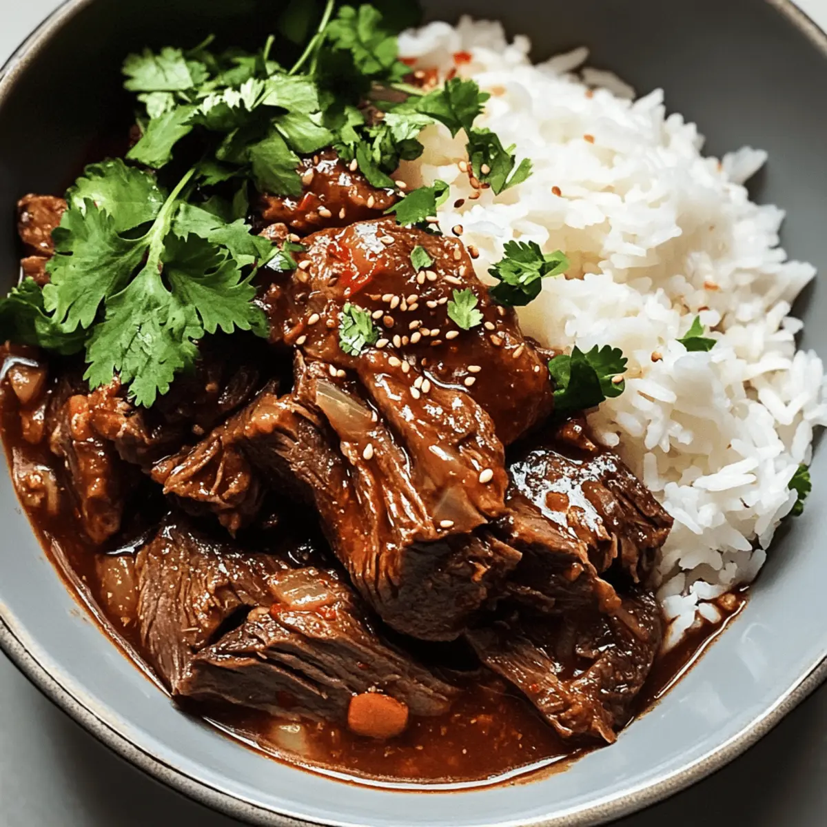 Ein sanfter Duft von frischem Ingwer und die anregende Schärfe von Gochujang füllen den Raum, während ich mich darauf vorbereite, dieses köstliche koreanische Pot Roast zuzubereiten. Diese koreanische Art des Schmorens verführt nicht nur die Geschmacksnerven, sondern sorgt auch für einen wunderbaren Komfort an kalten Abenden. Mit zartem Rindfleisch, das in einer umami-reichen Sauce schmort, ist mein Rezept für das koreanische Pot Roast nicht nur ein Genuss für den Gaumen, sondern auch schnell zubereitet – perfekt für alle, die eine Abwechslung von schnellem Essen suchen. Serviert mit fluffigem Reis, gedämpftem Brokkoli und einer Prise würzigem Kimchi wird das Essen zum Erlebnis. Bist du bereit, in die wunderbare Welt der koreanischen Küche einzutauchen? Warum wirst du dieses Rezept lieben? Einfachheit: Die Zubereitung ist unkompliziert, sodass du mit minimalem Aufwand ein köstliches Gericht zaubern kannst. Herzhafter Geschmack: Die Kombination aus Ingwer, Gochujang und Sojasauce sorgt für eine außergewöhnlich umami-reiche Sauce. Vielseitigkeit: Du kannst das Rezept leicht anpassen, indem du Gemüse wie Karotten hinzufügst oder das Rindfleisch durch Schweinefleisch ersetzt. Perfekter Komfort: Ideal für kühle Abende, als herzhaftes Gericht, das alle gemütlich zusammenbringt. Schnell: In nur wenigen Schritten kannst du ein raffiniertes Dinner vorbereiten – ideal, wenn du von schnellem Essen genug hast. Appetitlich serviert: Serviere es mit fluffigem Reis und einem Hauch von würzigem Kimchi für eine vollständige Geschmacksexplosion. Koreanisches Pot Roast Zutaten • Für das Fleisch Chuck Roast – Ein zarter Schnitt für besten Geschmack; du kannst auch Brisket verwenden, wenn du es mager möchtest. • Für die Marinade Kosher Salt – Verstärkt die Aromen des Fleisches; verwende bei Bedarf Meersalz als Alternative. Vegetable Oil – Zum Anbraten des Fleisches; Olivenöl kann auch verwendet werden, aber der Geschmack variiert etwas. Sweet Onion – Sorgt für eine angenehme Süße; gelbe Zwiebel ist ein guter Ersatz. Garlic Cloves – Für ein aromatisches Geschmacksprofil; Menge nach Geschmack anpassen, Schalotten sind eine mildere Alternative. Grated Fresh Ginger – Fügt Wärme und Gewürz hinzu; ersetze es durch 1 Teelöffel gemahlenen Ingwer pro Esslöffel frischem Ingwer. Gochujang Paste – Verleiht eine einzigartige umami-reiche Schärfe; Sriracha oder rote Chilipaste können auch verwendet werden, jedoch mit abweichendem Geschmack. Brown Sugar – Balanciert die herzhaften Aromen; Honig oder Ahornsirup sind ebenfalls geeignet, verändern jedoch das Geschmacksprofil. Low-Sodium Soy Sauce oder Tamari – Gibt Tiefe und Salz; Tamari ist glutenfrei und kann verwendet werden. Beef Stock – Sorgt für Feuchtigkeit und Reichhaltigkeit in der Sauce; Hühnerbrühe kann auch genutzt werden, bringt aber einen anderen Geschmack. • Für das Garnieren Fresh Cilantro (zum Servieren) – Fügt eine frische, kräuterige Note hinzu; kann weggelassen werden, wenn nicht gewünscht. Kimchi (zum Servieren) – Liefert einen würzigen Kick; optional je nach persönlichem Geschmack. Schritt-für-Schritt-Anleitung für Koreanisches Rindfleischgericht im Slow Cooker Schritt 1: Fleisch vorbereiten Würze das Chuck Roast großzügig mit kosherem Salz und schneide es in 7,5 cm große Stücke, um eine gleichmäßige Garung zu gewährleisten. Die Größe hilft dabei, dass das zarte Rindfleisch beim langsamen Kochen seine Säfte behält und schön aromatisch wird. Schritt 2: Fleisch bräunen Erhitze einen großen Schmortopf oder Dutch Oven bei mittlerer Hitze und gebe etwas Pflanzenöl hinein. Lege die Chuck Roast-Stücke hinein und brate sie rundherum an, bis sie goldbraun sind, was etwa 3-4 Minuten pro Seite dauern sollte. Dadurch entsteht eine köstliche Kruste, die den Geschmack intensiviert. Schritt 3: Aromaten anbraten Füge die in Scheiben geschnittene Zwiebel, den geriebenen Ingwer und die gehackten Knoblauchzehen in denselben Topf hinzu. Brate alles für etwa 2-3 Minuten an, bis die Zwiebeln zart und durchsichtig sind. Diese Aromaten bilden die geschmackliche Basis für das koreanische Rindfleischgericht und sorgen für eine angenehme, wohlige Wärme. Schritt 4: Zutaten kombinieren Rühre in den Topf die Gochujang-Paste, den braunen Zucker und die Sojasauce hinein. Mische alles gründlich, damit sich die Aromen vermischen und eine dicke, würzige Marinade entsteht. Achte darauf, dass sich der Zucker vollständig auflöst, um die süß-salzige Balance zu erreichen. Schritt 5: Simmern Gieße die Rinderbrühe in den Topf und bringe alles zum Kochen. Reduziere die Hitze und lasse das Ganze für etwa 5 Minuten köcheln, während du den Boden des Topfes kurz umrührst, um die Röststoffe zu lösen. Anschließend decke den Topf ab und stelle ihn in den vorgeheizten Ofen bei 175°C für 2 Stunden, bis das Fleisch zart ist. Schritt 6: Servieren Nach dem Garprozess nimm das koreanische Rindfleischgericht aus dem Ofen und lasse es kurz ruhen. Serviere das zarte Rindfleisch mit fluffigem Reis, garniere es mit frischem Koriander und reiche optional Kimchi dazu. genieße die Mischung aus Aromen und Texturen in deinem gemütlichen Mahlzeit. Expertentipps für Koreanisches Pot Roast Fleischwahl: Wähle ein hochwertiges Chuck Roast für den besten Geschmack und zarte Textur. Bei der falschen Auswahl kann das Gericht trocken werden. Anbraten nicht vergessen: Das gründliche Anbraten des Fleisches entwickelt eine köstliche Kruste. Diese verleiht dem koreanischen Pot Roast zusätzlichen Geschmack und Aroma. Dauerhaftes Kochen: Achte darauf, den Topf während des Garens gut zu abdecken, um den Verlust von Feuchtigkeit zu vermeiden. Ein trockener Braten schmeckt nicht so gut. Ruhen lassen: Lass das Rindfleisch nach dem Kochen etwa 10 Minuten ruhen, bevor du es anschneidest. Dies hilft, die Säfte im Fleisch zu halten und sorgt für zartere Stücke. Variationen zulassen: Experimentiere mit ve