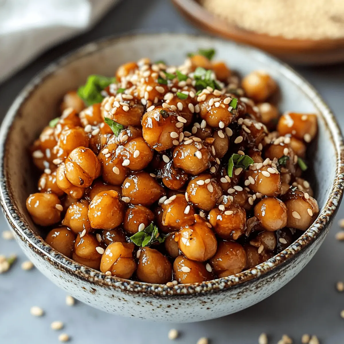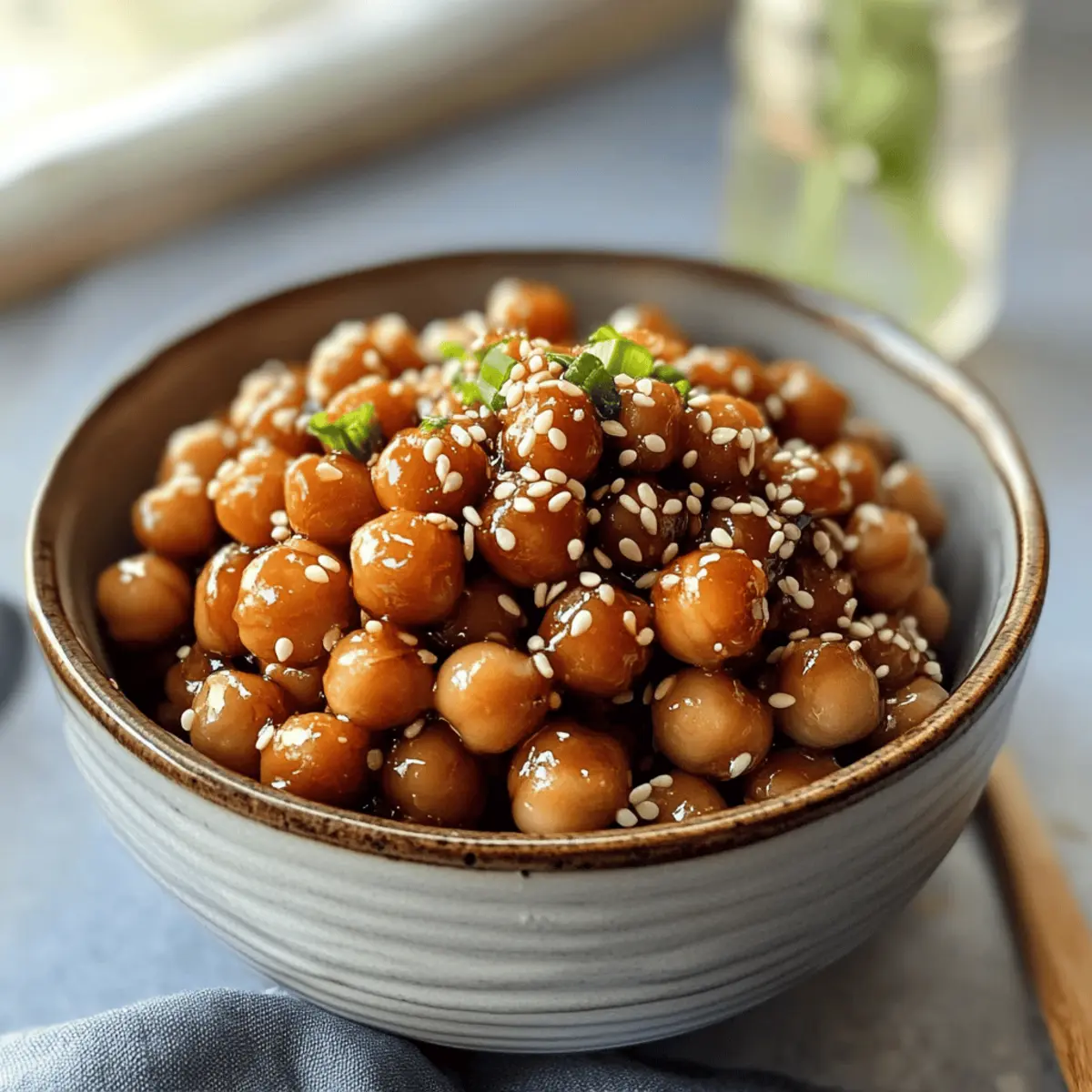 Eines Abends, als ich nach einem schnellen, aber leckeren Abendessen suchte, entdeckte ich das Rezept für Vegane Klebrige Sesam-Kichererbsen. Diese köstliche Speise braucht nur 15 Minuten und vereint knusprige Kichererbsen in einer herrlichen, süßen und herzhaften Sesamsauce. Das Beste daran? Sie ist vegan, glutenfrei und eine wahre Proteinbombe! Perfekt für geschäftige Wochentage oder als Meal Prep für die kommenden Tage, bieten diese Kichererbsen nicht nur Geschmack, sondern auch Nährstoffe. Gönn dir diese genussvolle Mahlzeit und entdecke, wie vielseitig du die Zutaten anpassen kannst! Welches Protein wirst du als Nächstes ausprobieren? Warum wirst du dieses Rezept lieben? Einfachheit: Die Zubereitung ist unkompliziert und brauchst nur grundlegende Kochfähigkeiten, um köstliche Ergebnisse zu erzielen. Reichhaltiger Geschmack: Die perfekte Kombination aus süßer und salziger Sesamsauce bringt deine Geschmacksknospen zum Tanzen. Vielseitigkeit: Verwandle dieses Rezept ganz leicht durch Hinzufügen von Tofu oder Gemüse für eine bunte Auswahl an Proteinen. Probiere auch die Variante mit gebratenem Brokkoli oder spüre die Schärfe mit Chili-Soße. Schnell und nahrhaft: In nur 15 Minuten zubereitet, ist dieses Gericht perfekt für eine schnelle Mahlzeit unter der Woche. Beliebt bei Groß und Klein: Die köstlichen Aromen und die ansprechende Konsistenz machen diese Kichererbsen zu einem Hit bei jedem Essen. Ergänze dein Menü mit Vegane Linsenknoedel Curry für einen weiteren veganen Genuss! Vegane Krosse Sesamkichererbsen Zutaten Für die Kichererbsen • Kichererbsen – sorgen für pflanzliches Protein und eine feste Textur. Substitution: Du kannst auch aus der Dose verwendete oder selbst gekochte Kichererbsen verwenden. • Knoblauch – verleiht ein aromatisches Geschmackserlebnis. Substitution: Bei Bedarf kann auch Knoblauchpulver verwendet werden. • Avocadoöl oder Olivenöl – dient als Kochfett. Substitution: Jedes neutrale Öl wie Raps- oder Sonnenblumenöl funktioniert gut. Für die Sauce • Geröstetes Sesamöl – bringt einen tiefen, nussigen Geschmack. Hinweis: Unverzichtbar für den authentischen Geschmack; vermeide den Verzicht auf dieses Öl. • Tamari oder Sojasauce – sorgt für die benötigte Salzigkeit und Umami. Hinweis: Verwende Tamari für eine glutenfreie Option. • Ahornsirup – fügt die notwendige Süße hinzu, um die salzigen Noten auszubalancieren. Substitution: Auch brauner Zucker oder Kokosblütenzucker sind möglich. • Reisessig – sorgt für eine säuerliche Note, die die Aromen aufhellt. Substitution: Apfelessig funktioniert ebenfalls gut. • Frischer geriebener Ingwer – bietet eine warme, würzige Note. Hinweis: Frischer Ingwer wird für den besten Geschmack empfohlen. • Gemüsebrühe – wird verwendet, um die Konsistenz der Sauce anzupassen. Substitution: Du kannst Wasser oder zusätzliche Sojasauce für mehr Geschmack verwenden. • Pfeilwurzelmehl oder Maisstärke – verdickt die Sauce. Hinweis: Beide Verdickungsmittel können austauschbar verwendet werden. Schritt-für-Schritt-Anleitung für Vegane Krosse Sesamkichererbsen Schritt 1: Kichererbsen vorbereiten Die Kichererbsen gründlich abtropfen lassen und in einem Sieb abspülen. Achte darauf, dass sie gut trocken sind, damit sie beim Braten knusprig werden. Stelle sie beiseite, während du mit der Zubereitung der Sesamsauce fortfährst. Schritt 2: Knoblauch anbraten Erhitze eine Pfanne auf mittlerer Hitze und füge einen Esslöffel Avocado- oder Olivenöl hinzu. Gib den fein gehackten Knoblauch hinein und brate ihn an, bis er duftet und goldbraun wird, etwa 1-2 Minuten. Achte darauf, dass er nicht anbrennt, da dies den Geschmack negativ beeinflusst. Schritt 3: Sauce vorbereiten In einer kleinen Schüssel das Pfeilwurzelmehl mit der Gemüsebrühe verrühren, bis keine Klumpen mehr vorhanden sind. Dieser Schritt ist wichtig, um die Sauce nachher richtig zu binden. Stelle die Mischung beiseite, während du die anderen Zutaten zur Pfanne hinzufügst. Schritt 4: Zutaten kombinieren Jetzt gibst du das geröstete Sesamöl, die Tamari oder Sojasauce, den Ahornsirup, den Reisessig und den frisch geriebenen Ingwer in die Pfanne. Rühre alles gut durch, bis sich die Zutaten gut verbunden haben und die Pfanne mit ihrem köstlichen Aroma erfüllt ist. Schritt 5: Pfeilwurzelmischung einrühren Füge die vorher zusammengemischte Pfeilwurzel- und Brühe-Mischung in die Pfanne hinzu und rühre kontinuierlich, bis die Sauce glatt ist. Lass die Mischung einige Minuten köcheln, damit sie eindickt und die Aromen intensiv werden. Schritt 6: Sauce köcheln lassen Reduziere die Hitze auf mittel-niedrig und koche die Sauce, bis sie anfängt zu blubbern, etwa 3-5 Minuten. Beobachte die Konsistenz; sie sollte eine dicke, glänzende Textur erreichen, die perfekt zu den Kichererbsen passt. Schritt 7: Kichererbsen hinzufügen Jetzt werden die vorbereiteten Kichererbsen hinzugefügt. Vorsichtig umrühren, um sie gleichmäßig mit der Sauce zu überziehen. Lass sie etwa 5 Minuten in der Sauce köcheln, bis sie gut darin eingehüllt sind und die Sauce leicht anzieht. Schritt 8: Aromen vereinen Schalte die Hitze aus und lasse die Kichererbsen 5 Minuten in der Pfanne ruhen. Diese Ruhezeit hilft, die Aromen der veganen klebrigen Sesamkichererbsen zu vereinen und gibt dir die Möglichkeit, die Beilagen vorzubereiten. Schritt 9: Servieren Die veganen krossen Sesamkichererbsen heiß servieren! Ideal über frischgekochtem Reis, Quinoa oder gedämpftem Gemüse. Optional kannst du sie mit gerösteten Sesamkörnern garnieren, um einen zusätzlichen Crunch hinzuzufügen und das Gericht abzurunden. Vorbereitung für die Vegan Krosse Sesamkichererbsen Die Vegan Krosse Sesamkichererbsen sind ideal für die Vorbereitung von Mahlzeiten, da du die Kichererbsen und die Sauce bis zu 3 Tage im Voraus zubereiten kannst. Um die Frische zu bewahren, lagere die Kichererbsen in einem luftdichten Behälter im Kühlschran