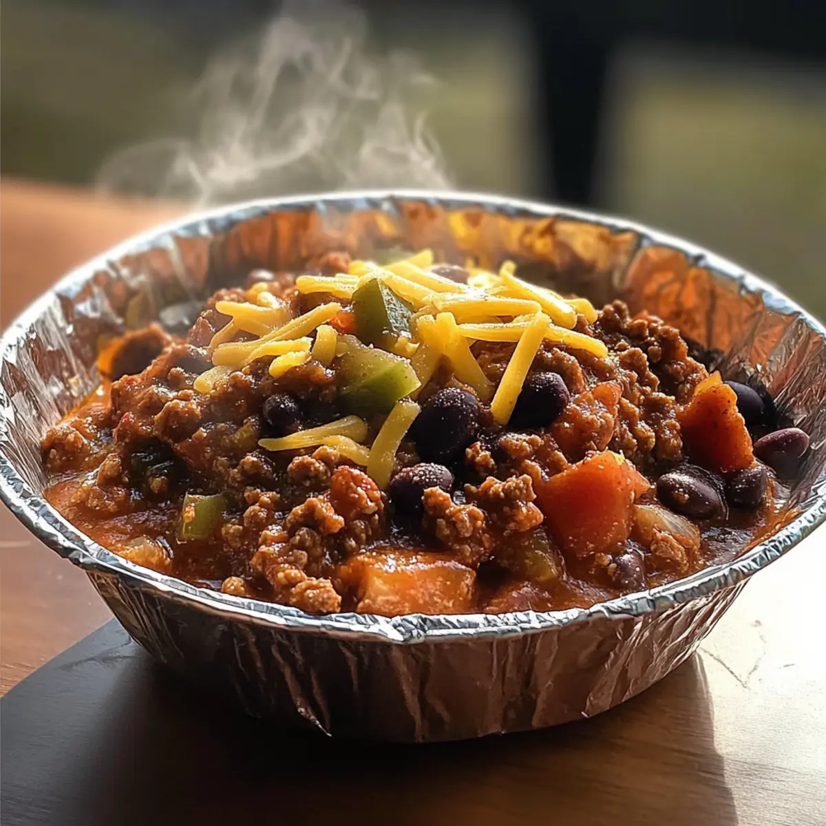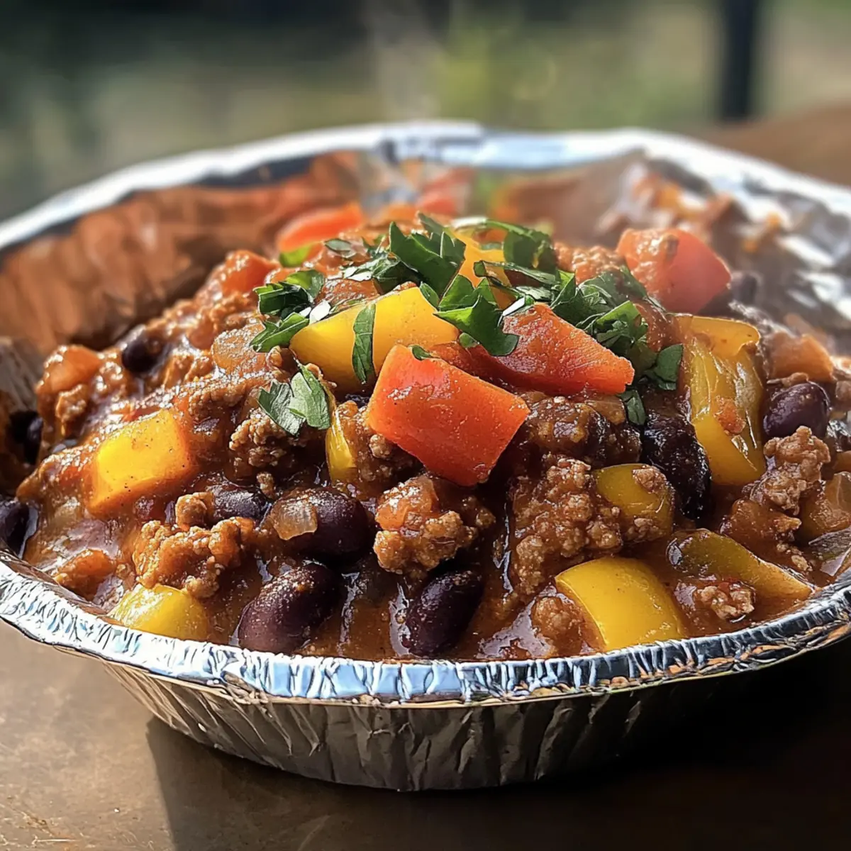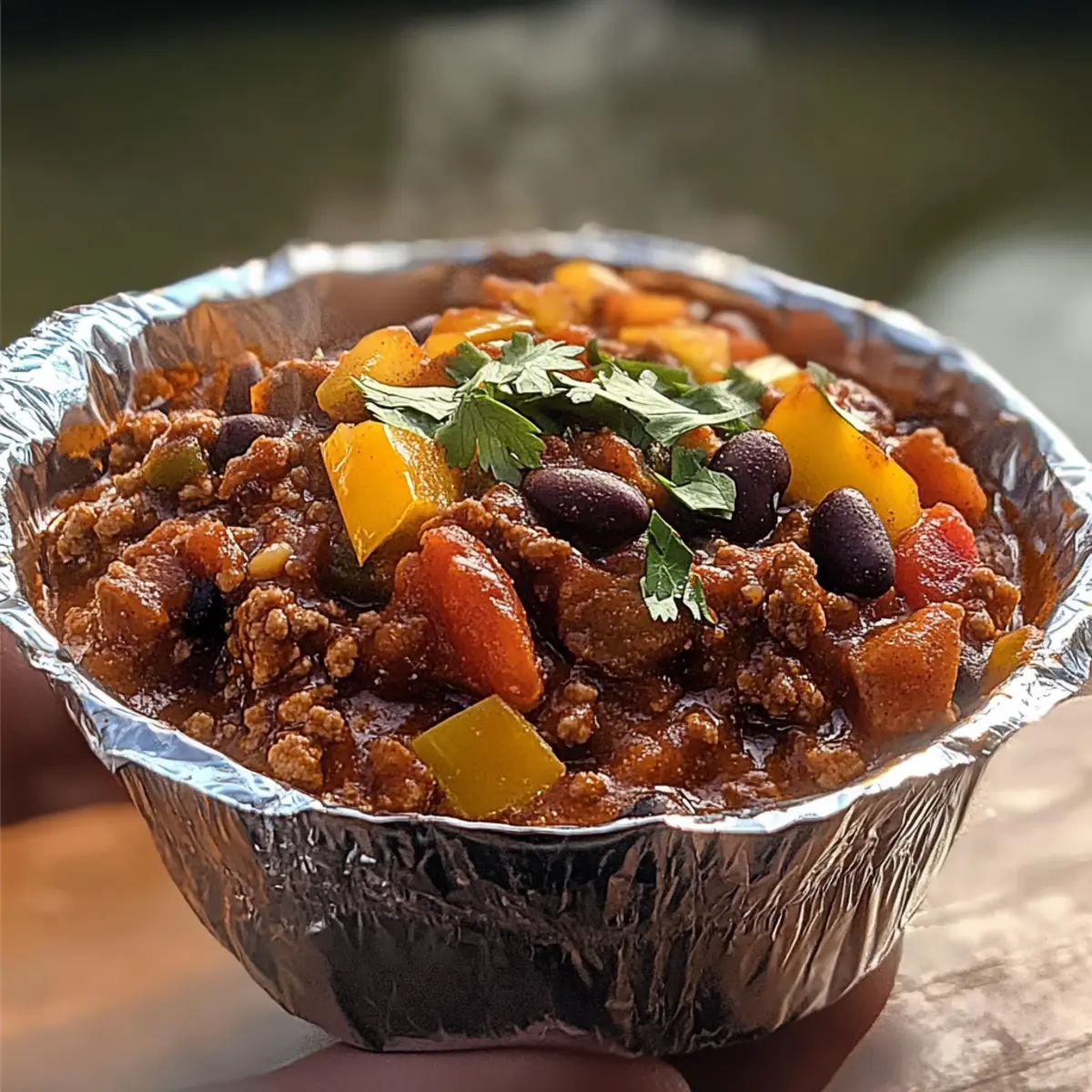 Stell dir vor, du sitzt am Lagerfeuer, die Nacht senkt sich, und der Duft von frisch zubereitetem Lagerfeuer Chili in einem Beutel erfüllt die Luft. Diese schmackhafte Mischung aus herzhaften Gewürzen, zarten Bohnen und wahlweise Fleisch oder einer vegetarischen Variante sorgt für ein wärmendes Gefühl und macht jede Outdoor-Aktivität oder gesellige Runde zum Highlight. Was diese Rezeptur besonders macht? Sie lässt sich blitzschnell zubereiten und bietet unzählige Anpassungsmöglichkeiten für verschiedene Ernährungsbedürfnisse – perfekt für jeden Geschmack! Bist du bereit, das perfekte Campinggericht zu entdecken, das nicht nur schnell zuzubereiten ist, sondern auch die Herzen deiner Gäste im Sturm erobern wird? Warum wirst du dieses Rezept lieben? Einfachheit: Die Zubereitung ist kinderleicht und erfordert keine speziellen Kochkenntnisse, sodass du sofort loslegen kannst. Vielseitigkeit: Ob mit Hackfleisch oder als vegetarische Variante mit Linsen – die Anpassungsmöglichkeiten sindendlos! Herzhafter Geschmack: Eine harmonische Kombination aus würzigen Aromen, die jeder Biss zu einem Genuss macht. Perfekt für gesellige Runden: Ideal für das Lagerfeuer oder gemütliche Abende zu Hause, wo jeder um das Essen versammelt ist. Schnell zubereitet: In nur wenigen Minuten kannst du ein köstliches Gericht auf den Tisch bringen – ideal für spontane Anlässe! Gesund und nahrhaft: Mit hohem Proteinanteil und Ballaststoffen ist dieses Chili nicht nur lecker, sondern auch nahrhaft. Lagerfeuer Chili Zutaten • Hol dir schon mal deinen Kochlöffel, denn diese Zutaten machen dein Lagerfeuer Chili in einem Beutel zu einem ganz besonderen Erlebnis! Für das Chili Hackfleisch oder Truthahn – sorgt für reichhaltigen Geschmack; ersetze es bei Bedarf durch Linsen für eine vegetarische Variante. Schwarze Bohnen – liefern Fiber und zusätzliche Proteine; vor der Verwendung gut abspülen und abtropfen lassen. Feuergeröstete gewürfelte Tomaten – bringen Säure und Süße ins Spiel; unverzichtbar für die perfekte Sauce. Gelbe Zwiebel (gewürfelt) – sorgt für eine angenehme Tiefe und Süße des Geschmacks. Paprika (gewürfelt) – fügt Süße und Knackigkeit hinzu; nutze verschiedene Farben für ein ansprechendes Aussehen. Chili-Pulver – die Hauptgewürzmischung für einen herzhaften Kick; nach Geschmack anpassen. Knoblauchpulver – für zusätzlichen Duft und Würze. Salz – hebt den Geschmack der ganzen Speise hervor. Schwarzer Pfeffer – gibt der Mischung eine subtile Wärme und Tiefe. Olivenöl – zum Anbraten der Gemüse; kann durch jedes andere Kochöl ersetzt werden. Toppings nach Wahl Geriebener Käse – bringt cremige Textur und zusätzlichen Geschmack. Sauerrahm – sorgt für eine erfrischende Note. Frische Korianderblätter – bringen Farbe und ein frisches Aroma ins Spiel. Frische Jalapeños – für die, die es gerne schärfer mögen! Mit diesen Zutaten zauberst du im Handumdrehen ein köstliches Lagerfeuer Chili in einem Beutel, das nicht nur lecker, sondern auch anpassbar für jeden Geschmack ist! Schritt-für-Schritt-Anleitung für Lagerfeuer Chili in einem Beutel Schritt 1: Gemüse anbraten Erhitze in einer großen Pfanne bei mittlerer Hitze etwas Olivenöl. Gib die gewürfelten Zwiebeln und Paprika dazu und brate sie für etwa 5 Minuten, bis sie weich und aromatisch sind. Achte darauf, gelegentlich umzurühren, damit nichts anbrennt. Schritt 2: Fleisch braten Füge das Hackfleisch oder den Truthahn in die Pfanne hinzu und brate es für etwa 7 bis 10 Minuten, bis es vollständig braun ist. Zerkleinere das Fleisch mit einem Holzlöffel während des Kochens, damit es gleichmäßig gart und eine feine Textur erhält. Schritt 3: Zutaten kombinieren Rühre die abgetropften schwarzen Bohnen und die feuergerösteten gewürfelten Tomaten mit ihrem Saft in die Pfanne. Mische alles gut durch, bis die Zutaten gleichmäßig verteilt sind, um eine leckere Basis für dein Lagerfeuer Chili in einem Beutel zu schaffen. Schritt 4: Würzen Streue Chili-Pulver, Knoblauchpulver, Salz und schwarzen Pfeffer über die Mischung. Rühre gründlich um, damit die Gewürze sich gleichmäßig in der Sauce verteilen. Der Geruch wird beginnen, die Aromen anzupreisen, was dir Lust auf mehr macht! Schritt 5: Simmern lassen Lass das Chili bei schwacher Hitze für etwa 20 Minuten köcheln, damit sich alle Aromen gut vermischen können. Rühre gelegentlich um, um sicherzustellen, dass nichts am Boden der Pfanne anhaftet. Du wirst sehen, wie das Chili dicker wird und ein köstlicher Duft durch die Küche strömt. Schritt 6: Servieren oder vorbereiten Serviere das Lagerfeuer Chili heiß direkt aus der Pfanne oder portioniere es vorsichtig in wiederverschließbare Beutel für dein nächstes Outdoor-Abenteuer. Achte darauf, dass das Chili abgekühlt ist, bevor du es verpackst, sodass es auf dem Weg zum Lagerfeuer frisch bleibt. Lagerungstipps für Lagerfeuer Chili in einem Beutel Auf Zimmertemperatur:: Lasse das Chili bei Zimmertemperatur nicht länger als 2 Stunden stehen, um die Frische und Sicherheit der Lebensmittel zu gewährleisten. Kühlschrank:: Bewahre übrig gebliebenes Lagerfeuer Chili in einem luftdichten Behälter im Kühlschrank auf, wo es bis zu 5 Tage haltbar ist. Gefrierschrank:: Teile das Chili in portionierte Mengen auf und friere es in wiederverschließbaren Beuteln oder Behältern ein; so bleibt es bis zu 3 Monate frisch. Aufwärmen:: Erwärme das gefrorene Chili sanft auf dem Herd bei niedriger Hitze; füge bei Bedarf etwas Wasser oder Brühe hinzu, um die Konsistenz zu verbessern. Was passt gut zu Lagerfeuer Chili in einem Beutel? Stell dir vor, du genießt dein köstliches Lagerfeuer Chili in einem Beutel mit perfekten Ergänzungen, die das Geschmackserlebnis noch weiter verfeinern. Cremige Guacamole: Sie bringt eine köstliche, cremige Textur und ein frisches Aroma, das die Würze des Chili wunderbar ausgleicht. Ein Löffel Guacamole auf dem Chili füllt jeden Bisse