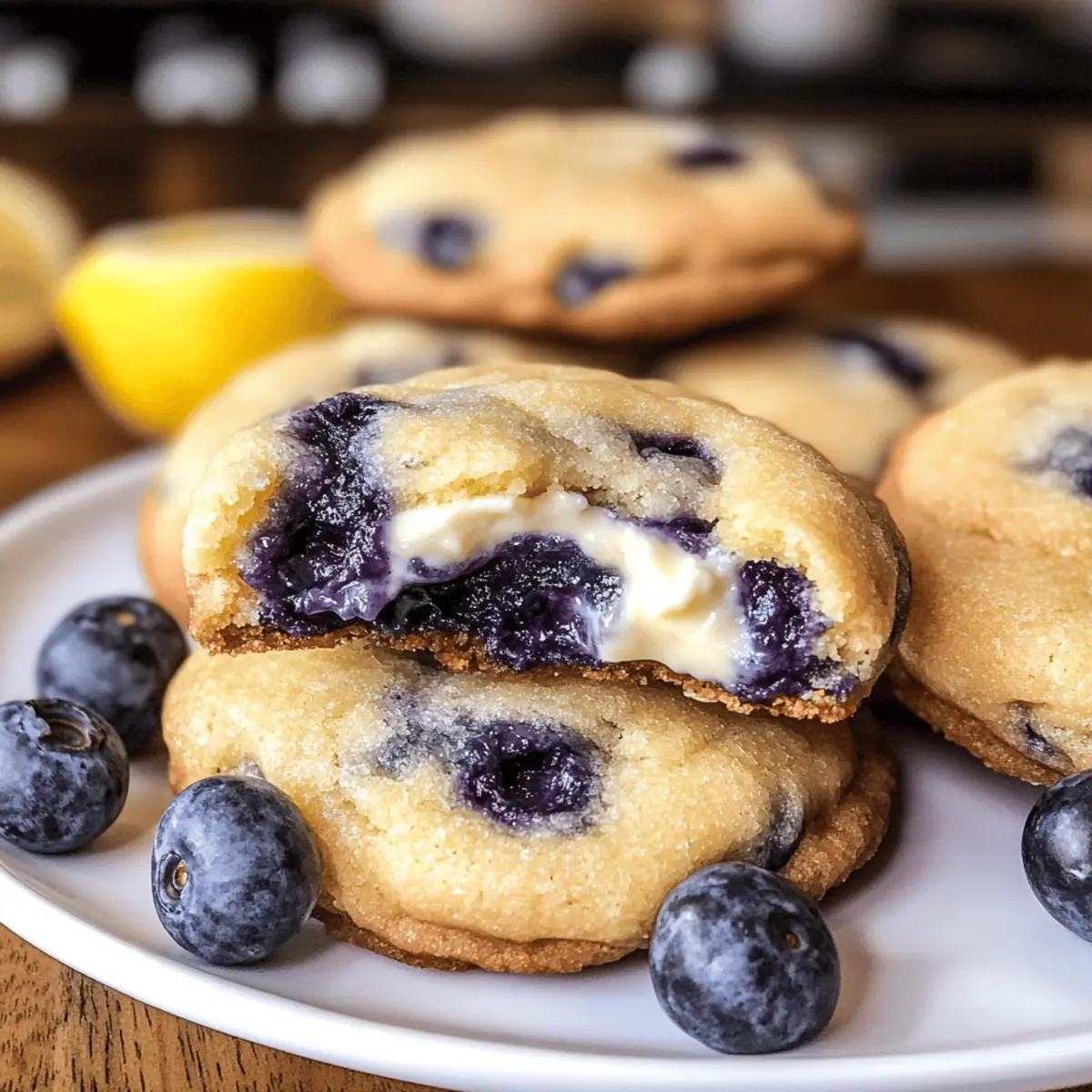 Wie wäre es mit einem kleinen Ausflug in die Welt der süßen Köstlichkeiten? Diese Soft und Chewy Lemon Blueberry Cheesecake Cookies sind nicht nur eine geschmackliche Offenbarung, sondern auch die perfekte Kombination aus dem cremigen Genuss eines Cheesecakes und der Leichtigkeit eines Kekses. Ihr Geheimnis? Eine zarte, fluffige Textur, die beim ersten Bissen schmilzt, und saftige, fruchtige Blaubeeren, die in einer himmlischen Käsekuchenfüllung verborgen sind. Diese Kekse sind schnell zubereitet und eignen sich bestens für besondere Anlässe oder als täglicher Genuss. Neugierig, wie man diese kleinen Leckerbissen zubereitet? Lassen Sie uns gemeinsam in das Rezept eintauchen! Warum sind diese Kekse so unwiderstehlich? Einzigartiger Geschmack: Die Kombination von frischen Blaubeeren und spritziger Zitrone bringt eine erfrischende Note in jeden Bissen. Käsekuchen-Inspiration: Diese Kekse kombinieren die cremige, dekadente Füllung eines Cheesecakes mit der knusprigen Textur eines Cookies – ein wahres Gedicht für den Gaumen! Einfache Zubereitung: Die Herstellung erfordert nur grundlegende Backfähigkeiten und weniger Zeit als ein traditioneller Käsekuchen. Vielseitige Variationen: Experimentieren Sie mit verschiedenen Früchten wie Himbeeren oder Erdbeeren, um immer wieder neue Geschmäcker zu entdecken! Schauen Sie sich auch unser Rezept für Zitronen Kokos Cheesecake an, um Ihnen noch mehr Inspiration zu geben. Perfekte Konsistenz: Diese Kekse sind außen leicht knusprig und innen weich und chewy – ideal für jeden Cookie-Liebhaber. Lemon Blueberry Cheesecake Cookie Zutaten Für die Käsekuchenfüllung Frischkäse (170 g) – Sorgt für Cremigkeit und den typischen Käsekuchen-Geschmack; kalt verwenden für beste Ergebnisse. Zucker (3 Esslöffel + 1 Tasse + ¼ Tasse) – Verleiht Süße und verbessert die Textur der Füllung und des Keks-Teigs. Vanille (½ Teelöffel + 2 Teelöffel) – Verstärkt den Geschmack; reinen Vanilleextrakt verwenden, um das beste Aroma zu erzielen. Für den Keks-Teig Frische Blaubeeren (340 g) – Sorgt für die fruchtige Note; frisch empfohlen für optimale Ergebnisse. Gefrorene Blaubeeren können eine weichere Marmelade ergeben. Allzweckmehl (344 g) – Bildet die Struktur der Kekse; sollte genau gemessen werden (mit Löffel abmessen und nivellieren). Backpulver (½ Teelöffel) – Lässt die Kekse leicht aufgehen. Backsoda (½ Teelöffel) – Wirkt zusammen mit dem Backpulver, um die Kekse zu heben. Salz (½ Teelöffel) – Balanciert die Süße und verstärkt den Geschmack insgesamt. Zitronenschale (20 g) – Bringt einen intensiven Zitronengeschmack; in den Zucker einreiben für maximalen Aroma-Extrakt. Ungesalzene Butter (227 g, sehr weich) – Sorgt für einen reichhaltigen, buttrigen Geschmack und hilft, eine zarte Textur zu erzielen. Ei (1, Zimmertemperatur) – Bindet die Zutaten; muss Zimmertemperatur haben, um einfacher integriert zu werden. Zucker (¼ Tasse) zum Wälzen – Sorgt für eine süße Kruste um den Keksteig. Hinweis: Diese Zutaten sind perfekt für die Zubereitung von köstlichen Cheesecake Cookies, die jedem Gourmet-Liebhaber das Wasser im Mund zusammenlaufen lassen! Schritt-für-Schritt-Anleitung für Lemon Blueberry Cheesecake Cookies Schritt 1: Käsekuchenfüllung vorbereiten Mischen Sie den Frischkäse, 3 Esslöffel Zucker und ½ Teelöffel Vanille in einer Schüssel, bis die Mischung leicht und fluffig ist. Formen Sie kleine Scheiben und legen Sie sie auf ein Backblech. Stellen Sie das Blech in den Gefrierschrank und lassen Sie die Käsekuchenfüllung mindestens 30 Minuten fest werden. Schritt 2: Blaubeermarmelade machen In einem Topf die frischen Blaubeeren mit 1 Tasse Zucker erhitzen und etwa 40 Minuten lang köcheln lassen, bis die Mischung dickflüssig ist. Rühren Sie gelegentlich um, damit nichts anbrennt. Nach dem Kochen die Marmelade in eine Schüssel umfüllen und im Kühlschrank abkühlen lassen. Schritt 3: Keks-Teig vorbereiten Heizen Sie den Ofen auf 175 °C vor. Messen Sie in einer großen Schüssel das Allzweckmehl, Backpulver, Backsoda und Salz ab und vermengen Sie alles gut. Stellen Sie die Mischung beiseite, während Sie die anderen Zutaten vorbereiten. Schritt 4: Zutaten cremig rühren In einer separaten Schüssel reiben Sie die Zitronenschale in den Rest des Zuckers und fügen dann die weiche Butter hinzu. Schlagen Sie die Mischung mit einem Handmixer, bis sie leicht und luftig ist. Jetzt das Ei und 2 Teelöffel Vanille unterrühren, bis alles gut vermischt ist. Schritt 5: Komponenten kombinieren Fügen Sie die trockenen Zutaten nach und nach zur Butter-Zucker-Mischung hinzu und vermengen Sie alles zu einem glatten Teig. Falten Sie vorsichtig die abgekühlte Blaubeermarmelade in den Teig, sodass kleine Marmeladenstücke erhalten bleiben und nicht vollständig vermischt werden. Schritt 6: Kekse formen Nehmen Sie eine Portion des Keks-Teigs, drücken Sie ihn flach, legen Sie eine gefrorene Käsekuchenscheibe in die Mitte, umschließen Sie die Füllung mit Teig und rollen Sie den Keks anschließend in ¼ Tasse Zucker. Diese Zuckerschicht gibt den Keksen eine schöne Süße. Schritt 7: Backen Legen Sie die geformten Kekse auf ein mit Backpapier belegtes Blech und backen Sie sie für 11-12 Minuten, bis sie fest und leicht goldbraun sind. Wenn gewünscht, können Sie die Kekse während des Abkühlens mit einem Ausstecher leicht nachformen. Lassen Sie sie vollständig auskühlen, bevor Sie sie servieren. Meal Prep für Lemon Blueberry Cheesecake Cookies Diese Lemon Blueberry Cheesecake Cookies sind perfekt für die Vorbereitung im Voraus! Sie können die Käsekuchenfüllung bis zu 24 Stunden im Voraus zubereiten; formen Sie kleine Scheiben und frieren Sie sie ein, um die Frische zu bewahren. Auch die Blaubeermarmelade lässt sich wunderbar drei Tage vorher machen – kochen Sie die Blaubeeren und lassen Sie die Marmelade abkühlen, bevor Sie sie im Kühlschrank aufbewahren. Wenn Sie bereit sind zum Backe