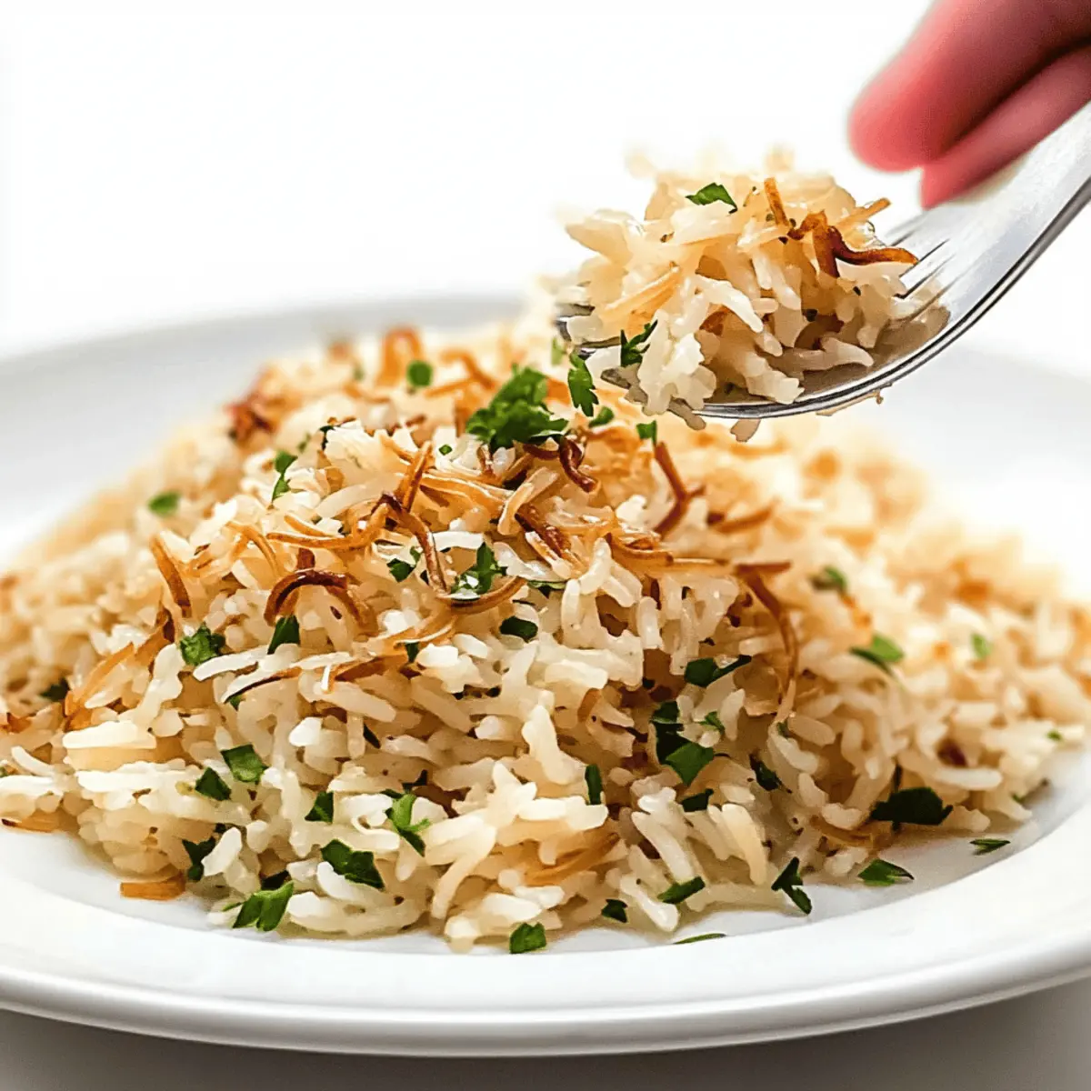Während ich durch die bunten Märkte Beiruts schlenderte, erfüllte ein warmer, nussiger Duft die Luft und weckte Erinnerungen an köstliche Familienessen. Diese Aromen begleiten mich bis heute und inspirieren mich, authentischen libanesischen Reis-Pilaf mit geröstetem Vermicelli zuzubereiten. Dieses Gericht bringt nicht nur die aufregenden Geschmäcker des Nahen Ostens auf Ihren Tisch, sondern ist auch ein schnelles und vielseitiges Beilagenrezept, das in nur 20 Minuten zubereitet ist. Ob als Beilage zu Ihrem Lieblingsprotein oder als Hauptbestandteil eines vegetarischen Festmahls, die butterartige Basis und die zarte Textur des Reis-Pilafs machen es zu einem wahren Genuss. Möchten Sie herausfinden, wie einfach es ist, diesen aromatischen Klassiker selbst zuzubereiten? Lassen Sie uns gleich loslegen! Warum sollten Sie dieses Rezept lieben? Einfachheit pur: Der gesamte Kochprozess ist unkompliziert und erfordert nur grundlegende Kochkenntnisse. Aromatische Vielfalt: Die Kombination aus geröstetem Vermicelli und würzigem Reis bringt die authentischen Aromen des Nahen Ostens direkt auf Ihren Tisch. Schnelle Zubereitung: In nur 20 Minuten haben Sie eine köstliche Beilage, die perfekt für jedes Essen geeignet ist. Vielseitigkeit: Ob als Beilage zu gegrilltem Fleisch oder als Teil eines vegetarischen Menüs, dieses Rezept ergänzt Ihre Mahlzeit hervorragend. Kulturelle Note: Genießen Sie ein Stück libanesischer Tradition, das oft bei Familienfeiern serviert wird. Gesunde Optionen: Variieren Sie das Rezept einfach, indem Sie braunen Reis verwenden oder das Ghee durch Olivenöl ersetzen. Für weitere köstliche Rezepte, wie z.B. Avocado Toast Radieschen oder Auflauf Rezept Fuer, schauen Sie vorbei! Lebanese Reis-Pilaf Zutaten • Entdecken Sie die einfach zuzubereitenden Zutaten, die dieses Gericht einzigartig machen. Für den Reis Weißer Reis – bildet die Basis des Gerichts und nimmt die Aromen hervorragend auf; kann durch braunen Reis für eine gesündere Variante ersetzt werden. Klarifiéte Butter (Ghee) – sorgt für Reichtum und Tiefe; kann für eine milchfreie Version durch Olivenöl ersetzt werden. Für die Vermicelli Vermicelli-Nudeln – verleihen dem Gericht eine knusprige Textur; können bei Bedarf durch glutenfreie Pasta ersetzt werden und sollten in 5 cm lange Stücke gebrochen werden. Für die Flüssigkeit Kochen Wasser – befeuchtet den Reis und die Nudeln während des Kochens; die Verwendung von Hühnerbrühe steigert den Geschmack. Für das Würzen Salz – ist unerlässlich zum Würzen; je nach Geschmack anpassen. Pfeffer – verleiht eine milde Schärfe; kann für ein milderes Gericht weggelassen werden. Für die Garnitur Frische Petersilie (optional) – dient als Garnierung für Farbe und Frische; kann für einen anderen Geschmack durch Koriander ersetzt werden. Schritt-für-Schritt-Anleitung für den Libanesischen Reis-Pilaf mit geröstetem Vermicelli Step 1: Reis abspülen Spülen Sie den weißen Reis in einem feinmaschigen Sieb unter kaltem Wasser, bis das Wasser klar ist. Dies entfernt überschüssige Stärke und sorgt dafür, dass der Reis beim Kochen locker bleibt. Lassen Sie ihn anschließend gut abtropfen, während Sie mit den nächsten Schritten fortfahren. Step 2: Butter schmelzen Erhitzen Sie in einer großen, tiefen Pfanne bei mittlerer Hitze die klärende Butter (Ghee). Lassen Sie die Butter schmelzen, bis sie schäumt, aber nicht braun wird. Dies gibt der Basis des Reis-Pilafs den gewünschten reichen Geschmack und Aromatik. Step 3: Vermicelli rösten Fügen Sie die in 5 cm lange Stücke gebrochene Vermicelli-Nudeln zur geschmolzenen Butter hinzu. Rühren Sie häufig um und rösten Sie die Nudeln für 4–5 Minuten, bis sie goldbraun und knusprig sind. Achten Sie darauf, sie nicht anzubrennen, da dies den Geschmack beeinträchtigt. Step 4: Reis toasten Geben Sie den abgewaschenen Reis in die Pfanne und rühren Sie gut um, damit sich die Mischung aus Butter und Vermicelli gleichmäßig verteilt. Toasten Sie den Reis für etwa 2–3 Minuten, bis er leicht glasig wird, was ihm zusätzlichen Geschmack verleiht. Step 5: Wasser und Gewürze hinzufügen Gießen Sie 500 ml kochendes Wasser in die Pfanne und fügen Sie Salz und Pfeffer hinzu. Rühren Sie einmal vorsichtig um, damit alle Zutaten gut vermischt sind. Dies bringt die Aromen des libanesischen Reis-Pilafs optimal zur Geltung. Step 6: Kochen Bringen Sie die Mischung zum Kochen, reduzieren Sie anschließend die Hitze auf niedrige Stufe. Decken Sie die Pfanne ab und lassen Sie den Reis-Pilaf für 15 Minuten sanft köcheln, bis das gesamte Wasser absorbiert und der Reis weich ist. Step 7: Auflockern und Servieren Nehmen Sie die Pfanne vom Herd und lassen Sie den Reis-Pilaf für einige Minuten abgedeckt ruhen. Lockern Sie den Reis anschließend mit einer Gabel auf, um die Fluffigkeit zu bewahren. Garnieren Sie das Gericht nach Belieben mit frischer Petersilie, um eine farbenfrohe und frische Note hinzuzufügen, bevor Sie servieren. Experten-Tipps für den Libanesischen Reis-Pilaf Aromatisches Ghee verwenden: Verwenden Sie klärende Butter (Ghee) für ein besonders intensives Aroma. Alternativ kann Olivenöl für eine milchfreie Version genutzt werden. Richtig Rühren: Beim Rösten der Vermicelli ist ständiges Rühren wichtig, um ein Anbrennen zu vermeiden. Achten Sie darauf, dass die Nudeln gleichmäßig goldbraun werden. Hühnerbrühe für den Extra-Geschmack: Kochen Sie den Reis-Pilaf in Hühnerbrühe anstelle von Wasser, um den Geschmack noch weiter zu verfeinern. Kochzeit für braunen Reis: Wenn Sie braunen Reis verwenden, verlängern Sie die Kochzeit auf etwa 25-30 Minuten, da dieser länger benötigt, um weich zu werden. Frische Kräuter nicht vergessen: Eine Garnitur mit frischer Petersilie oder Koriander hebt den Geschmack und die Optik des Gerichts. Sie sorgen für einen frischen Abschluss. Meal-Prep-Tipps für den Libanesischen Reis-Pilaf mit geröstetem Vermicelli Die Zubereitung des lib