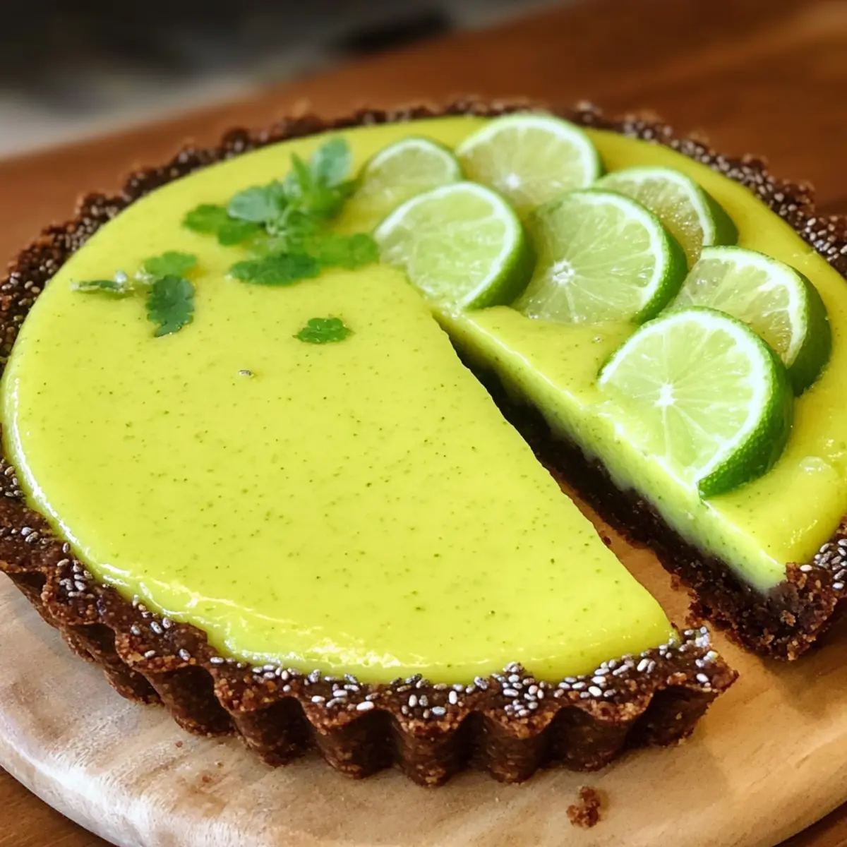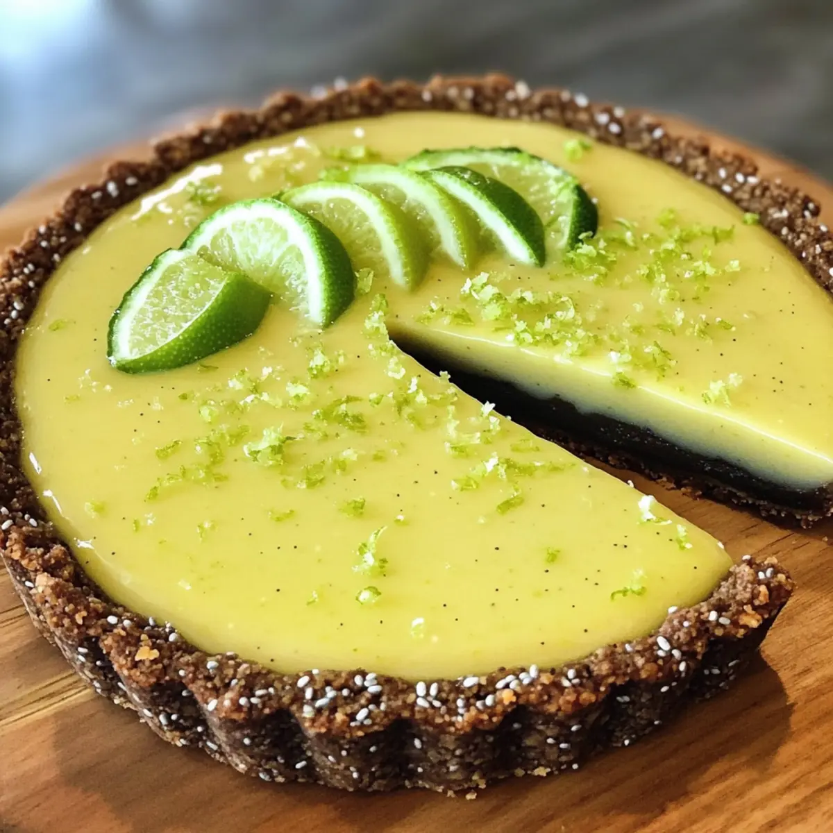 Die Limetten- und Chia-Samen-Tarte ist ein erfrischendes und gesundes Dessert, das die zesty Limette mit nussigen Chia-Samen vereint.