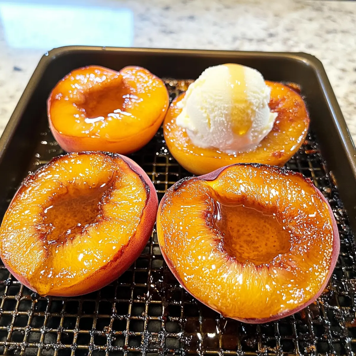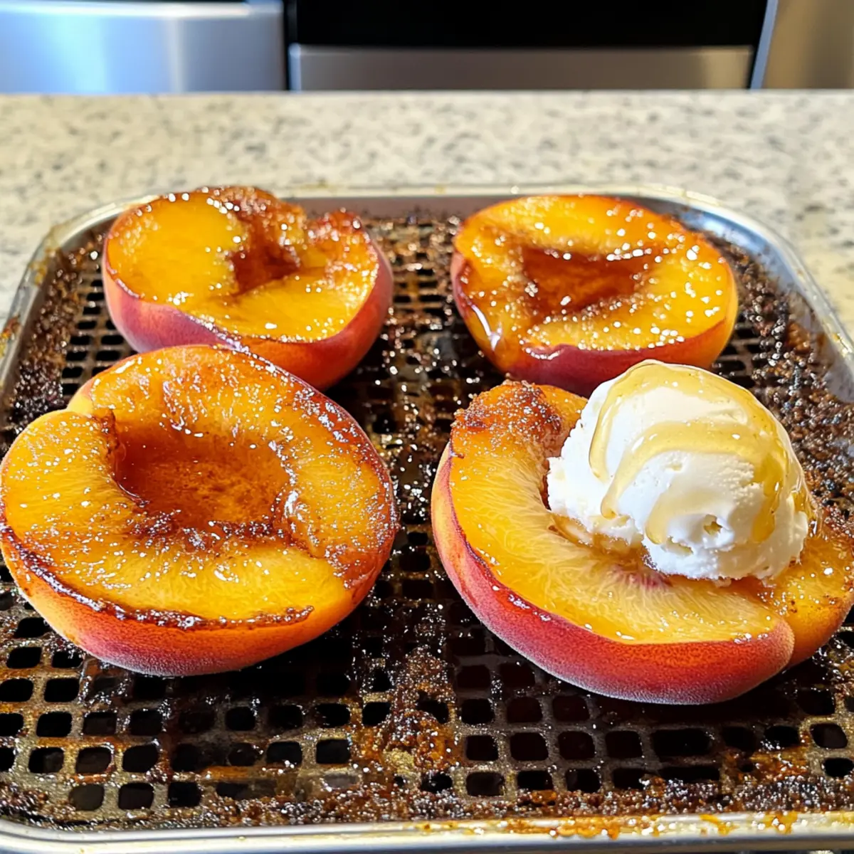 Die Sommerabende haben ihren ganz eigenen Zauber, wenn die Luft vom Duft frischer Früchte erfüllt ist. In dieser Zeit gönne ich mir gerne einen besonderen Genuss: Luftfritteuse Pfirsiche. Diese köstlichen, warmen Früchte sind nicht nur einfach zuzubereiten, sie bringen auch eine himmlische Karamellisierung hervor, die das Geschmackserlebnis auf ein neues Level hebt. Perfekt als erfrischendes Dessert an heißen Tagen, das ideal mit einer Kugel cremigem Eis oder einem Klecks luftiger Schlagsahne harmoniert. Wenn du Lust auf eine süße, glutenfreie Leckerei hast, die ganz schnell auf dem Tisch steht, dann sind diese Luftfritteuse Pfirsiche genau das Richtige für dich. Bereit, diesen Sommer mit einem unwiderstehlichen Dessert zu verzaubern? Warum liebe ich Luftfritteuse Pfirsiche? Einfachheit: Die Zubereitung erfordert nur wenige Zutaten und ist unkompliziert – jeder kann es schaffen! Wunderbarer Geschmack: Die Kombination aus süßen Pfirsichen und einer Karamellkruste macht jeden Bissen zum Genuss. Vielseitig: Ob mit Eiscreme oder Schlagsahne, diese Pfirsiche schmecken mit verschiedenen Toppings himmlisch. Saisonale Frische: Perfekt für den Sommer, wenn Pfirsiche in voller Pracht angeboten werden. Zeitersparnis: In weniger als 15 Minuten sind sie fertig – ideal für spontane Gäste oder einen süßen Fernwehmoment! Stöbere auch in unseren anderen schnellen Desserts für mehr Inspiration! Luftfritteuse Pfirsiche Zutaten • Für die Pfirsiche: Frische Pfirsiche – Sie sorgen für natürliche Süße und Saftigkeit; achte darauf, dass sie reif sind für den besten Geschmack. • Für die Karamellisierung: Brauner Zucker – Er verleiht zusätzliche Süße und fördert die Karamellisierung; du kannst ihn durch Kokosblütenzucker ersetzen für eine gesündere Option. Gemahlener Zimt – Fügt ein warmes, aromatisches Aroma hinzu; reduziere die Menge für einen milderen Geschmack. Butter – Sorgt für Reichhaltigkeit und hilft beim Bräunen; bei Bedarf kann auch Kokosöl als milchfreie Alternative verwendet werden. • Für das Topping (optional): Eiscreme/Schlagsahne – Diese Optionen bringen Cremigkeit und harmonieren perfekt mit den warmen Pfirsichen; wähle deinen Lieblingsgeschmack. Honig – Ein optionaler Drizzle am Ende für zusätzlichen Süßeschub; ahornsirup eignet sich ebenfalls als vegane Alternative. Mit diesen Zutaten kannst du die köstlichen Luftfritteuse Pfirsiche schnell zubereiten und deine Gäste beeindrucken! Schritt-für-Schritt-Anleitung für Luftfritteuse Pfirsiche Step 1: Luftfritteuse vorheizen Heize die Luftfritteuse auf 175°C (350°F) vor. Sprühe den Frittierkorb mit einer Antihaft-Spray ein, um sicherzustellen, dass die Pfirsiche später nicht daran haften bleiben. Während die Fritteuse vorheizt, kannst du dich um die Pfirsiche kümmern und die restlichen Zutaten vorbereiten. Step 2: Zutaten vermischen Nimm eine kleine Schüssel und vermische den braunen Zucker, den gemahlenen Zimt und die Butter gut miteinander. Achte darauf, dass keine Klumpen zurückbleiben und die Mischung schön cremig ist. Diese Karamellmischung wird später die köstlichen Luftfritteuse Pfirsiche verfeinern. Step 3: Pfirsiche vorbereiten Halbiere die frischen, reifen Pfirsiche und entferne die Steine. Lege die Pfirsichhälften mit der Schnittseite nach oben in den Frittierkorb. Achte darauf, dass sie gleichmäßig verteilt sind, damit die Luftzirkulation nicht behindert wird und sie gleichmäßig garen. Step 4: Karamellmischung auftragen Bestreue die Pfirsiche großzügig mit der vorbereiteten Karamellmischung. Achte darauf, dass die Mischung gleichmäßig auf jeder Hälfte verteilt ist, um eine perfekte Karamellisierung während des Frittierens zu erzielen, die dein Dessert noch köstlicher macht. Step 5: Pfirsiche frittieren Setze den Frittierkorb in die vorgeheizte Luftfritteuse und frittiere die Pfirsiche für etwa 7 bis 12 Minuten. Du erkennst, dass sie fertig sind, wenn die Oberfläche karamellisiert und die Pfirsiche zart sind. Überprüfe sie nach 7 Minuten auf ihre Konsistenz, um ein Überkochen zu vermeiden. Step 6: Anrichten und servieren Sobald die Luftfritteuse Pfirsiche fertig sind, nimm sie vorsichtig aus dem Frittierkorb. Serviere sie sofort, garniert mit einer Kugel Eiscreme oder einem Klecks Schlagsahne. Wenn gewünscht, träufle etwas Honig darüber für einen zusätzlichen süßen Genuss. Vorbereiten der Luftfritteuse Pfirsiche für eine entspannte Zubereitung Die Luftfritteuse Pfirsiche sind ideal für die Vorbereitung im Voraus! Du kannst die Karamellmischung aus braunem Zucker, Zimt und Butter bis 24 Stunden vorher in einem luftdichten Behälter aufbewahren, um die Aromen durchziehen zu lassen. Die Pfirsiche selbst kannst du ebenfalls bis 1 Stunde im Voraus halbieren und mit Zitronensaft beträufeln, um ein Braunwerden zu verhindern. Wenn du bereit bist zu servieren, verteil die Karamellmischung gleichmäßig auf den Pfirsichhälften, frittiere sie für 7 bis 12 Minuten in der Luftfritteuse und genieße diesen köstlichen Sommergenuss! So hast du in kürzester Zeit ein wunderbares Dessert gezaubert, das genauso delikat schmeckt wie frisch zubereitet. Variationen & Substitutionen für Luftfritteuse Pfirsiche Entdecke kreative Möglichkeiten, um deine Luftfritteuse Pfirsiche nach deinem Geschmack anzupassen und zu verfeinern. Lass dich inspirieren und genieße diese Variationen! Nectarinen: Ersetze die Pfirsiche durch reife Nectarinen für einen etwas anderen Geschmack – die süße Note harmoniert ebenfalls großartig. Honig-Alternative: Verwende Agavendicksaft anstelle von Honig, wenn du eine vegane Option bevorzugst. Es verleiht den Pfirsichen eine schöne Süße. Nussige Kruste: Bestreue die Karamellisierten Pfirsiche mit gehackten Mandeln oder Walnüssen, um einen herrlichen Crunch und einen nussigen Geschmack hinzuzufügen. Dies bringt extra Textur und eine köstliche Geschmackstiefe. Zimt-Variation: Füge eine Prise Muskatnuss zur Karamellmisch