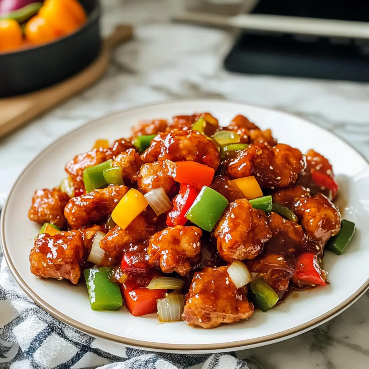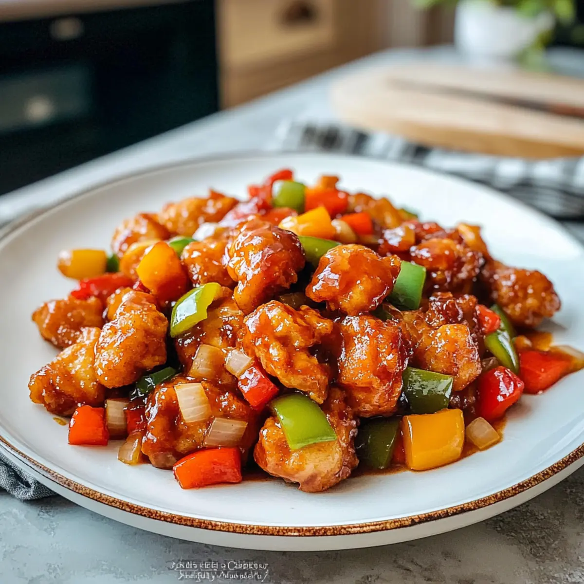 Der verführerische Duft von süß-sauren Aromen aus meiner Küche zieht jeden an. Heute teile ich mit euch mein Rezept für das Luftfritteuse Süßsauer Hähnchen, das nicht nur einfacher zuzubereiten ist als man denkt, sondern auch deutlich weniger Öl benötigt als die traditionelle Version. Diese gesunde Variante überzeugt durch knusprige, saftige Hähnchenstücke, die perfekt mit knackigem Gemüse und einer würzigen Sauce harmonieren. Ideal für stressige Wochentage, bietet dieses Gericht den Komfort von Hausmannskost, ohne in der Küche zu lange stehen zu müssen. Und das Beste? Es ist problemlos glutenfrei anpassbar! Seid ihr bereit, euer nächstes Lieblingsrezept zu entdecken? Warum werdet ihr dieses Rezept lieben? Einfachheit: Die Zubereitung ist kinderleicht – perfekt für Kochanfänger und erfahrene Küchenchefs. Weniger Öl, mehr Genuss: Diese Luftfritteuse Süßsauer Hähnchen-Variante bietet den vollen Geschmack eines klassischen Gerichts mit deutlich weniger Fett. Vielseitigkeit: Passt das Rezept ganz nach eurem Geschmack an! Probiert dazu Ananasstücke oder Tofu für eine vegetarische Alternative. Familienfreundlich: Die bunten Gemüse und die leckere Sauce kommen bei Jung und Alt gleichermaßen gut an – ideal für ein schnelles Familienessen. Schnell zubereitet: In weniger als 30 Minuten auf dem Tisch – perfekt für hektische Wochentage. Und wenn ihr nach weiteren schnellen Rezepten sucht, schaut euch auch unser Cremige Knoblauch Kartoffeln Rezept an! Luftfritteuse Süßsauer Hähnchen Zutaten • Dieses Rezept enthält alles, was ihr für das perfekte Gericht braucht! Für das Hähnchen Hähnchenschenkel ohne Haut – Hauptprotein, das beim Kochen zart und schmackhaft wird. Pflanzenöl – Hält das Hähnchen saftig und würzig; kann durch neutrales Öl ersetzt werden. Salz – Verstärkt den Geschmack des Hähnchens; keine Ersatzstoffe nötig. Maisstärke – Sorgt für eine knusprige Panade am Hähnchen. Für die Sauce Ketchup – Bringt Süße und einen Hauch von Säure in die Sauce. Shaoxing-Wein (oder trockener Sherry) – Vertieft den Geschmack; für glutenfrei, Tamari verwenden oder weglassen. Reisessig – Fügt Säure hinzu, um die Süße der Sauce zu balancieren. Sojasauce – Sorgt für Umami; Tamari verwenden für glutenfreie Variante. Brauner Zucker – Liefert Süße; kann durch Kokoszucker ersetzt werden, um den glykämischen Index zu senken. Wasser – Reguliert die Konsistenz der Sauce; keine Ersatzstoffe nötig. Für die Gemüse Erdnussöl (oder Pflanzenöl) – Zum Braten; kann durch hitzebeständiges Öl ersetzt werden. Knoblauch – Bringt Aroma und Tiefe ins Gericht. Geriebener Ingwer – Verleiht dem Gericht Wärme und Frische. Weiße Zwiebel – Sorgt für Süße und Textur; kann für weniger Geschmack weggelassen werden. Paprika – Fügt Crunch und Farbe hinzu; eine Mischung verschiedener Farben sorgt für visuelle Anziehung. Schritt-für-Schritt-Anleitung für Luftfritteuse Süßsauer Hähnchen Step 1: Hähnchen marinieren Vermischt die Hähnchenschenkel ohne Haut in einer Schüssel mit Pflanzenöl und Salz. Lasst die Mischung etwa 10 Minuten marinieren, sodass das Hähnchen die Aromen gut aufnehmen kann. Während dieser Zeit könnt ihr das Gemüse und die Sauce vorbereiten! Step 2: Hähnchen panieren Fügt die Maisstärke zu den marinierten Hähnchenteilen hinzu und mischt alles gut, bis die Stücke ungleichmäßig bedeckt sind. Diese Schicht sorgt dafür, dass das Hähnchen in der Luftfritteuse schön knusprig wird, ohne viel Öl zu benötigen. Step 3: Luftfritteuse vorheizen Heizt die Luftfritteuse auf 230°C (450°F) vor. Diese hohe Temperatur hilft, das Hähnchen schnell zu garen, während es außen knusprig und innen zart bleibt. Stapelt die Hähnchenstücke in der Fritteuse, sodass sie genug Platz haben, um gleichmäßig zu garen. Step 4: Hähnchen kochen Kocht die Hähnchenstücke in der Luftfritteuse für 8 Minuten, bis die Panade leicht feucht aussieht. Danach wendet das Hähnchen und kocht es weitere 5-6 Minuten, bis es goldbraun und durchgegart ist. Überprüft die Garheit, um sicherzustellen, dass es zart bleibt. Step 5: Sauce vorbereiten Erhitzt in einer Pfanne das Erdnussöl und sautiert dort den Knoblauch und den geriebenen Ingwer, bis sie aromatisch sind. Fügt die gewürfelte weiße Zwiebel und die geschnittene Paprika hinzu und bratet sie für 2-3 Minuten an, bis sie leicht weich sind und Farbe annehmen. Step 6: Sauce eindicken Mischt jetzt den Ketchup, Shaoxing-Wein, Reisessig, Sojasauce, braunen Zucker und Wasser in einer Schüssel und gießt diese Mischung in die Pfanne. Lasst die Sauce bei mittlerer Hitze köcheln, bis sie eindickt. Dies verleiht der Luftfritteuse Süßsauer Hähnchen eine köstliche Konsistenz. Step 7: Hähnchen kombinieren Nehmt das gebratene Hähnchen aus der Luftfritteuse und gebt es in die Pfanne mit der Sauce. Rührt alles gut um, sodass das Hähnchen gleichmäßig mit der süß-sauren Sauce überzogen ist. Lasst alles kurz zusammen köcheln, damit die Aromen verschmelzen und das Gericht frisch bleibt. Step 8: Servieren Serviert das Luftfritteuse Süßsauer Hähnchen heiß, idealerweise über einem Bett aus Reis oder Nudeln. Ergänzt das Gericht mit extra Gemüse oder einer frischen Beilage für ein vollendetes Essen. Variationen zum Luftfritteuse Süßsauer Hähnchen Wollt ihr euer Luftfritteuse Süßsauer Hähnchen noch individueller gestalten? Hier sind einige spannende Ideen für verschiedene Geschmäcker und Bedürfnisse! Tropische Note: Fügt Ananasstücke hinzu, um dem Gericht eine süß-fruchtige Frische zu verleihen. Diese Kombination harmoniert perfekt mit der würzigen Sauce. Extra Crunch: Integriert Bambussprossen oder Wasserkastanien für zusätzlichen Biss und Textur. Damit wird das Gericht noch interaktiver und spannend! Vegetarische Option: Ersetzt das Hähnchen durch Tofu für eine köstliche vegetarische Variante. Tofu funktioniert besonders gut, wenn er vorher gut marinie
