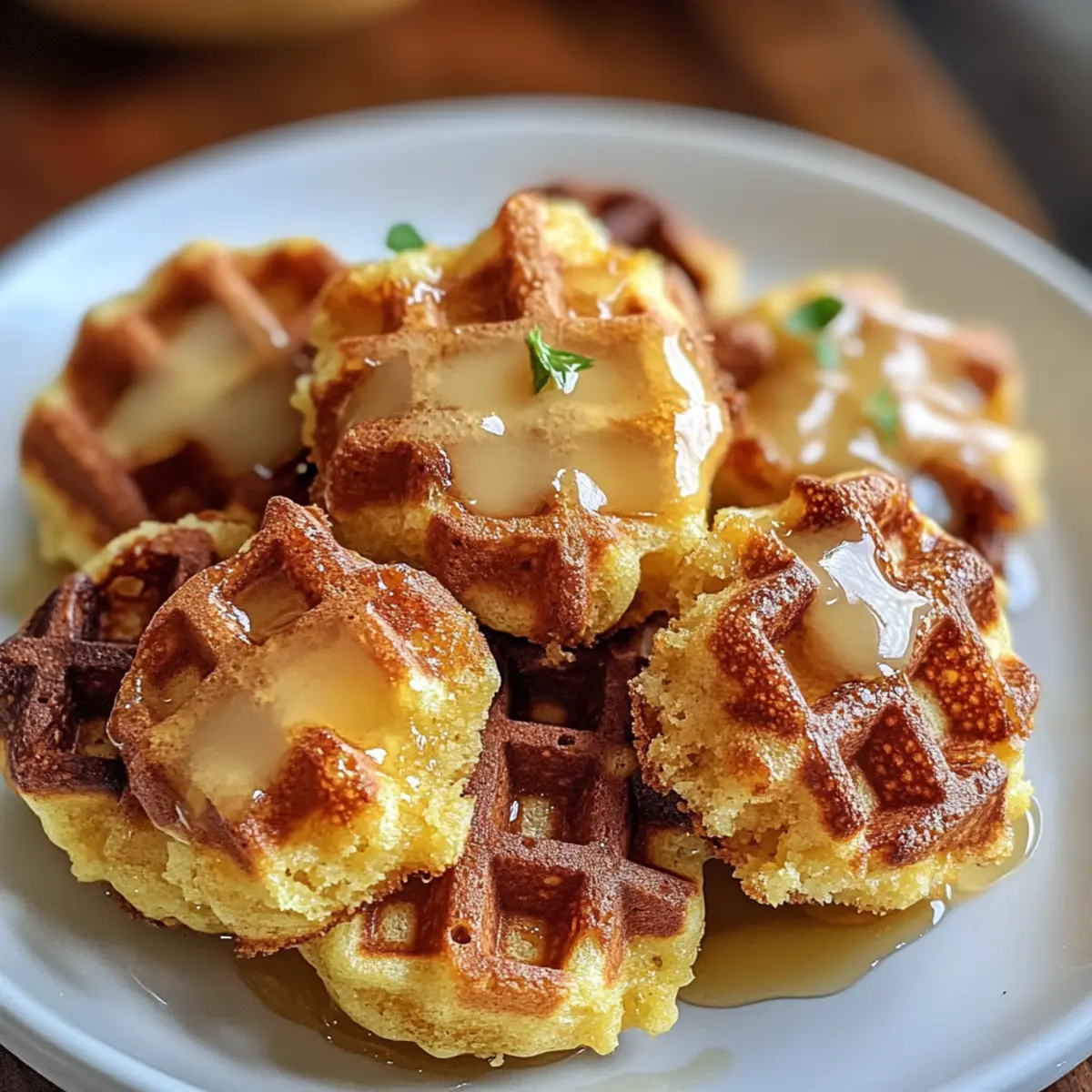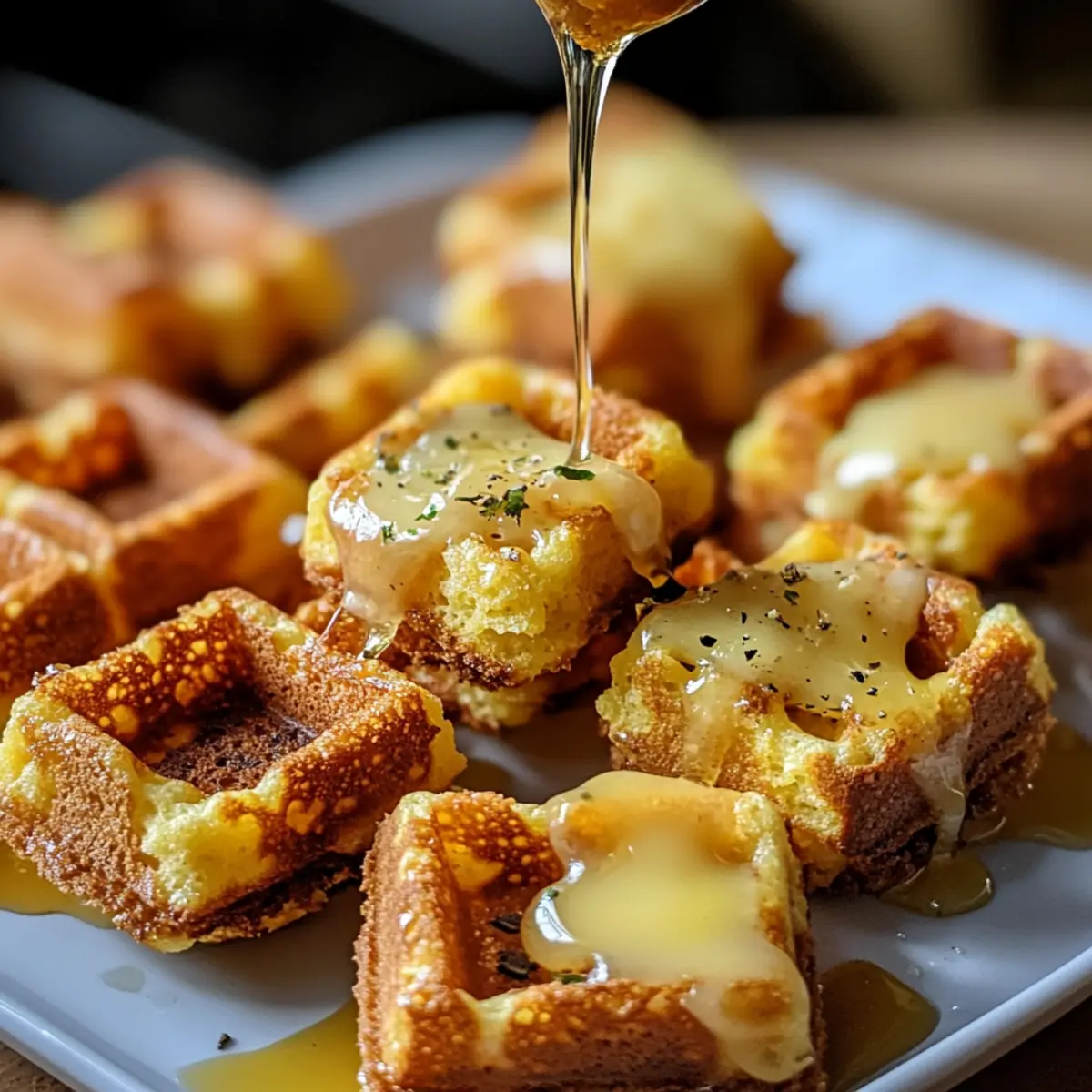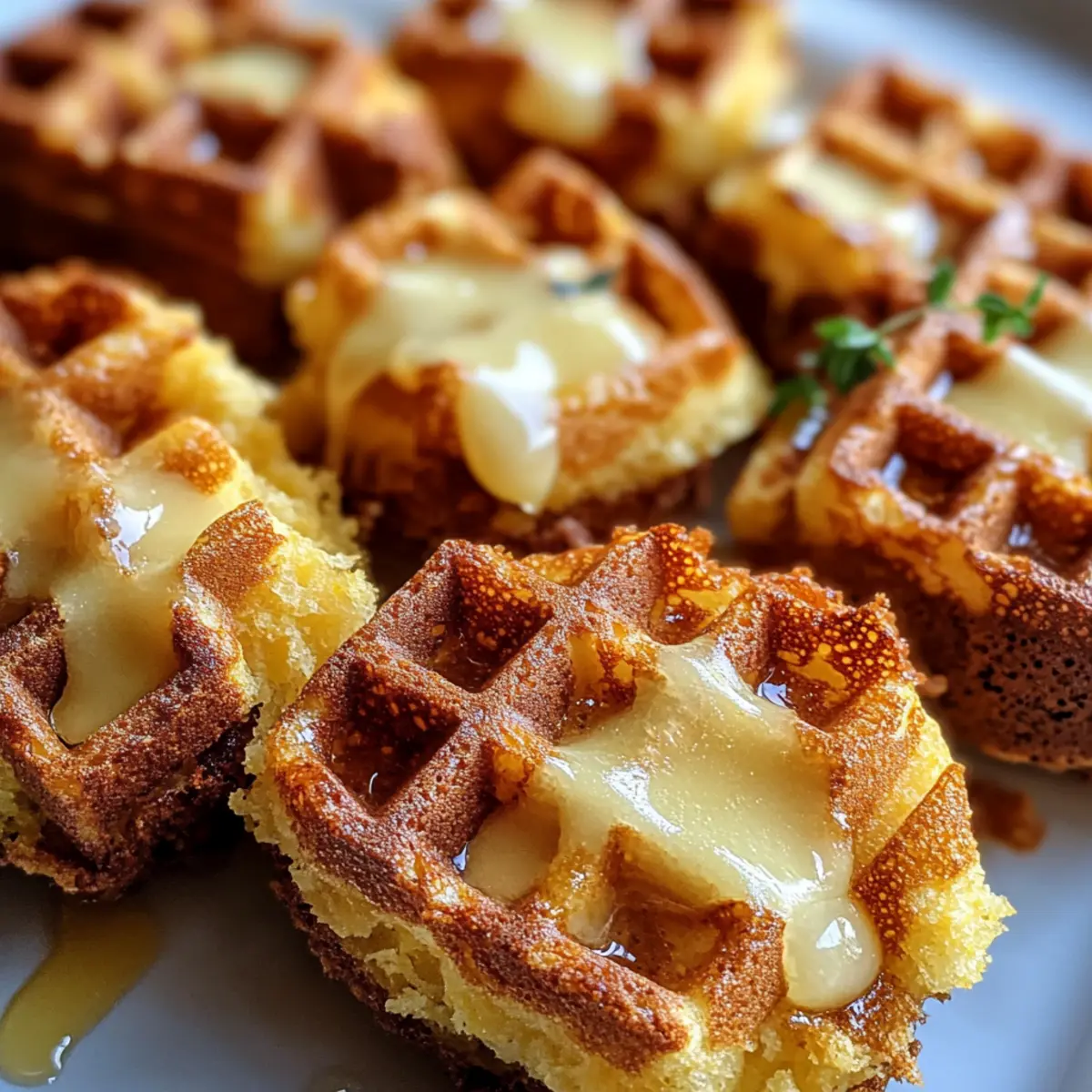 Hast du schon einmal den unwiderstehlichen Duft von frisch gebackenem Maisbrot erlebt, der durch die Küche zieht? Diese Maisbrot Waffel Bissen mit geräuchertem Gouda und Honig sind nicht nur ein Genuss für die Sinne, sie sind auch ein einfacher und vielseitiger Appetitanreger, den jeder in der Familie lieben wird. Mit der perfekten Kombination aus herzhaftem Käse und süßem Honig sind diese kleinen Häppchen eine geniale Abwechslung zum herkömmlichen Snack. Egal, ob du sie zum Brunch servierst oder als einlächelnden Snack für Gäste bietest – die Zubereitung ist so unkompliziert, dass selbst Kochanfänger problemlos mithalten können. Neugierig auf die unzähligen Möglichkeiten, die dieses Rezept bietet? Lass uns direkt loslegen! Warum sind diese Waffel Bissen einzigartig? Einfachheit: Die Zubereitung dieser Maisbrot Waffel Bissen ist kinderleicht und erfordert nur grundlegende Kochkenntnisse – perfekt für Anfänger! Vielfalt: Du kannst leckere Zutaten wie Jalapeños, gerösteten Mais oder sogar Speck hinzufügen, um den Geschmack zu variieren und deine eigene Note einzubringen. Herzhafter Genuss: Der rauchige Gouda vereint sich wunderbar mit der Süße des Honigs und sorgt für eine Geschmacksexplosion, die wirklich jeden begeistert. Ideal für jede Gelegenheit: Ob beim Brunch, als Appetitanreger oder sogar als Snack für den Filmabend – diese Waffel Bissen sind immer ein Hit! Zeitersparnis: Du kannst sie schnell zubereiten und sogar im Voraus lagern, damit du immer einen köstlichen Snack griffbereit hast. Geselligkeit: Serviere sie mit verschiedenen Dips wie Sauerrahm oder Aioli und genieße tolle Gespräche mit Freunden und Familie! Maisbrot Waffel Bissen Zutaten • Die Zutaten sind das Herzstück deines Rezepts! Für den Teig Maismehl – sorgt für den klassischen Maisbrotgeschmack und eine schöne Textur. Du kannst es auch durch Polenta ersetzen für einen etwas anderen Geschmack. Allzweckmehl – verleiht den Bissen Struktur und Stabilität. Vollkornmehl kann für einen nussigeren Geschmack verwendet werden. Backpulver – fungiert als Treibmittel, um eine leichte und fluffige Konsistenz zu gewährleisten. Salz – hebt den Geschmack insgesamt hervor. Vermeide es, das Salz wegzulassen, da es die Süße ausbalanciert. Zucker – sorgt für Süße und hilft, eine schöne goldene Farbe durch Karamellisierung zu erzielen. Backpulver – wirkt zusammen mit der Buttermilch, um eine zarte, fluffige Textur im Teig zu erzeugen. Eier – binden die Zutaten und fügen Feuchtigkeit und Reichhaltigkeit hinzu. Sie können durch Leinsamenmehl für eine vegane Option ersetzt werden. Buttermilch – sorgt für einen leicht säuerlichen Geschmack und zusätzliche Feuchtigkeit; kann durch verdünnten Joghurt oder eine Mischung aus pflanzlicher Milch und Essig ersetzt werden. Ungesalzene Butter – sorgt für Reichhaltigkeit; du kannst auch Kokosöl oder vegane Butter als Alternative verwenden. Geräucherter Gouda – bringt eine tiefgründige, rauchige Salzigkeit; kannst ihn durch jeden Käse ersetzen, der gut schmilzt. Honig – dient als krönender Abschluss, um die Aromen mit Süße zu betonen. Ahornsirup kann ebenfalls verwendet werden. Frischer Thymian (optional) – bietet eine aromatische Garnitur, die Farbe und Erdigkeit hinzufügt. Für die Optionen Füge Jalapeños hinzu, wenn du es scharf magst, oder gerösteten Mais für mehr Textur. Für den extra Genuss kannst du auch Speck hinzufügen. Mit diesen Zutaten bereitest du die köstlichen Maisbrot Waffel Bissen mit geräuchertem Gouda und Honig zu – ein Snack, der einfach unwiderstehlich ist! Schritt-für-Schritt-Anleitung für Maisbrot Waffel Bissen mit geräuchertem Gouda und Honig Step 1: Waffeleisen vorheizen Heize dein Waffeleisen gemäß den Herstelleranweisungen vor. Während das Eisen aufheizt, kannst du sicherstellen, dass alle Zutaten für die Maisbrot Waffel Bissen bereitgestellt sind. Ein gut vorgeheiztes Waffeleisen sorgt dafür, dass die Bissen gleichmäßig und knusprig gebacken werden. Step 2: Trockene Zutaten mischen In einer mittelgroßen Schüssel das Maismehl, das Allzweckmehl, das Backpulver, das Salz, den Zucker und das Backpulver gut miteinander verquirlen, bis alles gut vermischt ist. Achte darauf, keine Klumpen zu haben, um eine gleichmäßige Textur der Waffeln zu gewährleisten. Dieser Schritt sorgt für die perfekte Basis für deine Maisbrot Waffel Bissen mit geräuchertem Gouda. Step 3: Feuchte Zutaten vorbereiten In einer separaten Schüssel die Eier aufschlagen und gut verquirlen. Füge dann die Buttermilch und die geschmolzene Butter hinzu, und vermische alles gründlich, bis eine homogene Masse entsteht. Diese feuchten Zutaten sorgen für die nötige Feuchtigkeit und Reichhaltigkeit in den Waffeln. Step 4: Trockene und feuchte Zutaten kombinieren Jetzt die feuchten Zutaten zu den trockenen Zutaten geben. Vorsichtig umrühren, bis alles gerade so vermischt ist; kleine Klumpen sind in Ordnung. Übermixen kann die Waffeln zäh machen, also sage Adieu und mische nur so lange, bis sich die Zutaten vereinen. Step 5: Käse hinzufügen Füge nun den geriebenen geräucherten Gouda vorsichtig zum Teig hinzu und falte ihn sanft ein. Der Käse sorgt für einen herzhaften Geschmack und schmelzige Köstlichkeit in den Waffel Bissen, also sei behutsam, um die Luftigkeit des Teigs zu bewahren. Step 6: Waffeleisen einfetten Das Waffeleisen gut mit Kochspray oder etwas Butter einfetten, damit die Maisbrot Waffel Bissen leicht herauszunehmen sind, ohne zu kleben. Ein gut gefettetes Eisen garantiert perfekte, goldene Waffeln ohne Festkleben und erhöht die knusprige Textur. Step 7: Teig einfüllen Gib genug Teig auf die Waffelplatten, um das Eisen zu füllen, ohne dass der Teig überläuft. Achte darauf, dass jedes Quadrat der Waffeln gleichmäßig gefüllt ist, sodass sie beim Backen gleichmäßig aufgehen. Step 8: Waffeln backen Schließe das Waffeleisen und backe die Waffel Bissen, bis sie goldbraun und k