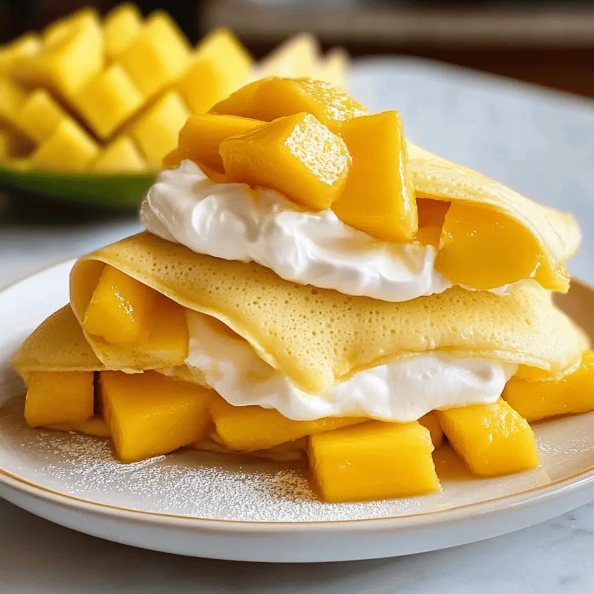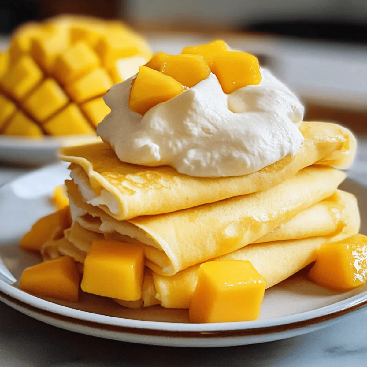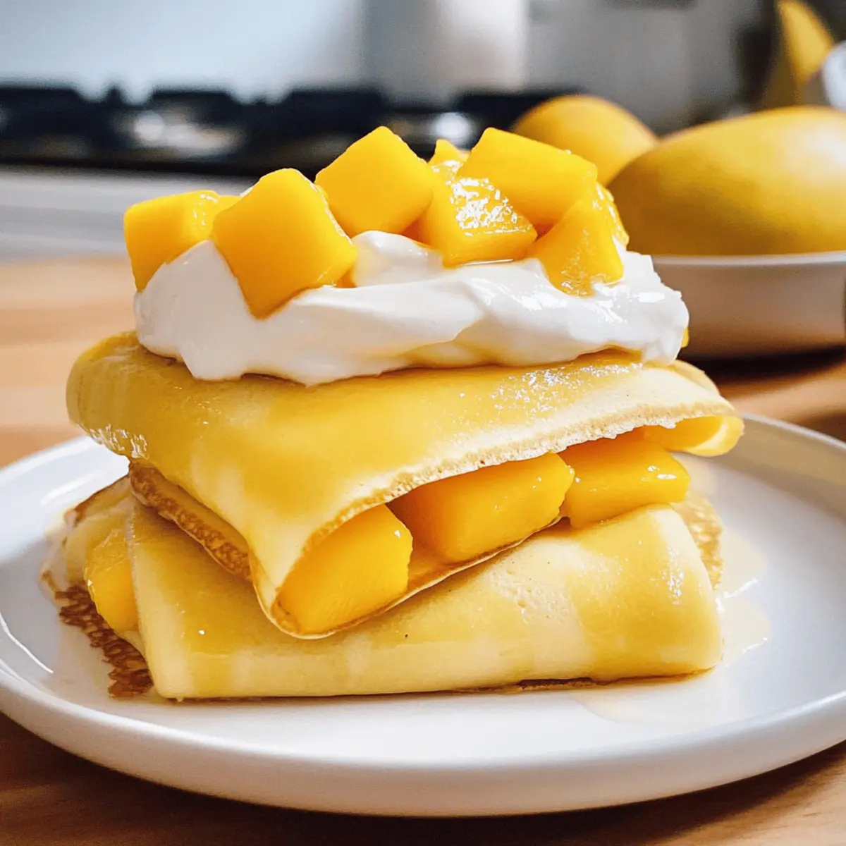 Wenn ich an Sommer denke, kommen mir sofort die saftigen Mango-Pfannkuchen in den Sinn. Diese zarten, sanften Kreationen sind einfach so verlockend – jeder Biss enthüllt die perfekte Kombination aus süßer, reifer Mango und luftiger Sahne. Unsere Rezeptur für Mango-Pfannkuchen ist nicht nur schnell zuzubereiten, sondern zaubert auch das Gefühl eines leichten, erfrischenden Desserts, das jeder lieben wird. Ob als krönender Abschluss eines Abends oder einfach als süßer Snack für zwischendurch, diese Pfannkuchen eignen sich hervorragend, um die gesamte Familie zu begeistern. Bereit, etwas Magie in deiner Küche zu entfalten? Lass uns gleich mit dem Rezept beginnen! Warum wirst du dieses Rezept lieben? Einfachheit: Die Zubereitung dieser Mango-Pfannkuchen erfordert nur grundlegende Kochkenntnisse und ist schnell erledigt. Erfrischender Geschmack: Die Kombination aus süßer Mango und luftiger Sahne sorgt für eine himmlische Geschmacksexplosion in jedem Bissen. Vielseitig: Du kannst die Füllung variieren und mit anderen Früchten experimentieren, um ganz neue Geschmackskombinationen zu entdecken. Familienfreundlich: Dieses Rezept wird sowohl bei Kindern als auch bei Erwachsenen Begeisterung hervorrufen – perfekt für Sommerpartys oder einen gemütlichen Snack. Leicht und cremig: Diese Pfannkuchen sind so leicht, dass sie sich ideal als Dessert eignen, ohne dass du ein schweres Gefühl bekommst. Schnell und unkompliziert: In kürzester Zeit zauberst du ein köstliches Dessert auf den Tisch, perfekt auch für stressige Tage. Genieße sie frisch oder als süßen Snack! Mango-Pfannkuchen Zutaten • Diese Mango-Pfannkuchen sind nicht nur ein Genuss, sondern auch einfach zuzubereiten! Milch – sorgt für Feuchtigkeit und Reichhaltigkeit. Substitution: Mandelmilch oder Kokoscreme für milchfreie Optionen. Weizenmehl (Allzweck) – bietet Struktur für die Pfannkuchen. Glutenfreies Allzweckmehl kann für glutenfreie Variationen verwendet werden. Maisstärke – trägt zur samtigen, gummiartigen Textur der Pfannkuchen bei. Keine Substitutionen empfohlen, da sie für die Textur entscheidend ist. Puderzucker – süßt den Teig und die Sahne ohne körnigen Nachgeschmack. Substitution: Kristallzucker kann verwendet werden, aber die Textur kann sich ändern. Eier – binden die Zutaten und fügen Reichhaltigkeit hinzu. Verwende große Eier (55-60g), um beste Ergebnisse zu erzielen. Gelbe Lebensmittelfarbe – sorgt für die charakteristische blassgelbe Farbe der Pfannkuchen. Natürliche Alternativen sind akzeptabel, können jedoch die Konsistenz beeinflussen. Mangos – frisches Obst, das Süße und Saftigkeit bietet, das Highlight des Rezepts. Andere reife Steinfrüchte können verwendet werden, aber Mangos sind für den authentischen Geschmack am besten. Schlagsahne – wird für die Füllung verwendet und macht sie reichhaltig und cremig. Kokoscreme kann für eine milchfreie Option verwendet werden. Vanilleextrakt – verstärkt den Geschmack. Keine Substitutionen empfohlen. Step-by-Step Instructions for Mango-Pfannkuchen Step 1: Teig zubereiten Mische in einer Schüssel die Milch, das gesiebte Weizenmehl, die Maisstärke und den Puderzucker, bis die Mischung glatt ist. Füge die Eier und die gelbe Lebensmittelfarbe hinzu und verrühre alles gut, bis die Zutaten vollständig kombiniert sind. Decke die Schüssel ab und lasse den Teig mindestens 1 Stunde im Kühlschrank ruhen, damit er die richtige Konsistenz erreicht. Step 2: Pfannkuchen backen Erhitze eine beschichtete Pfanne auf mittlerer Stufe und sprühe sie leicht mit Öl ein. Gieße etwa 45 ml des vorbereiteten Teigs in die Pfanne und schwenke sie, um den Boden gleichmäßig zu bedecken. Backe den Pfannkuchen für 45 Sekunden bis 1 Minute, bis er fest wird, ohne ihn zu wenden. Wiederhole diesen Schritt mit dem restlichen Teig, bis alle Pfannkuchen fertig sind. Step 3: Abkühlen lassen Lasse die fertig gebackenen Pfannkuchen mindestens 1 Stunde bei Raumtemperatur abkühlen, damit sie vollständig auskühlen. Dies ist wichtig, um sicherzustellen, dass sie beim Füllen nicht auseinanderfallen. Lege die Pfannkuchen vorsichtig auf einen Teller, um Platz für die nächste Zubereitung zu schaffen. Step 4: Füllung zubereiten Schlage in einer großen Schüssel die kalte Schlagsahne mit dem Puderzucker und dem Vanilleextrakt, bis sie steif ist und Spitzen bildet. Diese cremige und luftige Füllung wird die PMango-Pfannkuchen perfekt ergänzen. Achte darauf, die Sahne nicht zu übermixen, damit sie ihre Konsistenz behält. Step 5: Pfannkuchen füllen Lege einen abgekühlten Pfannkuchen auf eine flache Oberfläche und verteile gleichmäßig eine Schicht der bereitgestellten Sahne darauf. Schneide die reifen Mangos in kleine Stücke und platziere sie großzügig darauf. Rolle den Pfannkuchen vorsichtig, aber fest auf, um eine schöne Form zu erhalten, und achte darauf, dass die Füllung nicht herausrutscht. Step 6: Servieren Serviere die Mango-Pfannkuchen sofort für optimalen Frischegenuss. Diese zarten Pfannkuchen sind der ideale Abschluss für jedes Essen oder einfach als süßer Snack zwischendurch. Geniße jeden Bissen und lass dich von der Kombination aus saftiger Mango und luftiger Sahne verwöhnen. Praktische Vorbereitungen für Mango-Pfannkuchen Die Mango-Pfannkuchen sind perfekt für alle, die Zeit sparen möchten! Du kannst den Teig bis zu 24 Stunden im Voraus zubereiten und im Kühlschrank ruhen lassen. Auch die Pfannkuchen selbst können ungefüllt bis zu 3 Tage im Voraus zubereitet und in einem luftdichten Behälter mit Backpapier dazwischen gelagert werden, um ein Zusammenkleben zu verhindern. Wenn du bereit bist zu servieren, einfach die Sahne frisch aufschlagen und die gekühlten, gefüllten Pfannkuchen sofort genießen, damit die Füllung ihre Luftigkeit behält. So hast du im Handumdrehen ein köstliches und erfrischendes Dessert, das dennoch genau so lecker bleibt wie frisch zubereitet! Lagerungstipps für Mango-Pfannkuchen