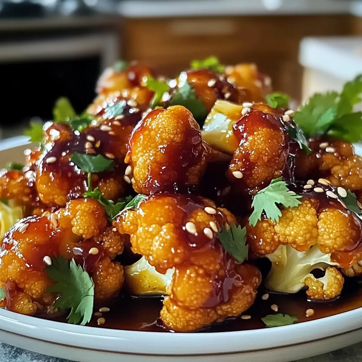 Sobald der Blumenkohl fertig ist, nimm ihn aus dem Ofen und streue optional Sesamsamen und frischen Koriander oder Frühlingszwiebeln darüber. Diese Garnitur sorgt nicht nur für zusätzlichen Crunch, sondern hebt auch das gesamte Gericht visuell auf eine neue Ebene.