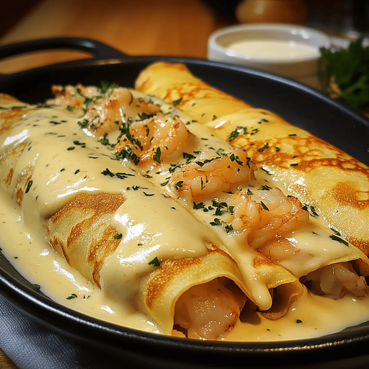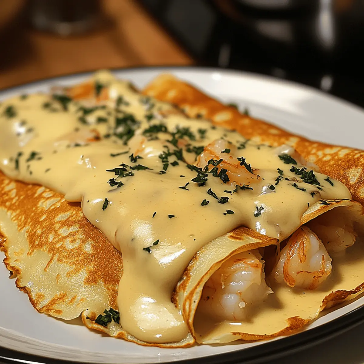 Während ich letzte Woche in meiner kleinen Küche stand, um ein gemütliches Abendessen für die Familie zuzubereiten, fiel mein Blick auf die Zutatenschublade und die Idee für elegante Seafood Crepes mit einer samtigen Béchamelsauce war geboren. Diese zarten Crepes, gefüllt mit einer köstlichen Meeresfrüchte-Mischung aus Garnelen, Jakobsmuscheln und Krabbenfleisch, laden nicht nur zum Schlemmen ein, sondern sind auch eine wahre Freude für das Auge. Mit der cremigen Béchamelsauce, die reich und delikat ist, wird dieses Gericht zum perfekten Genuss für besondere Anlässe und gemütliche Familienabende. Wer kann da schon widerstehen? Lass uns gemeinsam herausfinden, wie einfach es ist, diese Gourmet-Leckerei zuzubereiten! Warum werden Sie dieses Rezept lieben? Einfachheit: Die Zubereitung der Meeresfrüchte-Crêpes ist unkompliziert und erfordert nur grundlegende Kochkenntnisse. Vielfalt: Dieses Rezept bietet zahlreiche Variationen, von köstlichen Gemüsefüllungen bis hin zu verschiedenen Fleischalternativen, die jeden Geschmack bedienen. Cremige Textur: Die samtige Béchamelsauce ist das i-Tüpfelchen dieses Gerichts und sorgt für ein unvergleichliches Geschmackserlebnis. Perfekt für Feiern: Ob bei familiären Zusammenkünften oder eleganten Abendessen, diese Crêpes beeindrucken und sorgen für ein unvergessliches kulinarisches Erlebnis. Schnell zubereitet: Dank der Möglichkeit, die Füllung im Voraus zuzubereiten, sparen Sie Zeit, ohne dabei auf den exquisiten Geschmack zu verzichten. Lassen Sie sich auch von anderen köstlichen Gerichten inspirieren, wie beim Schnelle Spaghetti mit Meeresfrüchten oder den Knusprigen Garnelen Tacos. Meeresfrüchte Crêpes Zutaten • Werfen Sie einen Blick auf die Zutaten, um die köstlichen Meeresfrüchte-Crêpes zu zaubern! Für die Crêpes: Crêpes – Diese zarten Hüllen sind die perfekte Basis für die Füllung; verwenden Sie gekaufte oder selbstgemachte Crêpes nach Belieben. Für die Füllung: Garnelen – Dies ist die Hauptproteinquelle, die Süße und Festigkeit bietet; Sie können sie durch gekochtes Hähnchen oder Pilze ersetzen. Jakobsmuscheln – Sie verleihen einen salzigen Geschmack und erhöhen den Reichtum der Meeresfrüchte; alternativ können Sie mehr Garnelen oder Fisch verwenden, wenn gewünscht. Krabbenfleisch – Es bringt eine zarte Süße und verleiht dem Gericht mehr Luxus; Imitatkrabben sind ebenfalls möglich, wenn nötig. Für die Béchamelsauce: Butter – Unverzichtbar für die Béchamel; sorgt für zusätzlichen Reichtum; nutzen Sie Olivenöl für eine milchfreie Option. Mehl – Verdickungsmittel für die Béchamel; glutenfreies Mehl kann für glutenfreie Varianten verwendet werden. Milch – Sie ist die Grundlage für eine cremige Sauce; Vollmilch sorgt für die beste Konsistenz und pflanzliche Alternativen wie Mandel- oder Hafermilch sind ebenfalls geeignet. Muskatnuss – Sie verleiht der Béchamelsauce Wärme; ist optional, aber verbessert das Geschmacksprofil. Salz & Pfeffer – Unverzichtbar für die Würze; je nach Geschmack anpassen. Für das Topping: Béchamelsauce – Über die gefüllten Crêpes gießen, um eine köstliche, cremige Schicht zu schaffen. Entdecken Sie die Wunder dieser Meeresfrüchte Crêpes und genießen Sie die Verbindung von Eleganz und Komfort, die sie zu einem unvergesslichen Gericht macht! Schritt-für-Schritt-Anleitungen für Meeresfrüchte Crêpes mit cremiger Béchamelsauce Schritt 1: Crêpes vorbereiten Mischen Sie die Zutaten für die Crêpes in einer Schüssel, bis der Teig glatt ist. Lassen Sie den Teig etwa 30 Minuten ruhen. Erhitzen Sie eine beschichtete Pfanne auf mittlerer Stufe und geben Sie eine kleine Menge Butter hinein. Gießen Sie eine Kelle Teig in die Pfanne und schwenken Sie sie, um eine dünne Schicht zu bilden. Braten Sie die Crêpe 1-2 Minuten, bis sie goldbraun ist, und wenden Sie sie dann für weitere 30 Sekunden. Legen Sie die fertigen Crêpes zum Abkühlen beiseite. Schritt 2: Béchamelsauce zubereiten Schmelzen Sie bei mittlerer Hitze 50 g Butter in einem Topf. Fügen Sie 50 g Mehl hinzu und rühren Sie ständig, um eine glatte Paste (Roux) zu bilden. Lassen Sie diese Mischung 1-2 Minuten kochen, um den Mehlgeschmack zu reduzieren. Gießen Sie langsam 500 ml Milch unter ständigem Rühren dazu, bis die Sauce dickflüssig wird. Mit einer Prise Muskatnuss, Salz und Pfeffer abschmecken. Stellen Sie die Béchamelsauce auf die Seite, während Sie die Füllung vorbereiten. Schritt 3: Meeresfrüchtefüllung zubereiten In einer großen Pfanne bei mittlerer Hitze 30 g Butter schmelzen. Fügen Sie 200 g Garnelen und 200 g Jakobsmuscheln hinzu und sautieren Sie sie 3-5 Minuten lang, bis sie gar sind und eine rosa Farbe annehmen. Geben Sie 100 g Krabbenfleisch dazu und würzen Sie die Mischung mit Salz und Pfeffer. Mischen Sie einen Teil der vorbereiteten Béchamelsauce in die Meeresfrüchtefüllung und rühren Sie gut um. Lassen Sie die Mischung kurz abkühlen. Schritt 4: Crêpes füllen und aufrollen Nehmen Sie eine Crêpe und legen Sie etwa 2-3 Esslöffel der Meeresfrüchtefüllung in die Mitte. Falten Sie die Crêpe entweder in der Mitte oder rollen Sie sie auf, um die Füllung zu umschließen. Wiederholen Sie diesen Vorgang mit den verbleibenden Crêpes und der Füllung. Legen Sie die gefüllten Crêpes eng aneinander in eine zurückhaltende Auflaufform. Schritt 5: Béchamelsauce über die Crêpes gießen Gießen Sie die restliche Béchamelsauce gleichmäßig über die gefüllten Crêpes in der Auflaufform. Achten Sie darauf, dass alle Crêpes gut bedeckt sind, um ihre Feuchtigkeit zu bewahren. Streuen Sie nach Belieben etwas geriebenen Käse darüber. Backen Sie die Crêpes im vorgeheizten Ofen bei 180 Grad Celsius für 20-25 Minuten oder bis die Oberfläche goldbraun und blubbernd ist. Schritt 6: Servieren und genießen Nehmen Sie die Meeresfrüchte Crêpes aus dem Ofen und lassen Sie sie kurz abkühlen. Servieren Sie die Crêpes heiß, garniert mit f