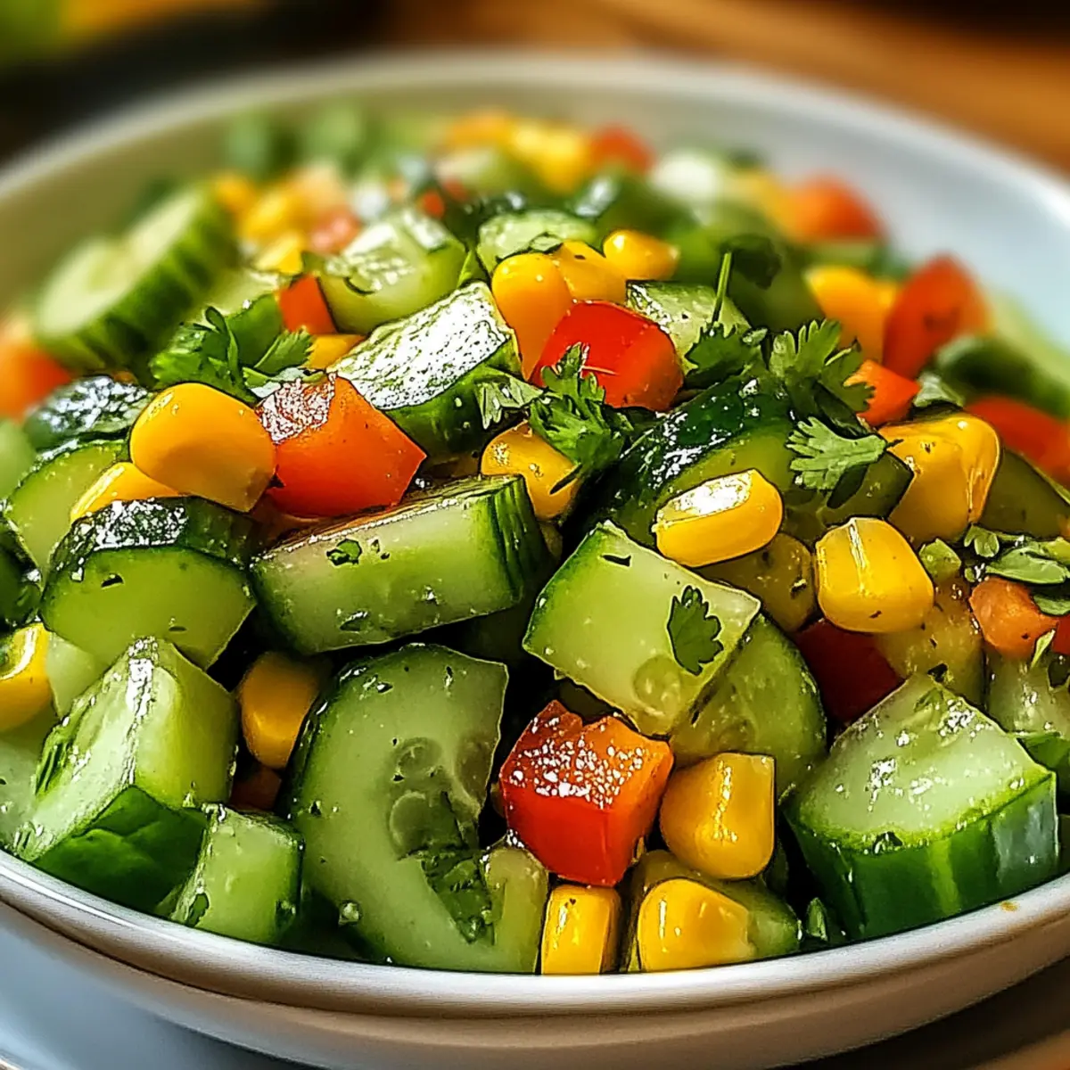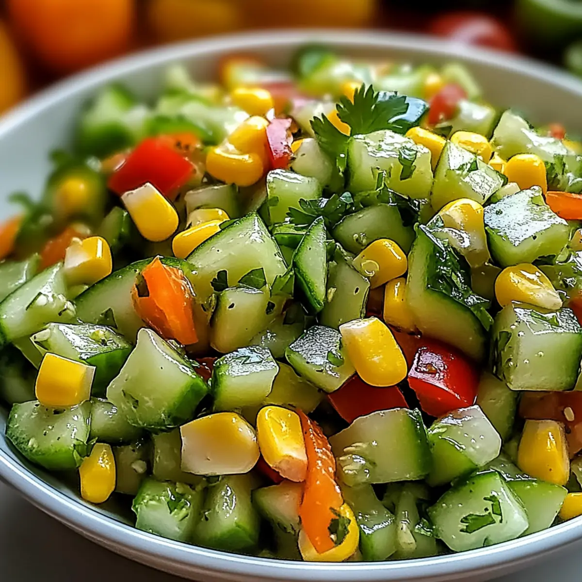 Die Sonne scheint und der Grill wird angeheizt – doch was fehlt da noch zum perfekten Sommerpicknick? Diese Frage stellte ich mir letztes Wochenende und hatte sofort die Antwort parat: ein frischer, zesty Mexikanischer Gurkensalat! In nur 10 Minuten zubereitet, verbindet er knackige Gurken mit süßem Mais und einem spritzigen Limetten-Dressing. Dieses Rezept ist nicht nur glutenfrei und vegan, sondern auch eine ideale, kalorienarme Beilage für alle Jahreszeiten – ob bei Partys, Barbecues oder als leichte Abendmahlzeit. Ich liebe es, mit verschiedenen Paprikas oder sogar einer Prise Jalapeño zu experimentieren, um dem Ganzen einen besonderen Kick zu verleihen! Was sind eure Lieblingsvarianten für eine erfrischende Beilage? Warum ist dieser Gurkensalat unwiderstehlich? Frische Aromen: Dieser Mexikanische Gurkensalat begeistert mit einem lebhaften Mix aus knackigen Gurken und süßem Mais. Schnell zubereitet: In nur 10 Minuten steht er auf dem Tisch – ideal für spontane Zusammenkünfte! Vielseitig: Ob mit verschiedenen Paprikas oder einer feurigen Jalapeño-Note, jeder Bissen bietet eine neue Geschmacksexplosion. Gesund und leicht: Perfekt als kalorienarme Beilage, die glutenfrei und vegan ist. Verfeinern Sie Ihr Menü mit unseren anderen Rezepten wie Cremige Spinat Pilz Lasagne oder Frischkäse Spinat Hähnchen. Mexikanischer Gurkensalat Zutaten Zutaten für den Salat • Gurke – der Hauptakteur für frische und Knackigkeit; wählen Sie schnittfeste, samenlose Varianten für die beste Textur. • Mais – liefert süße Saftigkeit; frischer oder aufgetauter Tiefkühlmais funktioniert bestens. • Rote Paprika – fügt milde Süße und schöne Farben hinzu; ersetzen Sie sie durch orange, um die Süße zu intensivieren. • Orange Paprika – optional; verstärkt die Süße und bringt Farbe; andere Farben sind ebenfalls möglich. • Rote Zwiebel – bietet eine scharfe Note; Frühlingszwiebeln sind eine mildere Alternative. • Frischer Koriander – bringt Frische und Aroma; kann weggelassen werden, falls gewünscht. • Limettensaft – wichtig für ein spritziges Dressing; frischer Saft hebt den Geschmack. • Olivenöl – sorgt für einen reichhaltigen Geschmack und hilft, das Dressing zu emulgieren; Avocadoöl kann als Ersatz verwendet werden. • Chilipulver – sorgt für eine milde Würze; je nach Schärfewunsch anpassen oder mit Cayenne ersetzen. • Salz und Pfeffer – unverzichtbar zur Würze; nach Geschmack anpassen. • Jalapeño (optional) – bringt eine scharfe Note; nach Geschmack und Toleranz hinzufügen. Schritt-für-Schritt-Anleitung für Frischer Mexikanischer Gurkensalat Step 1: Gemüse vorbereiten Zuerst waschen Sie die Gurken gründlich und schneiden sie in kleine Würfel. Entfernen Sie die Kerne, um eine bessere Textur zu erhalten. Dann schneiden Sie die roten und optionalen orangenen Paprika sowie die rote Zwiebel in feine Stücke. Hacken Sie auch den frischen Koriander grob. Geben Sie alles in eine große Schüssel und sorgen Sie dafür, dass die Farben lebhaft zur Geltung kommen. Step 2: Dressing zubereiten In einer separaten Schüssel drücken Sie den Saft aus frischen Limetten und messen etwa 3-4 Esslöffel ab. Fügen Sie 2-3 Esslöffel Olivenöl hinzu, gefolgt von einem Teelöffel Chilipulver, Salz und Pfeffer nach Geschmack. Verquirlen Sie die Mischung gut, bis alle Zutaten vollständig emulgiert sind und eine glatte, würzige Sauce entsteht. Das Dressing sollte frisch und spritzig riechen. Step 3: Alles kombinieren Gießen Sie das vorbereitete Dressing über das gehackte Gemüse in der großen Schüssel. Nutzen Sie eine große Servierlöffel, um die Zutaten vorsichtig zu vermengen, sodass das Dressing gleichmäßig verteilt wird. Achten Sie darauf, die zarten Gurken nicht zu zerdrücken. Die Farben und Aromen sollten jetzt lebhaft und einladend aussehen. Step 4: Kühlen Decken Sie die Schüssel mit Frischhaltefolie ab und stellen Sie sie für mindestens 15 bis 30 Minuten in den Kühlschrank. Dies ermöglicht es den Aromen, sich vollständig zu verbinden und intensiviert den Geschmack des Mexikanischen Gurkensalats. Nehmen Sie die Schüssel heraus, wenn Sie bereit sind zu servieren, und überprüfen Sie den Verzehrsmoment. Step 5: Servieren Servieren Sie den frischen Mexikanischen Gurkensalat kalt, entweder als Beilage oder mit knusprigen Tortilla-Chips. Garnieren Sie den Salat bei Bedarf mit zusätzlichem Koriander für einen extra frischen Touch. Die Farben sollten strahlend und einladend sein, und der Salat sollte knackig und aromatisch schmecken. Was passt zum frischen Mexikanischen Gurkensalat? Der Sommer steht vor der Tür, und das perfekte Essen wird erst mit den idealen Begleitgerichten vollendet. Cremige Guacamole: Diese samtige Avocado-Paste ergänzt den knackigen Salat perfekt. Ihre Fülle und der reichhaltige Geschmack bieten einen köstlichen Kontrast. Ideal für einen zusätzlichen cremigen Biss! Gegrillte Entenbrust: Die rauchige Tiefe der Ente harmoniert hervorragend mit der Frische des Gurkensalates. So wird jedes Biss zu einem Fest der Geschmäcker und sorgt für einen eleganten Abend. Tortilla-Chips: Knusprige Chips sind der perfekte Snack, um den Salat zu genießen. Ihre Textur sorgt für ein wenig Crunch und Bedürfnisse nach einem krossen Element. Fruchtige Sangria: Ein erfrischendes Getränk wie Sangria rundet das Essen ab. Die fruchtigen Noten passen hervorragend zu den zesty Aromen und bringen die mexikanische Küche ins Spiel. Jede Gabel des Mexikanischen Gurkensalats wird so unvergesslich! Käse-Quesadillas: Der geschmolzene Käse und die warme Tortilla bieten einen herzhaften Kontrast zur Frische des Salates. Jeder Bissen ist ein Erlebnis, das gleichzeitige Geschmäcker von kräftig und frisch vereint. Limonen-Mousse: Als leichter Abschluss rundet eine zarte Limonen-Mousse das Menü toll ab. Sie bringt die Zitrusnoten auf eine süße Art wieder auf den Tisch und lässt den Gaumen angenehm erfrischt zurück. Erleben 