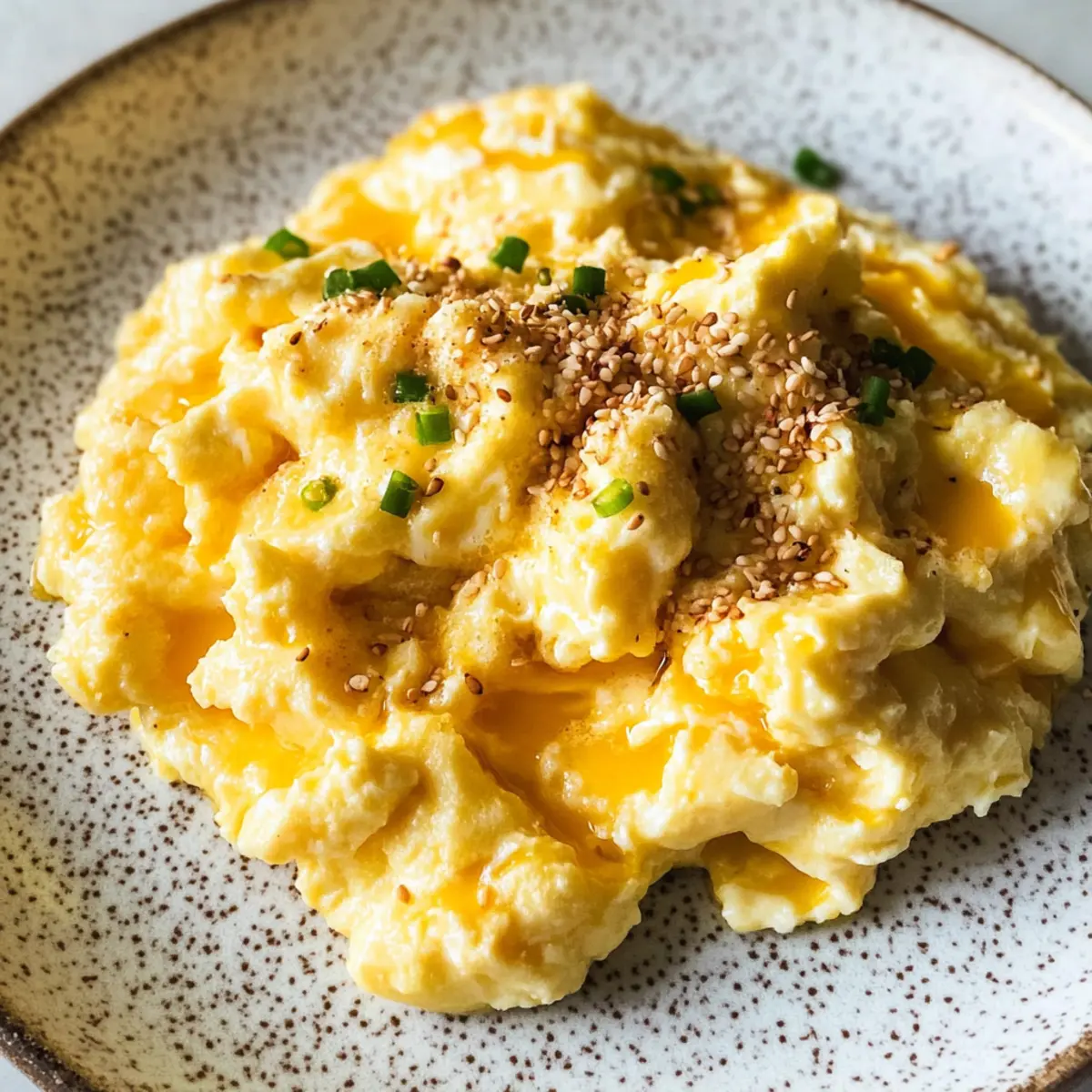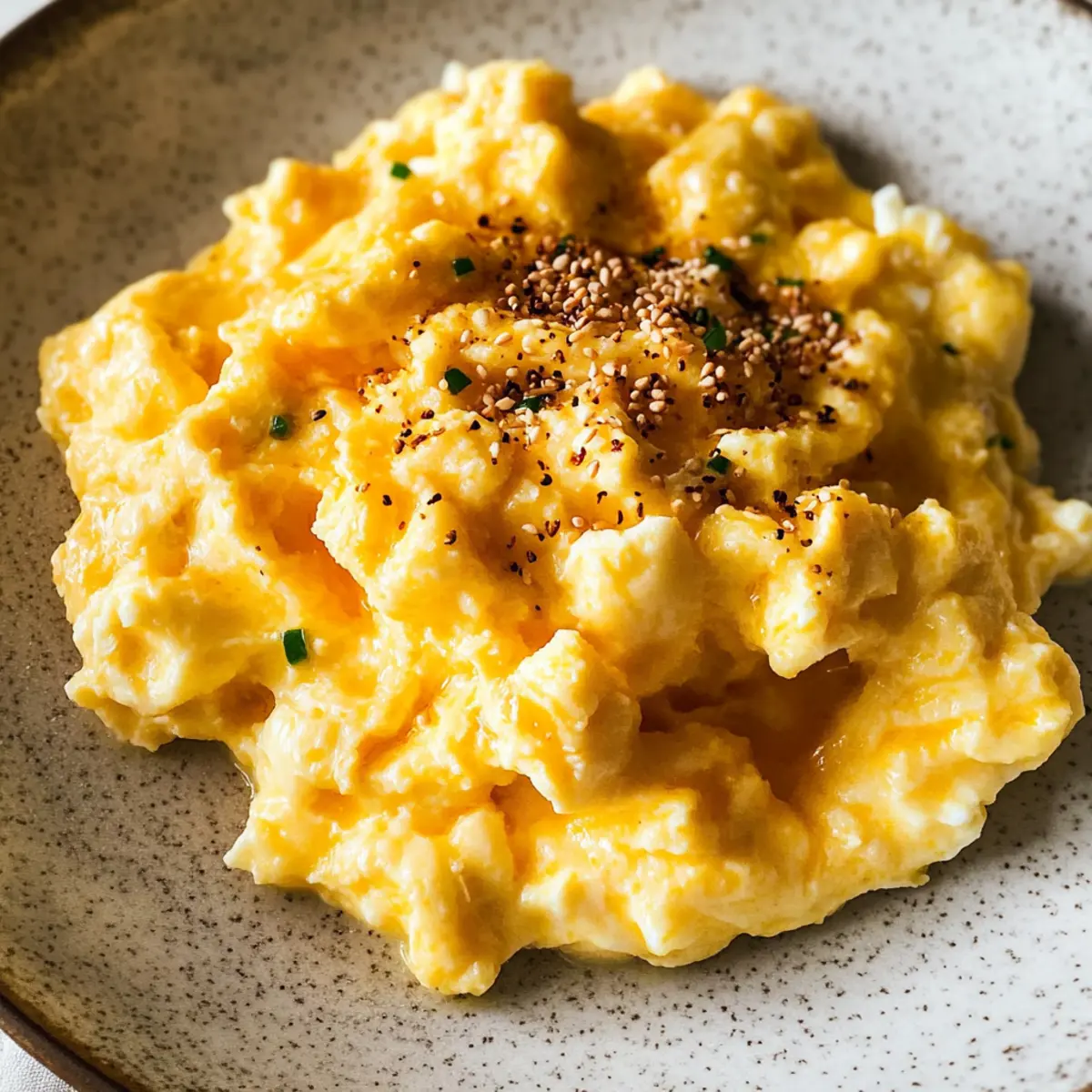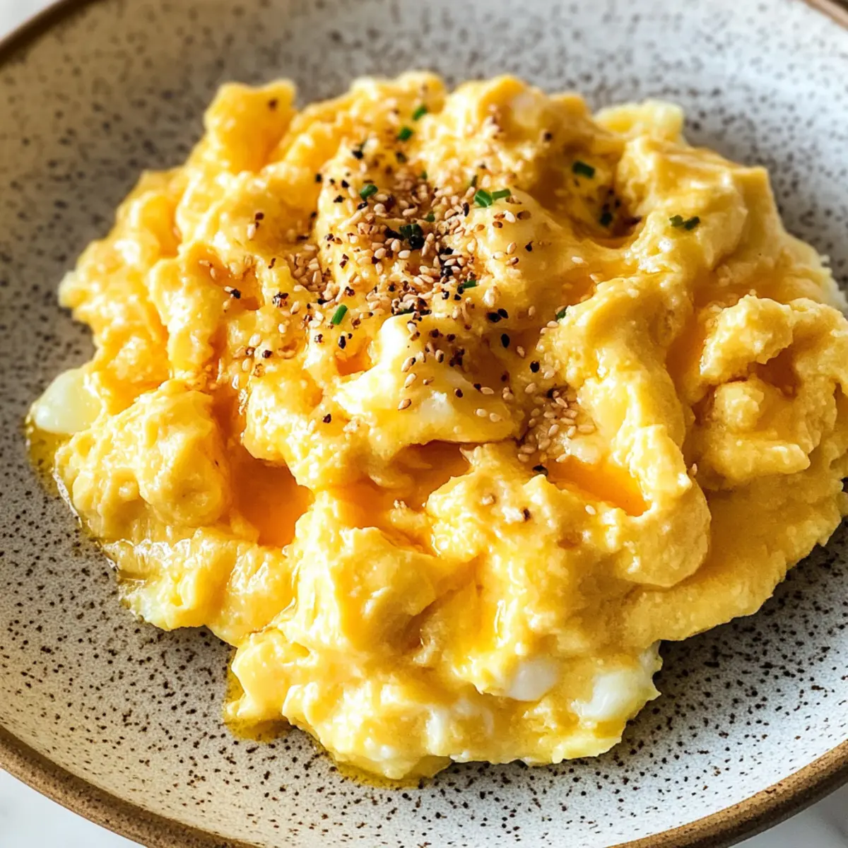 • Sanftes Rühren: Rühren Sie die Eier vorsichtig und vermeiden Sie Überkochen. Sie sollten weich und leicht glänzend bleiben, da sie außerhalb der Hitze weiter garen.