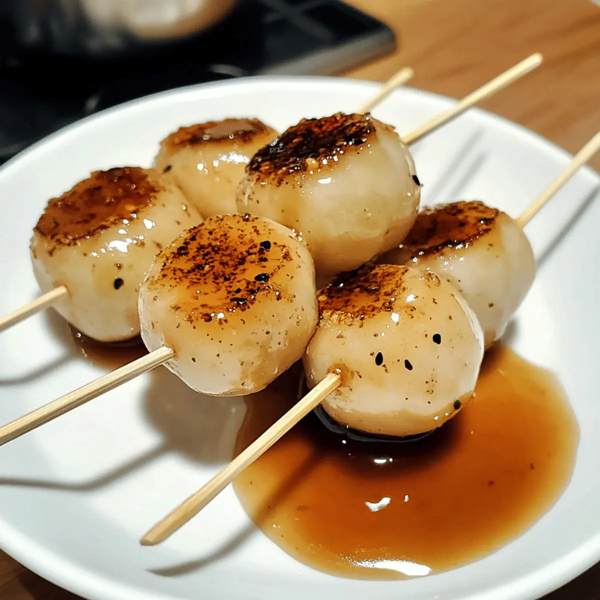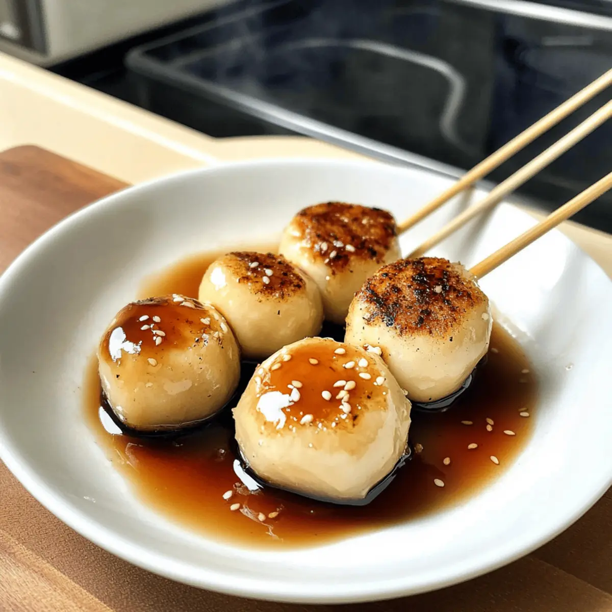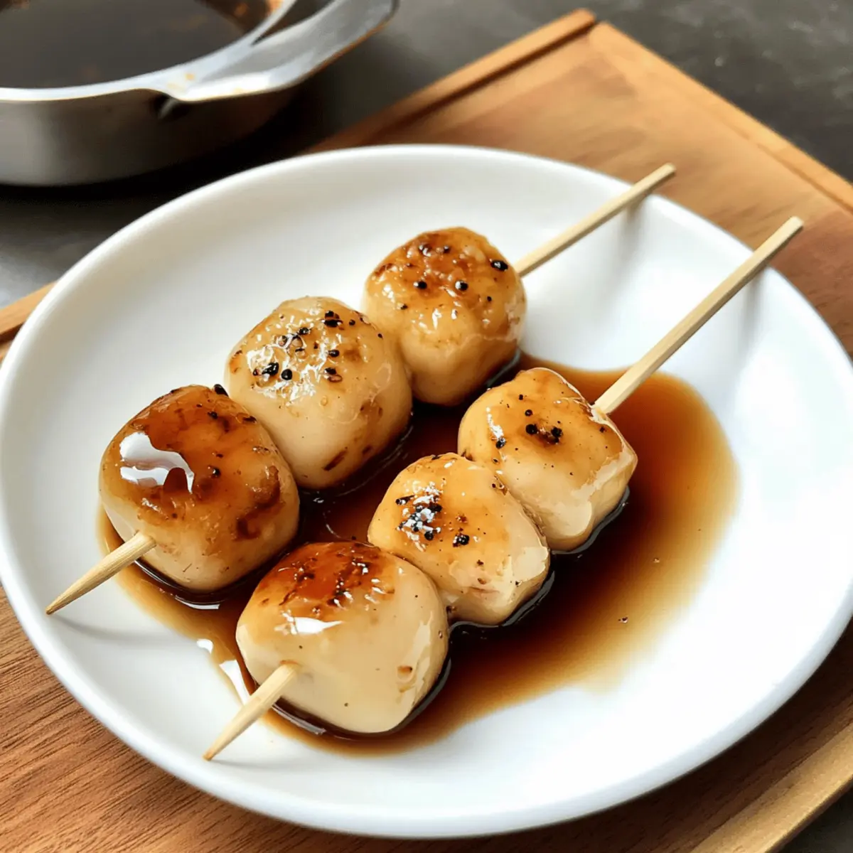 „Wusstest du, dass in Japan viele Streetfood-Stände köstliche, frisch gegrillte Mitarashi Dango anbieten? Diese herrlich weichen und zähen Reisdumplings sind ein wahrer Genuss, der dich in die Straßen von Kyoto entführt. Mit nur wenigen einfachen Zutaten kannst du dieses traditionelle japanische Dessert bei dir zu Hause zubereiten. Die Kombination aus süßem und herzhaftem Sojasoßenglasur macht die Mitarashi Dango zu einem unwiderstehlichen Snack, der sowohl Familien als auch Freunde begeistert. Für alle, die auf der Suche nach einer Alternative zu schnellem Essen sind, bietet dieses Rezept eine wirkliche Chef-Koch-Erfahrung, die leicht und unkompliziert ist. Lust, mehr über die Zubereitung dieser köstlichen Reisdumplings zu erfahren? Lass uns gemeinsam in die Welt der japanischen Küche eintauchen!“ Warum wirst du dieses Rezept lieben? Einfachheit: Die Zubereitung ist kinderleicht, ideal für Kochanfänger oder alle, die keine Zeit mit komplizierten Rezepten verschwenden möchten. Köstlicher Geschmack: Die harmonische Verbindung von süßem und herzhaftem Geschmack verwandelt jedes Bisschen in ein Geschmackserlebnis, das deine Geschmacksknospen erfreuen wird. Traditionelle japanische Köstlichkeit: Mitarashi Dango bringt dir ein Stück Japan direkt nach Hause. So fühlt sich jede Zubereitung an wie ein kulinarischer Urlaub. Vielseitigkeit: Perfekt als Snack oder Dessert und passt wunderbar zu einer Tasse Matcha-Tee für ein authentisches Erlebnis. Gesunde Alternative: Diese glutenfreien und milchfreien Dango sind eine großartige Option für alle, die gesunde Alternativen zu schnellem Essen suchen – ohne Kompromisse beim Geschmack! Mitarashi Dango Zutaten • Für die Dango Bambusspieße – Wichtig zum Grillen der Dango, vorher 30 Minuten in Wasser einweichen, um das Anbrennen zu verhindern. Dangoko (klebriges Reismehl, 200 g) – Bildet die Basis für die Dango; kann durch eine 50-50-Mischung aus Joshinko und Shiratamako ersetzt werden, um die beste Textur zu erhalten. Warmes Wasser (150 ml) – Bindet das Reismehl zu einem geschmeidigen Teig; nach Bedarf anpassen. • Für die Glasur Zucker (3 EL) – Sorgt für die süße Note in der Glasur; nach Geschmack anpassen. Sojasauce (1,5 EL) – Verleiht der Glasur eine herzhafte Tiefe; wähle niedrigen Natriumgehalt, wenn gewünscht. Mirin (1,5 EL) – Ein süßer Reiswein, der das Geschmacksprofil der Glasur verbessert. Wasser (120 ml) – Dient zur Anpassung der Konsistenz der Glasur. Maisstärke (1,5 EL) – Dicker die Glasur für einen perfekten Glanz. Mit diesen einfachen Zutaten bereitest du ein köstliches Mitarashi Dango zu, das sowohl süß als auch herzhaft ist – das ideale Dessert für alle, die sich nach einer gesunden Alternative zu schnellem Essen sehnen! Schritt-für-Schritt-Anleitung für Mitarashi Dango Step 1: Spießvorbereitung Weiche die Bambusspieße mindestens 30 Minuten lang in Wasser ein, um ein Anbrennen während des Grillens zu vermeiden. Diese Vorbereitung ist entscheidend für die perfekte Zubereitung der Mitarashi Dango, da sie dir hilft, die Dango gleichmäßig zu grillen und ein Ankleben zu verhindern. Step 2: Teigmischung In einer großen Schüssel das klebrige Reismehl (Dangoko) mit 120 ml warmem Wasser vermengen. Beginne mit 1/2 Tasse Wasser und füge bei Bedarf schrittweise das restliche Wasser hinzu, während du den Teig knetest, bis ein glatter, geschmeidiger Teig entsteht. Achte darauf, dass der Teig nicht zu trocken oder zu klebrig ist. Step 3: Formen Teile den Teig in gleich große Portionen von etwa 20 Gramm und forme sie zu kleinen runden Bällchen mit einem Durchmesser von etwa 2,5 cm. Achte darauf, die Teigbällchen gleichmäßig zu formen, um ein gleichmäßiges Kochen der Mitarashi Dango zu gewährleisten. Step 4: Dango kochen Erhitze in einem großen Topf Wasser und bring es zum Kochen. Gib die Teigbällchen hinein und koche sie etwa 5–10 Minuten lang, bis sie an die Oberfläche schwimmen. Dies ist ein Zeichen dafür, dass die Dango fertig sind. Übertrage sie sofort in ein kaltes Wasserbad, um das Garverfahren zu stoppen. Step 5: Glasur zubereiten In einem kleinen Topf Zucker, Sojasauce, Mirin, 120 ml Wasser und Maisstärke bei mittlerer Hitze vermengen. Rühre ständig mit einem Schneebesen, bis die Glasur eindickt und eine glatte Konsistenz erreicht. Halte die Glasur warm, während du die Dango weiter zubereitest. Step 6: Spießen Stecke jeweils drei gekochte Dango auf jeden eingeweichten Bambusspieß, wobei du darauf achtest, dass sie gleichmäßig verteilt und nicht zu eng zusammengepackt sind. Dies sorgt dafür, dass die Dango beim Grillen gleichmäßig garen und die Glasur gut haften bleibt. Step 7: Grillen Erhitze eine Grillpfanne oder eine nicht haftende Pfanne auf mittlerer Hitze. Lege die Spieße mit den Dango hinein und grille sie, bis sie schön golden und leicht angekohlt sind. Gieße beim Wenden der Dango etwas von der vorbereiteten Glasur über die Spieße, um den köstlichen Geschmack zu intensivieren und eine glänzende Oberfläche zu erzielen. Was serviert man zu Mitarashi Dango? Mitarashi Dango ist nicht nur ein Genuss für den Gaumen, sondern lädt auch dazu ein, eine komplette Mahlzeit zu kreieren. Grüner Tee: Der dezente Geschmack von grünem Tee ergänzt die süße und herzhafte Komplexität der Dango perfekt. Ein traditioneller Begleiter, der für eine harmonische Balance sorgt. Matcha-Eiscreme: Diese cremige Köstlichkeit bringt eine kühle Süße, die hervorragend zu den warmen Dumplings passt. Sie erzeugt einen aufregenden Kontrast in Temperatur und Textur. Edamame: Die schlichten, leicht gesalzenen Edamame geben einen herzhaften Biss, der die Süße der Dango ergänzt. Diese proteinreiche Snack-Option ist sowohl gesund als auch schmackhaft. Sesam-Cracker: Knusprige Sesamcracker bieten einen schönen Crunch, der angenehm mit der weichen Textur der Dango harmoniert. Sie sind eine großartige crunchy Ergänzung zu deinem Dessertteller. Miso-Supp