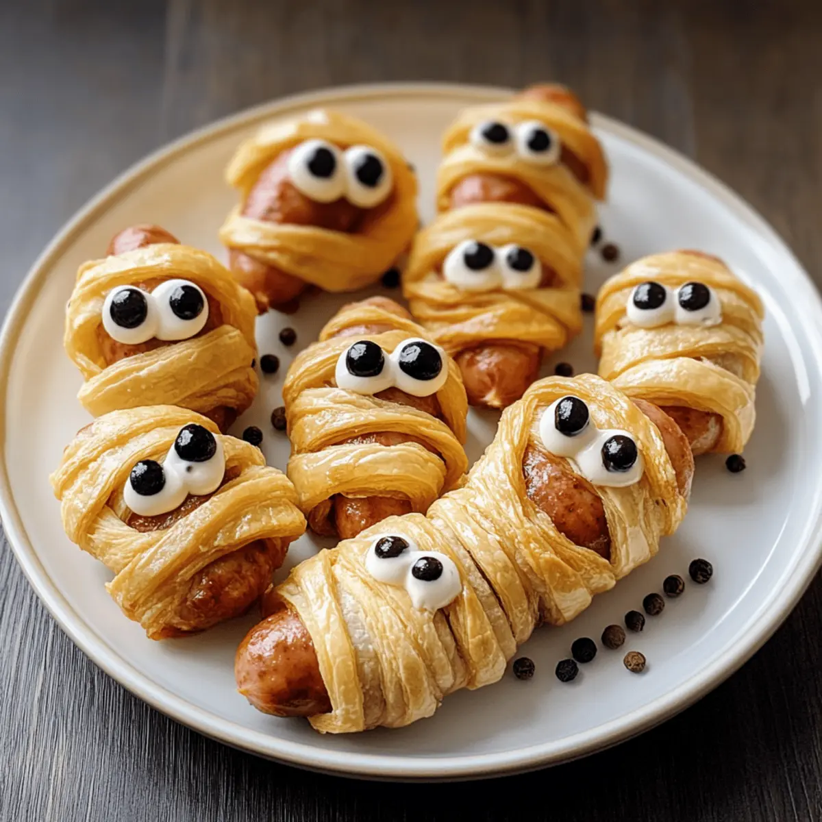 Es war einmal ein schaurig-schöner Halloween-Abend, an dem die Kinder bereits auf der Pirsch nach Süßigkeiten waren, während ich in der Küche zu Werke ging. Diese Mummy Sausages sind nicht nur ein Hingucker, sondern auch der perfekte schnelle Snack, um die kleinen Geister und großen Gäste zu begeistern. Mit einer knusprigen Teighülle, die sich um saftige Miniwürstchen schmiegt, sprechen sie sowohl die Kleinen als auch die Großen an. Die beste Nachricht? Sie sind kinderleicht zuzubereiten und können im Handumdrehen gebacken werden. Wer möchte nicht einen schrecklich leckeren Snack, der die Halloween-Party zum Leben erweckt? Neugierig auf das Rezept dieser spuktakulären Mummy Sausages? Lasst uns gleich eintauchen! Warum sind Mummy Würstchen so beliebt? Einfachheit: Die Zubereitung ist kinderleicht und erfordert nur grundlegende Kochkenntnisse. Vielfalt: Ob mit Blätterteig oder Pizzateig, du kannst das Rezept nach deinem Geschmack anpassen. Spaß für alle: Diese Mummy Würstchen sind ein Hit bei Kindern und Erwachsenen gleichermaßen und bringen Freude auf jede Halloween-Party. Knusprige Textur: Die Kombination aus knusprigem Teig und saftigen Würstchen sorgt für ein unwiderstehliches Geschmackserlebnis. Vorbereitung: Du kannst die Mummy Würstchen im Voraus zubereiten, was perfekt für stressfreie Feierlichkeiten ist. Bereite sie vor, während du das köstliche Ketchup zum Dippen bereitstellst! Zutaten für Mummy Würstchen Für die Füllung • Mini Würstchen – Hauptfüllung mit herzhaftem Geschmack; können durch Hot Dogs oder vegetarische Würstchen ersetzt werden. Für den Teig • Blätterteig oder Pizzateig – sorgt für eine knusprige oder chewy Textur; wähle, was dir besser gefällt, beide funktionieren gut zum Wickeln. Für die Dekoration • Mayonnaise – für die Augen und einen cremigen, würzigen Finish-Touch; kann durch Sauerrahm oder Senf für andere Geschmäcker ersetzt werden. • Pfefferkörner oder Oliven – für die Augen, um einen witzigen Akzent zu setzen; man kann auch Nelken für ein gruseligeres Aussehen verwenden. Schritt-für-Schritt-Anleitung für Halloween Mummy Würstchen Step 1: Ofen vorheizen Heize deinen Ofen auf 180°C für herkömmliche Öfen oder 160°C für Umluft vor. Während der Ofen aufheizt, kannst du die Backbleche mit Backpapier auslegen, um ein Ankleben der Mummy Würstchen zu verhindern. So sind sie bereit zum Backen, sobald du sie vorbereitest. Step 2: Teig vorbereiten Rolle den Blätterteig oder Pizzateig auf einer leicht bemehlten Fläche aus und schneide ihn mit einem Pizzaschneider in 1 cm breite Streifen. Diese Streifen sind perfekt, um die Mummy Würstchen einzuwickeln. Achte darauf, dass die Streifen gleichmäßig sind, um ein gleichmäßiges Backen zu gewährleisten. Step 3: Würstchen einwickeln Nimm ein Mini Würstchen und wickle 1-2 Streifen des Teigs darum, dabei einen kleinen Abstand für die Augen lassen. Achte darauf, dass der Teig gut an den Würstchen haftet, um eine schöne Hülle zu bilden. Wiederhole diesen Schritt, bis alle Würstchen eingewickelt sind. Step 4: Würstchen platzieren Lege die eingewickelten Mummy Würstchen auf das vorbereitete Backblech. Stelle sicher, dass genügend Platz zwischen den Würstchen ist, damit sie beim Backen nicht zusammenkleben. Diese Vorbereitung ist entscheidend, damit die Mummy Würstchen gleichmäßig garen und knusprig werden. Step 5: Backen Backe die Mummy Würstchen im vorgeheizten Ofen für etwa 15-20 Minuten. Achte darauf, dass sie goldbraun und knusprig sind; ein schöner, goldener Farbton zeigt dir, dass sie fertig sind. Der Duft, der während des Backens aufsteigt, wird die Vorfreude deiner Gäste steigern. Step 6: Dekorieren Lasse die Mummy Würstchen kurz abkühlen, bevor du sie dekorierst. Fülle eine Spritztüte mit Mayonnaise und setze kleine „Augen“ auf die Würstchen, indem du die Mayonnaise in kleinen Tupfen aufträgst. Setze jeweils ein Pfefferkorn oder eine Olive als Pupille ein, um den schaurig-lustigen Look zu vervollständigen. Was passt zu Halloween Mummy Würstchen? Es ist der perfekte Anlass, um eine schaurig leckere Mahlzeit zu kreieren, die jedem das Wasser im Mund zusammenlaufen lässt. Cremiger Kartoffelsalat: Die frische, cremige Textur des Kartoffelsalats bietet einen wunderbaren Kontrast zu den knusprigen Mummy Würstchen und ergänzt den herzhaften Geschmack. Knusprige Gemüsesticks: Serviere knackige Karotten und Selleriesticks mit einem würzigen Dip. Das bringt frische und Farbtupfer auf deinen Tisch, perfekt für den Hingucker! Grüner Blattsalat: Ein leichter Salat mit einem zitronigen Dressing sorgt für Frische und ergänzt die herzhaften Aromen der Würstchen, wodurch oftmals etwas Schärfe abgemildert wird. Spooky Cocktails: Ein gruseliger, fruchtiger Cocktail mit roten Früchten und Sprudel bringt die Halloween-Stimmung in jede Feier und unterstreicht die festliche Atmosphäre. Schokoladen-Brownies: Leckere, fudgy Brownies als Dessert mit einer Prise Meersalz machen das Essen zu einem süßen Abschluss und heben die Schokoladennote hervor. Apfelwein: Ein erfrischendes Glas Apfelwein passt wunderbar zu den Mummy Würstchen und bringt eine fruchtige Note auf den Tisch – besonders, wenn er warm serviert wird! Verzierte Cupcakes: Dekorierte Cupcakes mit gruseligem Topping sind nicht nur optisch ansprechend, sie verleihen deiner Halloween-Party auch eine süße Note, die Kinder und Erwachsene begeistern wird. Süß-saurer Dip: Ein süß-saurer Dip für die Mummy Würstchen sorgt für eine interessante Geschmackskombination, die die festliche Stimmung hebt. Expertentipps für Mummy Würstchen • Dünner Teig: Achte darauf, den Teig dünn auszurollen. Zu dicker Teig könnte ungleichmäßig backen und matschig werden. • Helle Augen: Verwende helle Mayonnaise für die Augen, um einen besseren Kontrast zu schaffen. Glaub mir, das macht die Mummy Würstchen noch ansprechender! • Platzierung: Lasse genügend Platz zwische