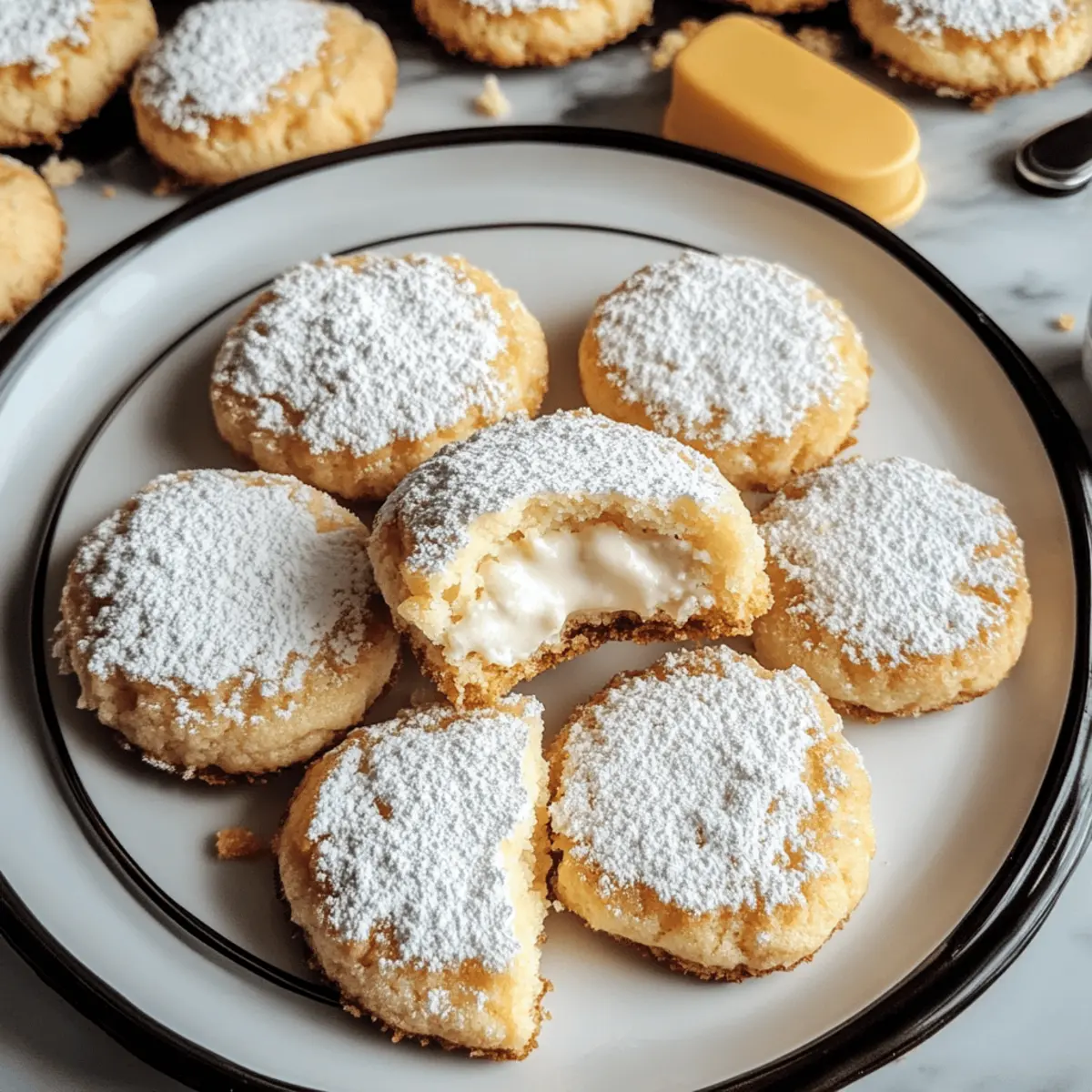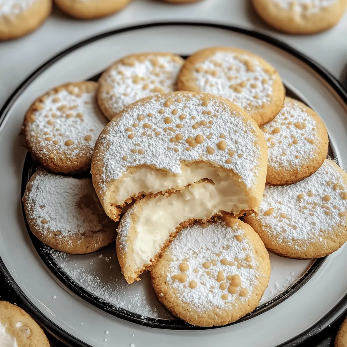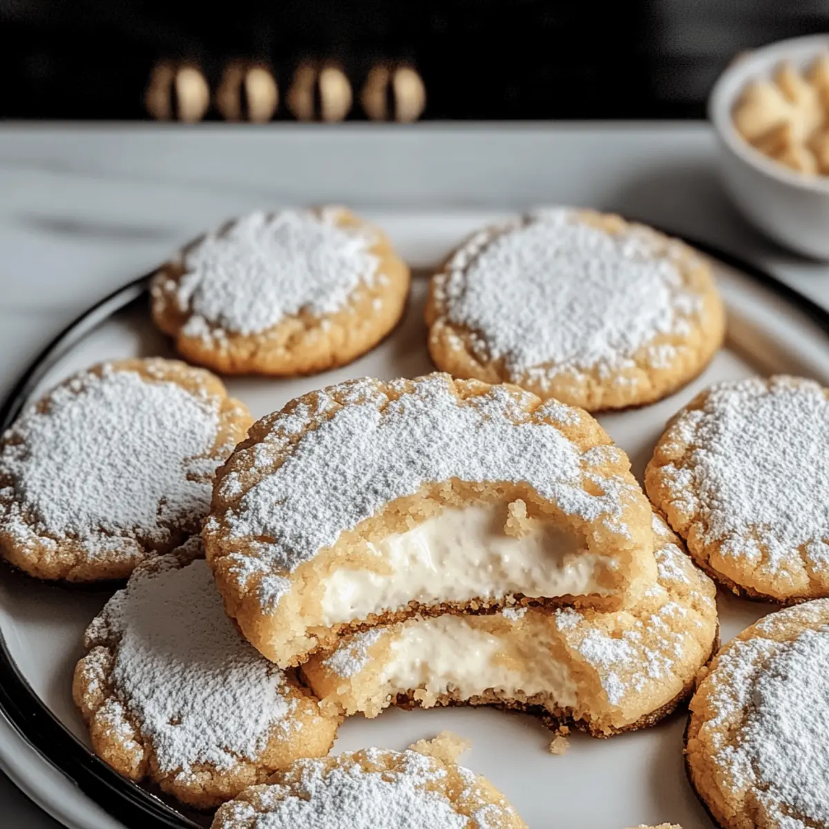 Als ich neulich einen besonders verregneten Nachmittag zu Hause verbrachte, überkam mich die Lust auf etwas Süßes. In Gedanken schwebten mir die köstlichen Aromen von New York Cheesecake Cookies durch den Kopf. Diese kleinen Leckerbissen fangen den klassischen Cheesecake-Geschmack in einem sanften Keksformat ein und sind die perfekte Lösung für all jene, die auf Fertiggerichte verzichten möchten. Mit ihrem perfekten Gleichgewicht aus würzigem Frischkäse und süßer Vanille sind sie nicht nur einfach zuzubereiten, sondern auch ganz einfach zu transportieren. Ob für ein gemütliches Treffen mit Freunden oder einfach nur für sich selbst – diese Cookies bringen ein Stück New York in deine Küche. Bist du bereit, die ultimative Kombination aus Keks und Cheesecake zu entdecken? Warum sind diese Cookies perfekt? Einfachheit pur: Die Zubereitung dieser New York Cheesecake Cookies erfordert nur grundlegende Backkenntnisse, sodass sie ideal für Anfänger und erfahrene Bäcker sind. Cremiger Genuss: Der intensive Geschmack von Frischkäse und süßer Vanille vereint sich in jedem Bissen und verwandelt diese Cookies in ein unwiderstehliches Dessert. Vielseitig und anpassbar: Ob du Schokoladenstückchen oder frisches Obst hinzufügst, die Möglichkeiten sind endlos. Du kannst sogar eine glutenfreie Variante herstellen! Schnell gemacht: In weniger als 30 Minuten hast du diese Köstlichkeiten fertig, perfekt für spontane Gelüste oder Überraschungsbesuche. Traumhafte Textur: Mit einem weichen, zähen Kern und einem leicht knusprigen Rand erinnern diese Cookies an das beste Stück New Yorker Käsekuchen. Wenn du weitere inspirierende Rezepte ausprobieren möchtest, schau dir auch unseren Zitronen Kokos Cheesecake oder die Cheesecake Brownies an! New York Cheesecake Cookies Zutaten Für den Teig • Butter – sorgt für Reichhaltigkeit und Feuchtigkeit; kann durch Margarine oder vegane Butter ersetzt werden für eine milchfreie Variante. • Frischkäse – entscheidend für den Cheesecake-Geschmack und die cremige Textur; verwende vollfetten Frischkäse für das beste Ergebnis. • Zucker – fügt Süße hinzu und hilft, die Keksstruktur weich zu halten; kann durch Kokoszucker ersetzt werden für eine weniger verarbeite Option. • Vanilleextrakt – verstärkt den Geschmack; verwende reinen Vanilleextrakt für intensiveren Geschmack. • Ei – bindet die Zutaten und sorgt für Feuchtigkeit; kann durch ein Flax-Ei (1 EL gemahlene Leinsamen gemischt mit 3 EL Wasser) als vegane Option ersetzt werden. • Weizenmehl – gibt den Cookies Struktur; glutenfreies Mehl kann als Ersatz verwendet werden für eine glutenfreie Variante. • Salz – balanciert den Geschmack; kann für eine natriumarme Ernährung reduziert oder weggelassen werden. • Backpulver – lässt die Cookies leicht aufgehen; achte darauf, dass es frisch ist für optimale Ergebnisse. • Puderzucker – zum Bestäuben der fertigen Cookies, verleiht eine süße Note; optional, aber verbessert die Präsentation. Schritt-für-Schritt-Anleitung für New York Cheesecake Cookies Schritt 1: Ofen vorheizen Heize den Ofen auf 175°C (350°F) vor und lege zwei Backbleche mit Backpapier aus. Das Vorheizen des Ofens ist wichtig, damit die New York Cheesecake Cookies gleichmäßig gebacken werden und die Kanten goldbraun und knusprig werden. Schritt 2: Butter und Frischkäse vermengen In einer Rührschüssel den weichen Butter und Frischkäse mit einem Handmixer oder einer Küchenmaschine cremig schlagen. Dies sollte etwa 2-3 Minuten dauern, bis die Mischung glatt und hell ist. Achte darauf, dass keine Klumpen verbleiben, um die ideale Textur für deine Cookies zu erreichen. Schritt 3: Zucker hinzufügen Füge den Zucker zur Butter-Frischkäse-Mischung hinzu und schlage weiter, bis die Mischung leicht und fluffig erscheint. Dieses Verfahren dauert ungefähr 2 Minuten. Eine helle, luftige Konsistenz ist entscheidend für die Süße und Struktur der New York Cheesecake Cookies. Schritt 4: Vanilleextrakt einrühren Gib den Vanilleextrakt in die Mischung und rühre kräftig um, bis er gleichmäßig verteilt ist. Diese Schritte sorgen dafür, dass der köstliche Vanillegeschmack in jedem Keks zu finden ist, was das Backerlebnis noch angenehmer macht. Schritt 5: Ei hinzugeben Nun das Ei hinzufügen und gut unterrühren, bis es vollständig in die Mischung integriert ist. Dies wird etwa 1-2 Minuten in Anspruch nehmen und sorgt dafür, dass die Zutaten gut miteinander verbunden sind und die Cookies gut zusammenhalten. Schritt 6: Trockene Zutaten vermengen In einer separaten Schüssel das Mehl, Salz und Backpulver gut vermischen. Verwende einen Schneebesen, um sicherzustellen, dass die trockenen Zutaten gleichmäßig verteilt sind. Diese Mischung ist wichtig für die Struktur und das Aufgehen der New York Cheesecake Cookies. Schritt 7: Trockene Zutaten hinzufügen Jetzt die trockenen Zutaten langsam zur feuchten Mischung geben. Rühre sanft, bis alles gerade so verbunden ist. Übermische den Teig nicht, da dies die Cookies zäh machen könnte. Du solltest ein leicht klebriger Teig erhalten, der perfekt für das Formen der Kekse ist. Schritt 8: Teig portionieren Kleinere Portionen des Teigs (etwa einen Esslöffel) mit den Händen formen und gleichmäßig auf die vorbereiteten Backbleche setzen, dabei genügend Abstand zwischen den Keksen lassen. Dies gewährleistet, dass die New York Cheesecake Cookies beim Backen Platz zum Ausbreiten haben. Schritt 9: Kekse formen Drücke jeden Teigball vorsichtig mit einem Löffel oder mit den Fingern flach. So entstehen schöne, gleichmäßige Kekse. Der Flachdrücken sorgt dafür, dass die Cookies gleichmäßig und schnell durchbacken. Schritt 10: Backen Backe die Kekse 10-12 Minuten lang, oder bis die Ränder leicht goldbraun werden. Achte darauf, dass die Mitte noch weich ist, da sie beim Abkühlen weiter fest werden. Die perfekte Backzeit sorgt für die zähe und cremige Textur der New York Cheesecake C