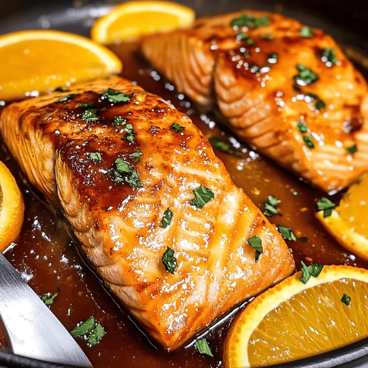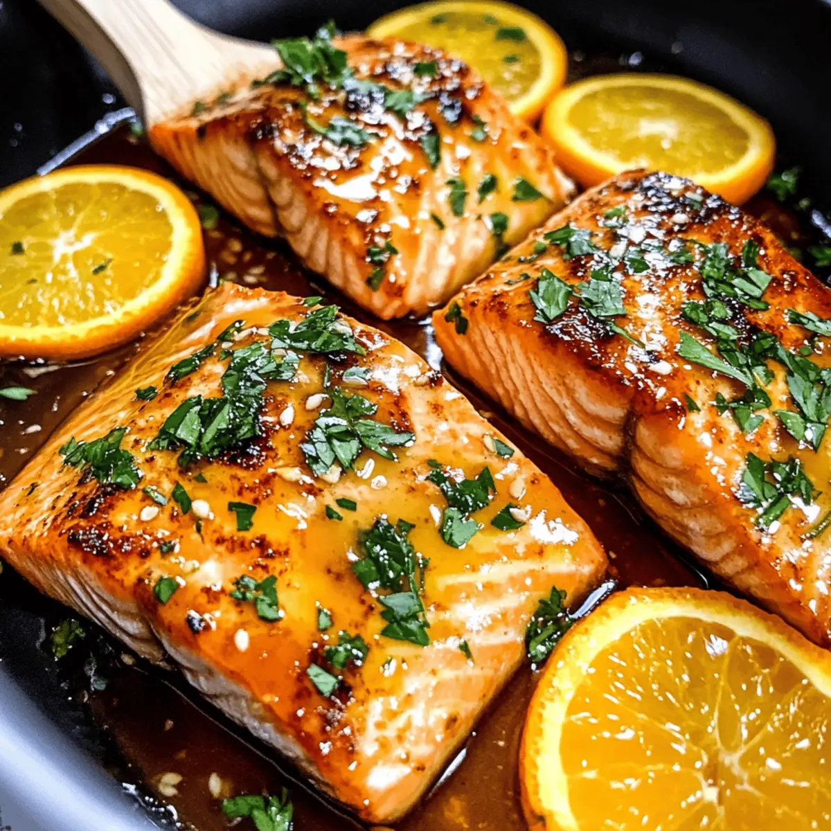 Als ich neulich nach Inspiration für ein schnelles Abendessen suchte, stolperte ich über eine köstliche Sache: den Orange Glazed Salmon! In nur 15 Minuten aus nur 5 Zutaten werden Sie ein Gericht zaubern, das sowohl süß als auch herzhaft ist und die ganze Familie erfreut. Die Kombination aus frischem Orangensaft und Honig verwandelt den Lachs in ein wahrhaftig gefragtes Highlight in meiner Küche. Egal, ob Sie an einem hektischen Wochentag oder bei einer entspannten Sommernacht kochen, dieses Rezept ist Ihre Geheimwaffe für ein schnelles, gesundes Dinner. Neugierig, wie Sie diesen saftigen Lachs zubereiten können? Lassen Sie uns direkt mit der Zubereitung beginnen! Warum werden Sie dieses Rezept lieben? Einfache Zubereitung: In nur 15 Minuten und mit nur 5 Zutaten zaubern Sie ein köstliches Gericht. Vielseitig: Ideal für Wochentage oder entspannte Abende. Süß und herzhaft: Die Kombination von frischem Orangensaft und Honig sorgt für ein unverwechselbares Aroma. Familienfreundlich: Alle werden diesen Lachs lieben! Gesund: Proteinreich und glutenfrei – perfekt für eine ausgewogene Ernährung. Wenn Sie auf der Suche nach weiteren unkomplizierten Gerichten sind, probieren Sie doch auch mein Karibisches Kokosnuss Curry oder das Knusprige Reis Rezept! Zutaten für Orange Glazed Salmon • Der Ausgang für ein schnelles, köstliches Gericht. Für die Glasur Butter – sorgt für reichhaltigen Geschmack; kann durch Olivenöl ersetzt werden für eine leichtere Variante. Orange Saft (½ Tasse) – gibt der Glasur Süße und Säure; frisch gepresst ist am besten. Honig (2 Esslöffel) – verstärkt die Süße der Glasur; Ahornsirup kann als Ersatz verwendet werden. Sojasauce (2 Esslöffel) – fügt umami und Tiefe hinzu; für glutenfreie Option tamari verwenden. Knoblauch (2 Zehen, gehackt) – verleiht ein aromatisches Aroma; kann weggelassen werden für einen milderen Geschmack. Maisstärke (1 Teelöffel, optional) – zur Verdickung der Glasur; mit Wasser zu einer Slurry vermischen. Für den Lachs Lachsfilets – die Hauptzutat, die Protein und eine zarte Textur bietet; wild gefangener Pazifik-Lachs ist am gesündesten. Salz & Pfeffer – zum Würzen; nach Geschmack anpassen. Mit diesen einfachen Zutaten sind Sie nur einen Schritt davon entfernt, den perfekten Orange Glazed Salmon zuzubereiten! Schritt-für-Schritt-Anleitung für Orange Glazed Salmon Step 1: Butter erhitzen Erhitzen Sie in einer großen Pfanne bei mittlerer bis hoher Hitze Butter oder Olivenöl. Warten Sie, bis die Butter geschmolzen und leicht schäumend ist, um den perfekten Bratzeitpunkt für den Lachs zu erreichen. Dies dauert etwa 1 bis 2 Minuten. Verwenden Sie eine große Pfanne, die ausreichend Platz für die Lachsfilets bietet. Step 2: Lachs würzen und braten Würzen Sie die Lachsfilets auf beiden Seiten großzügig mit Salz und Pfeffer. Legen Sie die Filets mit der Hautseite nach oben in die heiße Pfanne und braten Sie sie für 3 bis 5 Minuten, bis die Unterseite goldbraun ist. Die warme Pfanne sorgt dafür, dass der Lachs gleichmäßig gart und eine schöne Kruste erhält. Step 3: Lachs wenden und weiter garen Wenden Sie die Lachsfilets vorsichtig um und lassen Sie sie für weitere 3 bis 4 Minuten garen, bis die Innentemperatur 63°C (145°F) erreicht. Die Filets sollten außen schön gebräunt und innen zart und saftig sein. Nutzen Sie ein Fleischthermometer, um die perfekte Garstufe zu überprüfen. Step 4: Lachs warmhalten Entfernen Sie die Lachsfilets vorsichtig aus der Pfanne und decken Sie sie mit Alufolie ab, um sie warm zu halten. Dies stellt sicher, dass der Lachs während des nächsten Schrittes nicht abkühlt. Nutzen Sie die Zeit, um die köstliche Orange Glazed Sauce zuzubereiten. Step 5: Glasur zubereiten Reduzieren Sie die Hitze der Pfanne auf mittlere Stufe. Geben Sie den frisch gepressten Orangensaft, Honig, Sojasauce, gehackten Knoblauch und die optionale Maisstärke in die Pfanne. Rühren Sie alles gründlich um und bringen Sie die Mischung zum Kochen, damit sie 30 bis 60 Sekunden köchelt und leicht andickt. Achten Sie darauf, dass die Glasur schön gleichmäßig erhitzt wird. Step 6: Lachs glasieren Legen Sie die Lachsfilets zurück in die Pfanne, um sie gut mit der süß-herzhaften Glasur zu überziehen. Lassen Sie sie einige Sekunden in der Sauce schwenken, damit die Aromen des Orange Glazed Salmon gut zur Geltung kommen. Garnieren Sie nach Belieben mit zusätzlichen Orangenscheiben und etwas frischer Petersilie für das finale, ansprechende Aussehen. Jetzt haben Sie in kürzester Zeit einen köstlichen Orange Glazed Salmon zubereitet, der nicht nur gut aussieht, sondern auch fantastisch schmeckt! Aufbewahrungstipps für Orange Glazed Salmon Kühlschrank: Bewahren Sie die Reste in einem luftdichten Behälter im Kühlschrank auf und genießen Sie sie innerhalb von 2-3 Tagen für den besten Geschmack. Gefrierschrank: Wenn Sie den Lachs länger aufbewahren möchten, können Sie ihn bis zu 3 Monate im Gefrierschrank lagern. Wickeln Sie ihn einfach gut in Frischhaltefolie und Aluminiumfolie ein. Wiedererwärmen: Zum Wiedererwärmen den Lachs in einer Pfanne bei niedriger Hitze kurz erwärmen oder im Ofen bei 180°C etwa 10 Minuten backen, bis er durchgehend warm ist. Glasur aufbewahren: Falls Sie Glasur übrig haben, können Sie diese im Kühlschrank in einem luftdichten Behälter bis zu 1 Woche aufbewahren und bei Bedarf wieder erhitzen. Was passt zu Orange Glazed Salmon? Genießen Sie die köstliche Kombination von Aromen und Texturen, die perfekt zu Ihrem zarten, glasierter Lachs passen. Cremiger Kartoffelbrei: Die samtige Textur des Kartoffelbreis ergänzt die zarte Konsistenz des Lachses und sorgt für ein harmonisches Geschmackserlebnis. Servieren Sie ihn mit einem Spritzer Zitrone für zusätzlichen Frischekick. Gegrillte Spargel: Mit einem leichten Biss und einem wunderbaren rauchigen Aroma, wird Spargel perfekt mit der süßen Glasur des Lachses kontrastiert. Der leicht bitte