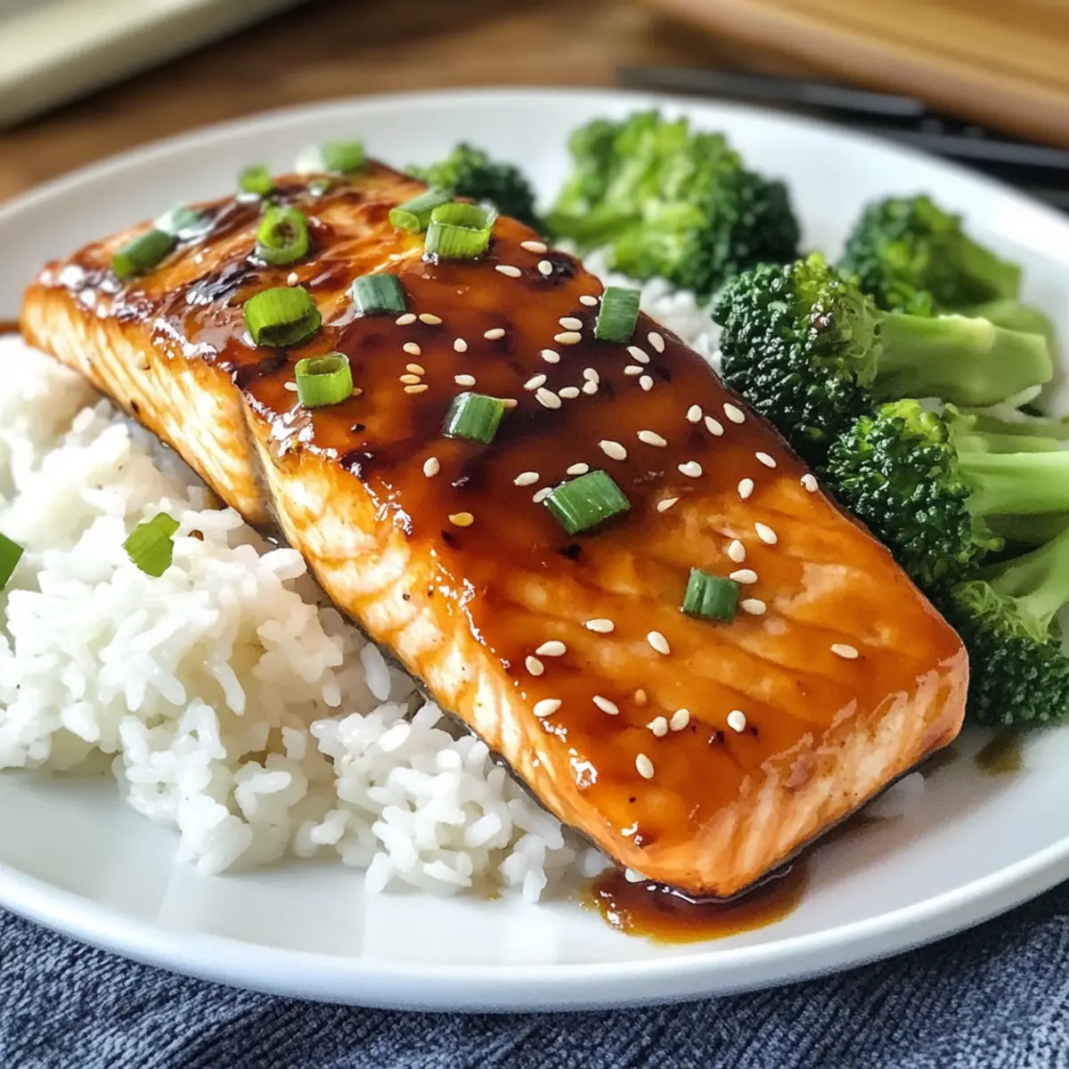 Als ich letztens am Markt frische Orangen entdeckte, kam mir der Gedanke, wie wunderbar sie mit zartem Lachs harmonieren können. Das Ergebnis war dieser köstliche Orangen-Teriyaki-Lachs, der nicht nur in der Zubereitung ein Kinderspiel ist, sondern auch in weniger als 20 Minuten auf dem Tisch steht! Mit einer süß-sauren Glasur, die durch frischen Knoblauch und Ingwer verfeinert wird, wird dieses Gericht zum Star jeder schnell zubereiteten Mahlzeit. Es ist eine gesunde Wahl, die den Gaumen erfreut und auch noch ideal für Dinnerpartys ist. Neugierig auf das Rezept, das deine Woche aufpeppen wird? Lass uns gemeinsam in die Welt der asiatisch inspirierten Aromen eintauchen! Warum wirst du diesen Lachs lieben? Einfachheit: Die Zubereitung ist besonders leicht und erfordert keine besonderen Kochkünste. Frische Aromen: Der Geschmack von frischen Orangen, kombiniert mit würzigem Ingwer und Knoblauch, sorgt für ein einmaliges Geschmackserlebnis. Schnell zubereitet: In nur 20 Minuten hast du ein leckeres Gericht, das perfekt für hektische Wochentage ist. Gesund und nahrhaft: Reich an Omega-3-Fettsäuren, ist dieser Orangen-Teriyaki-Lachs eine hervorragende Wahl für deine gesunde Ernährung. Beeindruckende Präsentation: Mit einer glänzenden Glasur und optionalen Toppings wird dieses Gericht zum Hingucker auf jedem Tisch. Lass dich inspirieren und entdecke auch gesundes Essen für die ganze Familie, um deine Kochkünste weiter zu verfeinern! Orangen-Teriyaki-Lachs Zutaten • Entdecke die köstlichen Zutaten für deinen Orangen-Teriyaki-Lachs! Für den Lachs Lachsfilets – eine proteinreiche Hauptzutat voller Omega-3-Fettsäuren, die wunderbar zart wird. Sesamöl – verleiht dem Gericht einen nussigen Geschmack und bereichert die Aromen. Für die Teriyaki-Sauce Maisstärke – sorgt dafür, dass die Sauce schön an den Lachs haftet. Wasser – hilft, die Maisstärke aufzulösen und die Sauce zu kreieren. Orangensaft – die Grundlage der Teriyaki-Sauce, bringt süße und saure Noten ins Spiel. Orangenabrieb – intensiviert das Orangengefühl und erhöht das Aroma. Sojasauce – fügt umami Geschmack hinzu und balanciert die Süße der Orange aus. Brauner Zucker – karamellisiert beim Kochen und sorgt für eine glänzende Oberfläche. Ingwer (fein gehackt) – bringt eine warme Schärfe in die Sauce. Knoblauch (fein gehackt) – fügt aromatische Tiefe hinzu und intensiviert den Geschmack. Für die Garnierung (optional) Sesamsamen – für einen knusprigen Belag und zusätzlichen Geschmack. Rote Paprikaflocken – bringen eine feine Schärfe ins Gericht. Gehackte Frühlingszwiebeln – sorgen für frische und Farbe auf dem Teller. Schritt-für-Schritt-Anleitungen für Orangen-Teriyaki-Lachs Step 1: Sauce vorbereiten In einer kleinen Schüssel verrühre die Maisstärke mit dem Wasser, bis sie vollständig aufgelöst ist. Gib diese Mischung zusammen mit dem Orangensaft, Orangenabrieb, Sojasauce, braunem Zucker, Ingwer und Knoblauch in einen kleinen Topf. Erwärme die Sauce bei mittlerer Hitze und lasse sie 3-5 Minuten köcheln, bis sie dickflüssig wird und eine glänzende Konsistenz erreicht. Step 2: Ofen vorheizen Heize deinen Ofen auf 200 °C (400 °F) vor, damit dieser perfekt heiß ist, wenn du den Orangen-Teriyaki-Lachs hineinlegst. Während der Ofen aufheizt, bereite ein Backblech vor, indem du es mit Folie auslegst und etwas Öl darauf träufelst, um ein Anhaften des Fisches zu verhindern. Step 3: Lachs backen Lege die Lachsfilets mit der Hautseite nach unten auf das vorbereitete Backblech. Bestreiche die Filets großzügig mit der Hälfte der vorbereiteten Teriyaki-Sauce, sodass sie gleichmäßig glasiert sind. Schiebe das Backblech in den vorgeheizten Ofen und backe den Lachs für etwa 14 Minuten, bis er goldbraun und weich ist und sich leicht mit einer Gabel zerteilen lässt. Step 4: Fertigstellen unter dem Grill Nachdem der Lachs gebacken ist, nimm das Blech vorsichtig aus dem Ofen. Bestreiche die Filets mit der restlichen Teriyaki-Sauce und stelle das Blech an den oberen Grill des Ofens. Grille den Lachs für etwa 1 Minute, bis die Oberfläche leicht angekohlt und karamellisiert ist, damit die Aromen intensiviert werden. Step 5: Servieren Serviere den frisch gebackenen Orangen-Teriyaki-Lachs auf einem Bett aus dampfendem Reis oder Quinoa. Garniere das Gericht nach Belieben mit gehackten Frühlingszwiebeln, Sesamsamen und roten Paprikaflocken für einen farbenfrohen und aromatischen Abschluss. Dein leckeres Gericht ist nun bereit, genossen zu werden! Orangen-Teriyaki-Lachs Variationen und Substitutionen Du kannst dieses Rezept nach deinem Geschmack anpassen, um neue Geschmackserlebnisse zu entdecken! Honigersatz: Verwende Honig anstelle von braunem Zucker für eine andere süße Note, die sich perfekt mit dem Essen verbindet. Diese einfache Anpassung wird auch die Konsistenz der Sauce verändern und einen köstlichen Glanz verleihen. Haut dran lassen: Verwende Lachsfilets mit Haut für mehr Geschmack und eine knusprige Textur. Die Haut schützt den Lachs beim Backen und sorgt dafür, dass das Fleisch zart bleibt. Schärfere Note: Füge frische Chili oder rote Paprikaflocken zur Teriyaki-Sauce hinzu, um dem Gericht einen extra Kick zu verleihen. Diese Variation wird deinem Lachs eine aufregende Schärfe geben, die ihn unvergesslich macht. Dinkelreis: Tausche den weißen Reis gegen Dinkelreis aus, um ein nussiges Aroma und zusätzliche Nährstoffe hinzuzufügen. Diese milden Aromen ergänzen den Lachs wunderbar und steigern die Gesundheit deiner Mahlzeit. Glutenfreie Option: Verwende Tamari anstelle von Sojasauce, um diese köstliche dish glutenfrei zu gestalten. So wird dein Orangen-Teriyaki-Lachs für mehr Menschen genießbar ohne auf Geschmack zu verzichten. Kräuterfrisch: Mische frische Kräuter wie Koriander oder Basilikum in die Garnitur, um einen frischen und aromatischen Kontrast zu schaffen. Diese Kräuter verleihen dem Lachs eine wunderbare Leichtigkeit und Frische.