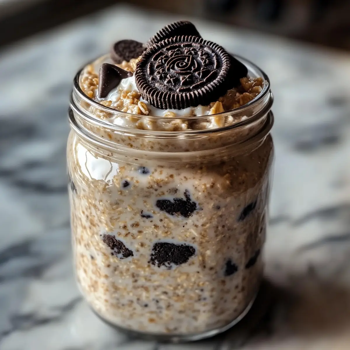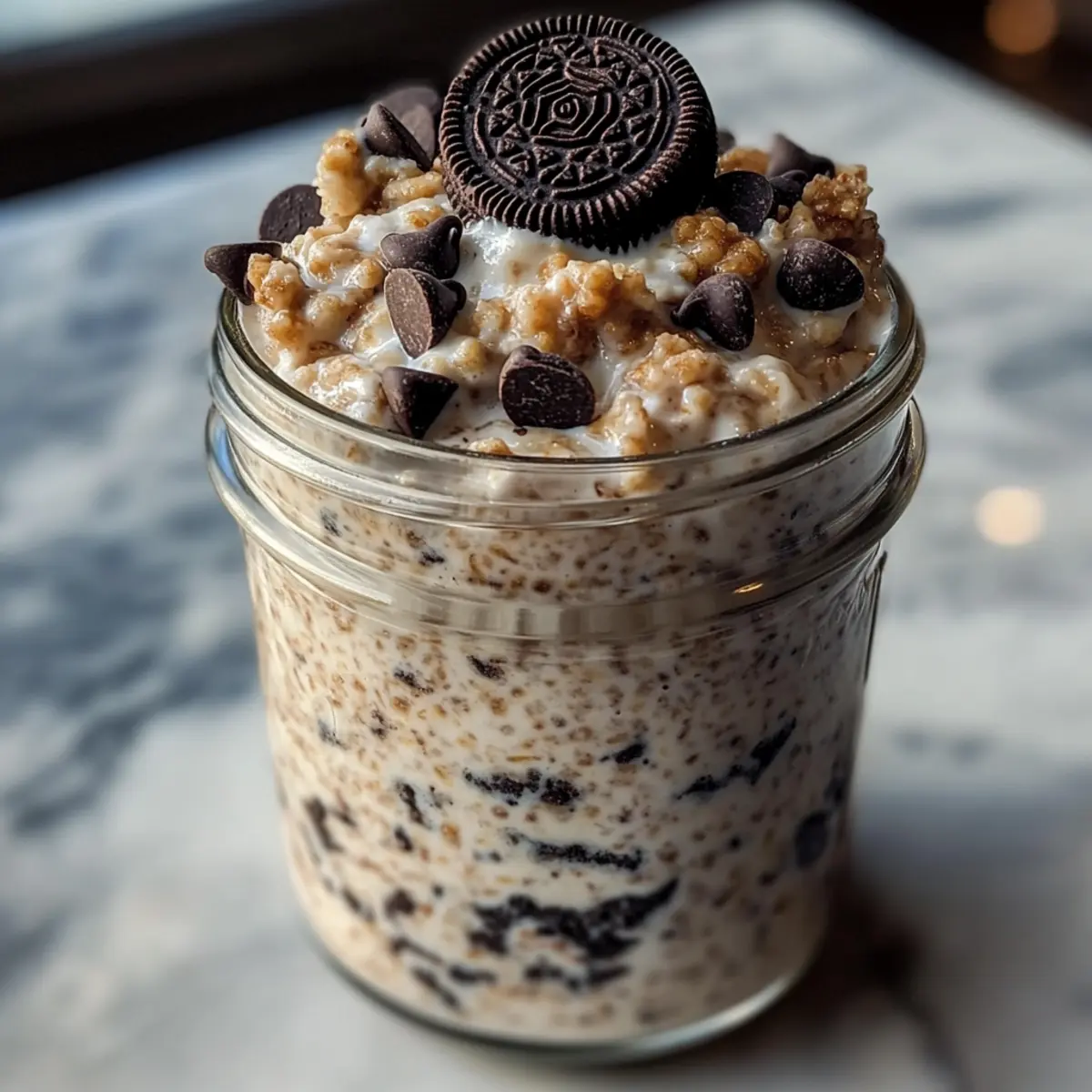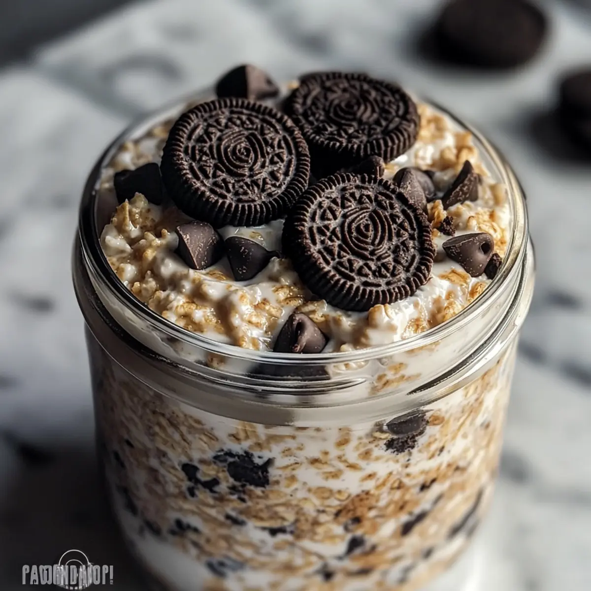 Ein leichter Schimmer in der Küche, das sanfte Klirren von Löffeln, und schon beginnt der Tag in Wohlgefallen. Heute präsentiere ich euch meine Oreo Übernacht-Haferflocken – ein Frühstück, das nicht nur lecker, sondern auch kinderleicht zuzubereiten ist. Diese no-cook Köstlichkeit vereint die cremige Textur von Hafer mit dem unwiderstehlichen Crunch der berühmten Kekse und bietet somit eine perfekte Balance aus Genuss und Nährstoffen. Ideal für hektische Morgen oder als kleiner Snack zwischendurch, sind die Oreo Übernacht-Haferflocken nicht nur sättigend, sondern schmecken auch wie ein Nachtisch. Wer könnte da schon widerstehen? Möchtet ihr erfahren, wie ihr dieses Frühstück zubereiten könnt? Warum sind diese Oreo Übernacht-Haferflocken unwiderstehlich? Simplicity, diese Frühstücksoption erfordert keine Kochkünste und kann in nur wenigen Minuten zubereitet werden. Unvergleichlicher Geschmack, die Kombination von cremigen Haferflocken und knusprigen Oreos bringt Freude in jeden Bissen. Perfekte Flexibilität, passt zu deinem Zeitplan; bereite sie am Abend vorher vor und genieße sie am Morgen! Gesunde Wahl, profitieren Sie von Nährstoffen wie Ballaststoffen und Proteinen aus griechischem Joghurt und Hafer. Bester Genuss, es fühlt sich fast wie ein Dessert an – und das zum Frühstück! Die Zutaten für Oreo Übernacht-Haferflocken • Diese köstlichen Overnight Oats kommen mit wenigen Zutaten aus, die allesamt in deiner Küche bereitstehen könnten. Für die Basis Haferflocken (old-fashioned): – Sie bieten die perfekte Textur und saugen die Flüssigkeit optimal auf; vermeide Instant- oder Stahlhafer für das beste Ergebnis. Milch (tierisch oder pflanzlich): – Fügt cremige Konsistenz hinzu; wähle zwischen Mandel-, Hafer- oder normaler Milch je nach Vorliebe. Griechischer Joghurt: – Sorgt für eine reichhaltige Textur und erhöht den Proteingehalt; kann durch pflanzlichen Joghurt ersetzt werden für eine milchfreie Option. Chiasamen: – Verdicken die Mischung und liefern Omega-3-Fettsäuren sowie Ballaststoffe; können weggelassen werden, wenn sie nicht zur Hand sind. Ahornsirup oder Honig: – Fügt natürliche Süße hinzu; benutze Agavensirup für eine vegane Alternative. Vanilleextrakt: – Verbessert das Gesamtaroma und lässt die Haferflocken nach Dessert schmecken; keine direkten Ersatzmöglichkeiten, außer bei speziellen Aromaeextrakten. Für das Topping Zerdrückte Oreos: – Die Hauptzutat, die den köstlichen Schokoladengeschmack und Crunch gibt; glutenfreie Kekse können als Alternative verwendet werden. Mini Schokoladenstückchen (optional): – Für zusätzlichen Schokoladengenuss in jedem Bissen; können weggelassen werden, wenn gewünscht. Diese Oreo Übernacht-Haferflocken machen dein Frühstück nicht nur einfach und schnell, sondern verwandeln deine Morgen in ein wahres Geschmackserlebnis! Schritt-für-Schritt-Anleitung für Oreo Übernacht-Haferflocken Step 1: Zutaten kombinieren In einer Schüssel oder einem Einmachglas die Haferflocken, Milch, griechischen Joghurt, Chiasamen, Ahornsirup und Vanilleextrakt gründlich vermischen. Rühre die Mischung gut um, bis alles gleichmäßig verteilt ist und eine cremige Konsistenz erreicht wird. Achte darauf, die Mischung so zu gestalten, dass keine Klumpen entstehen. Step 2: Oreos hinzufügen Jetzt kommt der spaßige Teil! Füge die zerdrückten Oreos und, falls gewünscht, die Mini-Schokoladenstückchen hinzu. Schaue zu, wie die шоколадные Stücke in der Mischung versinken und eine köstliche Verwöhnung versprechen. Mische alles vorsichtig, damit die Oreos gleichmäßig verteilt sind. Step 3: Abdecken und kühlen Decke das Glas oder die Schüssel mit einem Deckel oder Frischhaltefolie ab. Stelle sicher, dass alles gut verschlossen ist, und lege es in den Kühlschrank. Deine Oreo Übernacht-Haferflocken sollten für mindestens 4 Stunden oder über Nacht ruhen, damit die Haferflocken und Chiasamen genügend Flüssigkeit aufnehmen und die perfekte Konsistenz erreichen. Step 4: Servieren und garnieren Am nächsten Morgen, hole deine Mischung aus dem Kühlschrank. Rühre alles gut um, um die Zutaten wieder zu vermischen. Wenn du möchtest, kannst du die Oreo Übernacht-Haferflocken mit weiteren zerdrückten Oreos und extra Schokoladenstückchen dekorieren, um etwas zusätzlichen Crunch und Geschmack zu verleihen. Step 5: Genießen Die Oreo Übernacht-Haferflocken sind nun fertig zum Verzehr! Genieße sie direkt gekühlt oder lass sie für etwa 10 Minuten bei Raumtemperatur stehen, wenn du eine weichere Textur bevorzugst. Bereite dich darauf vor, deinen Tag mit diesem köstlichen und nahrhaften Frühstück zu beginnen! Vorausplanen: So bereitest du Oreo Übernacht-Haferflocken perfekt vor Die Oreo Übernacht-Haferflocken sind die ideale Lösung für alle, die in der hektischen Woche Zeit sparen möchten! Du kannst die Mischung bis zu 24 Stunden im Voraus zubereiten, um sicherzustellen, dass die Haferflocken und Chiasamen ihre perfekte Konsistenz erreichen. Mische einfach alle Zutaten in einem Einmachglas und decke es ab, bevor du es in den Kühlschrank stellst. Achte darauf, nach ein paar Tagen eventuell einen Spritzer Milch hinzuzufügen, falls die Mischung zu dick wird. Am Morgen kannst du dann einfach umrühren, nach Belieben mit weiteren zerdrückten Oreos toppen und genießen — so hast du ein köstliches Frühstück mit minimalem Aufwand! Oreo Übernacht-Haferflocken: Variationen & Alternativen Lass deiner Kreativität freien Lauf und passe das Rezept ganz nach deinen Vorlieben an! Hier sind einige verlockende Ideen, die dein Frühstück noch köstlicher machen. Milchalternative: Verwende Hafer- oder Mandeldrink für einen pflanzlichen Twist. So genießt du cremigen Geschmack ohne tierische Produkte. Fruchtiger Genuss: Füge frische Beeren wie Himbeeren oder Erdbeeren hinzu, um einen frischen Kontrast zu den schokoladigen Aromen zu schaffen. Diese kleinen Sünden bringen Farbe und