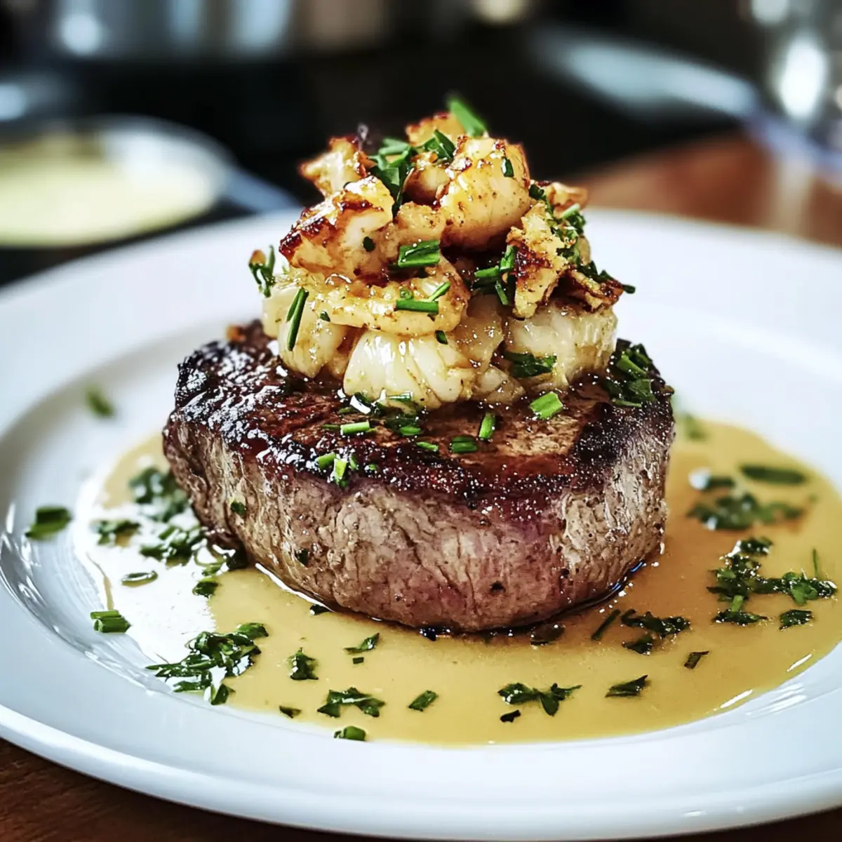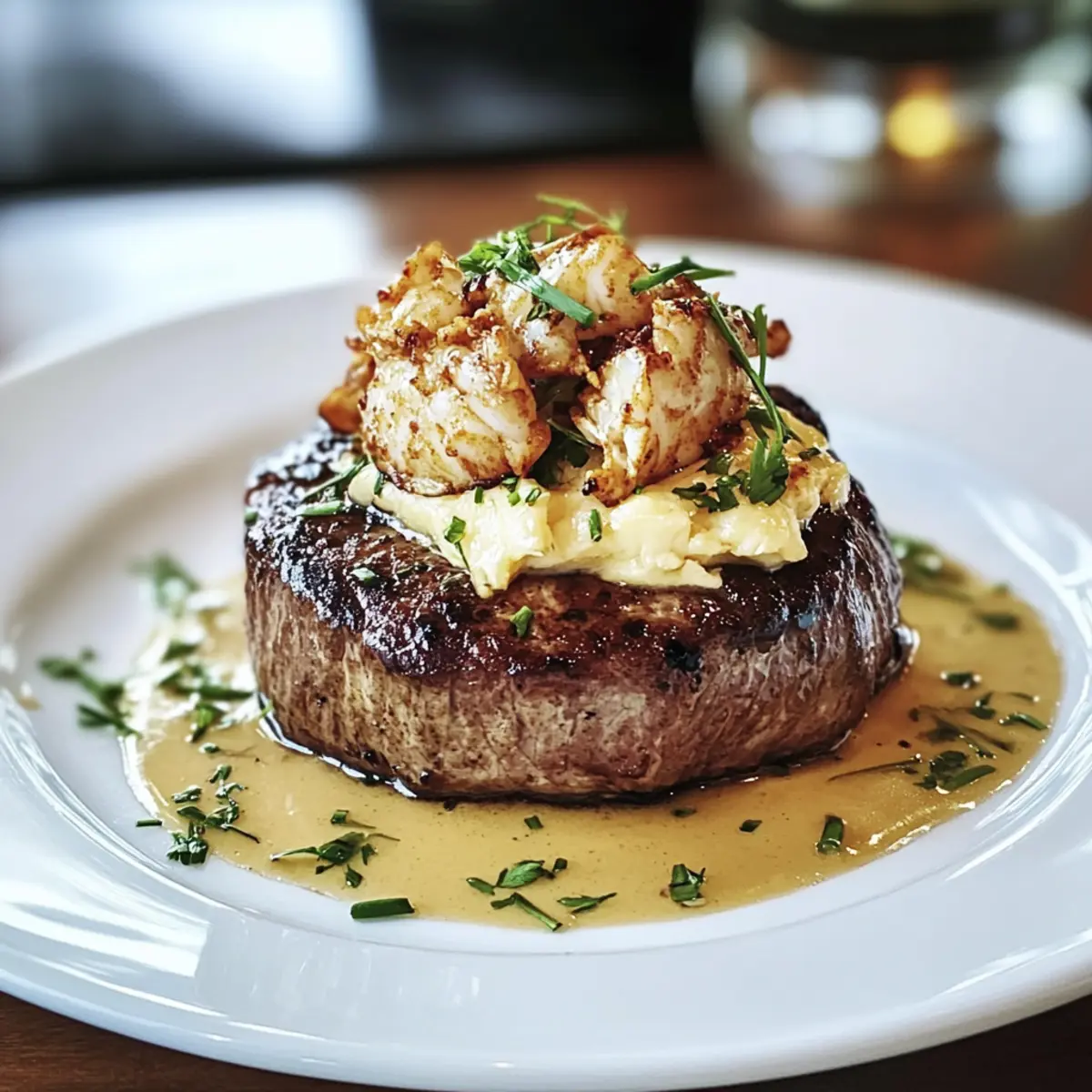 Kürzlich bin ich auf eine kleine Überraschung gestoßen: Dieses Rezept für ein Oscar Stil Steak bringt nicht nur einen Hauch von Eleganz in die heimische Küche, sondern verwandelt auch ein einfaches Abendessen in ein unvergessliches Gourmet-Erlebnis. In nur 25 Minuten zaubert ihr zartes Filet Mignon, gekrönt mit einem herzhaften Crab Imperial, das eure Geschmacksknospen verzaubern wird. Diese Kombination aus saftigem Fleisch und frischem Krabbenfleisch ist perfekt für besondere Anlässe oder um euch und eure Liebsten einfach mal zu verwöhnen. Und keine Sorge, denn die Zubereitung ist unkompliziert – selbst für Kochanfänger! Seid ihr bereit, euer nächstes Dinner zu einem Highlight zu machen? Warum dieses Rezept so besonders ist Einfachheit: Die Zubereitung ist unkompliziert und auch für Kochanfänger geeignet. Raffinierter Geschmack: Die Kombination aus zartem Filet Mignon und luxuriösem Krabbentopping bietet eine Geschmacksexplosion. Schnell und praktisch: In nur 25 Minuten verwandelt ihr euer Abendessen in ein Gourmet-Erlebnis. Vielseitigkeit: Ob bei besonderen Anlässen oder einem gemütlichen Abend, dieses Gericht wird sicher alle begeistern. Gesundheitsbewusst: Mit der Möglichkeit, glutenfreie Zutaten zu verwenden, ist es eine großartige Option für alle Diätformen. Ergänzt es mit einer Beilage wie Zimt Schnecken Bananenbrot oder einem frischen Salat für ein harmonisches Menü. Oscar Stil Steak Zutaten • Dieses Rezept wird eure Geschmacksknospen verwöhnen! Für das Steak Filet Mignon – Zarter Schnitt, ideal für einen reichhaltigen und fleischigen Geschmack. Portionsgröße nach Bedarf anpassen. Grobes koscheres Salz – Verstärkt die natürlichen Aromen des Fleisches; nach Geschmack anpassen. Frisch gemahlener Pfeffer – Fügt subtile Würze hinzu; frisch gemahlen für maximalen Geschmack empfohlen. Pflanzenöl – Notwendig zum Anbraten des Fleisches und für eine perfekte Kruste; Olivenöl ist eine gute Alternative. Für das Krabbentopping Mayonnaise – Sorgt für Cremigkeit und bindet die Krabbenfüllung; kann durch griechischen Joghurt ersetzt werden. Paniermehl – Fügt Textur hinzu; gewürztes Paniermehl kann den Geschmack verstärken; glutenfreie Varianten sind erhältlich. Eiklar – Bindet die Krabbenmischung und hält sie leicht; für Veganer kann eine Leinsamenmischung verwendet werden. Glatte Petersilie – Bietet Frische für die Krabbenfüllung; kann durch Dill oder Schnittlauch ersetzt werden. Zitronensaft – Bringt die Aromen zum Strahlen; frisch ist am besten. Worcestershire-Sauce – Verleiht Tiefe; für Fischsauce empfindliche Menschen weglassen. Old Bay Gewürz – Verstärkt den Krabben-Geschmack; kann mit einer Mischung aus Paprika und Thymian ersetzt werden. Lump Blue Crab Meat – Der Hauptbestandteil; sorgt dafür, dass das Gericht luxuriös bleibt; kann durch Garnelen ersetzt werden. Klärbutter oder Ghee – Fügt Reichtum hinzu; über die Steaks träufeln. Beurre Blanc Sauce – Eine samtige Sauce, die das Gericht ergänzt; essenziell für verbesserten Geschmack. Für die Garnitur Petersilie, Zitronenschnitze, Schnittlauch – Fügen Farbe und Flair hinzu; nach Belieben kombinieren. Mit diesen Zutaten steht einem köstlichen Oscar Stil Steak nichts mehr im Wege – lasst euch von dieser exquisiten Kombination verführen! Schritt-für-Schritt-Anleitung für Oscar Stil Steak Step 1: Rindfleisch würzen Das Filet Mignon großzügig mit grobem koscherem Salz und frisch gemahlenem Pfeffer würzen. Lasst das gewürzte Fleisch etwa 10 Minuten ruhen, damit die Gewürze in das Fleisch einziehen können. Diese kurze Wartezeit sorgt dafür, dass das Steak während des Bratens saftig bleibt und die Aromen intensiviert werden. Step 2: Ofen vorheizen Heizt den Backofen auf 175 °C vor und bereitet ein Backblech mit Aluminiumfolie vor. Diese Vorbereitung ist wichtig, um ein Anhaften des Krabbentoppings während des Backens zu verhindern und die Reinigung zu erleichtern. Während der Ofen sich aufheizt, könnt ihr bereits die nächsten Schritte vorbereiten. Step 3: Krabbentopping zubereiten In einer Schüssel Mayonnaise, Paniermehl, Eiklar, glatte Petersilie, Zitronensaft, Worcestershire-Sauce und Old Bay Gewürz gut miteinander verrühren. Faltet dann vorsichtig das Lump Blue Crab Meat unter, um es nicht zu zerdrücken, und stellt die Mischung für etwa 10 Minuten in den Kühlschrank. Dies ermöglicht es den Aromen, sich zu entfalten. Step 4: Steaks anbraten Erhitzt das Pflanzenöl in einer Pfanne bei mittelhoher Hitze. Legt die Filets in die heiße Pfanne und bratet sie für 2-4 Minuten auf jeder Seite an, bis sie eine goldene Kruste bildet. Achtet darauf, dass die Pfanne schön heiß ist, um ein perfektes Anbraten zu gewährleisten und die natürlichen Säfte im Fleisch zu versiegeln. Step 5: Krabbentopping auftragen Überträgt die angebratenen Steaks vorsichtig auf das vorbereitete Backblech und verteilt das Krabbentopping großzügig über jedes Steak. Die Kombination aus zartem Filet und dem herzhaften Krabbentopping macht das Oscar Stil Steak besonders verführerisch und sorgt für eine appetitliche Präsentation. Step 6: Backen Stellt das Backblech in den vorgeheizten Ofen und backt das Steak für etwa 12 Minuten, bis das Krabbentopping goldbraun und blubbernd ist. Haltet während des Backens ein Auge darauf, um das perfekte Ergebnis zu erzielen und ein Überbacken zu vermeiden, was die Textur beeinträchtigen könnte. Step 7: Fertigstellen mit Sauce Nehmt das Backblech aus dem Ofen und träufelt nach Belieben Klärbutter oder Beurre Blanc Sauce über die Filets. Diese zusätzliche Komponente bringt eine luxuriöse Note ins Spiel. Garnieren Sie das Gericht nach Wunsch mit frischer Petersilie und Zitronenschnitzen für das gewisse Etwas und serviert es sofort. Oscar Stil Steak Variationen Seid kreativ und gebt eurem Oscar Stil Steak eine persönliche Note – das ist eure Chance, neue Geschmäcker zu entdecken! Kräuter-Infusion: Füg