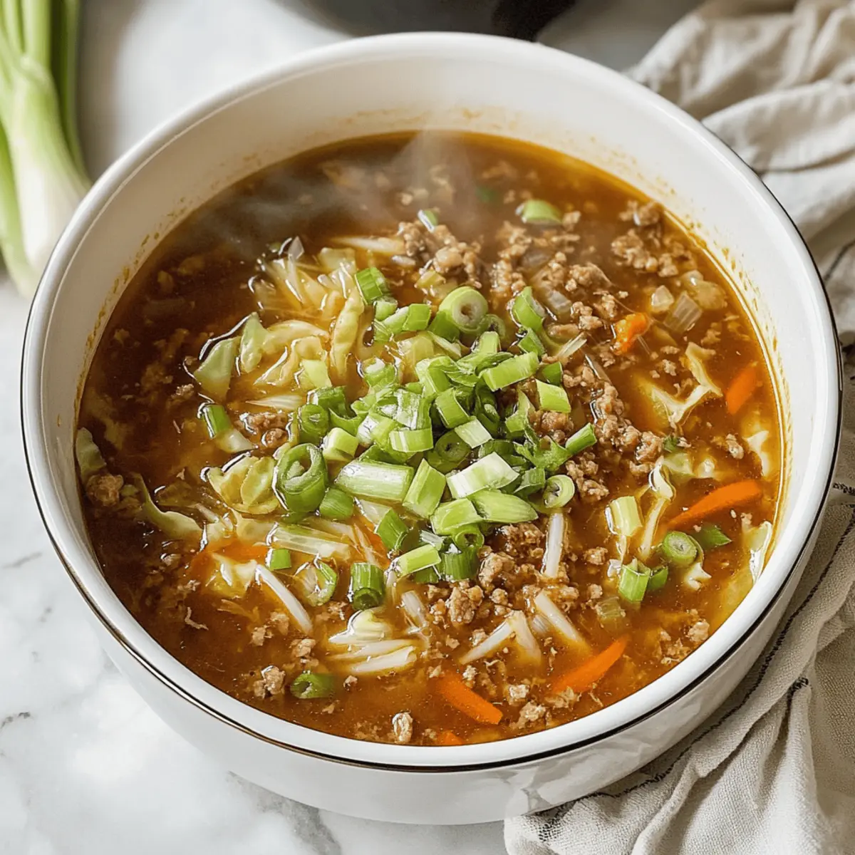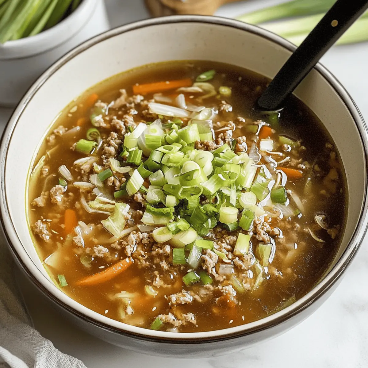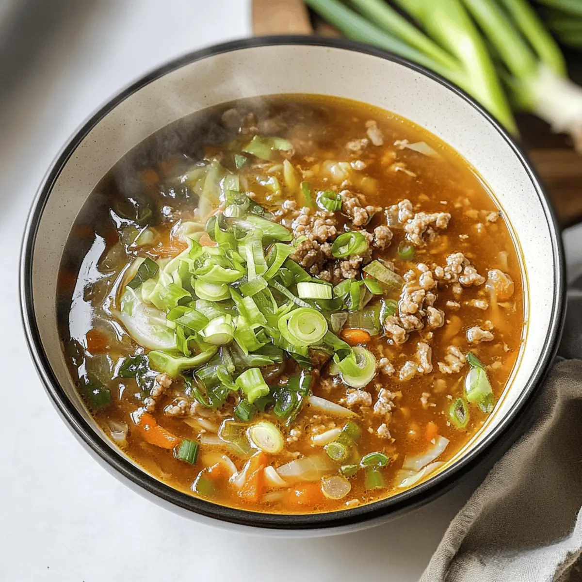 Als ich das erste Mal einen Löffel dieser köstlichen Paleo Egg Roll Soup kostete, fühlte ich mich in meine Kindheit zurückversetzt. Diese Suppe vereint die vertrauten Aromen eines klassischen Frühlingsrollens, ganz ohne die Wrapper, was sie zu einer idealen Wahl für geschäftige Wochentage macht. Glutenfrei und voller frischer Zutaten wie Cabbage, Knoblauch und Hackfleisch, ist sie nicht nur schnell zubereitet, sondern auch eine wahre Wohltat für Herz und Seele. Ob an einem kühlen Abend oder als schnelle Mahlzeit zwischendurch – diese Suppe verbindet Genuss mit gesundem Essen. Bist du bereit, den unverwechselbaren Geschmack selbst zu entdecken? Warum wirst du diese Suppe lieben? Wärme und Komfort: Diese Suppe ist ein echter Seelenwärmer, der dir einen herzhaften Genuss bietet, wann immer du ihn brauchst. Einfach und Schnell: Mit wenigen Zutaten und minimalem Aufwand hast du in kürzester Zeit eine köstliche Suppe, die perfekt für geschäftige Abende ist. Vielseitig: Du kannst die Gemüsezutaten nach deinem Geschmack anpassen oder sogar die Proteinquelle variieren, um deine Lieblingskombination zu finden. Gesund und Nahrhaft: Vollgepackt mit frischem Gemüse und hochwertigem Protein ist diese Suppe eine gesunde Wahl für jede Diät, sei es AIP, Paleo oder Whole30. Köstlicher Umami-Geschmack: Durch die Kombination von Kokosaminos und frischen Gewürzen erhältst du den reichen Geschmack eines klassischen Gerichts, ohne auf die Wrapper verzichten zu müssen. Entdecke auch die einfache Art, wie du dein Essen mit Rezepten wie Hawaiian Roll Franzosischer oder Gebratener Reis Rezept aufpeppen kannst! Paleo Eierrollen Suppe Zutaten Für die Brühe • Hühnerbrühe – bildet die geschmackvolle Grundlage der Suppe; sorgt für einen herzhaften Geschmack. Für das Gemüse • Kohl (grün, in Streifen geschnitten) – dient als Hauptgemüse; bietet Knusprigkeit und Nährstoffe. • Karotten (gerieben) – sorgt für natürliche Süße und Farbe in der Suppe. • Kleine gelbe Zwiebel (gewürfelt) – fügt aromatische Süße und Tiefe hinzu. • Knoblauch (gehackt) – bringt intensiven Geschmack und gesundheitliche Vorteile; frisch ist am besten. • Kleine Ingwerknolle (geschält und gerieben) – verleiht der Suppe einen würzigen Kick und Wärme. Für das Fleisch • Hackfleisch (Schweinefleisch) – sorgt für eine herzhafte Proteinbasis; kann durch Hühnchen ersetzt werden für eine leichtere Variante. Für das Würzen • Kokosöl – zum Anbraten der Zutaten; verleiht eine leichte Süße. Kann durch Olivenöl ersetzt werden, falls gewünscht. • Kokosaminos – eine glutenfreie Sojasaucenalternative, die Umami-Geschmack hinzufügt; perfekt für die Paleo Eierrollen Suppe. • Reisessig – sorgt für die nötige Säure; Limettensaft kann als AIP-Alternative verwendet werden. • Salz und Pfeffer – verbessern den Gesamteindruck der Suppe; nach Geschmack anpassen. Für die Garnitur • Frühlingszwiebel (gehackt) – bringt Frische und Farbe als Garnitur. • Sriracha (optional) – für zusätzlichen Schärfe; weglassen für AIP-Konformität. Schritt-für-Schritt-Anleitung für Paleo Eierrollen Suppe Schritt 1: Zutaten vorbereiten Schneide die Zwiebel in kleine Stücke, hacke den Knoblauch fein, reibe die Karotten, schneide den Kohl in Streifen und reibe den Ingwer. Diese Schritte sind wichtig, um alle Aromen in die Paleo Eierrollen Suppe zu integrieren. Bereite alle Zutaten vor, bevor du mit dem Kochen beginnst, um einen reibungslosen Ablauf zu gewährleisten. Schritt 2: Fleisch anbraten Erhitze in einem großen Kochtopf bei mittlerer Hitze 1 Esslöffel Kokosöl. Füge das Hackfleisch (Schweinefleisch) hinzu und würze es mit Salz und Pfeffer. Brate das Fleisch für etwa 5-7 Minuten, bis es goldbraun und gut durchgegart ist. Das Hackfleisch sollte krümelig und nicht mehr rosa sein, um sicherzustellen, dass es gut gegart ist. Schritt 3: Aromatische Zutaten anbraten Sobald das Fleisch fertig ist, füge die gewürfelte Zwiebel, den gehackten Knoblauch und den geriebenen Ingwer hinzu. Sauté die Mischung für 2-3 Minuten, bis sie duftet und die Zwiebeln leicht glasig sind. Dieses Verfahren entlockt den Zutaten Aromen und gibt deiner Paleo Eierrollen Suppe eine geschmackvolle Basis. Schritt 4: Gemüse und Brühe hinzufügen Gib nun die geriebenen Karotten und die Kohlstreifen in den Topf und rühre alles gut um. Gieße dann die Hühnerbrühe dazu und bringe die Suppe zum Simmern. Warte, bis sie aufkocht, und lasse sie dann für etwa 5 Minuten köcheln. Achte darauf, dass der Kohl leicht zusammenfällt und weich wird. Schritt 5: Würzen und Servieren Rühre die Kokosaminos und den Reisessig in die Suppe ein und lasse sie für weitere 10 Minuten köcheln. Dadurch verbinden sich die Aromen und die Konsistenz der Brühe wird verbessert. Vor dem Servieren schmecke die Suppe ab und passe die Gewürze nach deinem Geschmack an. Garniere die Paleo Eierrollen Suppe mit gehackten Frühlingszwiebeln und serviere sie heiß. Variationen & Substitutionen Entdecke, wie du die Paleo Eierrollen Suppe ganz nach deinem Geschmack anpassen kannst! Glutenfrei: Verwende glutenfreie Brühe, um sicherzustellen, dass die Suppe alle diätetischen Anforderungen erfüllt. Vegetarisch: Ersetze das Schweinehackfleisch durch gebratenen Tofu oder gehackte Portobello-Pilze für ein herzhaftes vegetarisches Gericht. Pikant: Füge ein paar Stücke fein gehacktes Kimchi oder eine Prise Cayennepfeffer hinzu, um einen zusätzlichen Kick zu erhalten. Fruchtig: Eine Handvoll Ananaswürfel bringt eine süß-saftige Note, die perfekt mit dem herzhaften Geschmack harmoniert. Saisonales Gemüse: Variiere das Gemüse je nach Saison mit Zucchini oder Paprika, um neue Texturen und Aromen zu entdecken. Nussiger Geschmack: Ein Löffel Erdnussbutter oder Mandelmus kurz vor dem Servieren verleiht der Suppe eine cremige, nussige Note. Reste kreativ nutzen: Verwende Reste als Füllung für eine eigene Fornula, indem du sie in Kohlb