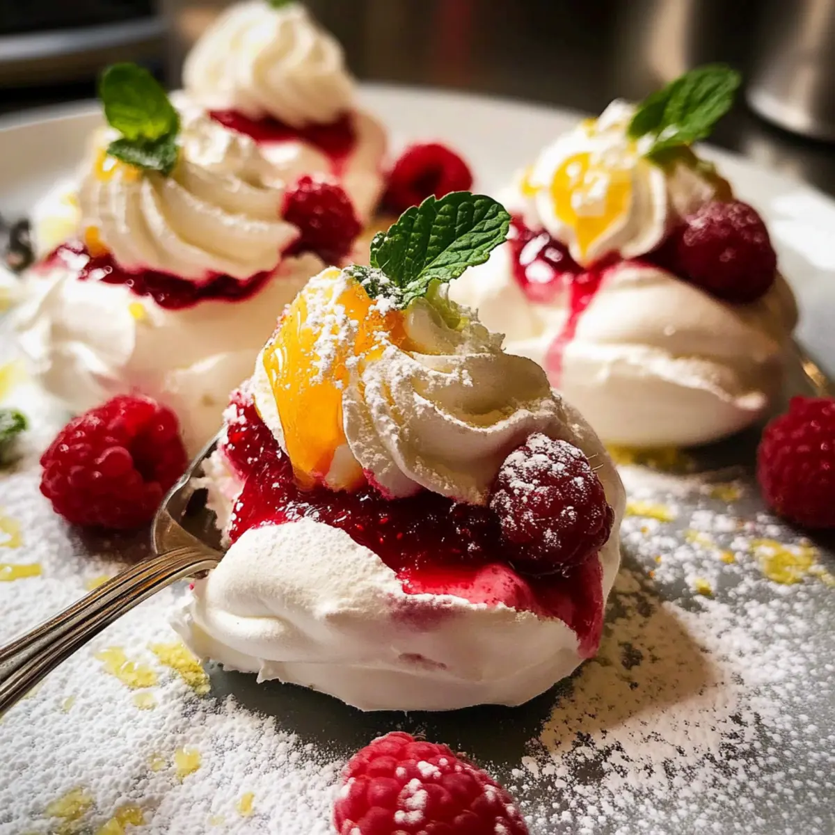 Als ich neulich beim Stöbern in einem australischen Café saß, wurde ich von dem verführerischen Anblick der Pavlova Bomben in den Bann gezogen. Diese kleinen Meisterwerke bestehen aus einem knusprigen Meringue-Außenmantel, der voller Freude darauf wartet, aufgebrochen zu werden und seine köstlichen Füllungen zu enthüllen. Mit ihrer süßen, luftigen Textur und den erfrischenden Aromen von Zitronencreme oder himmlischem Himbeersirup sind Pavlova Bomben sowohl ein echter Hingucker als auch ein Genuss für den Gaumen. Das Beste daran? Sie sind einfach zuzubereiten und die perfekte Alternative zu schnellem Essen oder Fertigprodukten. Also schnapp dir deine Schürze und lass uns herausfinden, welche kreativen Füllungen du in diese süßen kleinen Bomben packen möchtest! Warum wirst du Pavlova Bomben lieben? Keine komplizierten Techniken: Diese Pavlova Bomben sind einfach zuzubereiten, ideal für jeden, der gerade erst mit dem Backen beginnt. Verführerische Aromen: Mit Füllungen wie Zitronencreme und Himbeersirup wird jede Biss ein Geschmackserlebnis, das deine Geschmacksknospen verzaubert. Kreative Freiheit: Du kannst die Füllungen nach Belieben anpassen, von exotischer Passionsfrucht bis hin zu klassischem Schokoladensauce, um jedem Gaumen gerecht zu werden. Beeindruckt deine Gäste: Diese kleinen Kunstwerke sind ein echter Hingucker auf jedem Desserttisch und lassen deine Gäste staunen. Perfekte Textur: Der knusprige Außenmantel und die weiche, cremige Füllung bieten ein einzigartiges Mundgefühl, das süchtig macht. Genieße diese Pavlova Bomben als köstliche Alternative zu schnellem Essen und entdecke auch andere kreative Dessertideen. Pavlova Bomben Zutaten Für die Meringue • Eierweiß – Essentiell für Struktur und Textur; etwa 3 große Eier sollten Zimmertemperatur haben für besseres Volumen. • Zucker – Zuckersorte ist entscheidend; benutze feinen Zucker, um eine glatte Meringue zu erhalten, da normaler Zucker möglicherweise nicht vollständig auflöst. • Maisstärke – Stabilisiert die Meringue und verhindert Risse; unbedingt verwenden für die perfekte Textur. • Weißer Essig – Sorgt für die Stabilität der Meringue; verwende einfachen weißen Essig. Für die Füllungen • Himbeersirup – Bringt eine erfrischende Fruchtigkeit; du kannst ihn auch mit anderen Fruchtpürees wie Mango variieren. • Zitronencreme – Für eine zarte, zitrusartige Füllung; perfekt, um die Süße der Meringue auszugleichen. Für das Topping • Schlagsahne – Für einen luxuriösen, cremigen Belag; stelle sicher, dass sie kalt ist für optimales Schlagen. • Garnitur – Fein gehackte ungesalzene Pistazien für einen Crunch, frische Minzblätter und Himbeeren zur Dekoration; optional mit Puderzucker bestäuben. Diese Pavlova Bomben sind nicht nur ein wahres Fest für die Augen, sondern auch für die Geschmacksknospen und die perfekte Möglichkeit, um mit verschiedenen Füllungen zu experimentieren! Schritt-für-Schritt-Anleitung für Pavlova Bomben Schritt 1: Meringue vorbereiten Heize den Ofen auf 110 °C vor. Schlage die Zimmertemperatur-Eiweiße in einer großen Schüssel schaumig. Füge den Zucker langsam hinzu, während du weiter aufschlägst, bis die Masse fluffig und glänzend ist, was etwa 5 Minuten dauert. Die Meringue ist bereit, wenn sie Spitzen bildet, die stehen bleiben. Schritt 2: Stabilisieren Falte die Maisstärke und den weißen Essig vorsichtig unter die Eiweiß-Zucker-Mischung. Sei dabei sanft, um die Luftigkeit zu bewahren, und rühre für weitere 30 Sekunden, bis alles gut miteinander vermischt ist. Dies gibt deiner Meringue die nötige Stabilität für die Pavlova Bomben. Schritt 3: Formen Lege ein Backblech mit Backpapier aus und spritze die Meringue in kuppelförmige Häufchen darauf. Achte darauf, dass sie gleichmäßig und glatt sind, um eine schöne Form zu bekommen. Backe die Meringue 1,5 Stunden lang, bis sie fest und leicht golden ist. Danach den Ofen ausschalten und die Meringue vollständig im geschlossenen Ofen abkühlen lassen, mindestens 3 Stunden oder über Nacht. Schritt 4: Füllungen zubereiten Bereite während des Backens die Füllungen vor. Für die Zitronencreme und den Himbeersirup, koche die Zutaten in einem kleinen Topf bei mittlerer Hitze, bis sie eingedickt sind. Sei darauf bedacht, sie durch ein Sieb zu gießen, um die Stückchen zu entfernen, und lasse sie dann abkühlen. Schritt 5: Zusammensetzen Wenn die Meringue vollständig abgekühlt ist, schneide mit einem kleinen Messer oder einem Strohhalm ein Loch in die Oberseite jeder Pavlova Bombe. Verwende einen Holzspieß, um Platz für die Füllungen zu schaffen, bevor du sie mit der Zitronencreme und dem Himbeersirup füllst. Decke das Loch mit einem Klecks Schlagsahne ab, um die Füllungen zu bewahren. Schritt 6: Servieren Plattiere die Pavlova Bomben auf einer schönen Servierplatte. Garniere sie mit zusätzlicher Schlagsahne, gehackten Pistazien, frischen Minzblättern und Himbeeren. Die Gäste werden ermutigt, die Pavlova Bomben vorsichtig zu zerdrücken, um das köstliche Innere zu enthüllen. Lagerungstipps für Pavlova Bomben Zimmertemperatur: Bewahre die gebackenen Meringue-Schalen bei Zimmertemperatur auf. Sie sollten in einem luftdichten Behälter für bis zu 3 Tage frisch bleiben. Kühlschrank: Füll die Pavlova Bomben nicht im Voraus. Die Füllungen können jedoch separat im Kühlschrank aufbewahrt werden, um die Frische zu bewahren – ideal für bis zu 3 Tage. Gefrierfach: Die Meringue-Schalen können für bis zu 1 Monat eingefroren werden. Stelle sicher, dass sie gut verpackt sind, um Gefrierbrand zu vermeiden. Wiedervorbereitung: Bei Bedarf die gefrorenen Meringue-Schalen bei Zimmertemperatur auftauen lassen und damit sofort die Pavlova Bomben mit frischer Sahne und Füllungen zubereiten. Vorbereiten der Pavlova Bomben für eine stressfreie Zubereitung Die Pavlova Bomben sind perfekt für die vorherige Zubereitung und helfen dir, wertvolle Zeit zu sparen