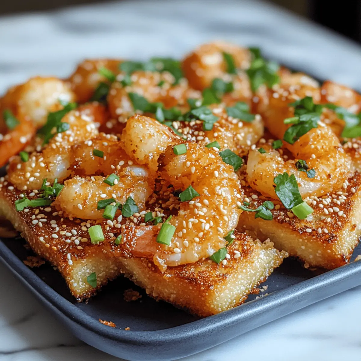 Wenn die ersten Aromen von frischem Knoblauch und zarten Garnelen in meiner Küche die Luft erfüllen, kann ich das Glück kaum fassen, das in einer einzigen kleinen Scheibe Brot steckt. Dieses Rezept für perfekte Garnelen-Toast vereint das Beste aus der chinesischen und westlichen Küche – jeder Biss knusprig und zugleich zart. Die Kombination aus süßen Garnelen, würzigem Sesamöl und knackigen Frühlingszwiebeln ergibt ein Geschmackserlebnis, das nicht nur schmeckt, sondern auch schnell zubereitet ist. Ganz gleich, ob ihr es als Appetizer für eure nächste Feier oder als köstliches Snack für den Nachmittag serviert – bei diesem Garnelen-Toast werdet ihr garantiert den Wow-Effekt erzielen. Seid ihr bereit, eure Gäste mit dieser köstlichen Kreation zu überraschen? Warum werden Sie dieses Rezept lieben? Einfachheit: Die Zubereitung ist spielend leicht und benötigt keine besonderen Kochkünste. Perfekt für alle, die schnell ein köstliches Gericht zaubern möchten! Vielseitigkeit: Dieses Rezept kann auf verschiedene Arten zubereitet werden – ob tiefgefroren, in der Pfanne oder im Airfryer, Sie haben die Wahl! Einzigartiger Geschmack: Die Mischung aus frischen Garnelen, aromatischem Knoblauch und nussigem Sesamöl sorgt für ein unverwechselbares Geschmackserlebnis. Ideal für jede Gelegenheit: Servieren Sie die Garnelen-Toasts als köstlichen Snack oder als Highlight auf Ihrem nächsten Buffet. Sie haben das Potential, zum Star jeder Feier zu werden! Frisch geschmeckt: Am besten kommen die Toasts aus der Pfanne – golden und knusprig! Wenn Sie nach weiteren neuen Ideen suchen, probieren Sie doch einmal Avocado Toast Rezept oder Roll Französischer Toast. Zutaten für Perfekte Garnelen Toasts • Diese einfache chinesische Garnelen-Toast-Rezept ist eine wahre Köstlichkeit! Für die Füllung Frühlingszwiebeln – Fügt einen milden Zwiebelgeschmack und Frische hinzu; kann durch grüne Zwiebeln oder Schnittlauch ersetzt werden. Koriander – Liefert kräuterartige Noten, die die Garnelenmasse aufwerten; substituieren Sie mit Petersilie für einen milderen Geschmack. Eiweiß – Bindet die Garnelenmasse zusammen und sorgt für eine kohäsive Textur. Geröstetes Sesamöl – Verleiht der Garnelenpaste einen reichen, nussigen Geschmack; kann durch Olivenöl für einen leichteren Geschmack ersetzt werden. Weiße Sesamsamen – Fügen Crunch und visuelle Attraktivität hinzu; sie verstärken auch die Nussigkeit. Knoblauchzehen – Bringen aromatische Tiefe in die Garnelenmasse. Große Garnelen (geschält und entdarmt) – Das Hauptprotein; frische Garnelen sorgen für den besten Geschmack. Niedriger Natrium-Gewürzsauce – Fügt umami Würze hinzu; Tamari kann für eine glutenfreie Option verwendet werden. Salz und Pfeffer – Nach Geschmack würzen. Für die Basis Weißes Sandwichbrot – Bildet die Grundlage für die Garnelenpaste; kann durch Vollkornbrot für mehr Textur ersetzt werden. Frittier-Öl Neutrales Öl (z.B. Pflanzenöl) – Wird zum Frittieren verwendet und sorgt für die knusprige Textur. Schritt-für-Schritt-Anleitung für Perfekte Garnelen Toasts Step 1: Garnelen und Kräuter vorbereiten Zuerst die Frühlingszwiebeln und Knoblauchzehen in einer Küchenmaschine fein hacken. Fügen Sie den Koriander hinzu und zerkleinern Sie alles gut. Diese aromatische Basis gibt den perfekten Geschmack für die Füllung der perfekten Garnelen Toasts. Nach etwa 1-2 Minuten sollten die Zutaten gut vermischt und fein gehackt sein. Step 2: Garnelenmasse herstellen Jetzt zwei Drittel der Garnelen, das Eiweiß, die Sojasauce und das geröstete Sesamöl zu der Kräutermischung hinzufügen. Pulsieren Sie die Mischung in der Küchenmaschine, bis eine grobe Paste entsteht, etwa 30 Sekunden lang. Diese Konsistenz sorgt dafür, dass die Füllung gut auf dem Brot haftet und beim Frittieren nicht auseinanderfällt. Step 3: Garnelenstücke und Mischung vereinen Die restlichen Garnelen in 0,5 cm große Stücke schneiden und in eine mittelgroße Schüssel geben. Die vorbereitete Garnelenpaste aus der Küchenmaschine hinzufügen, mit Salz und Pfeffer nach Geschmack würzen und alles gut vermischen. Diese Mischung ergibt die köstliche Füllung für die perfekten Garnelen Toasts, die Sie gleich auf das Brot streichen werden. Step 4: Toasts vorbereiten Die Garnelenfüllung gleichmäßig auf den Scheiben des weißen Sandwichbrotes verteilen. Sorgen Sie dafür, dass die Füllung bis zu den Rändern reicht, um die maximale Geschmacksexplosion in jedem Biss zu garantieren. Drehen Sie die Brotscheiben dann vorsichtig in einer Schüssel mit weißen Sesamsamen, sodass die Oberseite gut bedeckt ist. Step 5: Frittieren der Garnelen Toasts In einer Pfanne genügend neutrales Öl erhitzen, sodass es 1-2 cm hoch steht. Die Hitze auf mittlere Temperatur einstellen. Sobald das Öl heiß ist (etwa 180 °C), die Toasts vorsichtig in die Pfanne geben und für 2-3 Minuten frittieren, bis sie goldbraun und knusprig sind. Es ist wichtig, die Toasts regelmäßig zu wenden, um eine gleichmäßige Bräunung zu erreichen. Step 6: Abtropfen und Servieren Die fertigen Garnelen Toasts mit einem Schaumlöffel aus der Pfanne heben und auf Küchenpapier abtropfen lassen, um überschüssiges Öl zu entfernen. Servieren Sie die warmen Toasts sofort, um deren knusprige Textur und köstlichen Geschmack zu genießen. Ideal als Snack oder zur Feier – diese perfekten Garnelen Toasts werden Ihre Gäste begeistern! Lagerungstipps für Garnelen Toasts Zimmertemperatur: Die Garnelen Toasts sollten frisch serviert werden, da sie bei Zimmertemperatur schnell ihre Knusprigkeit verlieren. Kühlschrank: Bewahren Sie übrig gebliebene Garnelen Toasts in einem luftdichten Behälter im Kühlschrank auf, wo sie bis zu 2 Tage frisch bleiben. Tiefkühlfach: Für längere Lagerung können Sie den Garnelen Toast unzubereitet einfrieren. Wickeln Sie die Brotscheiben in Frischhaltefolie ein und lagern Sie sie bis zu 3 Monate im Gefrierschrank. Wie