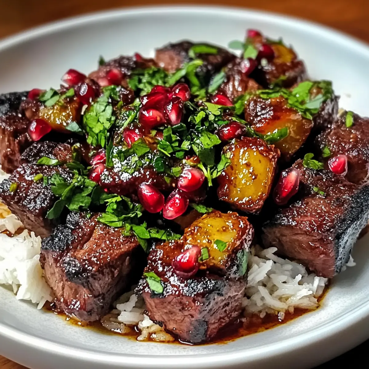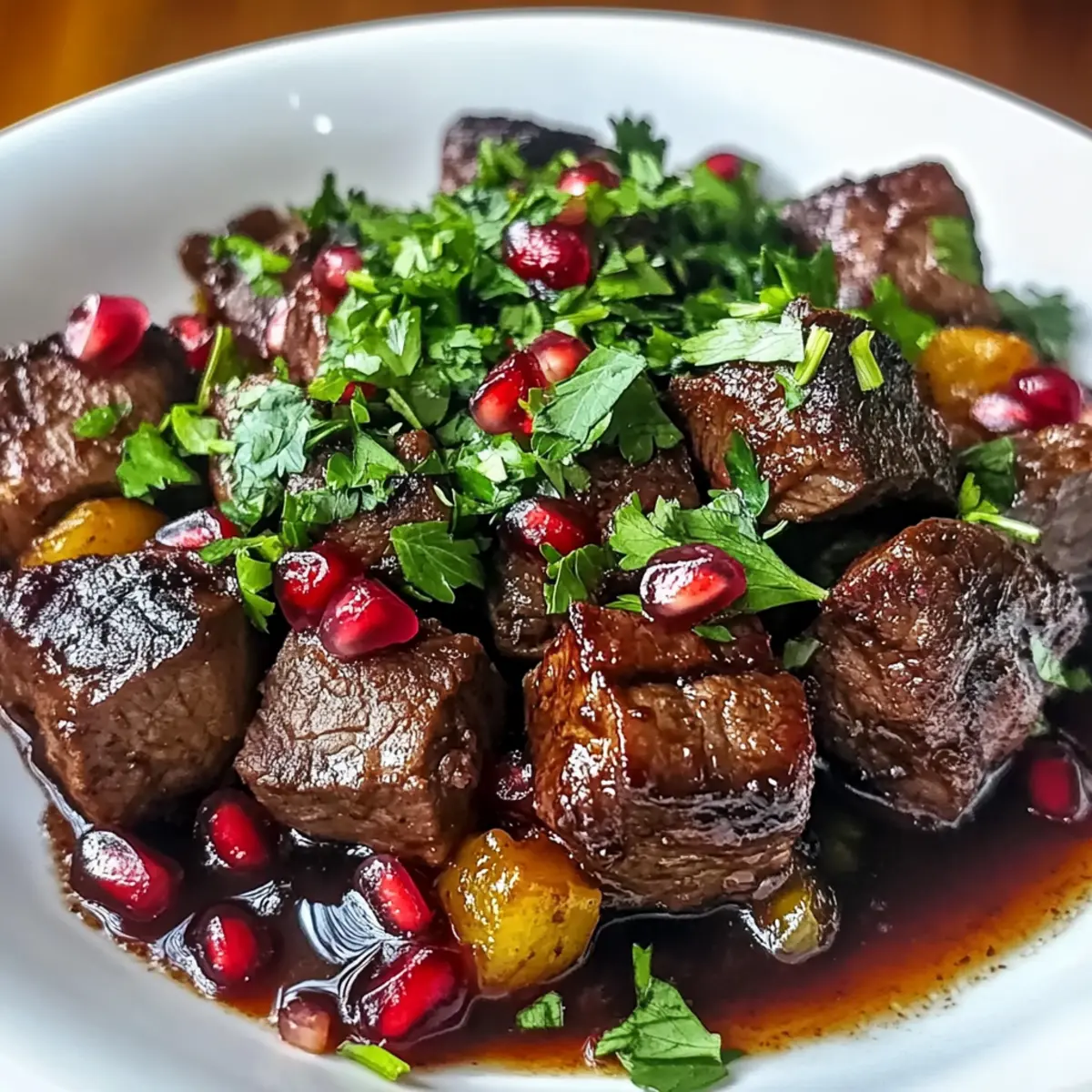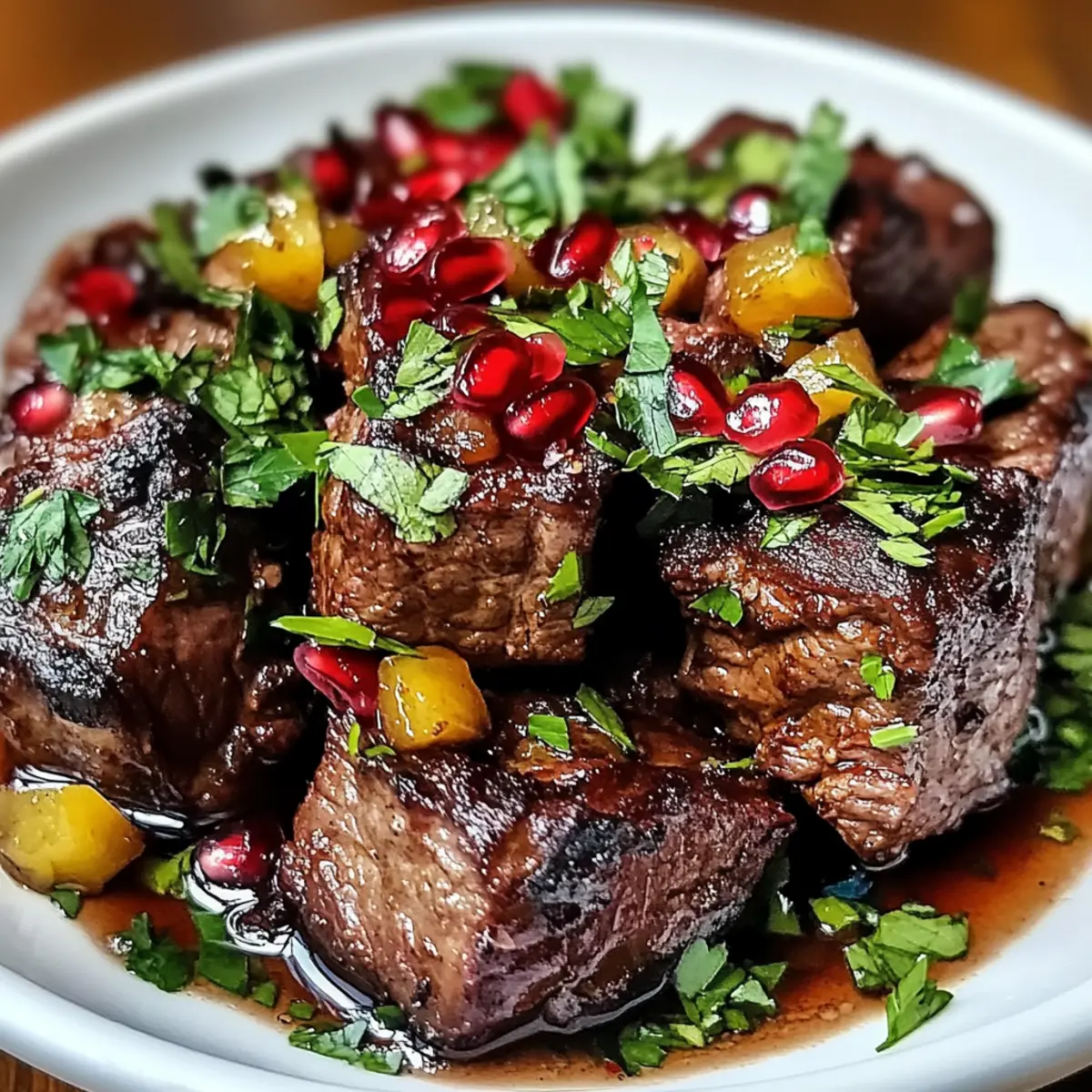 Wenn ich den verführerischen Duft von mariniertem Fleisch und aromatischen Gewürzen in meiner Küche erlebe, weiß ich, dass etwas Besonderes bevorsteht. Der Tender Persian Shish Andaz ist nicht nur ein Rezept, sondern ein echtes Fest der Sinne, das in jedem Bissen die Kultur Persiens widerspiegelt. Diese köstliche, glutenfreie Spezialität ist anpassbar, sodass ihr ganz leicht eine Version mit Lamm, Rind, Huhn oder sogar einer vegetarischen Option zaubern könnt. Mit der Kombination aus Pomegranate Molasses und frischen Kräutern wird jeder Löffel zu einem komfortablen Genuss, der sowohl für gemütliche Familienabende als auch für aufregende Dinnerpartys perfekt ist. Seid ihr bereit, euren nächsten kulinarischen Höhepunkt zu entdecken? Warum ist dieser Shish Andaz besonders? Einzigartiger Geschmack: Der Tender Persian Shish Andaz vereint die Aromen von Pomegranate Molasses und frischen Kräutern, was zu einem unverwechselbaren Geschmackserlebnis führt. Vielseitige Optionen: Egal, ob ihr Lamm, Rind oder eine köstliche vegetarische Variante bevorzugt, dieses Rezept lässt sich leicht anpassen. Für weitere Abwechslung bietet sich die Kombination mit gegrilltem Gemüse an. Einfache Zubereitung: Das Marinieren und Kochen ist unkompliziert, was es selbst Anfängern ermöglicht, ein beeindruckendes Gericht zu kreieren. Perfekt für Geselligkeit: Ideal für jeden Anlass, vom entspannten Abendessen bis zur glamourösen Dinnerparty – dieser Shish Andaz zieht garantiert alle Blicke auf sich! Verpasst nicht die Gelegenheit, eure Gäste zu beeindrucken und dabei einen Hauch von persischer Kultur in eure Küche zu bringen. Persische شیش انداز Zutaten Für das Fleisch 1 kg Lamm oder Rind – Wählt zarte Stücke wie Schulter oder Nacken für optimale Saftigkeit. Für eine leichtere Variante kann auch Huhn verwendet werden. Für die Marinade 2 Esslöffel Pflanzenöl – Wichtig für das Anbraten und Karamellisieren der Zwiebeln. 2 große Zwiebeln – Sie bringen eine süße Tiefe in das Gericht, besonders wenn sie karamellisiert werden. 4 Knoblauchzehen – Frisch verwenden, um die aromatische Tiefe zu verstärken. 1 Teelöffel gemahlener Kurkuma – Verleiht Wärme und eine lebendige Farbe. 1 Teelöffel Zimt – Fügt dem Gericht eine süße Wärme hinzu. 1 Teelöffel Kreuzkümmel – Für erdige Noten. 0,5 Teelöffel gemahlener Koriander – Sorgt für einen erfrischenden Geschmack. 1 Teelöffel Salz – Für die allgemeine Geschmacksverstärkung. 0,5 Teelöffel schwarzer Pfeffer – Bringt eine dezente Schärfe. 2 Esslöffel Granatapfelsirup – Schlüssel für Süße und Säure; bei Bedarf mit Honig und Zitronensaft mischen. 0,25 Tasse Zitronensaft – Hellt das Gericht auf und sorgt für ein ausgewogenes Aroma. 0,5 Tasse Hühner- oder Rinderbrühe – Für die Sauce beim Köcheln, selbstgemachte Brühe verstärkt die Tiefe. Für die Garnierung 0,25 Tasse frisch gehackte Petersilie – Für Frische, kurz vor dem Servieren hinzufügen. 0,25 Tasse frisch gehackte Minze – Bringt Helligkeit, ebenfalls kurz vor dem Servieren verwenden. Serviervorschläge Gedämpfter Reis oder warme Fladenbrote – Ideal, um die köstliche Sauce aufzunehmen. Schritt-für-Schritt-Anleitung für Tender Persian Shish Andaz Step 1: Marinieren des Fleisches Das Lamm oder Rind in eine Schüssel geben und mit Kurkuma, Zimt, Kreuzkümmel, Koriander, Salz und schwarzem Pfeffer marinieren. Gut vermischen und die Mischung für 30 Minuten bis zu 1 Stunde abgedeckt im Kühlschrank ruhen lassen. Diese Marinierzeit sorgt dafür, dass die Gewürze tief in das Fleisch eindringen und für einen intensiven Geschmack sorgen. Step 2: Zwiebeln karamellisieren In einer großen Pfanne bei mittlerer Hitze das Pflanzenöl erhitzen. Die in Scheiben geschnittenen Zwiebeln hinzufügen und etwa 10 Minuten lang anbraten, bis sie goldbraun und weich sind. Dies bringt die natürliche Süße der Zwiebeln zur Geltung und schafft eine aromatische Basis für den Tender Persian Shish Andaz. Step 3: Knoblauch hinzufügen Die geschälten und fein gehackten Knoblauchzehen in die Pfanne geben und für weitere 1-2 Minuten mit den Zwiebeln anbraten. Achte darauf, dass der Knoblauch nicht verbrennt, da er sonst bitter wird. Diese Kombination von Zwiebeln und Knoblauch wird den Duft und die Aromen im ganzen Gericht intensivieren. Step 4: Fleisch anbraten Die marinierte Fleischmischung in die Pfanne geben und die Hitze erhöhen. Das Fleisch auf allen Seiten 5-7 Minuten lang kräftig anbraten, bis es schön gebräunt ist. Diese Bräunung versiegelt die Säfte im Fleisch und trägt zum herzhaften Geschmack des Shish Andaz bei. Step 5: Aromen kombinieren Die Pfanne von der Hitze nehmen und den Granatapfelsirup sowie den Zitronensaft hinzufügen. Gut umrühren und 2 Minuten lang bei niedriger Hitze etwas einkochen lassen. Die Kombination aus Süße und Säure aus dem Sirup und dem Saft wird den Geschmack des Gerichts bereichern und ihm eine tiefere Dimension verleihen. Step 6: Kochen lassen Jetzt die Hühner- oder Rinderbrühe in die Pfanne gießen und alles gründlich vermengen. Die Hitze reduzieren, die Pfanne abdecken und das Ganze für 1 bis 1,5 Stunden sanft köcheln lassen. Achte darauf, das Gericht gelegentlich zu überprüfen, bis das Fleisch zart ist und sich leicht mit einer Gabel zerteilen lässt. Step 7: Vervollständigen Kurz vor dem Servieren die frisch gehackte Petersilie und Minze in die Pfanne einrühren. Diese frischen Kräuter bringen Farbe und Geschmack in deinen Tender Persian Shish Andaz und sorgen dafür, dass das Gericht lebendig und einladend aussieht. Step 8: Servieren Den Shish Andaz heiß servieren, idealerweise mit gedämpften Reis oder warmem Fladenbrot. Das köstliche Gericht kann mit zusätzlichen frischen Kräutern garniert werden, um seine Aromen zu unterstreichen und ein beeindruckendes kulinarisches Erlebnis zu schaffen. Was passt gut zu Tender Persian Shish Andaz? Um ein vollständiges und unvergessliches Dinner