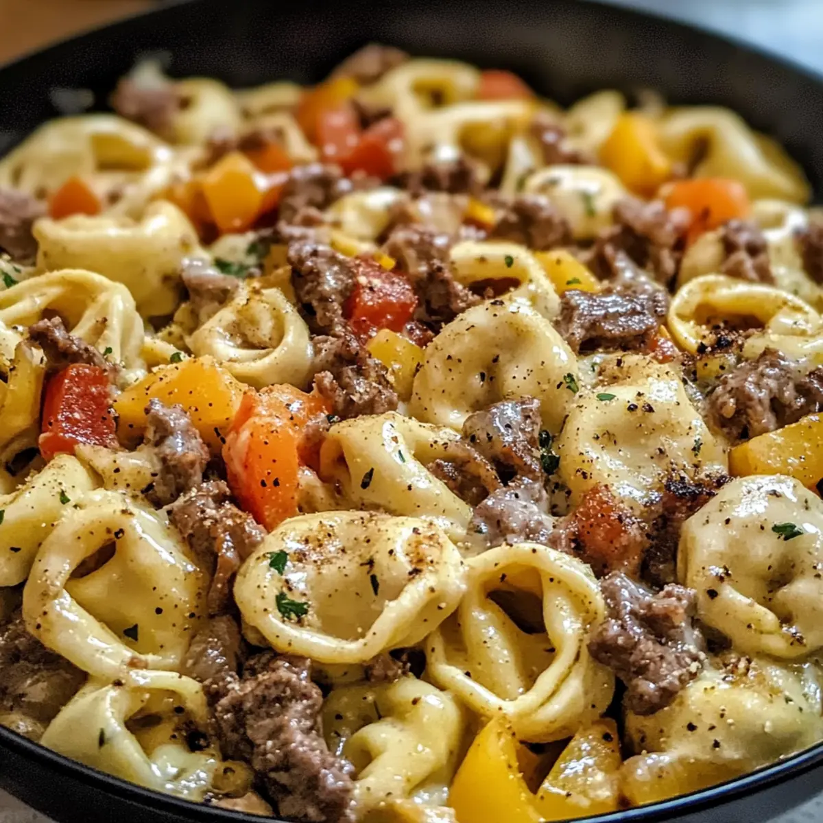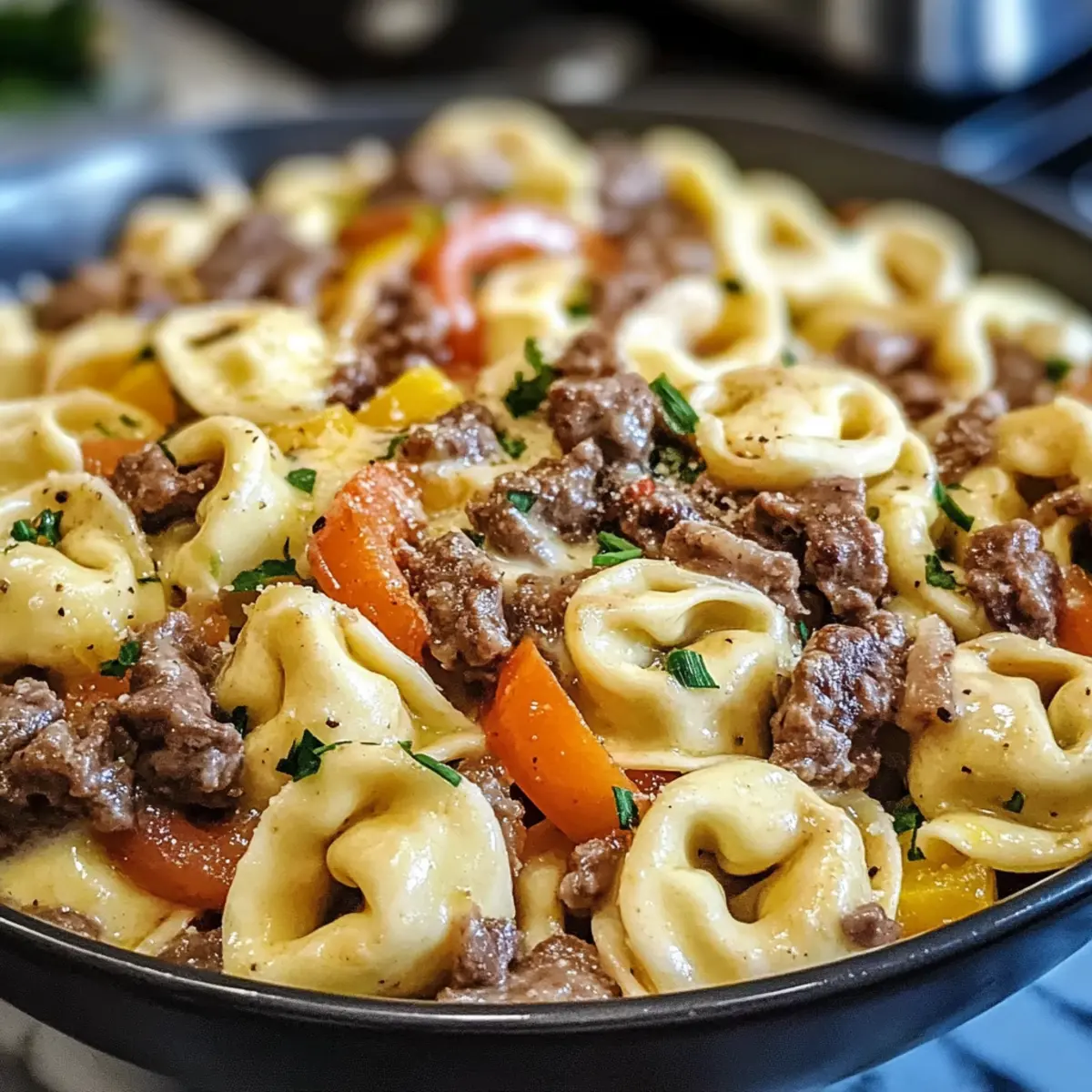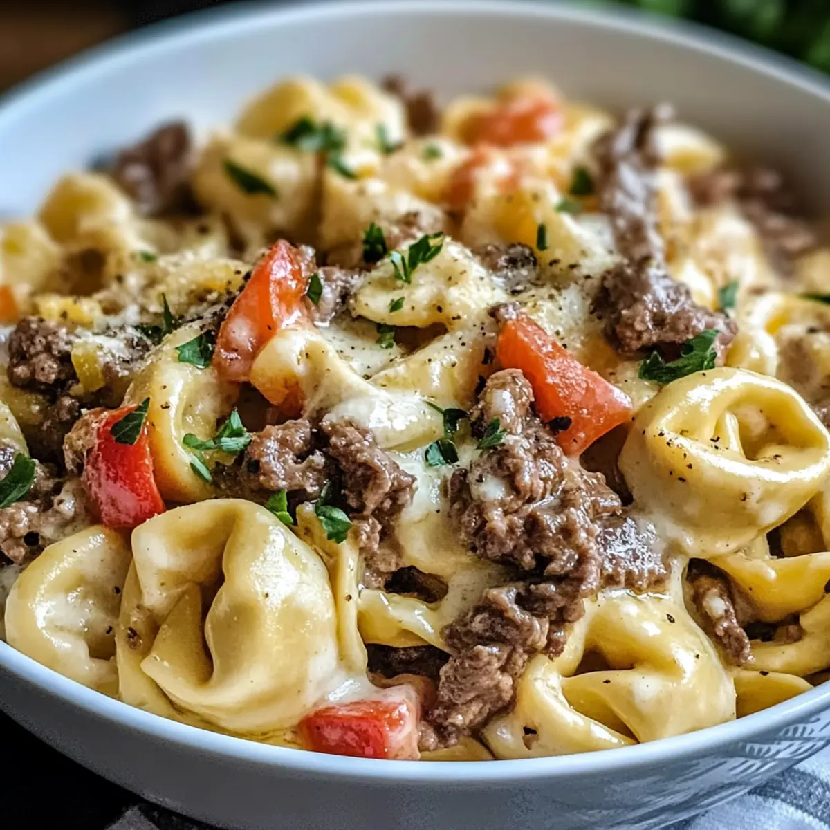 Wusstest du, dass du die berühmten Aromen eines Philly Cheesesteaks in nur 30 Minuten in eine köstliche Pasta verwandeln kannst? Diese Philly Cheesesteak Tortellini Pasta bringt das Beste aus zwei Welten zusammen: zarte Käse-Tortellini treffen auf herzhaftes Rinderfleisch, karamellisierte Zwiebeln und knackige Paprika, alles eingehüllt in eine cremige Käsesauce. Dieses Rezept ist nicht nur ein schneller Genuss für hektische Wochentage, sondern auch eine großartige Möglichkeit, das Abendessen für die Familie aufzupeppen. Es lässt sich mühelos anpassen, sodass jeder Schöpfer in der Küche seinen persönlichen Twist hinzufügen kann. Bist du bereit, deine nächsten Kochabenteuer zu entdecken? Warum wird dir dieses Rezept gefallen? Einfache Zubereitung: Mit nur 30 Minuten Aufwand hast du ein schmackhaftes Gericht auf dem Tisch, perfekt für hektische Wochentage. Reiche Aromen: Die Kombination aus zarten Tortellini, herzhaftem Rinderfleisch und süßen, karamellisierten Zwiebeln sorgt für einen überwältigenden Geschmack, der jeden begeistert. Vielseitigkeit: Egal, ob du vegetarisch kochen möchtest oder andere Zutaten hinzufügen willst, wie bei unseren beliebten Quark Wraps Rezept, die Möglichkeiten sind endlos! Komfortfood par excellence: Lass dich von dieser Fusion aus Klassikern verführen und genieße ein Gericht, das in jedem Familienessen glänzt. Perfekte Textur: Der cremige, käsige Belag umhüllt die Tortellini und sorgt für ein Gefühl, dass man sich nach einem langen Tag wünscht. Philly Cheesesteak Tortellini Pasta Zutaten Für die Tortellini • Käse-Tortellini – Die Basis des Gerichts, die eine zarte, komfortable Textur bietet. Du kannst jede andere gefüllte Pasta nach Wahl verwenden. Für die Füllung • Rinderhackfleisch – Fügt herzhaften Geschmack und Substanz hinzu. Auch Rindersteak ist eine gute Alternative. • Zwiebeln – Sie verleihen beim Karamellisieren Süße und Geschmack. Gelbe oder rote Zwiebeln sind am besten, aber Schalotten funktionieren auch gut. • Paprika – Sorgt für Frische und Farbe. Jede Farbe von Paprika ist in Ordnung; Zucchini kann ebenfalls für eine Variation verwendet werden. Für die Sauce • Sahne – Kreiert die cremige Sauce. Für eine milchfreie Option kannst du auch Halbfett oder pflanzliche Sahne nutzen. • Cheddar-Käse – Liefert den käsigen Geschmack und die Reichhaltigkeit. Alternativ kannst du auch schmelzenden Käse wie Provolone oder Mozzarella verwenden. Würzungen • Knoblauchpulver – Verstärkt den Gesamtgeschmack; achte darauf, die Menge nach deinem Geschmack anzupassen. • Zwiebelpulver – Ergänzt die Süße der Zwiebeln; passend für deine Vorlieben einsetzen. • Salz und Pfeffer – Würze nach Belieben; sie sind unverzichtbare Grundwürzungen, um das Gericht abzurunden. Mit diesen Zutaten zauberst du im Handumdrehen eine köstliche Philly Cheesesteak Tortellini Pasta, die jeden überzeugen wird! Schritt-für-Schritt-Anleitung für Philly Cheesesteak Tortellini Pasta Schritt 1: Tortellini kochen Koche die Käse-Tortellini gemäß den Anweisungen auf der Verpackung in einem großen Topf mit kochendem, gesalzenem Wasser. Das dauert normalerweise etwa 3-5 Minuten. Sobald die Tortellini al dente sind, lass sie in ein Sieb abtropfen und stelle sie beiseite, während du die anderen Zutaten vorbereitest. Schritt 2: Rinderhackfleisch anbraten Erhitze eine große Pfanne bei mittlerer Hitze und gib das Rinderhackfleisch hinein. Brate es 5-7 Minuten lang an, bis es gleichmäßig gebräunt und durchgegart ist. Achte darauf, dass du das Fleisch mit einem Holzlöffel zerkleinerst. Nach dem Braten das überschüssige Fett abgießen und das Fleisch warm halten. Schritt 3: Zwiebeln und Paprika hinzufügen Füge nun die geschnittenen Zwiebeln und Paprika in die Pfanne mit dem Rinderhackfleisch hinzu. Koche sie unter gelegentlichem Rühren 4-5 Minuten lang, bis die Zwiebeln weich und leicht karamellisiert sind. Diese köstlichen Aromen verleihen der Philly Cheesesteak Tortellini Pasta einen hervorragenden Geschmack. Schritt 4: Sauce zubereiten Reduziere die Hitze etwas und füge die Sahne und den Cheddar-Käse in die Pfanne hinzu. Rühre die Mischung stetig 3-4 Minuten lang, bis der Käse geschmolzen und die Sauce schön cremig ist. Achte darauf, dass die Sauce nicht zu stark kocht, um ein Anbrennen zu vermeiden. Schritt 5: Tortellini kombinieren Gib die abgetropften Tortellini in die Pfanne mit der cremigen Sauce und dem Rinderhackfleisch. Rühre alles gut um, damit die Tortellini gleichmäßig mit der Sauce bedeckt sind. Lass die Mischung 1-2 Minuten bei niedriger Hitze köcheln, damit sich die Aromen verbinden können. Schritt 6: Anrichten und servieren Serviere die Philly Cheesesteak Tortellini Pasta sofort in tiefen Tellern. Du kannst sie nach Belieben mit frischer Petersilie oder etwas roten Pfefferflocken garnieren. Diese üppige Kombination wird nicht nur deine Familie, sondern auch jeden Gast begeistern! Was passt zu Philly Cheesesteak Tortellini Pasta? Diese köstliche Kombination wird dein Herz höher schlagen lassen, während du an einem vollwertigen Mahl feilst. Buttery Garlic Bread: Perfekt um die sämige Sauce aufzusaugen, bringt es eine herrliche Knoblauch- und Butternote. Frischer Salat: Ein leichter, knackiger Salat mit frischen Zutaten balanciert die Cremigkeit und fügt Frische hinzu. Gedünstetes Gemüse: Brokkoli oder grüne Bohnen ergänzen das Gericht mit einer knackigen Textur und gesunden Nährstoffen. Rotwein: Ein Glas vollmundiger Rotwein rundet die Aromen ab und bringt eine festliche Note zum Abendessen. Zitronensorbet: Eine erfrischende Nachspeise, die hilft, den Gaumen zu reinigen und einen süßen Abschluss bietet. Karamellisierte Äpfel: Diese süße Leckerei bringt eine angenehme Wärme und rundet dein Menü ab. Knoblauch-Kräuter-Quark: Diese cremige Sauce kann als Dip für das Brot verwendet werden und harmoniert schön mit den Aromen. Olivenöl-Pasta: Ein einfaches zusä