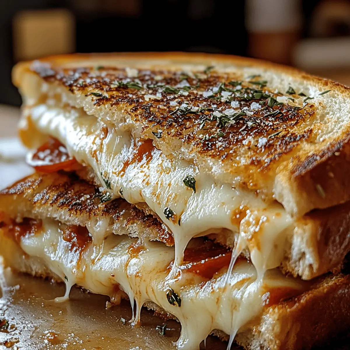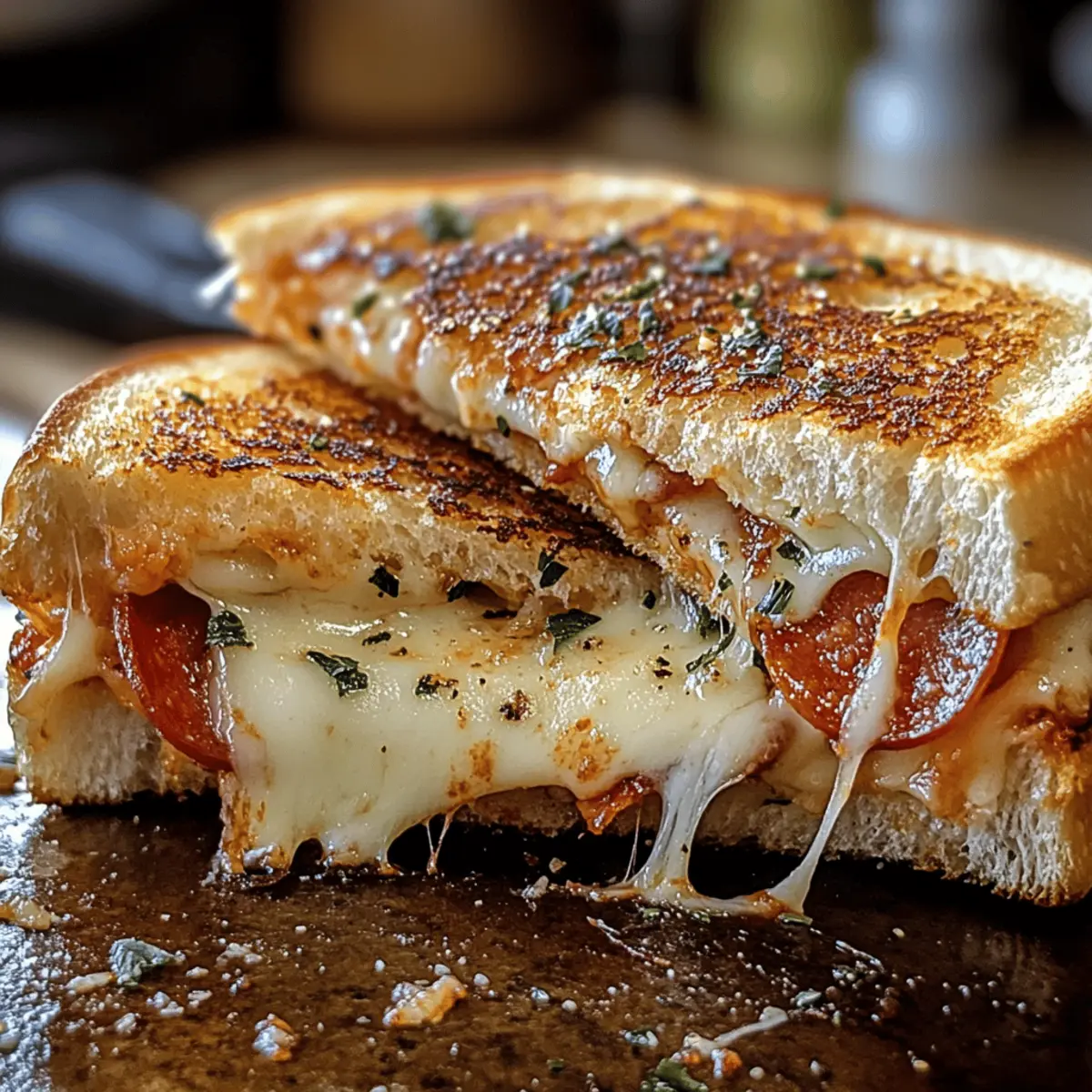 Es gibt Momente, in denen man nach etwas Greifbarem sucht, das sowohl Freude als auch Komfort bietet – und genau hier kommt mein Rezept für Pizza Grilled Cheese ins Spiel! Diese köstliche Kombination aus knusprigem, buttrigem Brot, das mit geschmolzenem Käse und würzigem Pepperoni gefüllt ist, bringt die heiß geliebten Aromen von Pizza in Ihr Mittagessen. Es ist nicht nur schnell zubereitet, sondern auch perfekt für jede Gelegenheit, sei es als Snack oder als sättigende Mahlzeit. Ein herzhaftes und einfaches Gericht, das jeden Käseliebhaber glücklich macht! Neugierig, wie Sie diese Leckerei in Ihrer eigenen Küche zaubern können? Warum werden Sie dieses Rezept lieben? Einfachheit: Der gesamte Prozess ist unkompliziert und erfordert nur grundlegende Kochfähigkeiten. In wenigen Minuten genießen Sie ein köstliches Gericht. Herzhafter Geschmack: Die Kombination aus geschmolzenem Käse und würzigem Pepperoni sorgt für ein Geschmackserlebnis, das an Ihre Lieblingspizza erinnert. Vielseitigkeit: Sie können die Zutaten nach Ihrem Belieben variieren – probieren Sie zum Beispiel verschiedene Käsesorten oder Gemüse wie Paprika! Zeitersparnis: Perfekt für geschäftige Tage, dieses Rezept kann genau in der Zeit zubereitet werden, die man braucht, um einen Snack zu genießen. Möchten Sie noch mehr leckere Rezepte ausprobieren? Schauen Sie sich unser Rezept für Mac Cheese Käse an oder vielleicht eine schnelle Air Fryer Pizza! Der Ausgang für Pizza Grilled Cheese Entdecken Sie die perfekten Zutaten für Ihren Pizza Grilled Cheese! Für das Brot Sourdough oder italienisches Brot – Diese Brotsorten bieten die nötige Stabilität für das Grillen und sorgen für eine knusprige Textur. Für den Käse Mozzarella – Dieser Käse schmilzt wunderbar und verleiht den authentischen Pizza-Geschmack. Für das Fleisch Pepperoni – Verleiht dem Sandwich einen herzhaften und würzigen Geschmack; ersetzen Sie es mit Gemüse für eine vegetarische Variante. Für die aromatische Note Frischer Knoblauch – Dieser sorgt für ein tolles Aroma und verstärkt den Geschmack. Für die Gewürze Italienische Gewürzmischung – Frische Kräuter bringen mehr Tiefe; getrocknete Gewürze sind jedoch ein guter Ersatz. Für die Zubereitung Butter – Sie sorgt beim Grillen für eine goldene, knusprige Kruste; verwenden Sie Olivenöl für eine leichtere Variante. Mit diesen Zutaten sind Sie bereit, den perfekten Pizza Grilled Cheese zu kreieren und den köstlichen Ausgang Ihrer Rezeptreise zu genießen! Schritt-für-Schritt-Anleitung für Pizza Grilled Cheese Step 1: Vorbereitung Verteilen Sie Butter, die mit frischem Knoblauch und italienischer Gewürzmischung vermischt ist, auf einer Seite jedes Brotes. Stellen Sie sicher, dass der Geschmack gleichmäßig verteilt ist, um ein aromatisches Grill-Erlebnis zu gewährleisten. Dies verleiht Ihrer Pizza Grilled Cheese einen köstlichen Start. Step 2: Zusammenstellen Legen Sie eine Scheibe Brot mit der gebutterten Seite nach unten in eine erhitzte Pfanne und fügen Sie eine großzügige Menge Mozzarella und einige Scheiben Pepperoni hinzu. Decken Sie die Füllung mit einer weiteren Brotscheibe, ebenfalls mit der gebutterten Seite nach außen, ab. Drücken Sie leicht an, um das Sandwich zu stabilisieren. Step 3: Grillen Erhitzen Sie die Pfanne auf mittlerer bis niedriger Stufe, um eine gleichmäßige Erwärmung zu gewährleisten. Grillen Sie das Sandwich etwa 3-4 Minuten lang, bis die Unterseite goldbraun ist und der Käse zu schmelzen beginnt. Achten Sie darauf, dass der Käse nicht verbrennt, während das Brot knusprig wird. Step 4: Wenden Wenn die erste Seite schön goldbraun ist, wenden Sie das Sandwich vorsichtig mit einem Spatel. Lassen Sie es weitere 3-4 Minuten grillen, bis auch die andere Seite knusprig ist und der Käse vollständig geschmolzen wird. Ein Deckel über der Pfanne kann zusätzlich helfen, die Hitze zu speichern und den Käse schneller zu schmelzen. Step 5: Servieren Nehmen Sie das Sandwich aus der Pfanne und schneiden Sie es in zwei Hälften. Servieren Sie Ihre Pizza Grilled Cheese heiß, idealerweise mit einer kleinen Schale Pizza-Sauce zum Dippen. Genießen Sie den köstlichen Ausgang dieser herzhaften Kreation mit Freunden oder Familie! Expertentipps für Pizza Grilled Cheese Skillet Vorbereitung: Achten Sie darauf, dass die Pfanne vor dem Grillen gut vorgeheizt ist, um eine gleichmäßige, goldene Kruste zu erzielen. Käse Schmelzen: Um sicherzustellen, dass der Käse perfekt schmilzt, können Sie während der letzten Minuten einen Deckel auf die Pfanne legen. Hitze Regulieren: Vermeiden Sie hohe Hitze, da dies das Brot verbrennen kann, bevor der Käse vollständig geschmolzen ist. Zutaten Variieren: Experimentieren Sie mit verschiedenen Käsesorten oder Gemüse, um Ihre eigene Version des Pizza Grilled Cheese zu kreieren. Lagerungstipps für Pizza Grilled Cheese Raumtemperatur: Lassen Sie das Sandwich nicht länger als 2 Stunden bei Raumtemperatur stehen, um die Frische und Qualität zu erhalten. Kühlschrank: Bewahren Sie übrig gebliebene Pizza Grilled Cheese in einem luftdichten Behälter im Kühlschrank auf, wo sie bis zu 2 Tage frisch bleibt. Gefrierschrank: Ungegrillte Sandwiches können bis zu 1 Monat eingefroren werden. Wickeln Sie sie gut in Plastikfolie ein und verwenden Sie sie später für ein schnelles Mittagessen. Wiederaufwärmen: Um die perfekte Knusprigkeit wiederherzustellen, erwärmen Sie das Sandwich in einer Pfanne auf mittlerer Hitze für einige Minuten, bis der Käse schmilzt und das Brot goldbraun ist. Variationen & Substitutionen Egal, ob Sie etwas Neues ausprobieren oder spezielle Vorlieben berücksichtigen möchten, lassen Sie Ihrer Kreativität freien Lauf mit diesen köstlichen Ideen! Vegetarisch: Ersetzen Sie das Pepperoni durch gebratene Paprika, Zucchini oder Pilze für ein geschmackvolles, fleischfreies Sandwich. Diese Komponenten bringen frische Aromen und zusätzliche Texturen. Schärfer: Fügen 