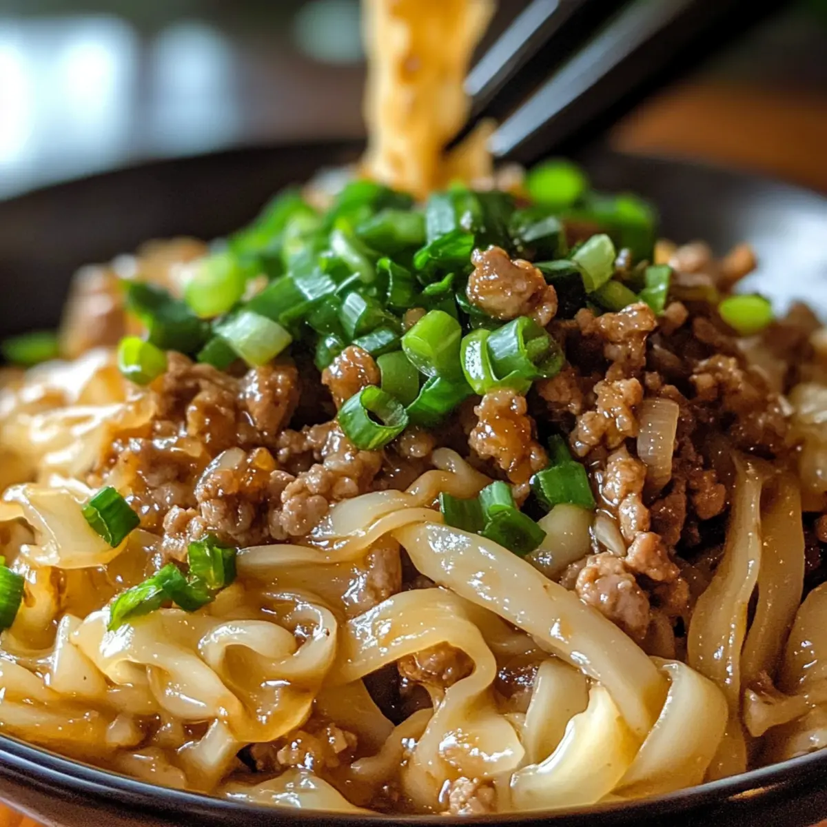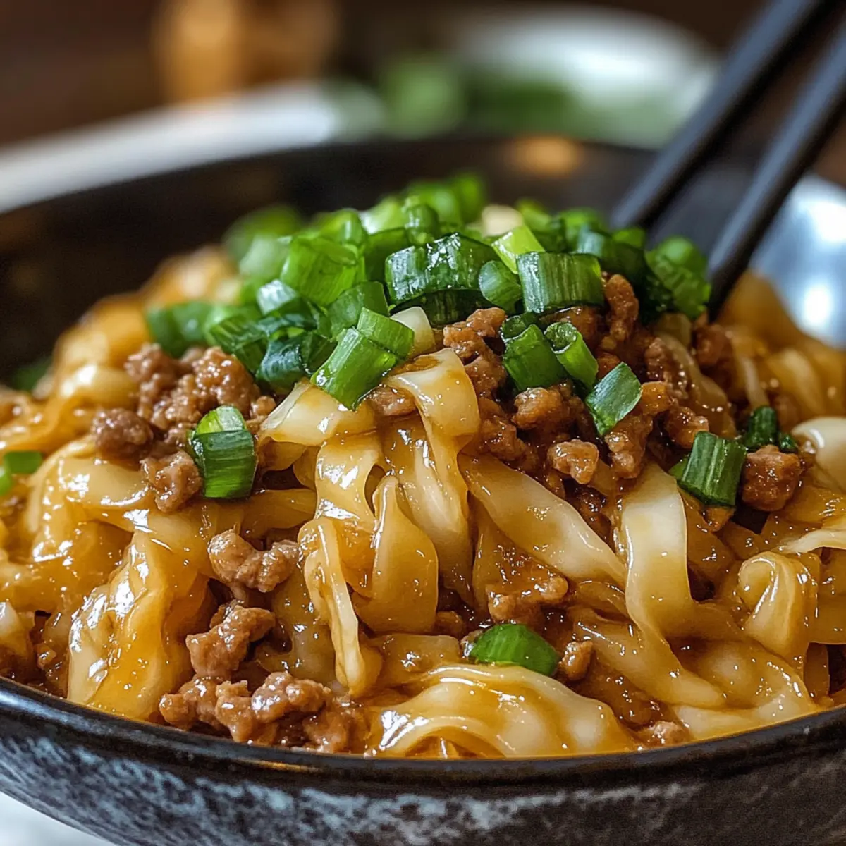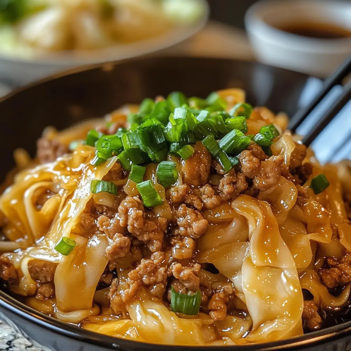 Die Potsticker-Nudelschüssel vereint zarte LoMein-Nudeln, saftiges Schweinehack und knackiges Gemüse für ein unvergessliches Geschmackserlebnis.