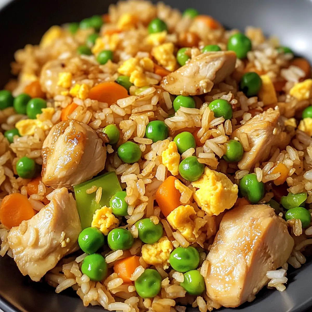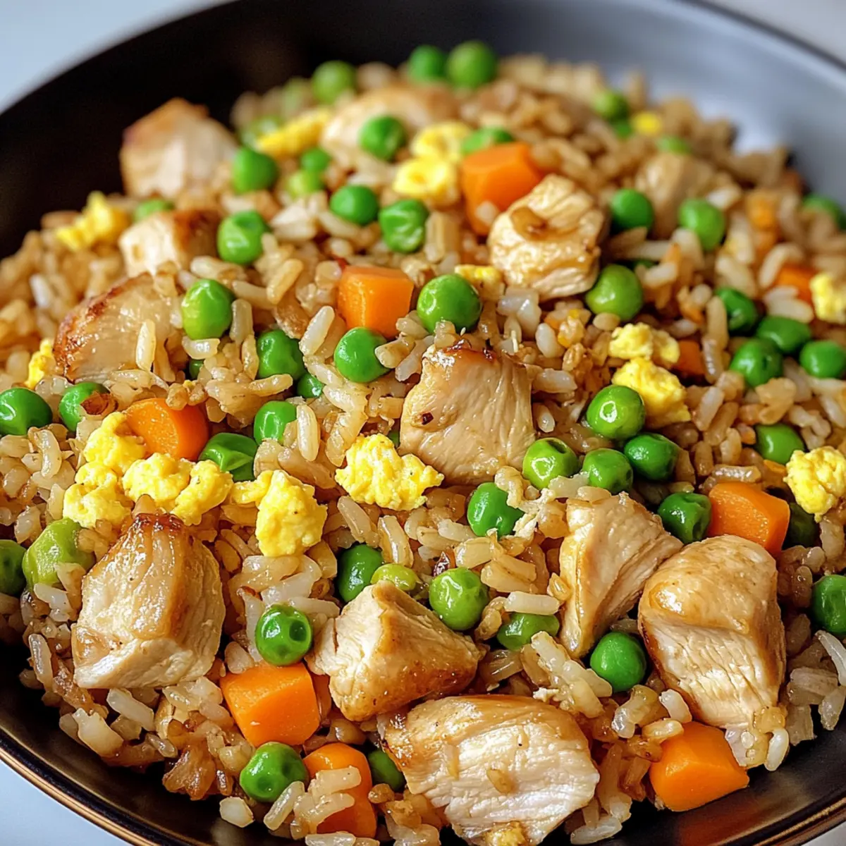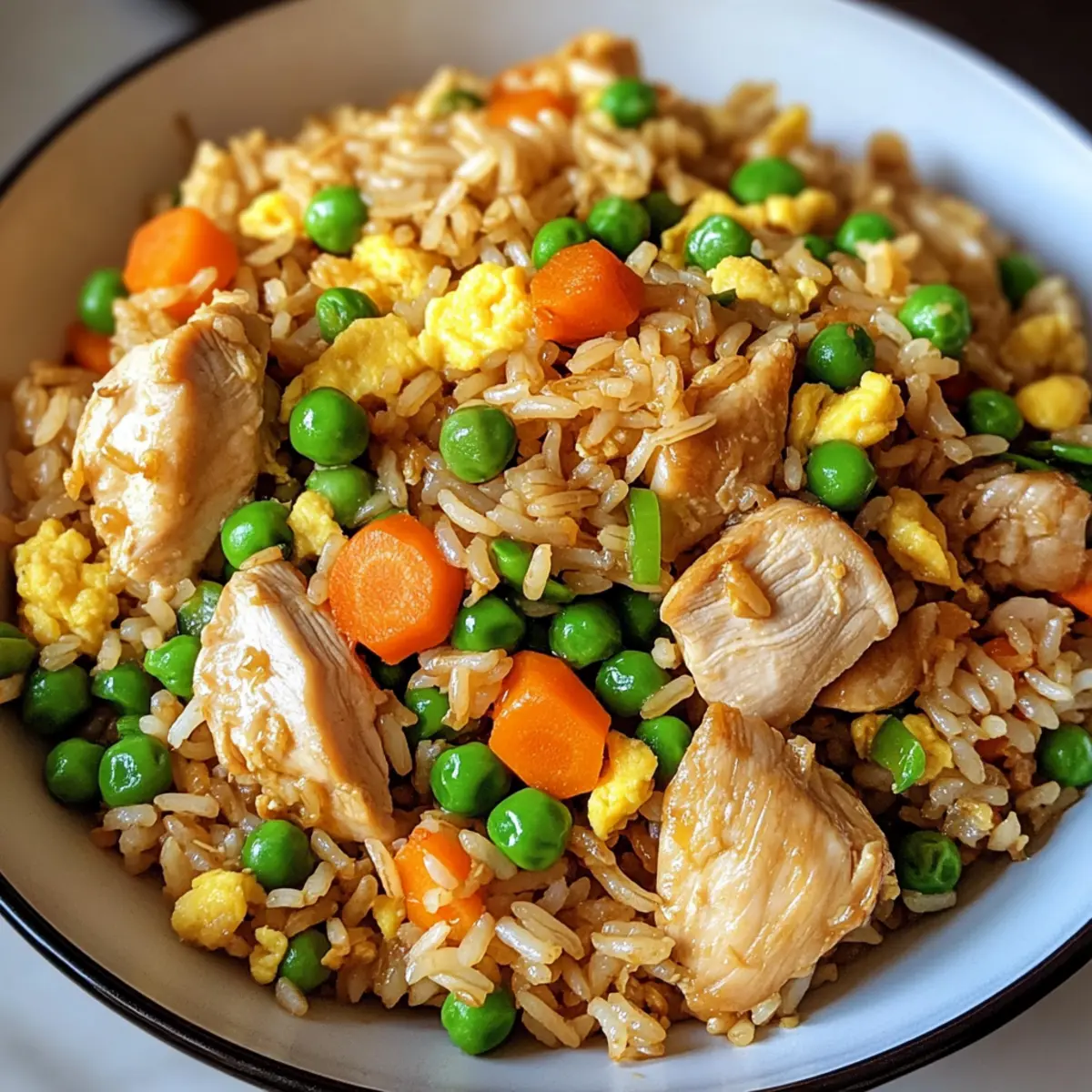 Es war einmal an einem hektischen Wochentag, als ich verzweifelt nach einer gesunden, aber dennoch schmackhaften Mahlzeit suchte. Genau in diesem Moment entdeckte ich das Rezept für den proteinreichen gebratenen Reis mit Hähnchen, das meine Küche in einen Ort des Glücks verwandelte. Mit zarten Hähnchenstücken, nussigem Vollkornreis und bunten Gemüsen zaubert dieses Rezept in weniger als 30 Minuten ein sättigendes Abendessen auf den Tisch. Und das Beste daran? Es ist nicht nur einfach zuzubereiten, sondern auch ein wahres Fest für die ganze Familie, bei nur rund 450 Kalorien pro Portion. Bist du bereit, das Rezept auszuprobieren und deine liebsten Erinnerungen an den Chinesischen Abend mit einem gesunden Touch neu zu beleben? Warum ist dieser gebratene Reis einzigartig? Einfachheit, das Rezept ist denkbar einfach und erfordert nur grundlegende Kochkünste, sodass auch Anfänger keine Schwierigkeiten haben werden. Gesund und nahrhaft, jeder Bissen ist vollgepackt mit Protein und Ballaststoffen, ideal für eine ausgewogene Ernährung. Schnell zubereitet, in weniger als 30 Minuten servierfertig, perfekt für hektische Abende. Vielfältige Anpassungsmöglichkeiten, du kannst noch mehr Gemüse hinzufügen oder das Hähnchen durch Tofu ersetzen. Und schließlich, Familienfreundlich: sowohl Kinder als auch Erwachsene werden diese köstliche Verbindung von Aromen lieben! Zusätzlich könntest du das Rezept mit einem erfrischenden Avocado Thunfisch Salat kombinieren, um das Abendessen abzurunden. Zutaten für proteinreichen gebratenen Reis mit Hähnchen • Diese Zutaten sorgen dafür, dass dein Gericht köstlich und nahrhaft wird! Für den Reis Gemüseöl – Verhindert das Anhaften; kannst auch Raps- oder Sonnenblumenöl verwenden. Gekochter Vollkornreis – Grundlage des Gerichts, bietet eine nussige Textur; achte darauf, dass der Reis gut gekühlt ist, um Klumpen zu vermeiden. Für das Hähnchen Hähnchenbrustfilets ohne Haut – Magerer Proteinlieferant; in kleine Stücke geschnitten, garen sie schnell und intensivieren den Geschmack. Salz und Pfeffer – Grundgewürze zur Geschmacksanpassung; nach Belieben variieren. Für das Gemüse Eier – Fügen Protein und eine seidige Textur hinzu; du kannst auch Eiklar verwenden, wenn du es leichter magst. Erbsen und Karotten (gefroren) – Bieten Farbe und Nährstoffe; frisches Gemüse kann ebenfalls verwendet werden, die Garzeiten können jedoch variieren. Knoblauch – Aromatische Geschmacksnote; etwa 2 zerdrückte oder fein gehackte Knoblauchzehen. Zwiebel – Süße und Knusprigkeit; gelbe oder weiße Zwiebeln verwenden, Schalotten sorgen für eine mildere Note. Grüne Zwiebeln – Frische und Knusprigkeit; Scallions sind eine gute Alternative. Für die Sauce Sojasauce (mit reduziertem Natrium) – Verleiht herzhafte Geschmacksnuancen; als glutenfreie Option eignet sich Kokosaminos. Austernsauce – Für einen umami-reichen Geschmack; ersetze sie bei Bedarf durch eine Mischung aus Sojasauce und Zucker. Sesamöl – Intensiviert das Aroma; eine kleine Menge verwandelt das Gericht. Zur Garnitur Optional: Sesamsamen – Fügen zusätzliche Textur und Nussigkeit hinzu. Mit diesen Zutaten zauberst du im Handumdrehen einen proteinreichen gebratenen Reis mit Hähnchen, der nicht nur lecker ist, sondern auch viele Möglichkeiten zur Anpassung bietet! Schritt-für-Schritt-Anleitung für proteinreichen gebratenen Reis mit Hähnchen Step 1: Hähnchen anbraten Erhitze eine große Pfanne oder einen Wok bei mittlerer bis hoher Hitze und gib 1 Esslöffel Gemüseöl hinein. Wenn das Öl heiß ist, füge die gewürfelten Hähnchenbrustfilets hinzu. Brate sie 5–6 Minuten lang an, bis sie goldbraun und durchgegart sind. Achte darauf, die Stücke gelegentlich umzuwenden, damit sie gleichmäßig bräunen. Sobald sie fertig sind, nimm das Hähnchen aus der Pfanne und stelle es beiseite. Step 2: Zwiebel und Knoblauch sautieren In die gleiche Pfanne gibst du bei Bedarf etwas mehr Öl und fügst die gewürfelte Zwiebel und den gehackten Knoblauch hinzu. Sauté bei mittlerer Hitze für 2–3 Minuten, bis die Zwiebel weich und glasig ist. Achte darauf, dass der Knoblauch nicht anbrennt, da er schnell bitter wird. Dies wird die Basis für den vollen Geschmack des proteinreichen gebratenen Reises mit Hähnchen bilden. Step 3: Eier rühren Schiebe die Zwiebel-Knoblauch-Mischung zur Seite der Pfanne, um Platz für die Eier zu schaffen. Gieße die verquirlten Eier in den freigelassenen Bereich und lasse sie kurz stocken, etwa 1–2 Minuten. Rühre die Eier vorsichtig um, bis sie fest sind und eine seidige Textur erreicht haben. Mische die Eier anschließend gründlich mit der Zwiebel und dem Knoblauch. Step 4: Reis hinzufügen Jetzt kannst du den gekühlten Vollkornreis in die Pfanne geben. Verwende einen Holzlöffel, um Klumpen aufzulösen und den Reis gut durchmischen. Bei mittlerer Hitze für etwa 3 Minuten anbraten. So erhält der Reis die perfekte Konsistenz und verbindet sich gut mit den anderen Zutaten des proteinreichen gebratenen Reises mit Hähnchen. Step 5: Gemüse und Saucen hinzufügen Füge die gefrorenen Erbsen und Karotten sowie das zuvor gebratene Hähnchen wieder hinzu. Gieße die Sojasauce, die Austernsauce und das Sesamöl darüber. Rühre alles gut um und brate das Gericht weitere 2–3 Minuten, bis alles gut erhitzt ist und die Aromen sich vermischen. Achte darauf, dass das Gemüse noch etwas Biss hat. Step 6: Garnieren und Servieren Nimm die Pfanne vom Herd und falte die geschnittenen grünen Zwiebeln unter den fertigen gebratenen Reis. Dies verleiht dem Gericht Frische und Knusprigkeit. Serviere den proteinreichen gebratenen Reis mit Hähnchen warm auf Tellern und garniere ihn nach Belieben mit Sesamsamen für zusätzlichen Crunch. Expertentipps für proteinreichen gebratenen Reis mit Hähnchen Richtiges Öl wählen: Verwende hochwertiges Gemüseöl, um ein Ankleben der Zutaten zu vermeiden. Alternativen wie Raps- oder Sonnenblumenöl sind ebe