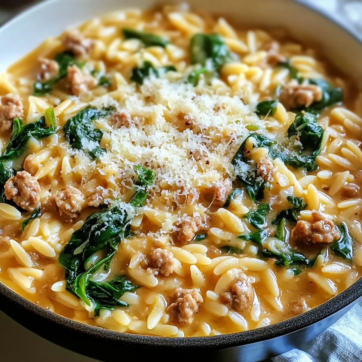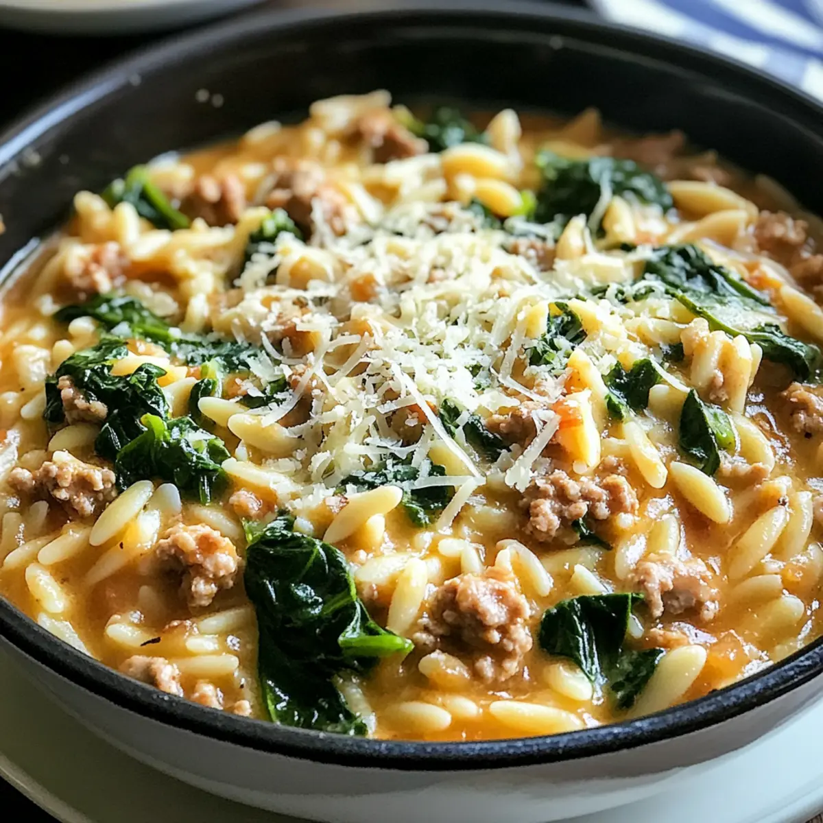 Es war einer dieser stressigen Abende, an denen ich einfach keine Lust hatte, lange in der Küche zu stehen. Ich wusste, dass ein schnelles Abendessen die Lösung sein musste, aber ich wollte trotzdem etwas, das meine Familie begeistern würde. So entstand meine Liebe zu Putenhackfleisch Orzo, einem wunderbaren One-Pot-Gericht, das in nur 30 Minuten zubereitet ist. Diese leckere Kombination aus zartem Orzo und herzhaftem Putenhackfleisch macht nicht nur den Gaumen glücklich, sondern auch das Gewissen—es ist eine gesunde Wahl, die gleichzeitig schnell und einfach ist. Ob für hektische Wochentage oder als Teil deiner Meal-Prep-Routine, dieses Rezept ist ein echter Familienliebling. Bist du bereit, deinen nächsten Dinner-Hero zu entdecken? Warum wird dieses Rezept dein Favorit? Schnelligkeit: Dieses Putenhackfleisch Orzo Rezept ist in nur 30 Minuten zubereitet. Perfekt für stressige Abende! Gesund: Mit magerem Putenhackfleisch und frischem Gemüse ist es eine nahrhafte Wahl für die ganze Familie. Ein Topf: Alles wird in einer einzigen Pfanne gekocht, was die Reinigung zum Kinderspiel macht. Vielseitig: Du kannst das Rezept leicht anpassen, egal ob du eine mediterrane Variante mit Feta bevorzugst oder eine cremige Version ausprobieren möchtest! Familienfreundlich: Das köstliche Aroma und die unkomplizierte Zubereitung machen es zum perfekten Gericht für jeden. Einfach: Die Zutaten sind leicht erhältlich, sodass du immer ein schnelles, leckeres Abendessen zaubern kannst! Putenhackfleisch Orzo Zutaten • Entdecke, wie einfach es ist, dieses köstliche Rezept zuzubereiten! Für den Hauptbestandteil Putenhackfleisch – der Hauptbestandteil mit viel Protein; auch durch Hähnchenhack oder pflanzliche Alternativen austauschbar. Orzo-Nudeln – sorgen für eine angenehme Textur; du kannst sie auch durch glutenfreie Orzo oder kleine Pasta ersetzen. Hühnerbrühe – gibt dem Gericht Geschmack und hilft, die Orzo zu garen; für eine vegetarische Variante einfach Gemüsebrühe verwenden. Zwiebel – die aromatische Basis für viel Geschmack; in kleine Würfel schneiden, um eine gleichmäßige Garung zu gewährleisten. Knoblauch – sorgt für zusätzlichen Aroma; fein hacken, um die ätherischen Öle freizusetzen. Tomatenwürfel – bringen Geschmack und Feuchtigkeit; frisch oder aus der Dose verwenden, je nach Verfügbarkeit. Spinat – gibt eine schöne Farbe und ist nährstoffreich; frischer Spinat wird empfohlen. Italienische Gewürzmischung – verleiht den traditionellen italienischen Geschmack; du kannst die Mischung nach Lust und Laune anpassen oder durch andere getrocknete Kräuter ersetzen. Salz – verstärkt die Aromen; nach Geschmack anpassen. Schwarzer Pfeffer – sorgt für eine milde Schärfe; frisch gemahlen für den besten Geschmack. Olivenöl – ideal zum Anbraten; sorgt für zusätzlichen Reichtum und unterstützt beim Kochen. Für das Topping Geriebener Parmesan – optional für zusätzliche Geschmacksnuancen und Cremigkeit beim Servieren. Frisches Basilikum oder Petersilie – zum Garnieren und für mehr Frische im Gericht. Genieße die Kombination aus zartem Putenhackfleisch und Orzo in diesem schnellen und gesunden Gericht! Schritt-für-Schritt-Anleitung für Putenhackfleisch Orzo Step 1: Öl erhitzen Erhitze in einer großen Pfanne das Olivenöl bei mittlerer Hitze. Warte, bis das Öl heiß und leicht glänzend ist, was etwa 1–2 Minuten dauern sollte. Dies ist wichtig, um sicherzustellen, dass die Zwiebel beim Anbraten schnell weich wird und intensiv aromatisch ist. Step 2: Zwiebel und Knoblauch anbraten Gib die gewürfelte Zwiebel in die Pfanne und brate sie etwa 3–4 Minuten an, bis sie glasig wird. Füge den fein gehackten Knoblauch hinzu und koche weiter für etwa 1 Minute, bis er duftet. Achte darauf, den Knoblauch nicht anbrennen zu lassen, damit er bitter wird. Step 3: Putenhackfleisch anbraten Füge das Putenhackfleisch in die Pfanne hinzu und brate es für 5–7 Minuten, bis es gleichmäßig goldbraun ist. Rühre dabei regelmäßig um, um eine gleichmäßige Garung zu gewährleisten. Das Putenhackfleisch sollte keine rosa Stellen mehr aufweisen und durchgehend durchgegart sein. Step 4: Tomaten und Gewürze hinzufügen Gib die gewürfelten Tomaten, die italienische Gewürzmischung, Salz und Pfeffer in die Pfanne. Lasse alles 2–3 Minuten köcheln, damit sich die Aromen gut vermischen. Beobachte, wie die Tomaten beginnen, ihre Flüssigkeit abzugeben und eine schöne Soße entsteht. Step 5: Brühe und Orzo einrühren Rühre die Hühnerbrühe und den Orzo in die Mischung ein, sodass alles gut verteilt ist. Achte darauf, dass der Orzo gleichmäßig in der Flüssigkeit schwimmt. Dies ist der Moment, in dem sich das Gericht vermehren und die Aromen miteinander verbinden. Step 6: Kochen und köcheln lassen Erhöhe die Hitze und bringe die Mischung zum Kochen. Sobald der Inhalt sprudelt, reduziere die Hitze auf niedrig, decke die Pfanne ab und lasse es für etwa 10–12 Minuten köcheln. Achte darauf, hin und wieder zu rühren, bis der Orzo zart und die meiste Flüssigkeit absorbiert ist. Step 7: Spinat einrühren Füge den frischen Spinat in die Pfanne hinzu und rühre alles gut um. Lass den Spinat für etwa 1–2 Minuten kochen, bis er zusammengefallen ist und eine leuchtende grüne Farbe hat. Dies verleiht dem Putenhackfleisch Orzo nicht nur Farbe, sondern auch wertvolle Nährstoffe. Step 8: Abschmecken und anpassen Probiere das Putenhackfleisch Orzo und passe die Gewürze nach Geschmack an. Füge bei Bedarf mehr Salz, Pfeffer oder eine Prise Chili hinzu, um dem Gericht mehr Würze zu verleihen. Eine geschmackliche Anpassung ist der Schlüssel zu einem perfekt abgestimmten Gericht, das die Familie begeistert. Step 9: Servieren und garnieren Nehme die Pfanne vom Herd und lasse das Gericht für ein paar Minuten ruhen, bevor du es servierst. Garniere das Putenhackfleisch Orzo nach Belieben mit geriebenem Parmesan und frisch gehacktem Basilikum oder Petersilie