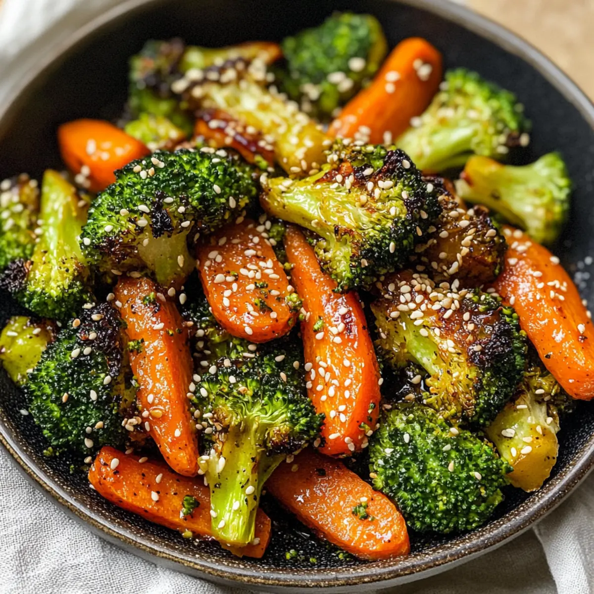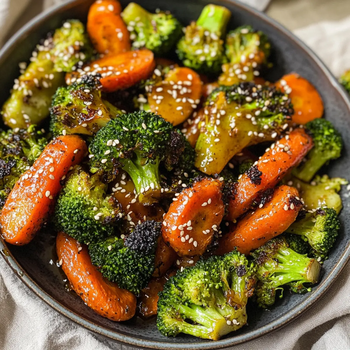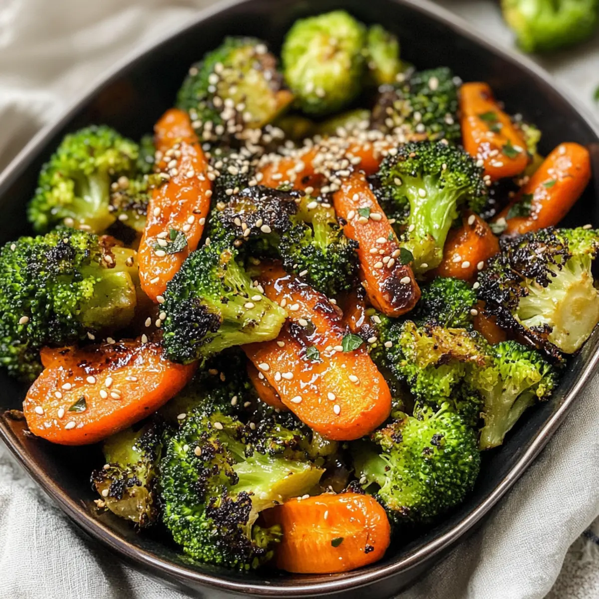 Es ist immer wieder faszinierend, wie eine Handvoll einfacher Zutaten in einem harmonischen Gericht zusammenkommen kann, das alle Sinne anspricht. Bei meinem Rezept für Rösti Brokkoli & Karotten mit asiatischen Aromen werden die Gemüse kinderleicht im Ofen geröstet, wobei die perfekte Balance zwischen Süße und Umami entsteht. Diese gesunde und glutenfreie Beilage ist nicht nur schnell zubereitet, sondern verwandelt auch jede Mahlzeit in ein Festmahl, das selbst die wählerischsten Esser begeistert. Die leicht karamellisierten tollen Farben auf dem Teller sind einfach unwiderstehlich – wer kann da widerstehen? Haben Sie sich jemals gefragt, wie einfach es sein kann, frisches Gemüse in ein Hauptaugenmerk auf dem Tisch zu verwandeln? Wie wird Gemüse zum Highlight der Mahlzeit? Simplicity at Its Best: Die Zubereitung dieses Rezepts ist kinderleicht und erfordert keine besonderen Kochkünste. Delicious Fusion: Die Kombination aus asiatischen Aromen wie Sojasauce und Ingwer verleiht den Gemüseklassikern eine ganz neue Dimension. Nutrient-Packed: Der Rösti Brokkoli & Karotten ist nicht nur schmackhaft, sondern auch reich an Vitaminen und Antioxidantien – ideal für eine gesunde Ernährung! Perfect for Meal Prep: Diese gesunde Beilage lässt sich leicht im Voraus zubereiten und hält sich gut im Kühlschrank, perfekt für geschäftige Wochentage. Crowd-Pleaser: Egal, ob mit Freunden oder Familie, dieses Rezept wird alle begeistern und ist eine willkommene Abwechslung zu Fast Food. Für weitere Ideen, wie frisches Gemüse aufregend zubereitet werden kann, schauen Sie sich auch mein Rezept für Luftfritteuse Popcorn Rezept an! Rösti Brokkoli & Karotten Zutaten • Für das Gemüse Brokkoli Röschen – Grundzutat, die für Textur und Nährstoffe sorgt; Cauliflower kann als Alternative verwendet werden. Karotten – Steuern die Süße und Farbe des Gerichts bei; ggf. durch Pastinaken ersetzen. Knoblauch – Verstärkt den Geschmack; kann durch Knoblauchpulver für mehr Bequemlichkeit ersetzt werden. • Für das Dressing Avocadoöl (oder Olivenöl) – Senkt die Kochtemperatur für gleichmäßiges Rösten; jedes neutrale Öl ist geeignet. Honig – Fügt Süße hinzu; für eine vegane Option kann Ahornsirup genutzt werden. Sojasauce (mit wenig Natrium/Tamari) – Bringt Umami-Geschmack ein; Tamari ist ideal für glutenfreie Variante. Reisessig – Sorgt für eine angenehme Säure; kann mit Apfelessig substituiert werden. Gemahlener Ingwer – Fügt Würze hinzu; frischer Ingwer kann gerieben genutzt werden. Toasted Sesamöl – Verstärkt das asiatische Flair der Rezeptur; bei Bedarf auch normales Sesamöl verwenden. Schwarzer Pfeffer – Gibt Würze; kann bei Empfindlichkeit weggelassen werden. • Optionales Garnieren Sesamsamen – Für zusätzlichen Crunch und Optik. Zerhackte Petersilie – Füge Frische und Farbe hinzu. Genießen Sie diesen herrlichen Rösti Brokkoli & Karotten, der nie aus der Mode kommt! Schritt-für-Schritt-Anleitungen für Rösti Brokkoli & Karotten mit asiatischem Flair Step 1: Ofen vorheizen Heizen Sie den Ofen auf 200 °C vor und legen Sie ein großes Backblech mit Backpapier aus. Dieser Schritt ist wichtig, um die Rösti Brokkoli & Karotten gleichmäßig zu rösten und ein Ankleben zu verhindern. Das Backpapier sorgt dafür, dass Ihre leckeren Gemüse weniger kleben bleiben und am Ende leicht herausgenommen werden können. Step 2: Gemüse vorbereiten In einer großen Schüssel die Brokkoli Röschen, die in Scheiben geschnittenen Karotten und den gehackten Knoblauch zusammengeben. Nach dem Zusammenstellen der Zutaten sehen Sie die schönen Farben, die in der Schüssel leuchten. Dies gibt Ihnen einen ersten Hinweis, dass Ihr Gericht köstlich wird! Step 3: Dressing hinzufügen Jetzt fügen Sie das Avocadoöl, den Honig, die Sojasauce, den Reisessig, den gemahlenen Ingwer und die Hälfte des gerösteten Sesamöls in die Schüssel. Mischen Sie alles gut durch, sodass jedes Stück Gemüse gleichmäßig mit der aromatischen Mischung überzogen ist. Der Duft wird alle in der Küche anziehen! Step 4: Mischung auf das Backblech geben Verteilen Sie die vorbereitete Gemüse-Mischung gleichmäßig auf dem Backblech, wobei die Gemüse in einer einzelnen Schicht liegen sollten. Achten Sie darauf, dass die Röschen nicht überlappen, da dies das Rösten selbst behindern könnte. Eine gleichmäßige Verteilung sorgt dafür, dass der Rösti Brokkoli & Karotten schön knusprig wird. Step 5: Gemüse rösten Rösten Sie die Mischung im vorgeheizten Ofen für etwa 30 Minuten, dabei nach der Hälfte der Zeit das Gemüse einmal wenden. Dies hilft dabei, die Rösti Brokkoli & Karotten gleichmäßig zu garen und die köstliche Karamellisierung zu fördern, die so wichtig ist für den Umami-Geschmack. Step 6: Fertigstellung Wenn die Karotten weich und die Brokkoli Röschen goldbraun und knusprig sind, nehmen Sie das Blech aus dem Ofen. Träufeln Sie das restliche geröstete Sesamöl über die fertigen Rösti Brokkoli & Karotten, um den letzten akzentuierten Geschmack zu verleihen. Lassen Sie das Gericht kurz abkühlen, bevor Sie es servieren. Step 7: Optional garnieren Falls gewünscht, bestreuen Sie die Rösti Brokkoli & Karotten mit Sesamsamen und zerhackter Petersilie für einen zusätzlichen Crunch und eine schöne Präsentation. Diese Garnitur macht das Gericht nicht nur ansprechender, sondern verstärkt auch den Geschmack der asiatischen Aromen und sorgt dafür, dass Ihre Gäste begeistert sind! Expert Tips für Rösti Brokkoli & Karotten • Achten Sie auf den Abstand: Vermeiden Sie überfüllte Backbleche, um sicherzustellen, dass Ihre Rösti Brokkoli & Karotten gleichmäßig garen und knusprig werden. • Rösten für die Süße: Lassen Sie das Gemüse nach dem Rösten etwas abkühlen, um die Süße des Honigs zu intensivieren und das Aroma zu entfalten. • Kostprobe der Aromen: Experimentieren Sie mit zusätzlichem Gemüse oder Proteinen wie Tofu, um den Rösti Brokko
