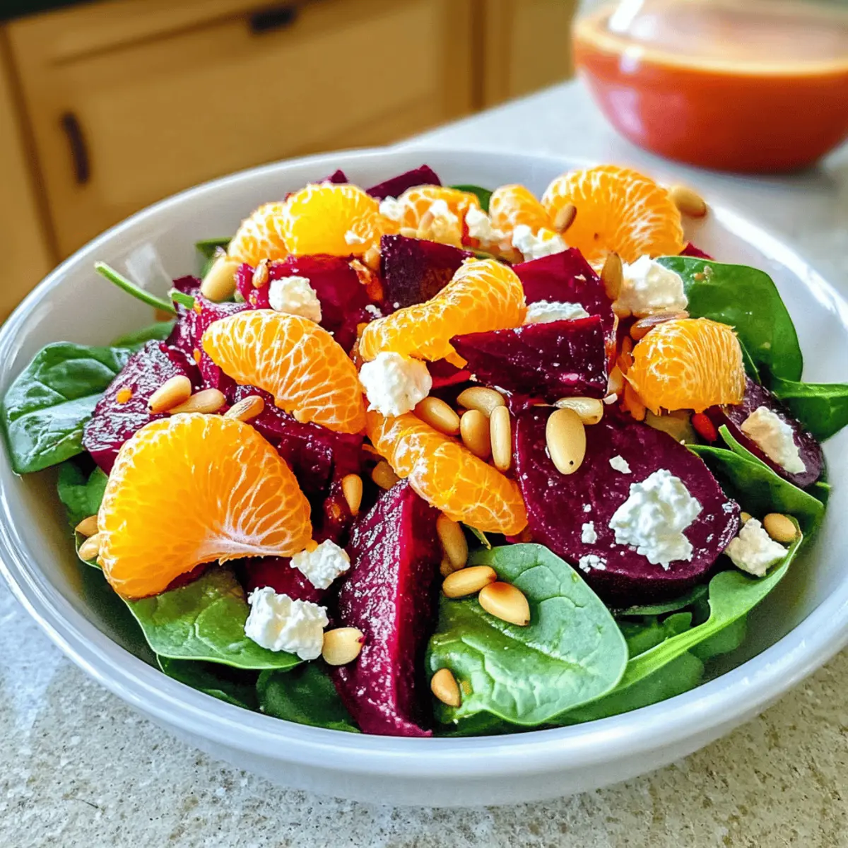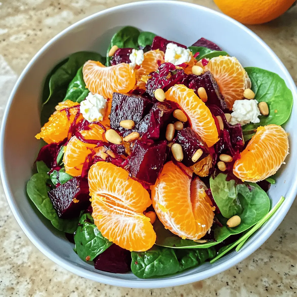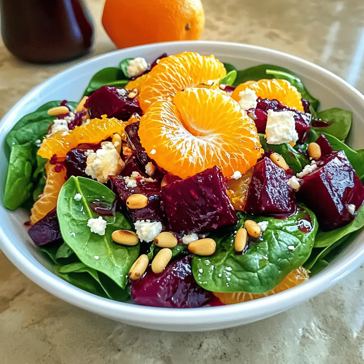 Als ich das erste Mal diesen leuchtenden Salat zubereitete, war es, als würde der Frühling auf meinem Teller tanzen. Die Kombination aus erdigen, gerösteten Rüben, frischem Spinat und süßen Mandarinenorangen sorgt für ein Fest der Farben und Aromen in meinem Zuhause. Dieser erfrischende Rote-Bete-Salat mit Spinat, Mandarinen und Feta ist nicht nur ein Gaumenschmaus, sondern auch ein Blitzgericht, das in nur 15 Minuten zubereitet ist. Perfekt für hektische Tage, an denen du dennoch etwas Besonderes zaubern möchtest, werden deine Gäste von der farbenfrohen Präsentation und dem köstlichen Geschmack begeistert sein. Und das Beste daran? Er ist vegetarisch und lässt sich ideal vorbereiten! Bist du bereit für ein neues Lieblingsrezept? Warum werden Sie dieses Rezept lieben? Einfachheit: Das Rezept ist unkompliziert und erfordert nur grundlegende Kochkenntnisse. In nur 15 Minuten kannst du einen gesunden und geschmackvollen Salat zubereiten, der alle begeistert. Frische Aromen: Die Kombination aus süßen Mandarinen, erdigen Rüben und würzigem Feta schafft ein harmonisches Geschmacksprofil, das deine Geschmacksknospen erfreuen wird. Vielseitigkeit: Ob als leichtes Mittagessen, als Beilage zu deinem Lieblingsgericht oder für eine gemütliche Zusammenkunft, dieser Salat passt immer! Einfach Vorbereiten: Bereite die gerösteten Rüben und das Dressing im Voraus zu, um Zeit zu sparen und trotzdem frisch zu genießen. Du kannst auch eine proteinreiche Ergänzung hinzufügen, wie gegrilltes Hähnchen oder Kichererbsen, um dich zu sättigen. Probiere auch andere gesunde Gerichte wie Avocado Toast Radieschen oder Cheeseburger Auflauf für die ganze Familie, um deine Rezeptesammlung zu erweitern! Rote Bete Spinat Salat Zutaten • Für den Salat Frischer Spinat – Er bildet die Basis des Salats, verwende gereinigte und getrocknete Blätter für extra Knackigkeit. Rote Bete – Geröstet für Süße und Tiefe, du kannst auch auf Dosenrüben zurückgreifen, wenn die Zeit drängt. Mandarinenorangen – Fügen Süße und Saftigkeit hinzu, als Alternative sind auch Orangenschnitze möglich. Rote Zwiebel – Sorgt für einen kräftigen Crunch, dünn geschnitten bietet sie einen milderen Geschmack. Feta-Käse – Der cremige Zusatz sorgt für einen herzhaften Kontrast, du kannst ihn durch Ziegenkäse ersetzen oder weg lassen für eine milchfreie Variante. • Für das Dressing Olivenöl – Die Basis für das Dressing, sorgt für Reichhaltigkeit, verwende auch ein mildes Öl nach Wahl. Balsamico-Essig – Bringt Säure und verstärkt den Geschmack, kann auch durch Apfelessig ersetzt werden. Salz & Pfeffer – Unverzichtbar für die Würze, schneide sie nach persönlichem Geschmack zu. • Für die Toppings Pinienkerne – Geben dem Salat zusätzlichen Crunch, du kannst auch Walnüsse verwenden oder sie ganz weglassen bei Allergien. Mache dir keine Sorgen, wenn du keine Zeit hast, um frische Rüben zu rösten. Diese Rote-Bete-Spinat-Salat Zubereitung ist nicht nur gesund, sondern auch ein Genuss für deine Seele! Schritt-für-Schritt-Anleitungen für den Rote-Bete-Spinat-Salat mit Mandarinen Step 1: Rote Bete rösten Heize den Ofen auf 200 °C vor. Wickele die Rüben in Aluminiumfolie und lege sie auf ein Backblech. Röste die Rüben für 45-60 Minuten, bis sie zart sind. Du erkennst die Garzeit, wenn du mit einer Gabel leicht hineinstechen kannst. Lass sie nach dem Rösten abkühlen, peel sie dann und würfle sie klein. Step 2: Salatbasis vorbereiten In einer großen Schüssel kombinierst du den frischen Spinat, die gewürfelten Rüben, die Mandarinenorangen und die dünn geschnittene rote Zwiebel. Achte darauf, dass die Blattgemüse gut gewaschen und getrocknet sind, damit der Salat knackig bleibt. Dieser Schritt ist wichtig für die Frische des Rote-Bete-Spinat-Salats. Step 3: Dressing zubereiten In einer kleinen Schüssel kannst du das Olivenöl, den Balsamico-Essig, Salz und Pfeffer miteinander verquirlen. Rühre kräftig um, bis sich die Zutaten gut verbunden haben. Probiere das Dressing und würze es nach Belieben, um den perfekten Geschmack für deinen Salat zu erreichen. Step 4: Zutaten kombinieren Gieße das Dressing über die vorbereiteten Salatzutaten und werfe alles vorsichtig zusammen. Sei dabei behutsam, damit die Zutaten nicht zerdrückt werden. Diese Geschmacksfusion wird den Rote-Bete-Spinat-Salat wunderbar verfeinern und die Aromen harmonisch miteinander verbinden. Step 5: Toppings hinzufügen Streue die gerösteten Pinienkerne und den zerbröckelten Feta-Käse über den Salat, um zusätzlichen Crunch und Geschmack zu verleihen. Serviere den Salat sofort, damit die Texturen frisch und ansprechend bleiben. Dein knackiger Rote-Bete-Spinat-Salat mit Mandarinen ist nun bereit, genossen zu werden! Variationen & Alternativen Entdecke, wie du dieses Rezept nach deinem Geschmack anpassen kannst! Käse swap: Ersetze Feta durch Ziegenkäse für einen ganz neuen Geschmack. Dieser mildere, cremige Käse bringt eine besondere Note in den Salat, die wunderbar harmoniert. Avocado hinzufügen: Füge halbierte Avocados für eine extra cremige Konsistenz hinzu. Das sorgt nicht nur für ein tolles Mundgefühl, sondern bringt auch gesunde Fette in den Salat. Nüsse oder Samen: Integriere gehackte Walnüsse oder Sonnenblumenkerne für zusätzlichen Crunch und Nährstoffe. Die knackige Textur ergänzt die weichen Rüben und den cremigen Käse auf perfekte Weise. Vegan: Lass den Käse weg und ersetze das Dressing durch ein Dressing mit Tahini oder Avocado. So bleibt der Salat frisch und pflanzenbasiert, ideal für eine vegane Ernährung! Extra Gehalt: Für eine sättigende Mahlzeit füge geröstete Kichererbsen oder gegrilltes Hähnchen hinzu. Diese Proteinquellen machen den Salat zu einer nahrhaften Hauptspeise, die dich lange satt hält. Süße anpassen: Experimentiere mit der Menge an Mandarinen, um den süßen Geschmack zu variieren. Weniger Mandarinen bringen mehr die erdigen Noten der Rüben