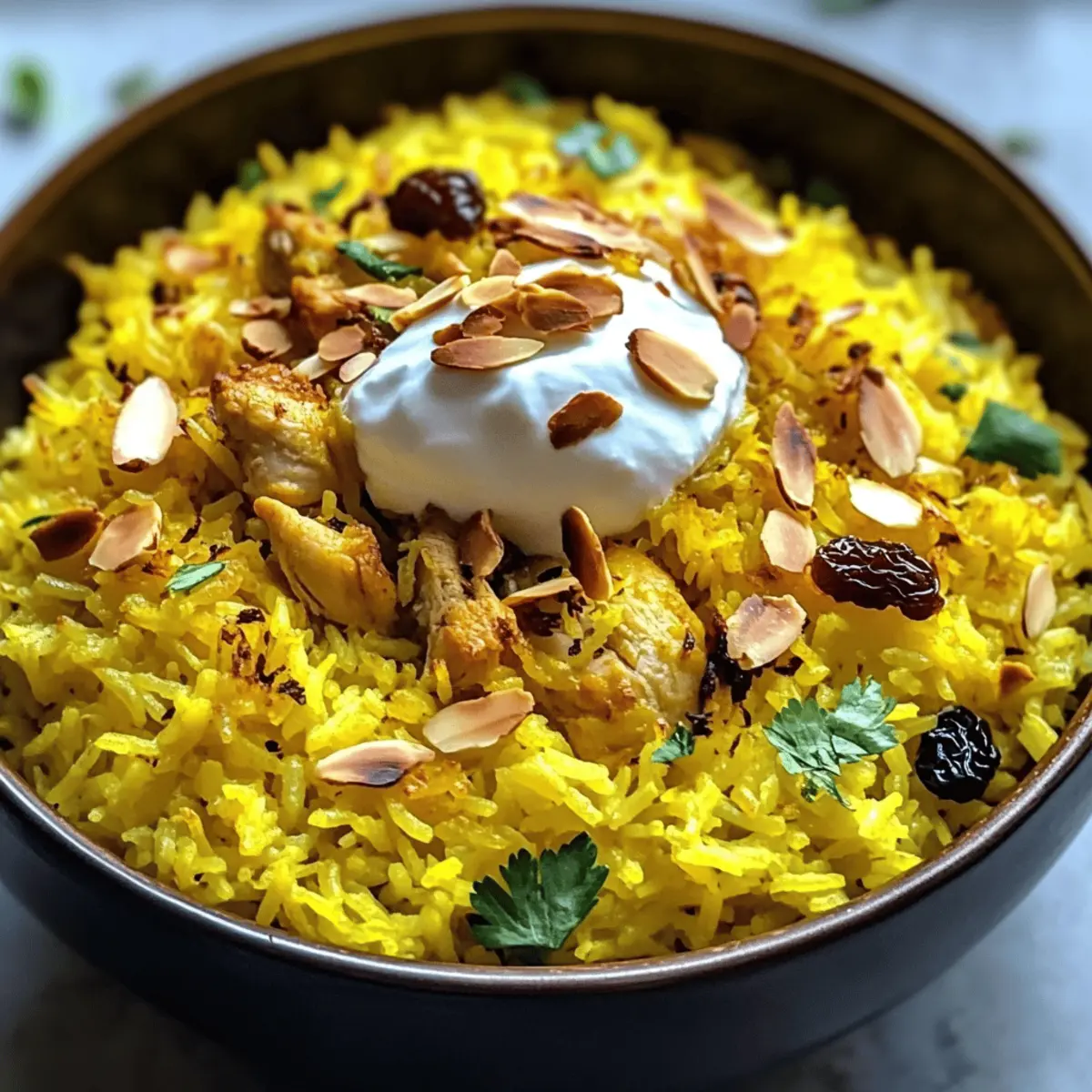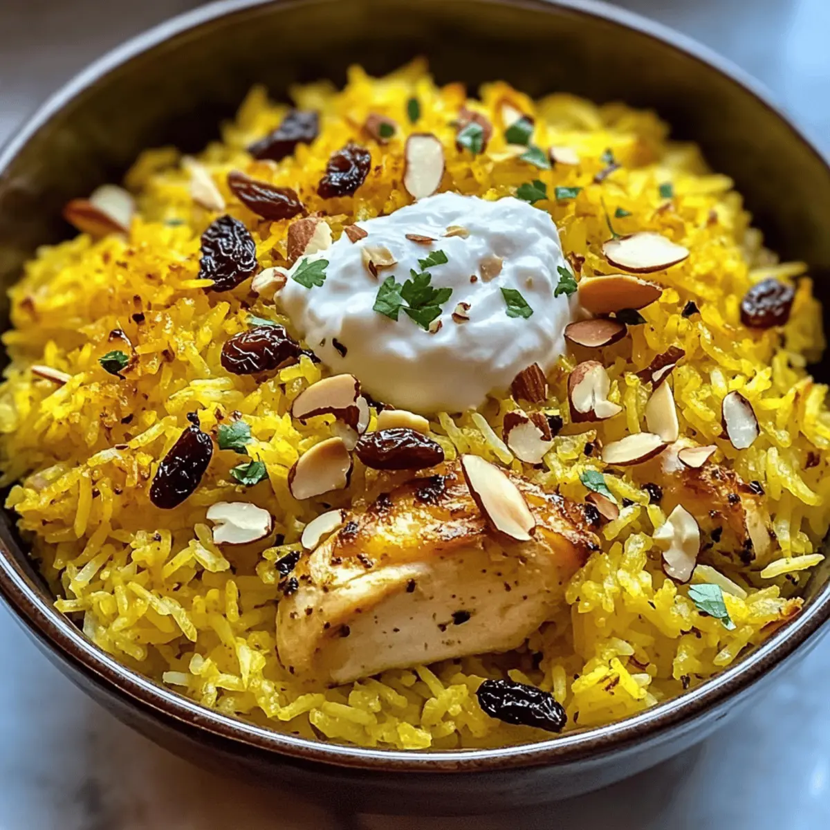 Während ich in meiner kleinen Küche stand, summte ich leise ein vertrautes Lied, als die Inhaltsstoffe für mein Lieblingsgericht auf dem Tisch lagen. Saffran-Joghurt-Reis mit Hähnchen verspricht nicht nur ein genussvolles Erlebnis, sondern auch eine einfache Zubereitung, die dir an einem geschäftigen Abend das Gefühl gibt, ein Festmahl zubereitet zu haben. Dieses Rezept vereint aromatischen Basmati-Reis, zartes Hähnchen und eine cremige Joghurtschicht. Es ist nicht nur perfekt für eine gemütliche Zusammenkunft mit Freunden, sondern auch ideal zum Vorbereiten für die Woche. Die Kombination aus lebhaftem Saffran und Gewürzen lädt deine Geschmacksknospen auf und bringt jedes Essen zum Strahlen. Bist du bereit, deine Familie mit diesem wunderbaren Gericht zu überraschen? Warum wirst du dieses Rezept lieben? Einfachheit, die begeistert: Die Zubereitung ist leicht und benötigt nur grundlegende Kochkenntnisse. Perfekt für hektische Wochentage! Reiche Aromen: Die Kombination aus Saffran, Gewürzen und Joghurt sorgt für ein unvergleichliches Geschmackserlebnis. Vielseitigkeit pur: Ob mit Hähnchen oder als vegetarische Variante mit Kichererbsen, du hast die Wahl! Zeitersparnis: In weniger als einer Stunde zauberst du ein Gourmetessen, das jeden begeistert. Schon einmal ausprobiert? Kombiniere es mit einem Cremiges Hähnchen Reis oder genieße es mit einem leichten Salat für ein vollständiges Menü. Saffran-Joghurt-Reis Zutaten Für den Reis Basmati Reis – Unverzichtbar für eine lockere Textur; weiße Reis ist eine schnellere Zubereitungsalternative. Hähnchenbrust, ohne Haut und Knochen – Hauptproteinquelle für ein herzhaftes Gericht; für eine vegetarische Option kann man Kichererbsen oder Gemüse verwenden. Olivenöl – Fürs Anbraten und zur Geschmackssteigerung; alternativ kann auch Rapsöl verwendet werden. Zwiebel – Sorgt für eine süße Grundlage beim Anbraten; verwende Schalotten für eine milde Note. Knoblauch – Fügt aromatische Tiefe hinzu; frisch ist am besten für den Geschmack. Salz & Pfeffer – Unverzichtbare Gewürze zur Geschmacksverstärkung. Für die Joghurtmischung Naturjoghurt – Macht das Gericht cremig und verleiht Frische; für eine laktosefreie Variante kann pflanzlicher Joghurt verwendet werden. Frische Petersilie (zum Garnieren) – Bringt Farbe und Frische ins Gericht. Für den Saffran Saffranfäden – Der Schlüssel für Geschmack und Farbe; länger ziehen lassen, um das Aroma zu intensivieren. Warmes Wasser – Wird zum Einweichen des Saffrans verwendet. Für die Gewürze Gemahlener Kreuzkümmel – Essentielle Zutat für den Geschmack; kann bei Bedarf auch durch Koriander ersetzt werden. Gemahlener Koriander – Ergänzt den Kreuzkümmel; ideal für eine harmonische Gewürzmischung. Kurkuma – Fügt Wärme und eine intensive goldene Farbe hinzu. Optionale Zutaten Gestiftete Mandeln – Für einen crunchy Biss; kann auch durch Cashews ersetzt werden. Rosinen – Für eine süße Note; auch Datteln wären eine köstliche Alternative. Dieser luxuriöse Saffran-Joghurt-Reis wird jeden begeistern und ist perfekt, um deine Kochkünste unter Beweis zu stellen! Step-by-Step Instructions for Saffran-Joghurt-Reis mit Hähnchen Step 1: Reis vorbereiten Spüle den Basmati-Reis unter kaltem Wasser, bis das Wasser klar ist. Lasse den Reis für 30 Minuten in Wasser einweichen und anschließend abtropfen. Dies ist wichtig für eine lockere Struktur im Saffran-Joghurt-Reis. Step 2: Saffran ziehen lassen Gib die Saffranfäden in eine kleine Schüssel mit warmem Wasser und lasse sie etwa 10 Minuten ziehen. Dieser Schritt intensiviert den Geschmack und die Farbe des Saffrans, die deinem Gericht leben einhauchen werden. Step 3: Zwiebel und Knoblauch anbraten Erhitze in einer großen Pfanne das Olivenöl bei mittlerer Hitze. Füge die gewürfelte Zwiebel hinzu und brate sie 5 Minuten lang, bis sie glasig ist. Dann gebe den gehackten Knoblauch dazu und brate ihn für eine weitere Minute an, um das Aroma freizusetzen. Step 4: Hähnchen anbraten Füge die gewürzten Hähnchenbruststücke, die mit Kreuzkümmel, Koriander, Kurkuma, Salz und Pfeffer mariniert sind, in die Pfanne. Brate das Hähnchen 6-8 Minuten lang an, bis es von allen Seiten goldbraun ist. Achte darauf, dass das Hähnchen gut durchgegart ist, bevor du mit dem nächsten Schritt fortfährst. Step 5: Reis und Flüssigkeit hinzufügen Rühre den abgetropften Reis in die Pfanne, gefolgt von dem Saffranwasser und 4 Tassen Wasser. Bringe alles zum Kochen und reduziere dann die Hitze. Decke die Pfanne ab und lasse den Saffran-Joghurt-Reis 20 Minuten lang köcheln, bis der Reis gar und die Flüssigkeit vollständig aufgenommen ist. Step 6: Joghurt mischen Während der Reis kocht, mische den griechischen Joghurt mit einer Prise Salz in einer kleinen Schüssel und stelle ihn beiseite. Dieser cremige Joghurt wird später als Topping für den Saffran-Joghurt-Reis verwendet. Step 7: Reis auflockern und servieren Lockere den Reis mit einer Gabel auf und lasse ihn noch 5 Minuten abgedeckt ruhen. Dann serviere den Saffran-Joghurt-Reis mit dem gebratenen Hähnchen, einem Klecks Joghurt obendrauf und garniere das Ganze mit gestifteten Mandeln, Rosinen und frischer Petersilie für eine ansprechende Optik. Variationen & Alternativen Entfalte deine Kreativität und passe dieses köstliche Rezept nach deinem Geschmack an! Vegetarisch: Ersetze die Hähnchenbrust durch Kichererbsen oder deine Lieblingsgemüse. Diese Option macht das Gericht genauso befriedigend und gesund. Dairy-Free: Nutze pflanzlichen Joghurt wie Kokos- oder Cashew-Joghurt für eine cremige, laktosefreie Variante. Der Geschmack bleibt dennoch herrlich frisch. Schärfer: Füge beim Anbraten der Zwiebeln rote Chiliflocken oder frisch gehackte grüne Chilis hinzu. Damit bringst du eine prickelnde Note in das Gericht. Zitronenfrisch: Ein Spritzer frischer Zitronensaft kurz vor dem Servieren erfrischt den Geschmack und hebt die Aromen hervor. So wird j