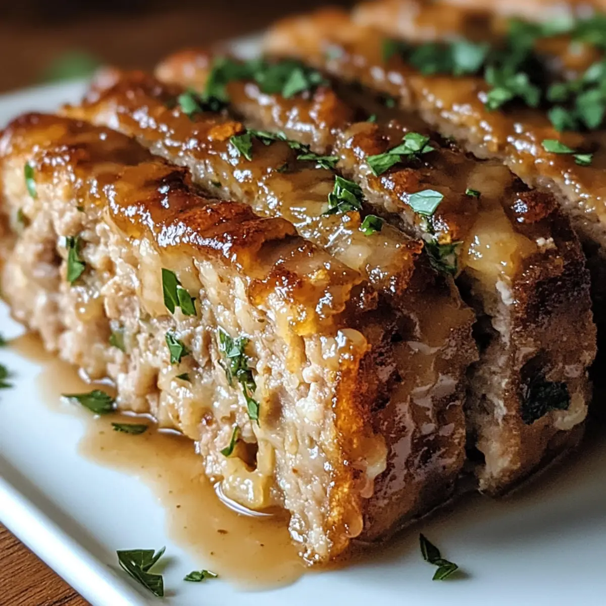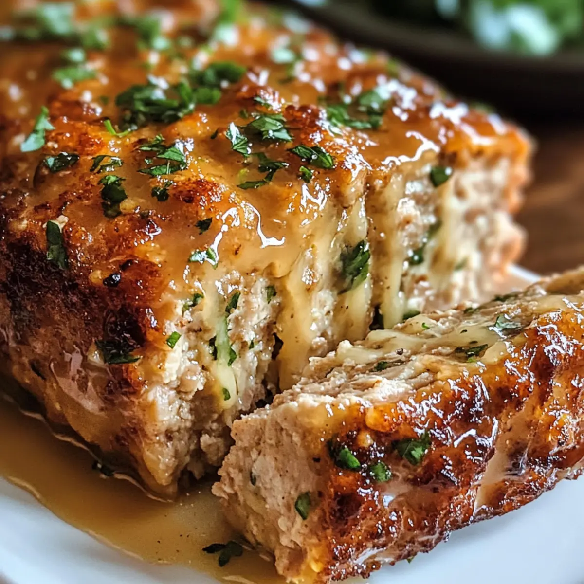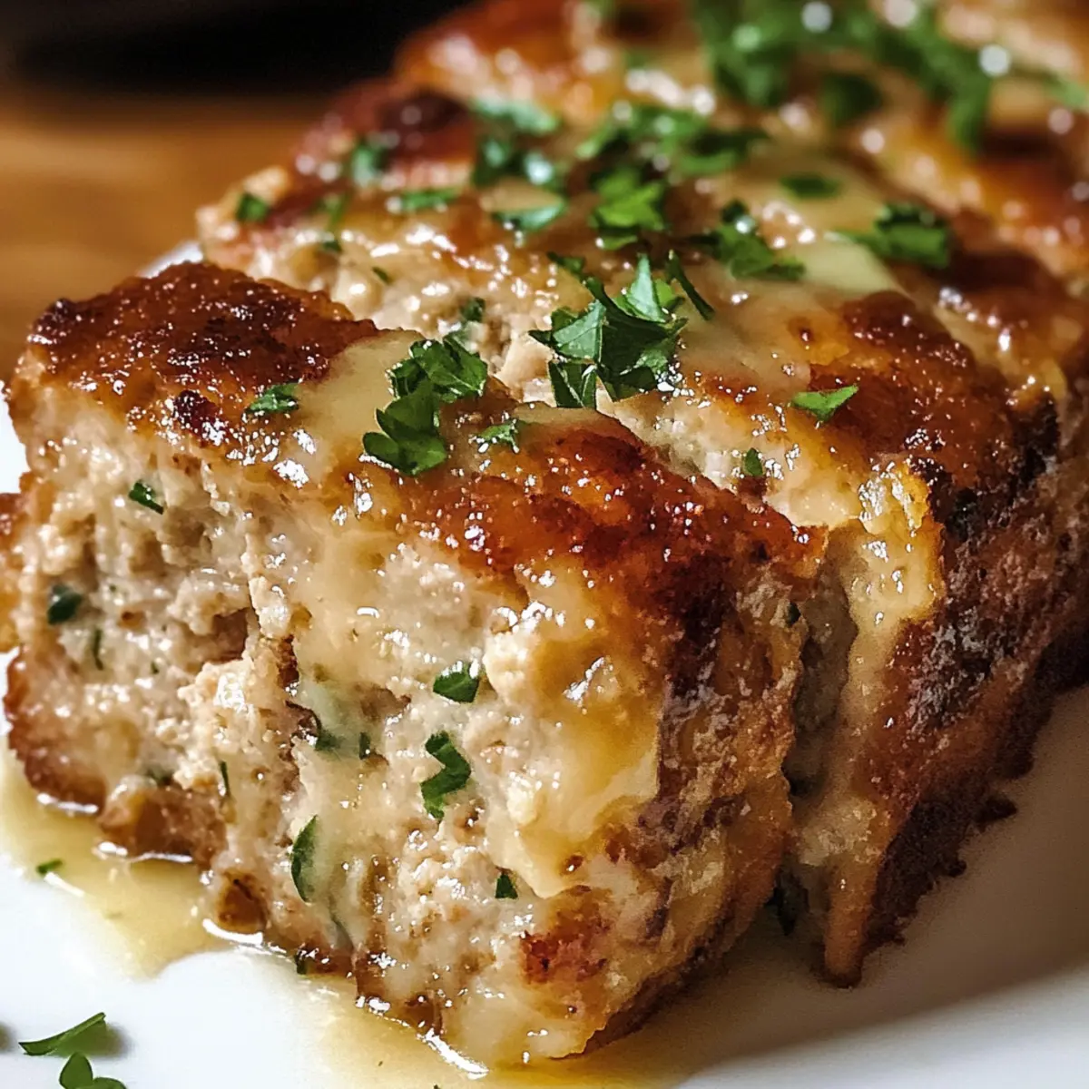 „Wusstest du, dass ein einfaches Gericht wie ein Fleischlaib das Potenzial hat, deine gesamte Woche zu verändern? Der Saftige Knoblauch Parmesan Hähnchen Fleischlaib ist nicht nur ein echter Seelenwärmer, sondern auch eine wunderbare Möglichkeit, um mit der Familie zusammenzukommen und gemeinsam zu genießen. Dieser Fleischlaib vereint zartes Hähnchenfleisch mit aromatischem Knoblauch und würzigem Parmesan, ganz eingehüllt in einer cremigen Glasur. Ideal für hektische Wochentage oder besondere Anlässe, ist dieses Rezept nicht nur ein Genuss, sondern auch unglaublich anpassbar und gehört zu den besten Optionen für die Mahlzeitvorbereitung. Bist du bereit, deinen nächsten Lieblingsklassiker zu entdecken, der nicht nur deinem Gaumen schmeichelt, sondern auch deine Küche in ein Duftparadies verwandelt?“ Warum wirst du dieses Rezept lieben? Einfachheit: Die Zubereitung ist super einfach, sodass auch weniger erfahrene Köche das Gericht problemlos meistern können. Verführerischer Geschmack: Die Kombination aus Knoblauch und Parmesan sorgt für einen reichen und herzhaften Geschmack, der jeden Bissen unvergesslich macht. Vielseitigkeit: Du kannst den Hähnchenfleischlaib ganz nach deinen Vorlieben anpassen, sei es mit magerem Putenfleisch oder verschiedenen Käsesorten wie Ricotta. Familienfreundlich: Dieses Rezept bringt die ganze Familie zusammen, perfekt für gemeinsame Abendessen oder besondere Anlässe. Vorratsfreundlich: Ideal für die Mahlzeitvorbereitung, kannst du die Mischung im Voraus zubereiten und schnell frisch backen. Entdecke auch unsere Tipps zum Aufbewahren von Resten. Ein traumhafter Duft: Schon beim Backen wird dein Zuhause vom köstlichen Aroma des Hähnchenfleischlaibs erfüllt – ein wahrer Genuss für die Sinne! Saftiger Knoblauch Parmesan Hähnchen Fleischlaib Zutaten • Entdecke die Zutaten, die dieses Rezept zu einem Lieblingsklassiker machen! Für den Fleischlaib: Hähnchenfleisch – Hauptproteinquelle; kann durch Puten- oder mageres Schweinefleisch ersetzt werden. Parmesan – Verleiht eine herzhafte Tiefe; Romano-Käse ist ein guter Ersatz. Panko-Semmelbrösel – Sorgt für Struktur und hält den Fleischlaib wunderbar saftig; gewöhnliche Semmelbrösel sind ebenfalls möglich. Eier – Dienen als Bindemittel, um den Laib zusammenzuhalten. Feingehackter Knoblauch – Für einen kräftigen Knoblauchgeschmack; Menge nach gewünschter Intensität anpassen. Knoblauchpulver – Verstärkt das Knoblaucharoma. Zwiebelpulver – Fügt eine subtile Süße hinzu; kann auch durch frische Zwiebeln ersetzt werden. Getrockneter Basilikum & Petersilie – Bringen frische Kräuternoten; frische Kräuter sind ebenfalls eine tolle Wahl. Salz & schwarzer Pfeffer – Würze nach Geschmack; nach Belieben anpassen. Vollmilch – Sorgt für zusätzliche Feuchtigkeit; pflanzliche Milch ist eine gute, milchfreie Alternative. Ungesalzene Butter – Wird in der Glasur verwendet, um einen reichen Geschmack zu erzeugen. Für die Glasur: Minced Knoblauch – Für die aromatische Note in der Glasur; sorge dafür, dass er gut angebraten wird. Zusätzlicher Parmesan – Für den perfekten letzten Schliff; obendrauf streuen für mehr Geschmack. Frische Petersilie – Zum Garnieren; sorgt für einen frischen Farbkontrast. Schritt-für-Schritt-Anleitung für den Saftigen Knoblauch Parmesan Hähnchen Fleischlaib Step 1: Ofen vorheizen Heize deinen Ofen auf 190°C (375°F) vor. Bereite ein Backblech mit Backpapier vor oder fettiere eine Kastenform, um sicherzustellen, dass der Saftige Knoblauch Parmesan Hähnchen Fleischlaib nicht kleben bleibt. Während der Ofen aufheizt, hast du genug Zeit, um die anderen Zutaten vorzubereiten. Step 2: Zutaten vermengen Nimm eine große Schüssel und kombinieren das Hähnchenfleisch, den Parmesan, die Panko-Semmelbrösel, die Eier, den gehackten Knoblauch, das Knoblauchpulver, das Zwiebelpulver, die getrockneten Kräuter, Salz, Pfeffer und die Milch. Mische alles sanft mit einem Löffel, bis die Zutaten gut verbunden sind, aber achte darauf, nicht zu übermixen, um die Saftigkeit des Fleischlaibs zu bewahren. Step 3: Fleischlaib formen Forme die Mischung zu einem gleichmäßigen Laib und lege ihn entweder auf das Backblech oder in die Kastenform. Achte darauf, dass der Laib gut geformt ist, damit er gleichmäßig gart und eine schöne Kruste erhält. Wenn du möchtest, kannst du den Laib leicht mit deinem Handrücken glätten, um eine ansprechende Optik zu erhalten. Step 4: Backen Platziere den Saftigen Knoblauch Parmesan Hähnchen Fleischlaib im vorgeheizten Ofen und backe ihn 40-45 Minuten lang. Achte darauf, dass die Innentemperatur des Fleischlaibs mindestens 74°C (165°F) erreicht, um sicherzustellen, dass er gut durchgegart ist. Die Oberfläche sollte eine goldene Farbe annehmen. Step 5: Glasur vorbereiten Während der Fleischlaib im Ofen ist, schmelze die ungesalzene Butter in einem kleinen Topf bei mittlerer Hitze. Füge den fein gehackten Knoblauch hinzu und lasse ihn kurz anbraten, bis er aromatisch duftet. Rühre dann zusätzlichen Parmesan und frische Petersilie ein, bis die Glasur eine dickere Konsistenz erreicht. Step 6: Glasur und Fertigstellung Sobald der Fleischlaib fertig gebacken ist, nimm ihn aus dem Ofen und bürste die vorbereitete Glasur großzügig über die Oberfläche des Fleischlaibs. Gib ihn anschließend für weitere 5-7 Minuten zurück in den Ofen, damit die Glasur schön karamellisieren kann. Achte darauf, die Farbe im Auge zu behalten. Step 7: Ruhen lassen und servieren Lass den Saftigen Knoblauch Parmesan Hähnchen Fleischlaib nach dem Backen 5 Minuten ruhen, bevor du ihn in Scheiben schneidest. Dies hilft dabei, die Säfte zu verteilen und erleichtert das Schneiden. Garniere den Fleischlaib mit frischer Petersilie für eine ansprechende Präsentation und serviere ihn mit deinen Lieblingsbeilagen. Was passt gut zu Saftigem Knoblauch Parmesan Hähnchen Fleischlaib? Ein sättigendes Hauptgericht verlangt nach den 